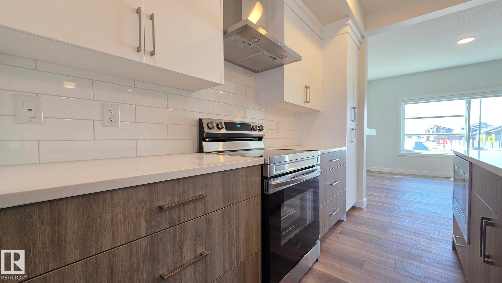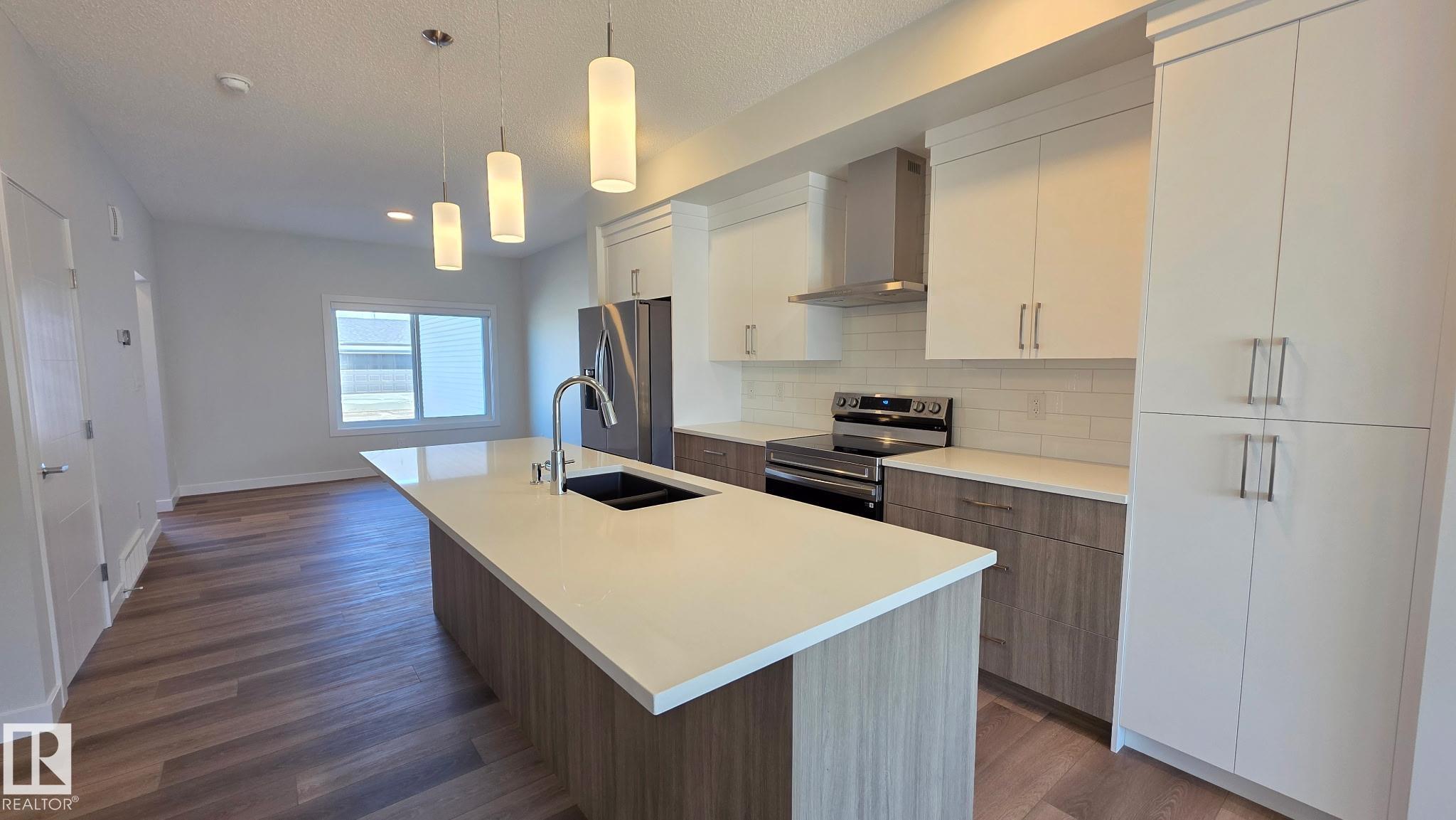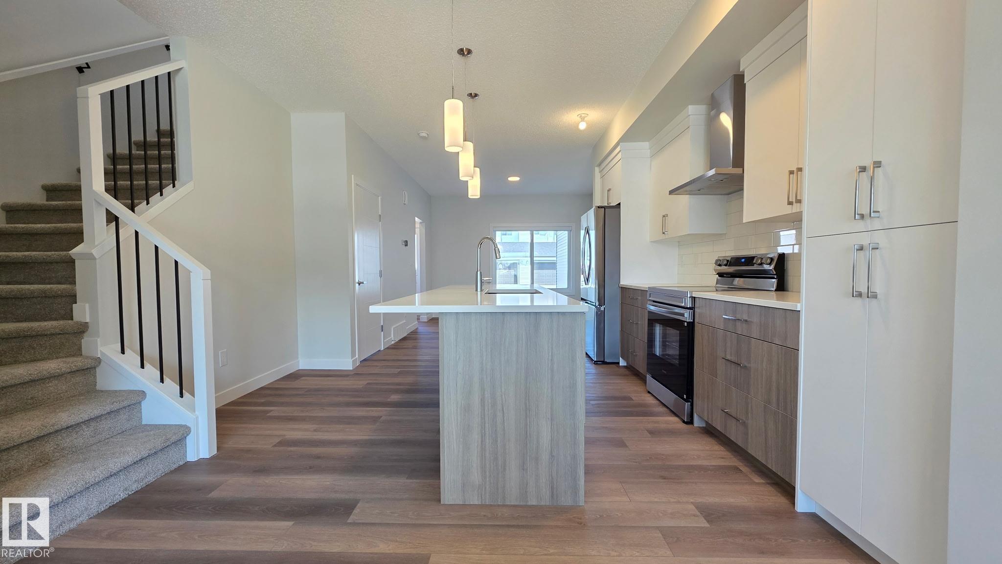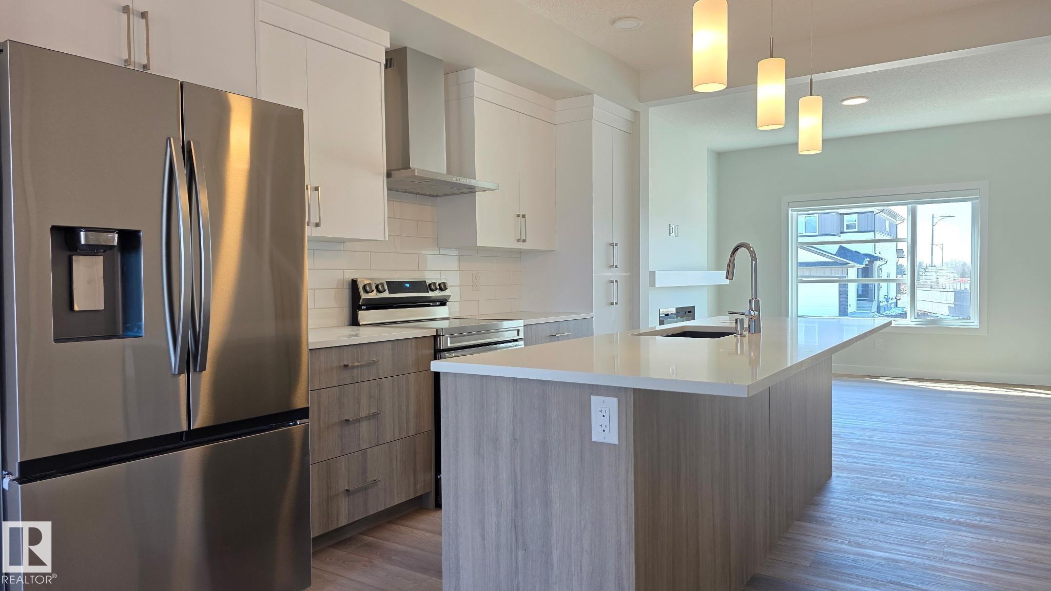 SINGLE FAMILY LIVING WITHOUT THE PRICE TAG....TONS OF PARKING.. yes we INSTALLED WINDOW COVERINGS...SIDE ENTRANCE/YUP WE HAVE IT ..COMES WITH CUSTOM APPLIANCE PACKAGE!... ..~!WELCOME HOME!~ With ALMOST 1500 Sq Ft, this amazing half duplex has main floor 9 ft ceilings, & you won't believe the GORGEOUS FINISHES! Open concept kitchen/living/dining, with LUXURY VINYL PLANK throughout. Kitchen boasts two-tone cabinetry, large island, stone countertops, tall pantry, and island with eating bar. Upstairs offers total three spacious bedrooms, CONVENIENT UPSTAIRS LAUNDRY, & 4 pce bath. Primary is a retreat on its own, w/walk in closet, & 4 pce ensuite. Out back, you will have a 13'x10' concrete patio and 20'x22' rear concrete parking pad (ADD VALUE FOR LATER:) Close to green space, walking trails, & playground. Amazing home - come see for yourself!