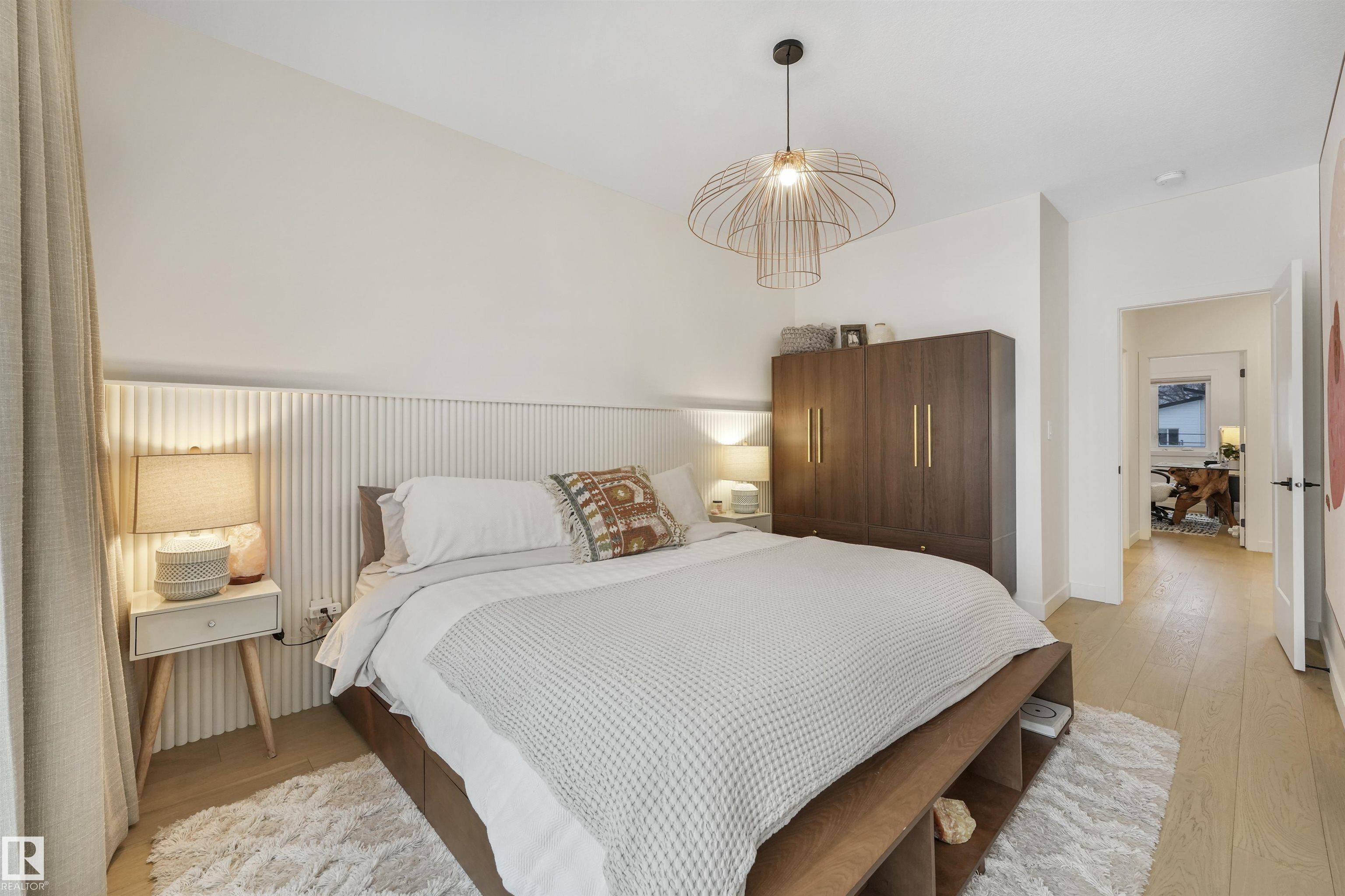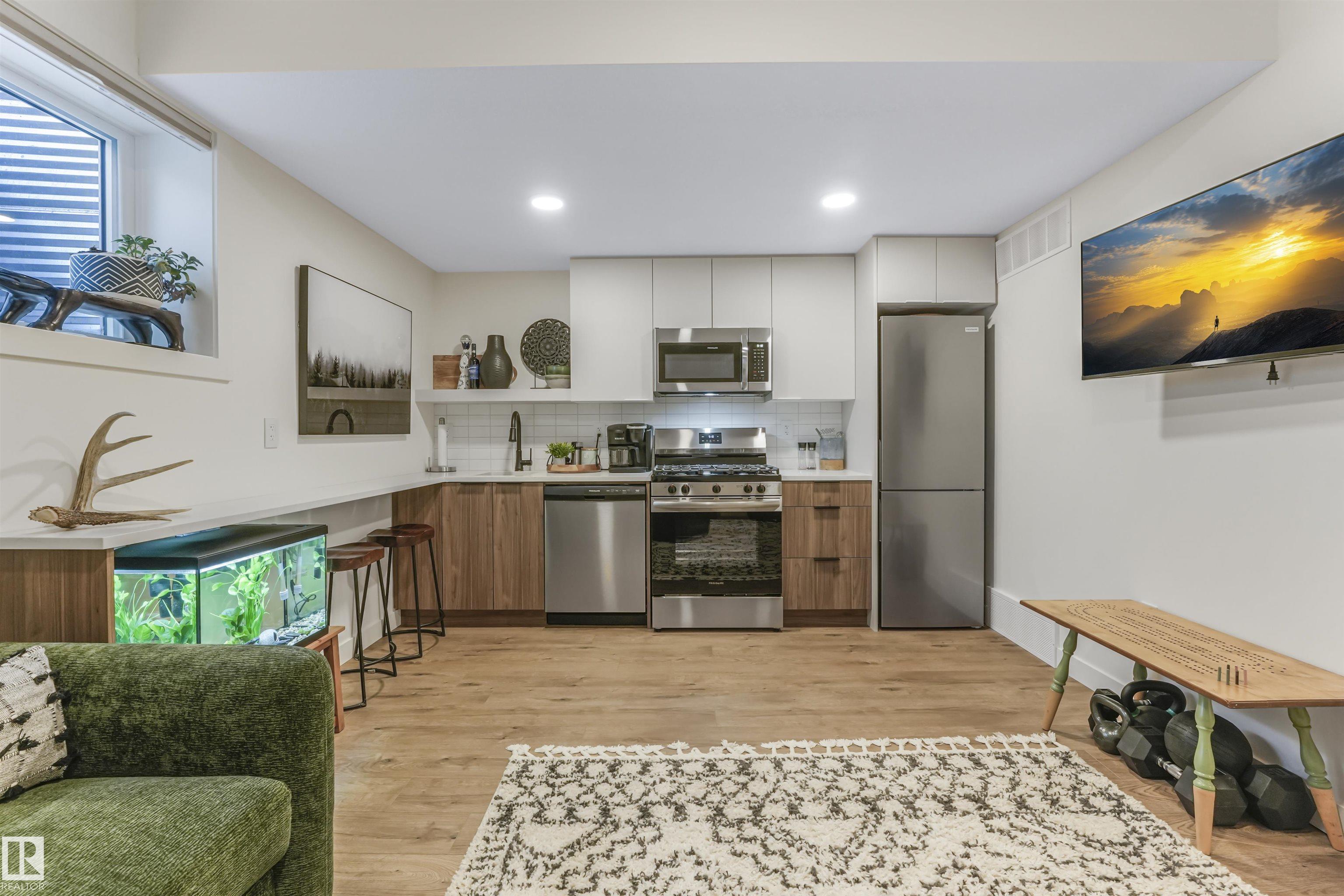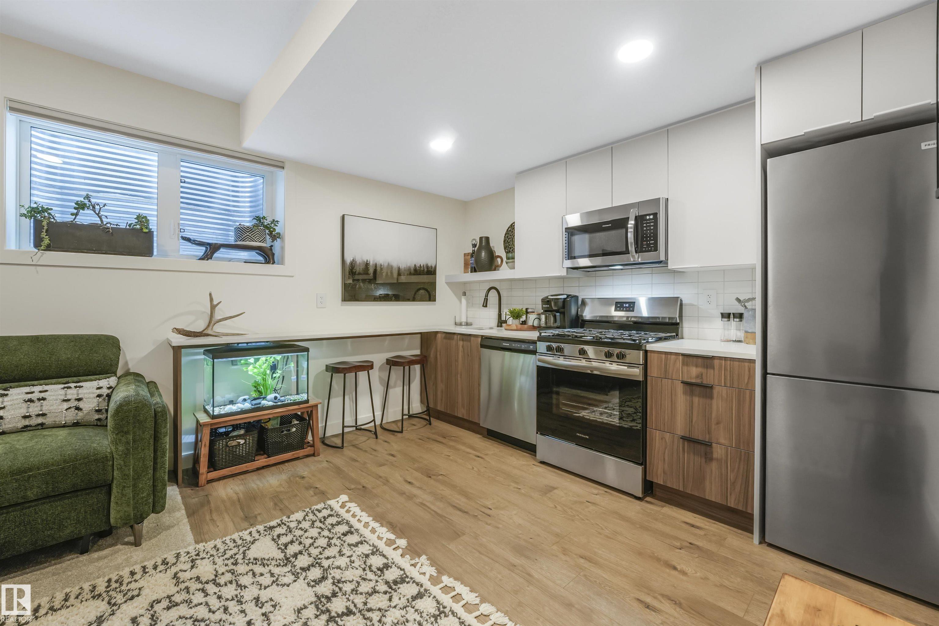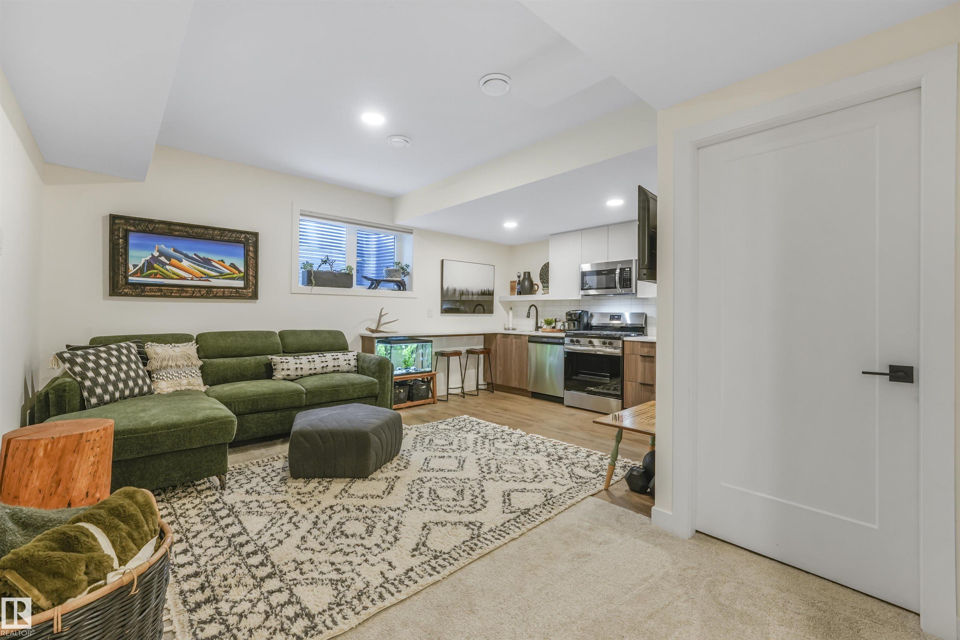 Better than new in desirable Idylwylde! This modern half duplex showcases thoughtfully selected natural finishes and a bright, open concept main floor designed for effortless living. The spacious living room features a large picture window that fills the home with natural light and flows seamlessly into the dining area and kitchen. The functional kitchen offers a pantry and large island, while the dining area overlooks the landscaped and fenced backyard. Upstairs boasts a generous primary bedroom with walk-in-closet and 4-pc ensuite, plus two additional bedrooms, a 5-pc main bath, and convenient upper floor laundry. The fully finished basement features a LEGAL SUITE complete with a full kitchen and separate in-suite laundry, ideal for rental income or extended family. Enjoy the convenience of a insulated garage and central A/C. unbeatable location just steps to parks, Idylwylde Community League, and Vimy Ridge Academy. Close to the LRT, Bonnie Doon Shopping Centre, and an easy commute to downtown.