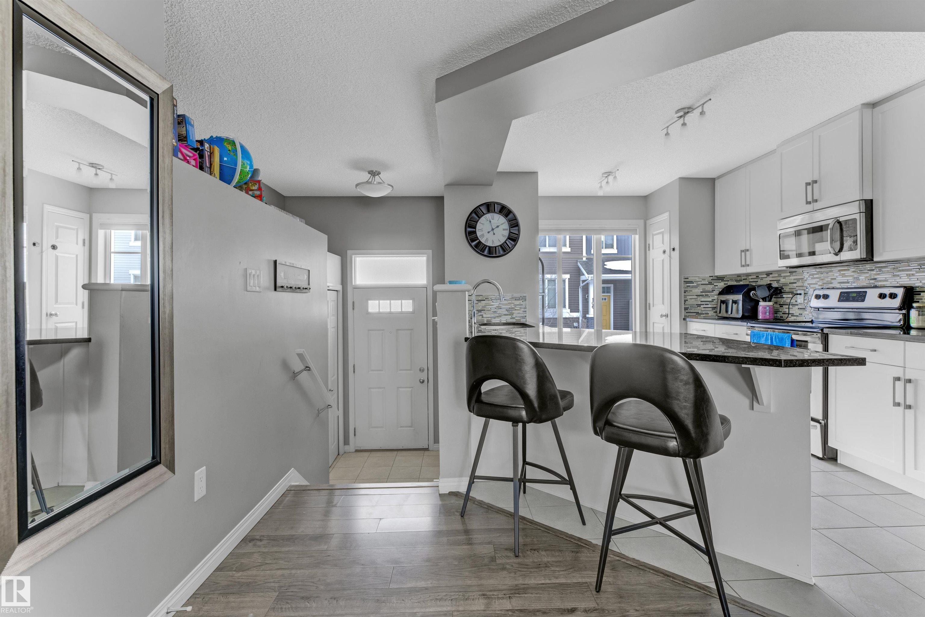 CONTEMPORARY CALM | GROUND LEVEL ENTRY & LAKESIDE LUXE w\ DOUBLE ATTACHED GARAGE. Step into your sanctuary defined by EXECUTIVE AESTHETIC - A STATEMENT OF QUALITY that welcomes you into a bright contemporary aura. It creates a SPACE THAT FEELS EXPENSIVE & TIMELESS. (2025) HWT. The heart of this meticulously clean home is the kitchen that commands attention, featuring striking black granite countertops that provide a grounded, glossy contrast to the clean & airy design palette. 3 spacious bedrooms on the upper level, including a primary retreat with a private ENSUITE & a main bath. A convenient main-floor half bath ensures privacy for everyone. Across from your DOUBLE ATTACHED GARAGE, you'll find a MASSIVE laundry & STORAGE ZONE. LOCATION is the LIQUID ASSET for you are steps away to the 2 connective lakes, scenic trails & the PREMIUM AMENITIES - splash parks, skating and community gardens. This is WHERE YOUR LEGACY TAKES ROOT where AIRPORT & The Jagare Ridge Golf Course is nearby. LOCK-and-GO CONVENIENCE.