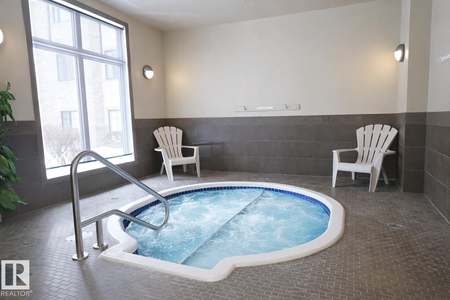 Looking for a very well maintained spacious bright FRESHLY PAINTED (2026) south facing condo in an ADULT ONLY building close to the elevator for ease of access? You?ll enjoy a good-sized kitchen with refreshed cabinets (2026), granite counters & newer stainless appliances including a Bosch dishwasher. The dedicated dining space will accommodate a large table to enjoy great times with family & friends. There are 2 bedrooms including the Primary with walk in closet & a 4 pce. ensuite with granite counters. There is even a den ? perfect for home office or TV room. You?ll love coffee/wine on the south facing balcony that provides lots of sunshine & the unit has A/C for year round comfort. Titled underground parking stall & storage room included. Icing on the cake are the incredible amenities including a party room w/ kitchen; social room, theatre room, pool table & library; steam room & hot tub; car wash bay & patio w/ gas BBQ. Walking distance to all the amenities & services you?ll ever need. Welcome home!