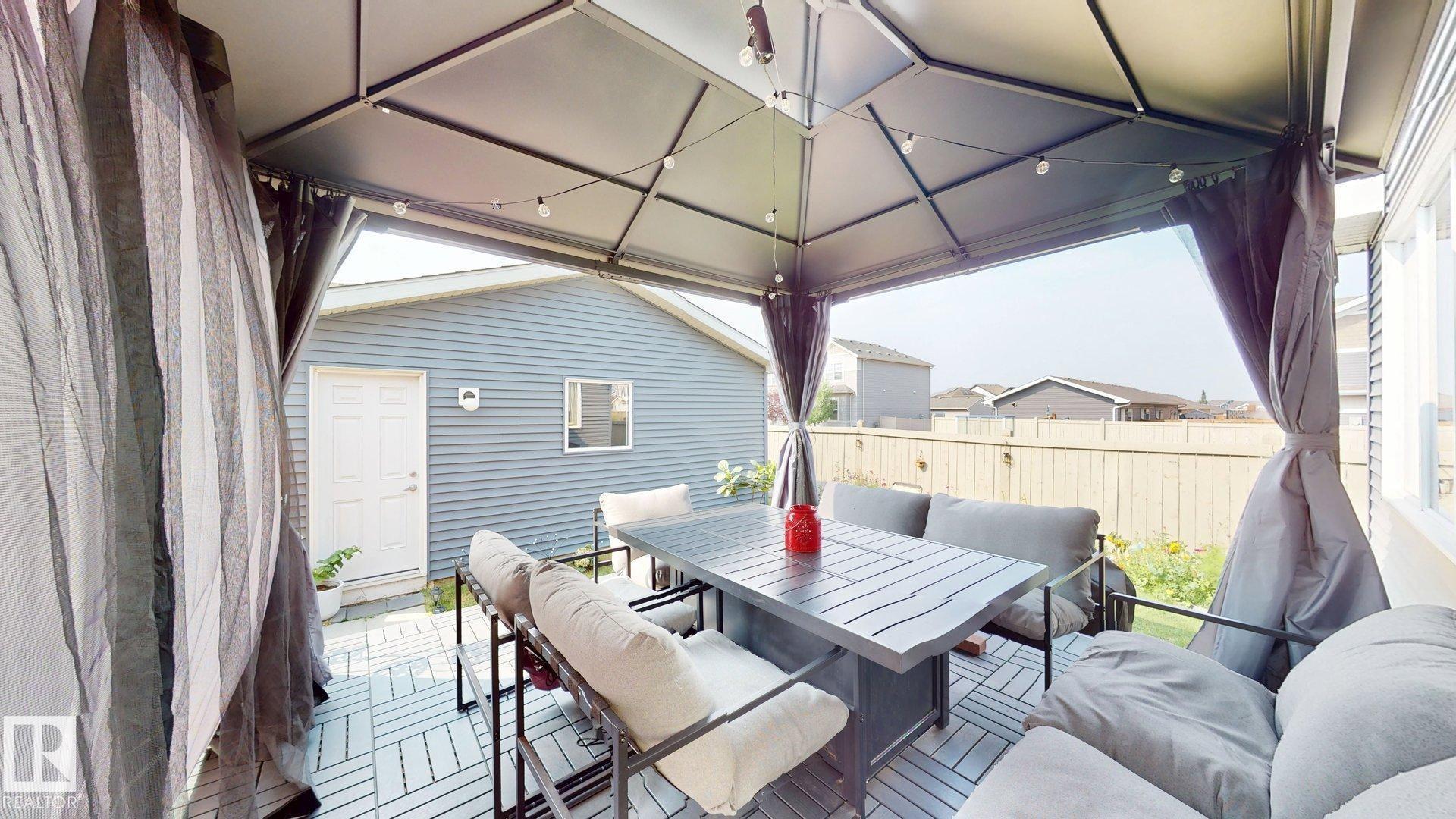 Welcome to this charming 1,550 sq.ft. two storey home in the sought-after Chappelle Community. Built in 2016, this property offers 3 spacious bedrooms, 2 full baths, and main floor half bath for added convenience. Recent upgrades include a new high-efficiency furnace replaced in December 2024 and water filtration system at the kitchen tap. Seller included: Central Air-Conditioning, ring door camera, double-size bed with mattress, makeup shelving, chair, and desk in the primary bedroom, metal shelving in the garage.Relax on the inviting front porch or entertain on the deck with gazebo.Fully landscaped with a detached double garage, this home is perfectly located near schools, shopping and green spaces. Ready to move in.
