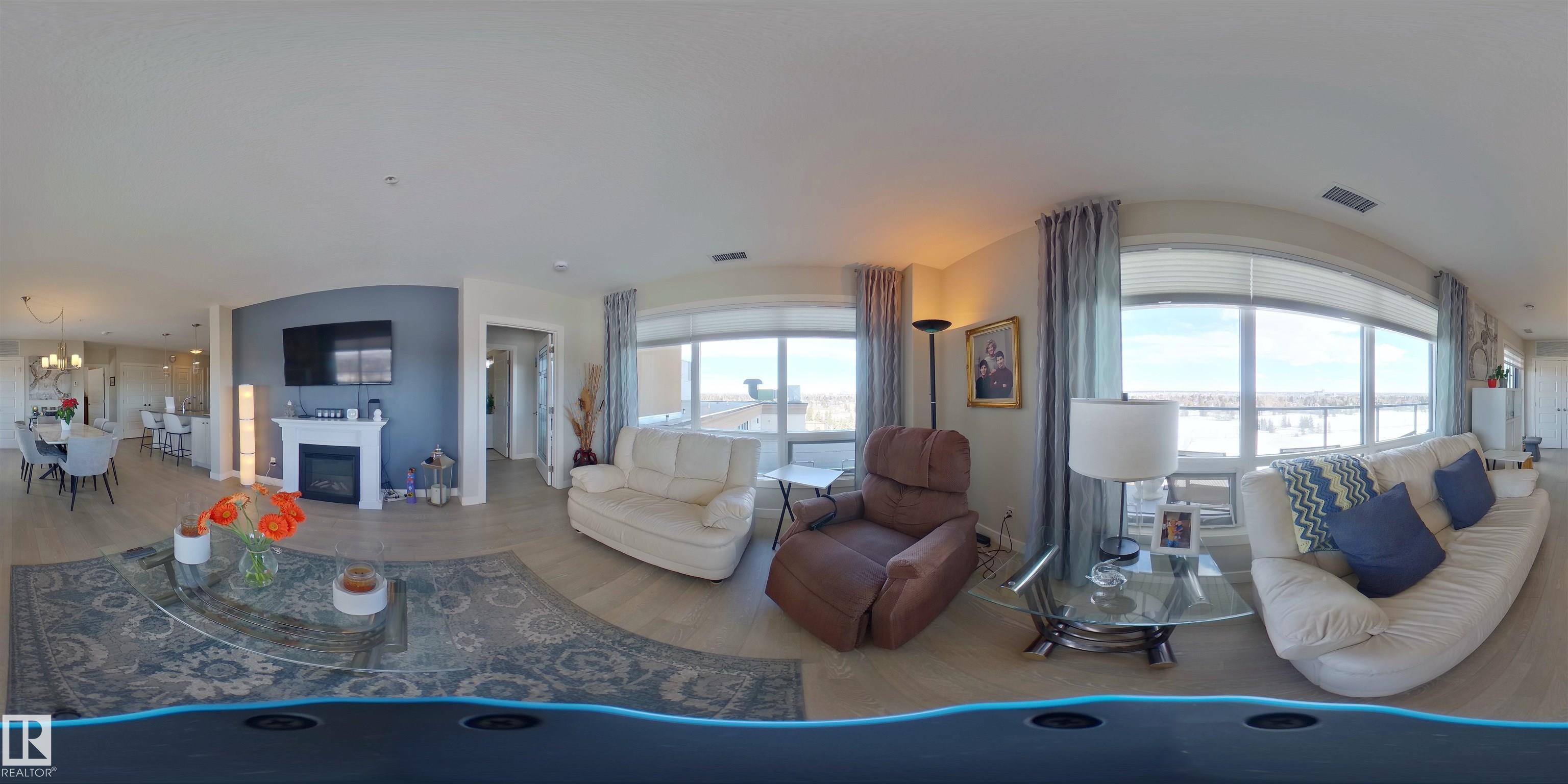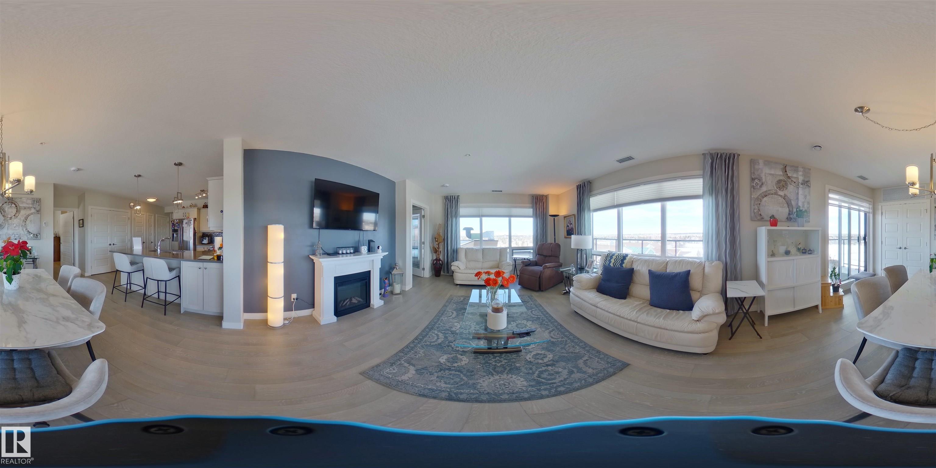 This unit is filled w/ abundant natural light w/open-concept layout.The kitchen is beautifully upgraded w/white cabinetry, stainless steel appliances, quartz countertops, & a large peninsula. High-end engineered hardwood flooring flows throughout, enhanced by large windows highlighing stunning views.Relax on the extensive private balcony & enjoy views onto a park to the east & the skyline of downtown to the north.The spacious living and dining areas are ideal for entertaining.The primary bedroom features a gorgeous view, a walk-through closet leading to a 4-piece bath w/a walk-in shower.The 2nd bedroom has a private 3-piece ensuite.This unit also offers central A/C, an underground parking & plenty storage spaces.Conveniently located near public transit(LRT) & w/easy access to shopping, dining & pharmacies.The building has so many unique amenities such as social room, restaurant, guest room, hair salon, car wash, workshop & more.