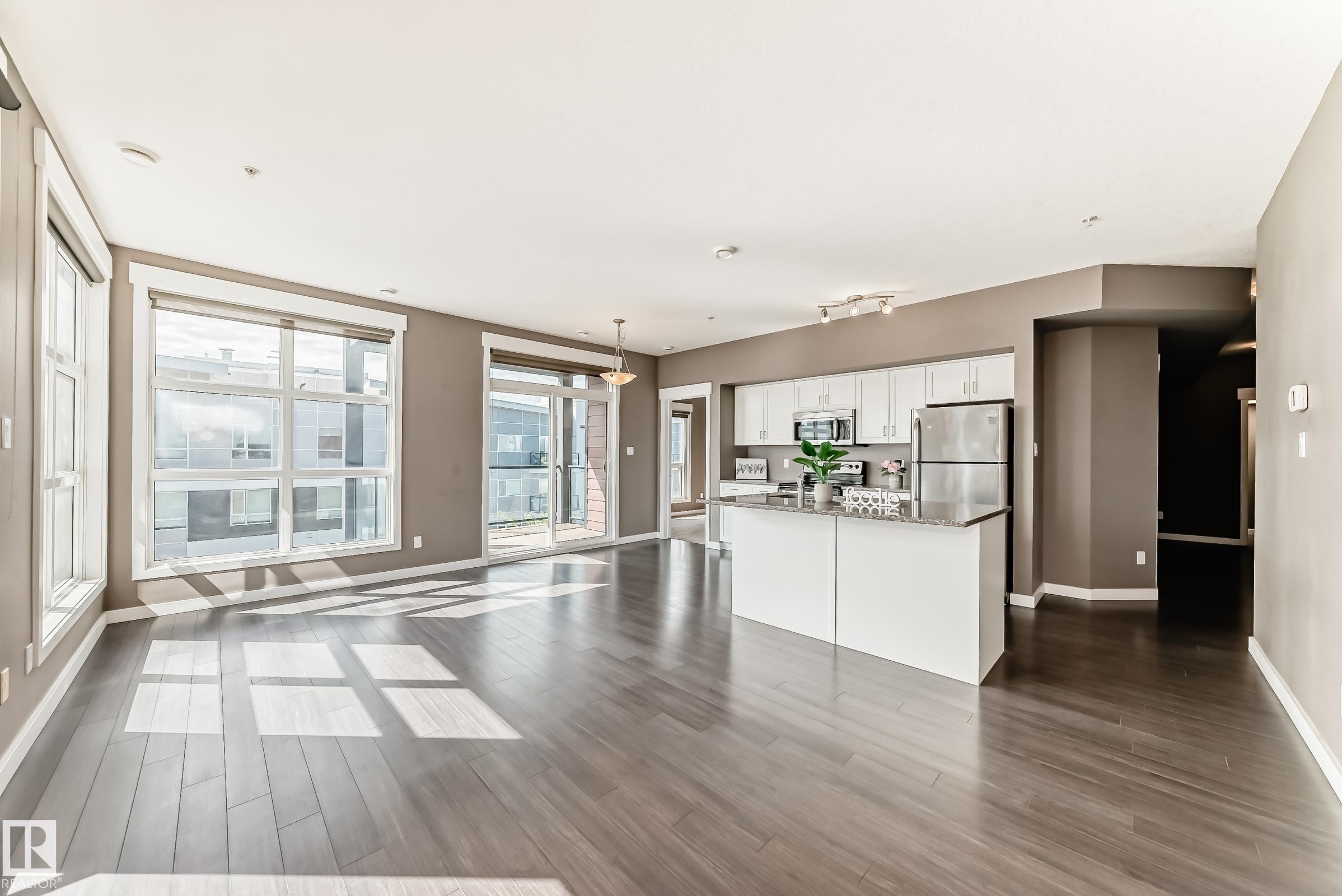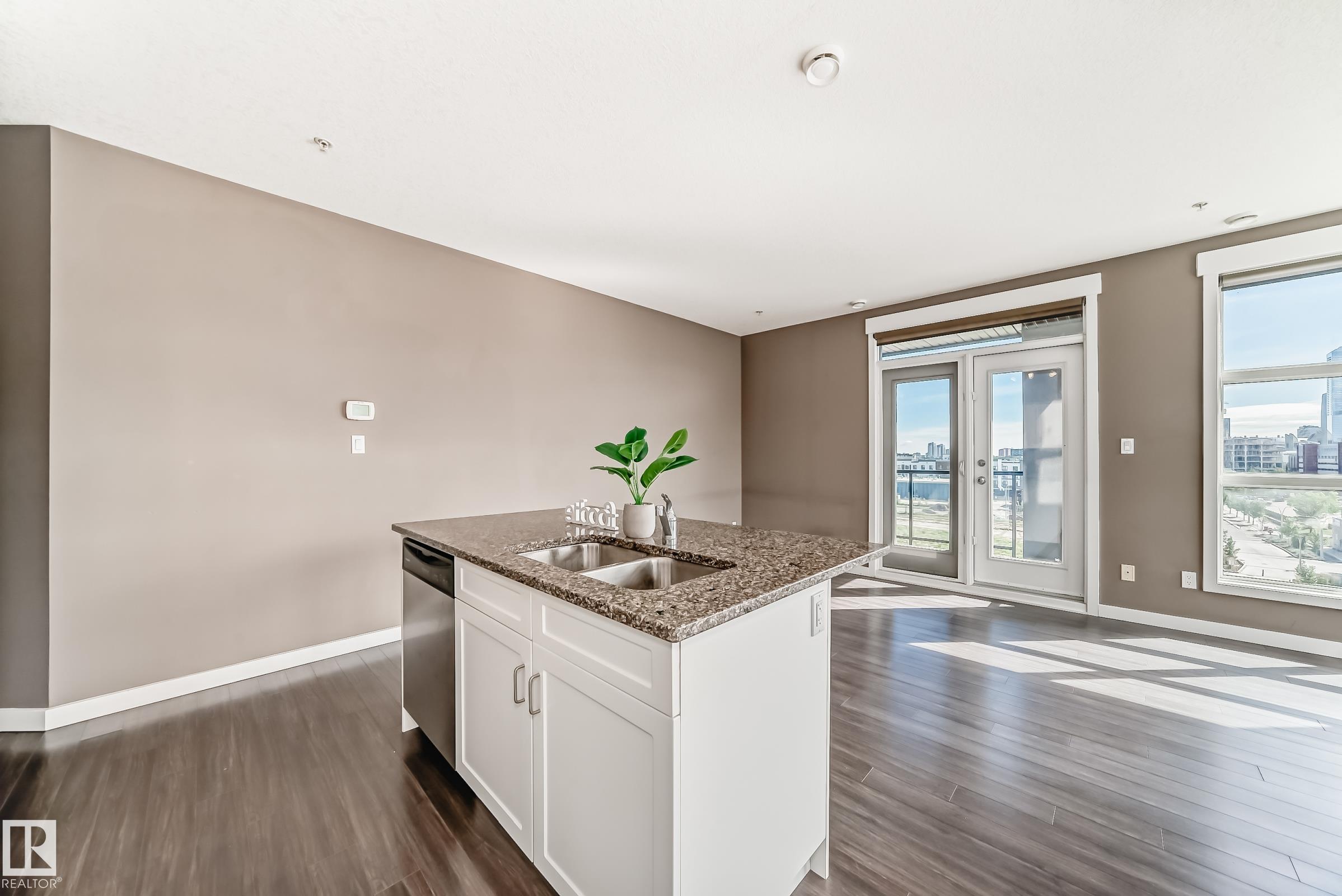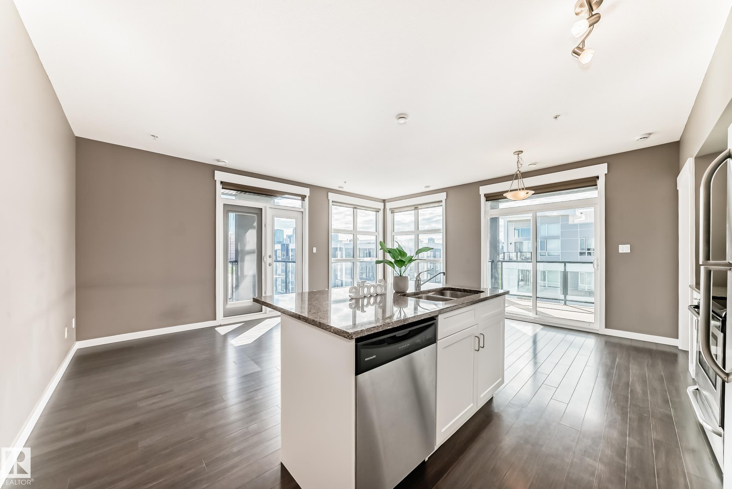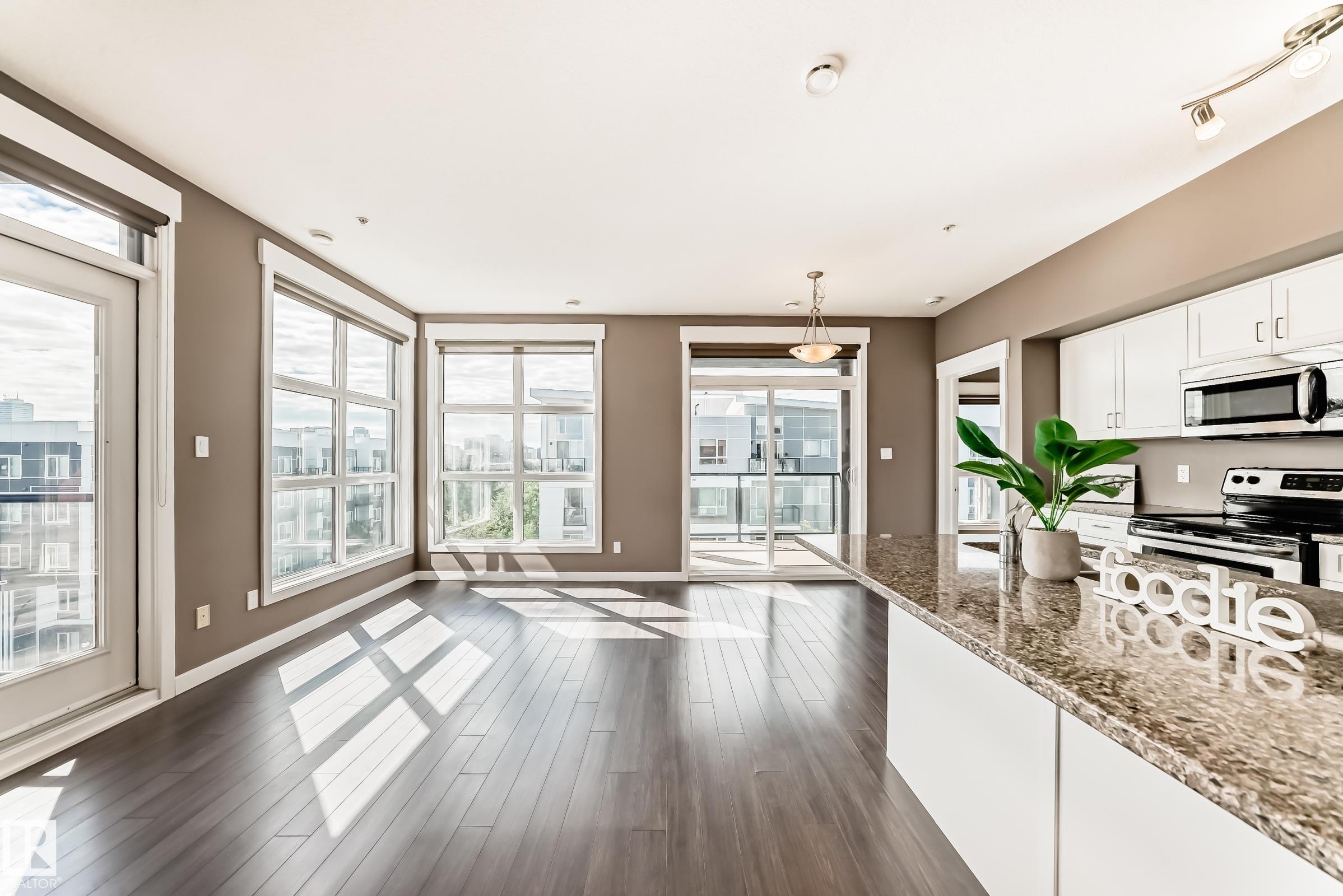 Experience downtown luxury living at its finest! This modern 1,065 sqft, 5th-floor CORNER UNIT offers 2 bedrooms, 2 bathrooms & soaring 9-ft ceilings, delivering the perfect blend of style & functionality. Elegant laminate flooring flows throughout, enhancing the home?s sophisticated feel. The open-concept layout features a spacious living room w floor-to-ceiling windows boasts lots of natural light & beautiful city views, seamlessly connecting to the dining area. The chef-inspired kitchen is designed to impress w quartz countertops, a raised centre island, SS appliances & ample cabinetry. king-sized primary suite offers a walk-through closet & a 3-pc ensuite. A well-sized second bedroom & full bath provide flexibility for family. Step outside to enjoy TWO large covered balconies (East & South exposure) with a gas BBQ hookup. In-suite laundry & heated underground parking w a storage cage. Just steps to Grant MacEwan U/Brewery District/restaurants/shopping & transit. Quick poss avail. Just move-in & enjoy!