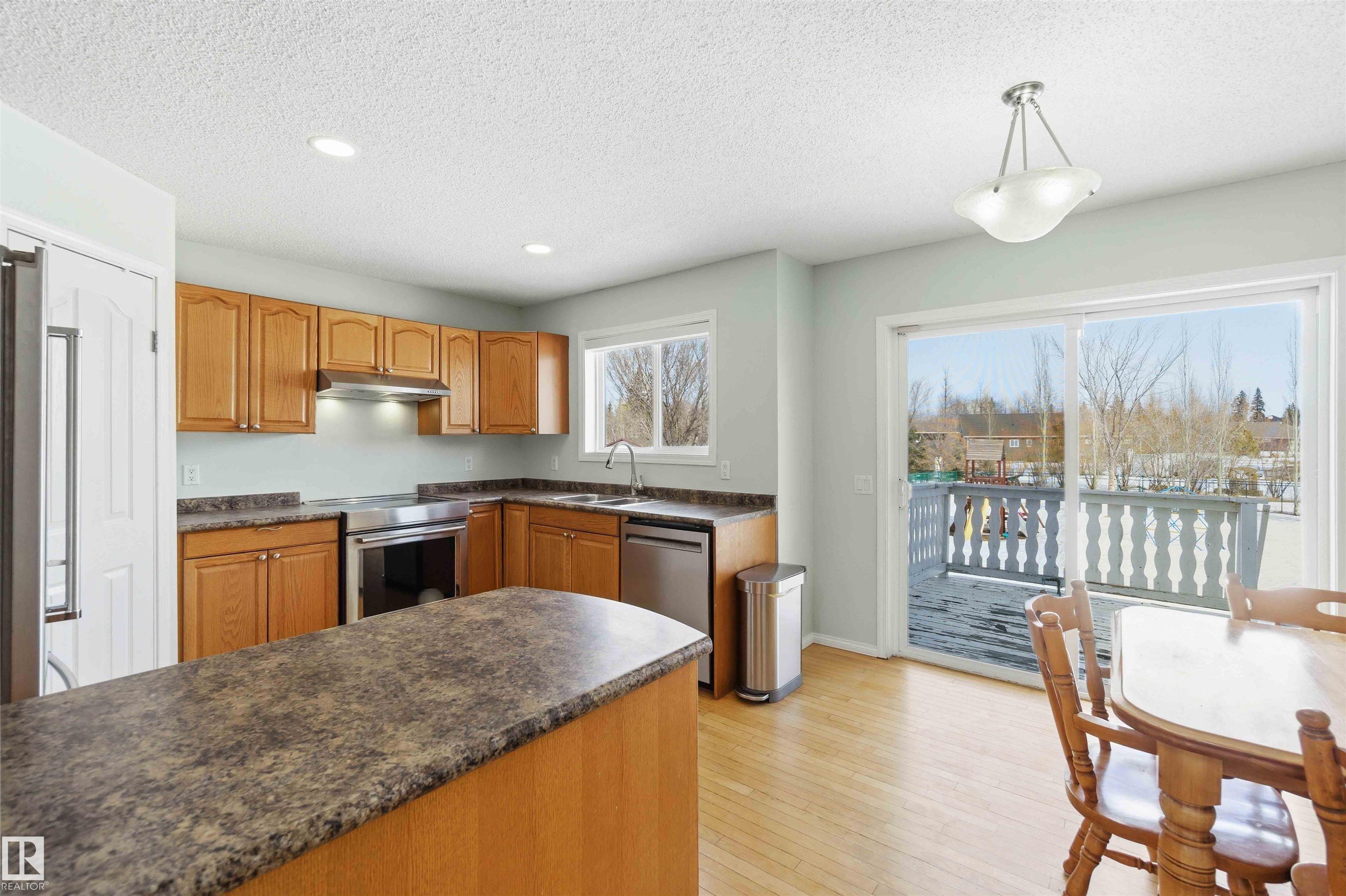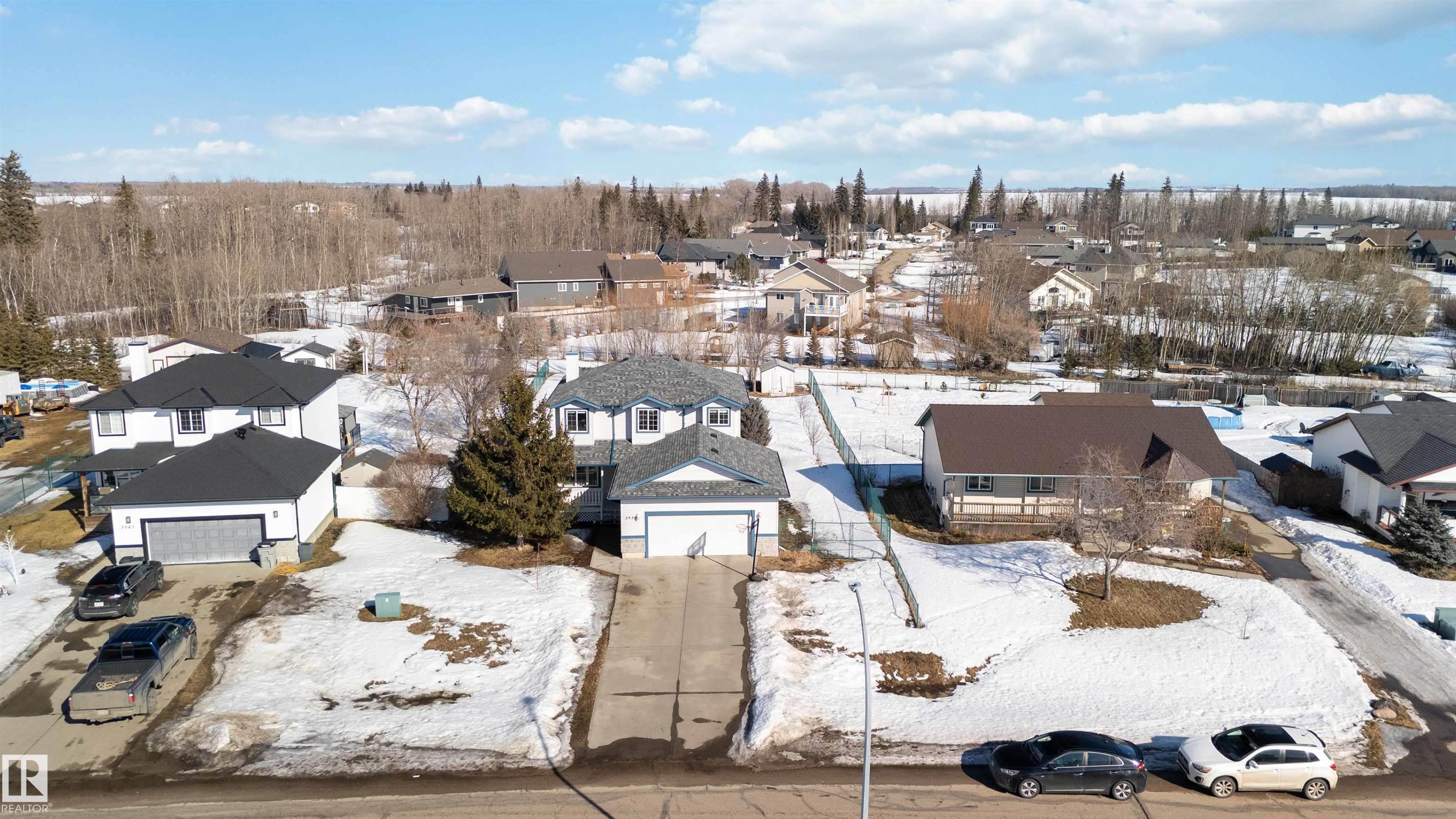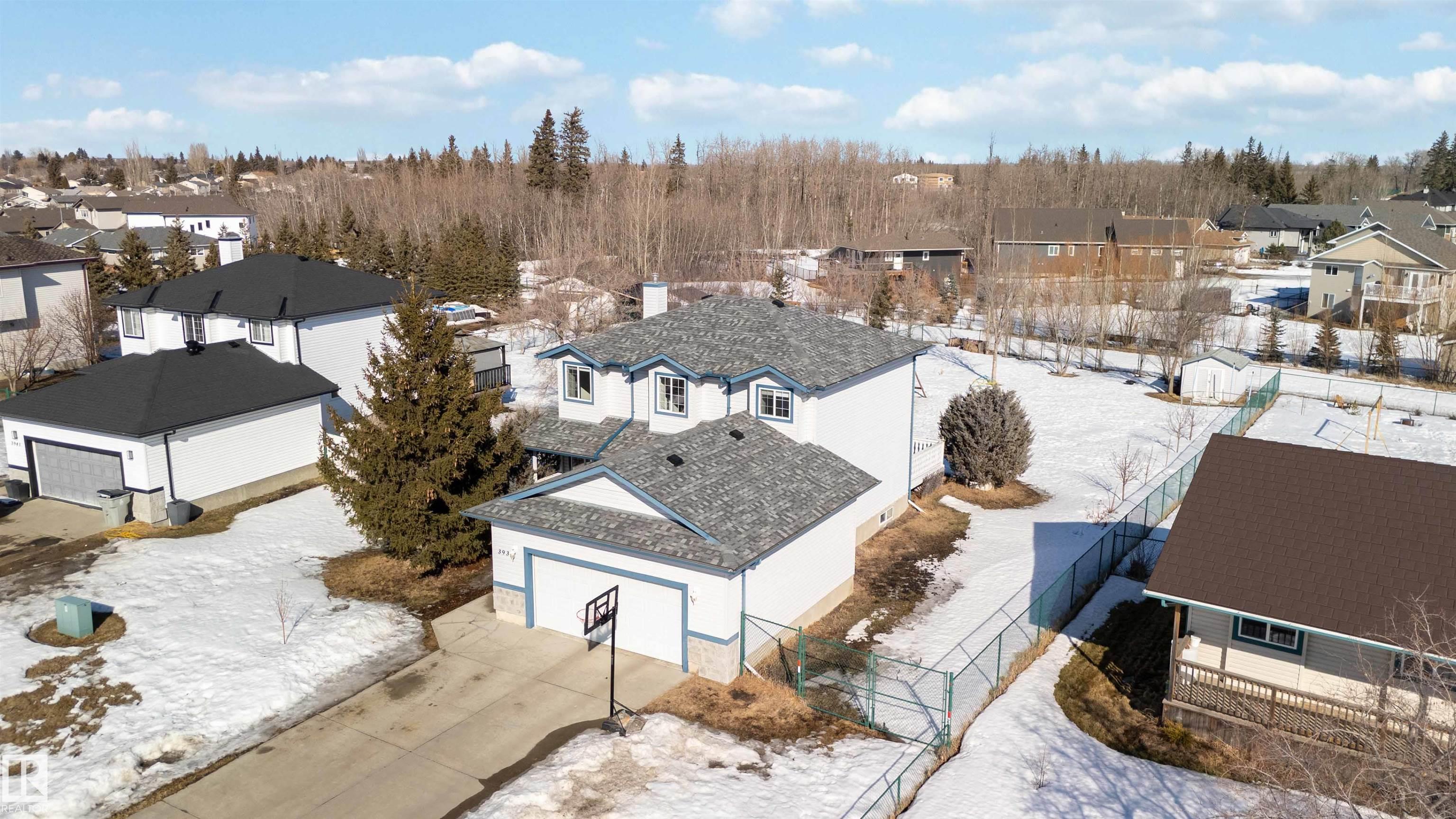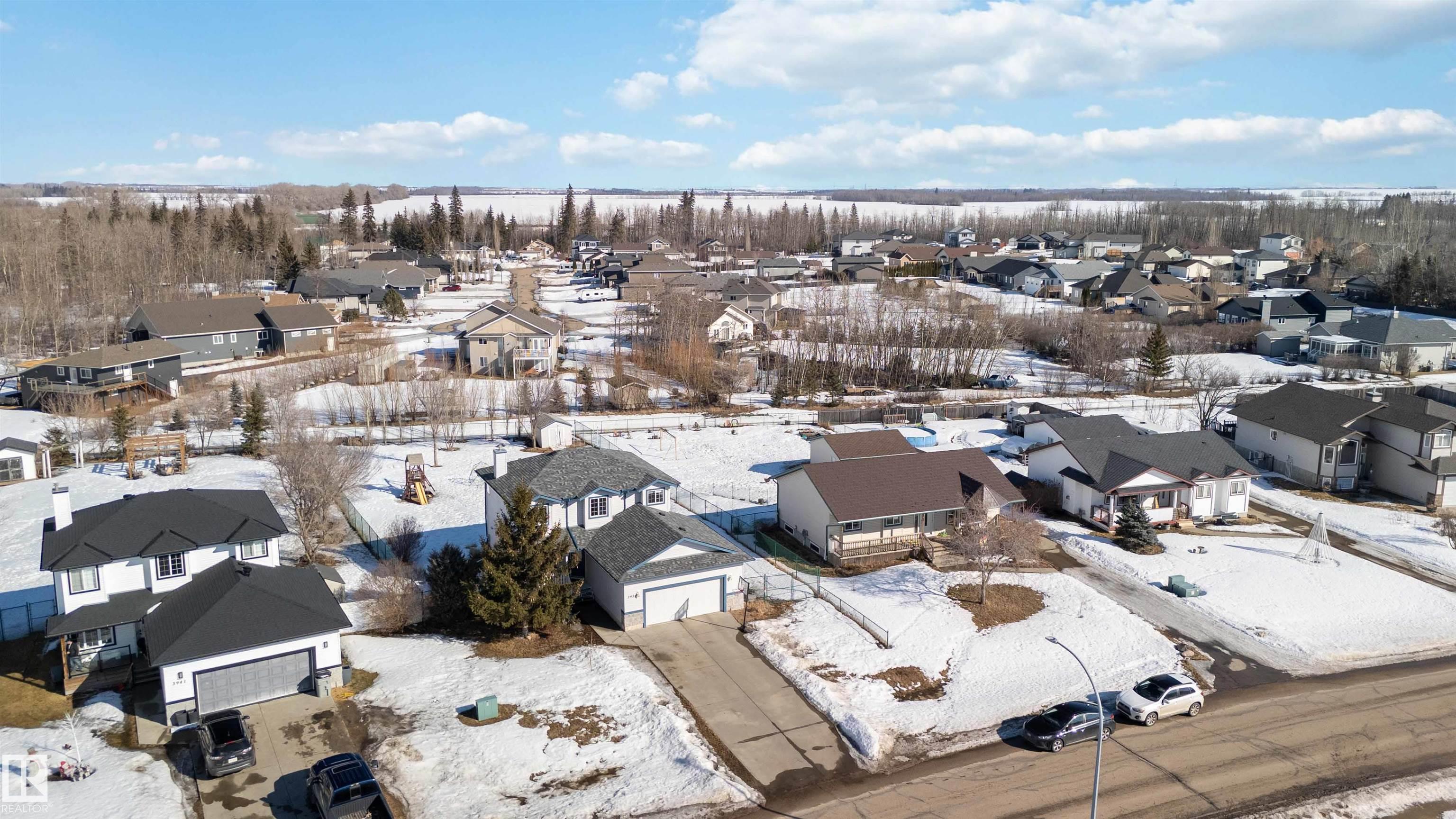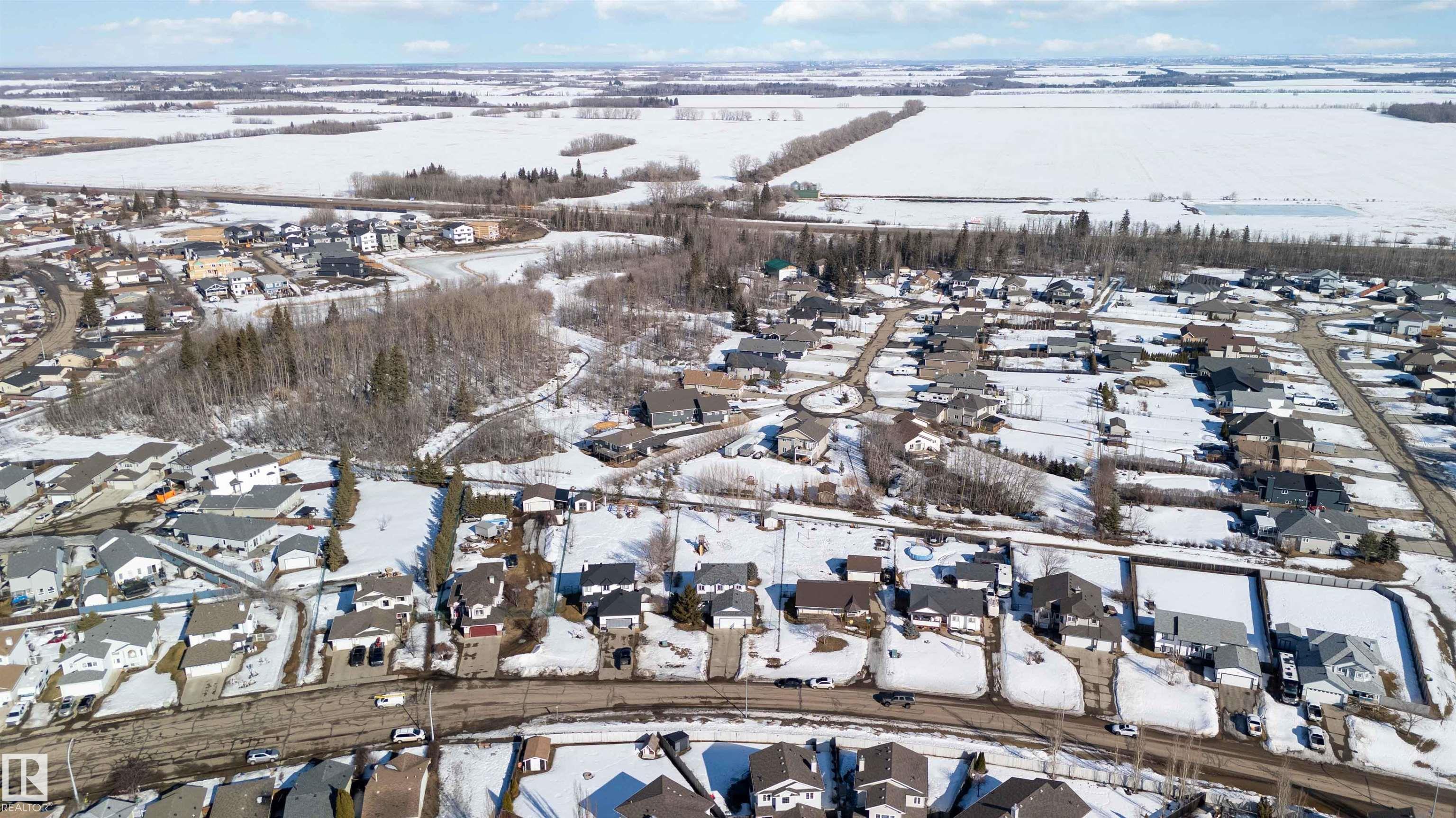 Ever dream of owning a .4-acre lot with the convenience of city water? This solid 2004-built, 1,816 sq. ft. two-storey home offers the perfect balance of massive outdoor space for the kids to play without the high maintenance of full acreage living. Featuring 5 bedrooms, two main-floor living rooms, and a fully developed basement with an additional rec room, there is space for everyone. The home is topped with a new roof (2024) and features a bright, west-facing layout. Outside, you?ll find a large garden, numerous fruit trees, a shed, and a deck with a gas BBQ hookup. The property includes a double attached garage and ample parking for an RV. Perfectly situated for convenience, you are walking distance to the elementary school and just 15 minutes from CFB Edmonton. This is a rare opportunity to secure a spacious family home on a prime, oversized lot.
