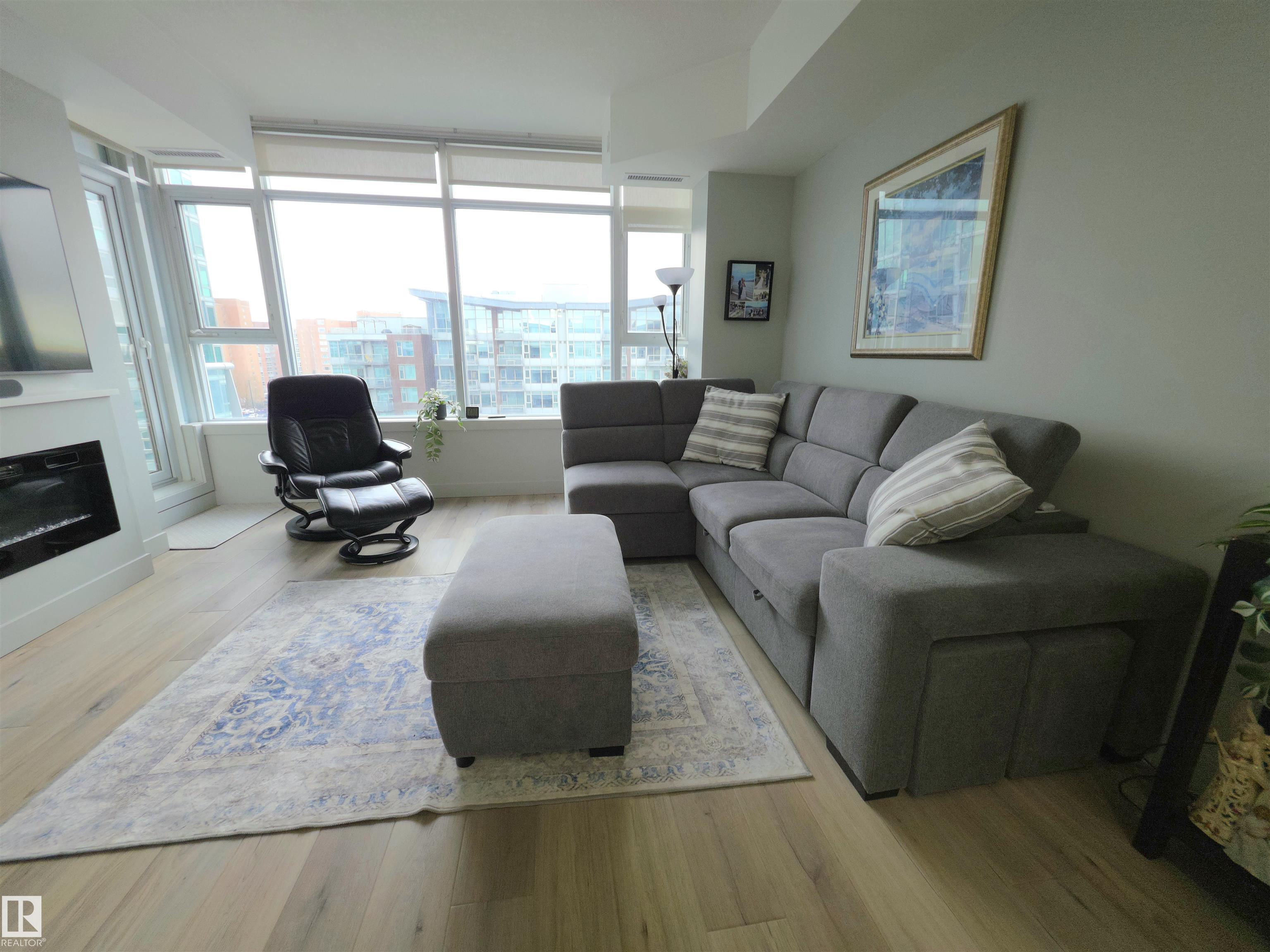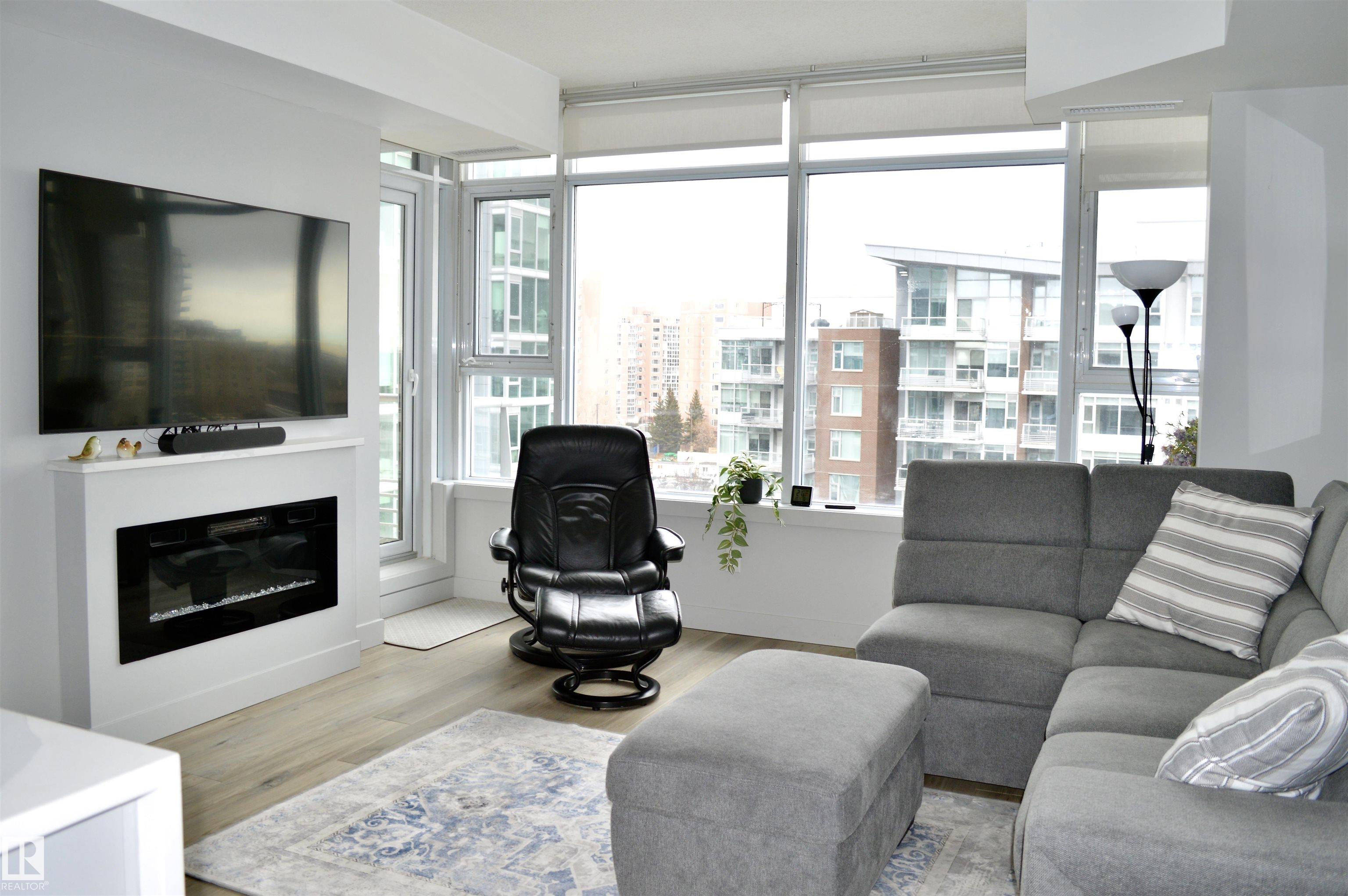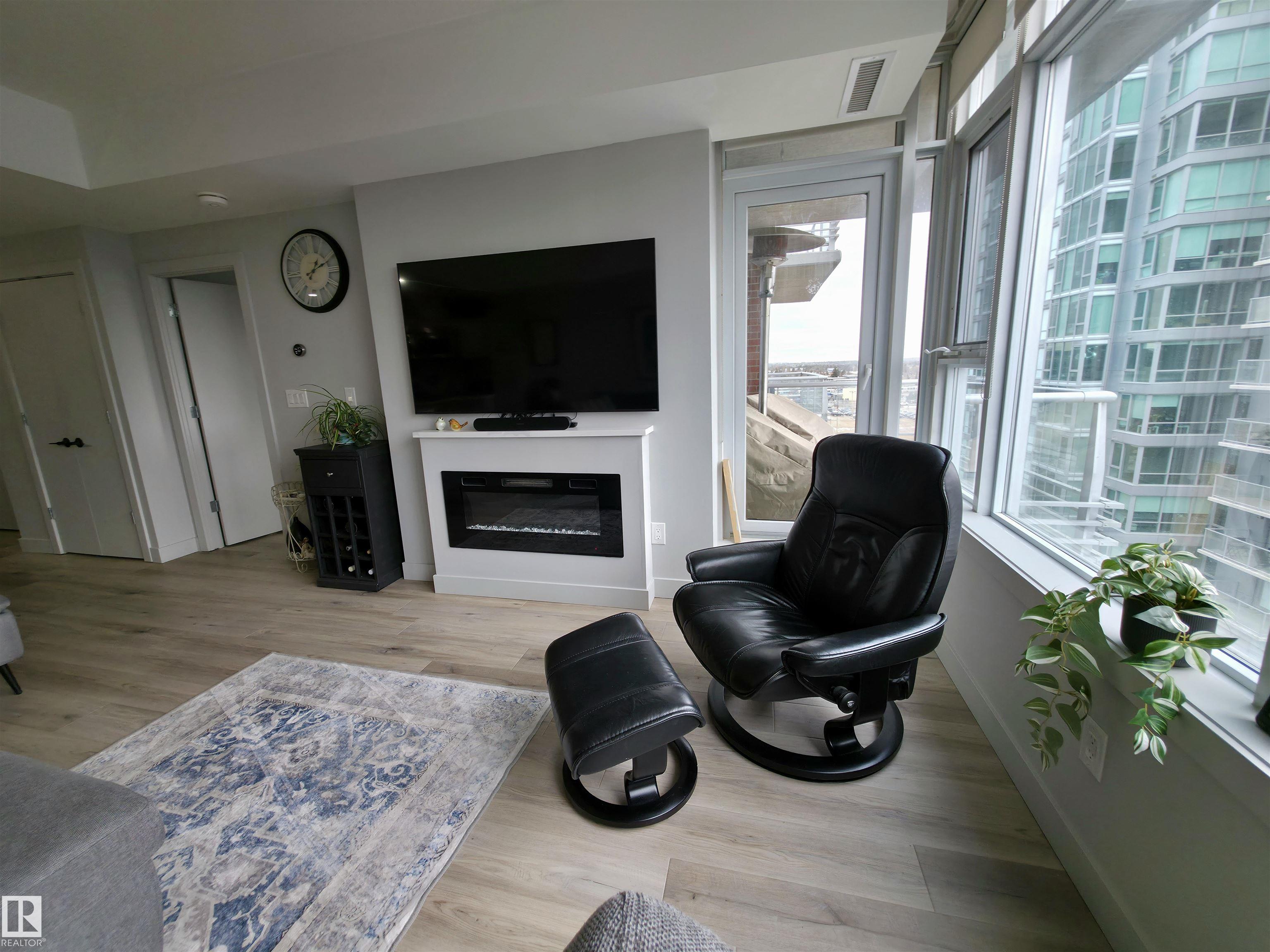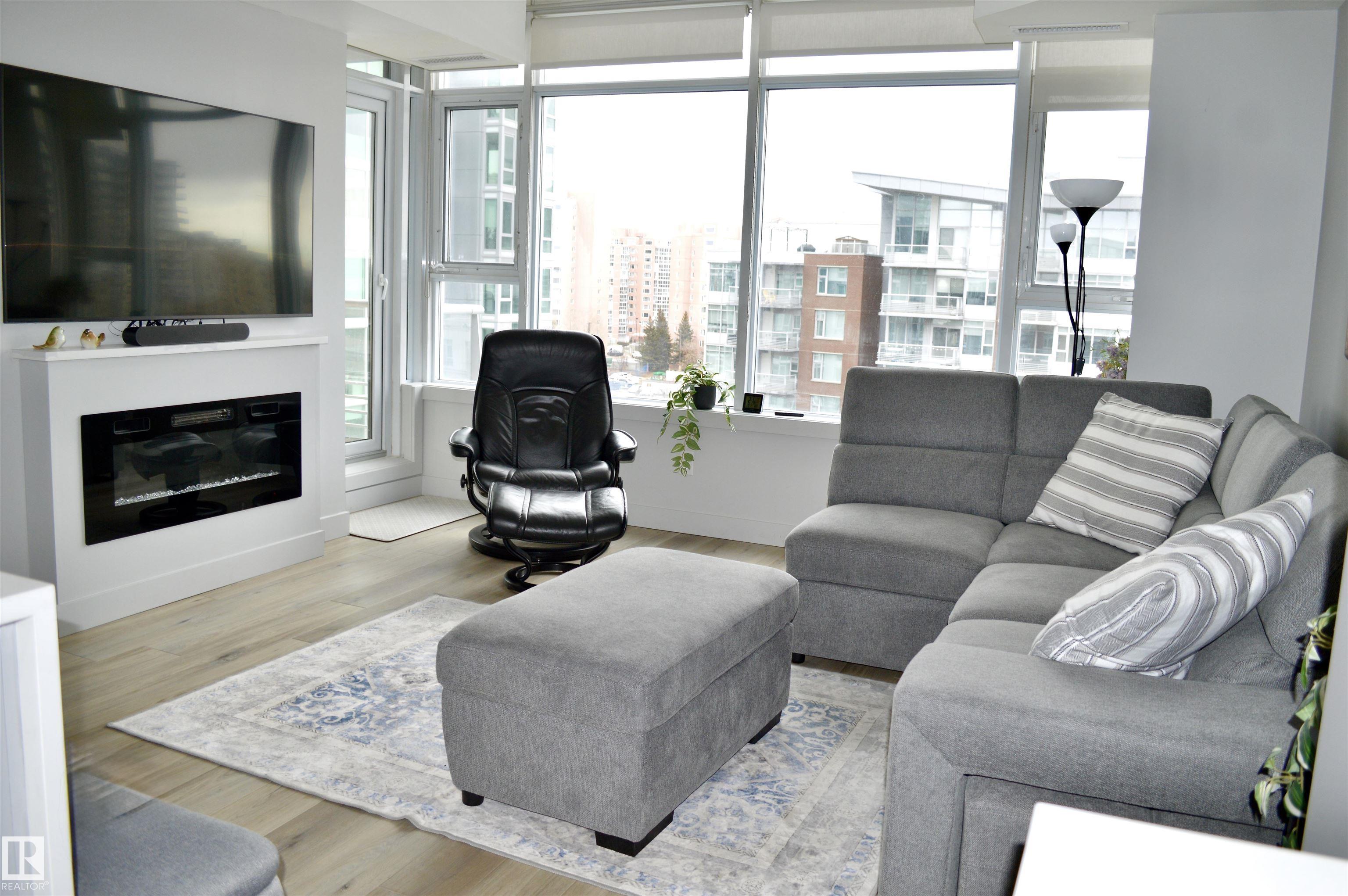High up on the 7th FLOOR OVERLOOKING POND! ONLY 5 MINUTE WALK TO CENTURY PARK LRT STATION! PET FRIENDLY! You will love the bright/open floor plan featuring brand new flooring and kitchen with loads of new custom cabinetry and countertops. The open concept kitchen/dining/family room has large windows providing plenty of natural light. Loads of room for curling up around the fireplace! Generously sized primary suite with walk-in closet & 4 piece ensuite is your private oasis after a busy day! In-suite laundry & central AC included. Easy access to the HEATED UNDERGROUND titled parking AND storage unit! Complex also features a clean gym facility. Prime location within walking distance to Safeway, Starbucks, Shoppers Drug Mart, restaurants and more! **CONDO FEES OF $687.11 INCLUDE HEAT, WATER, POWER & INTERNET!** Welcome home!