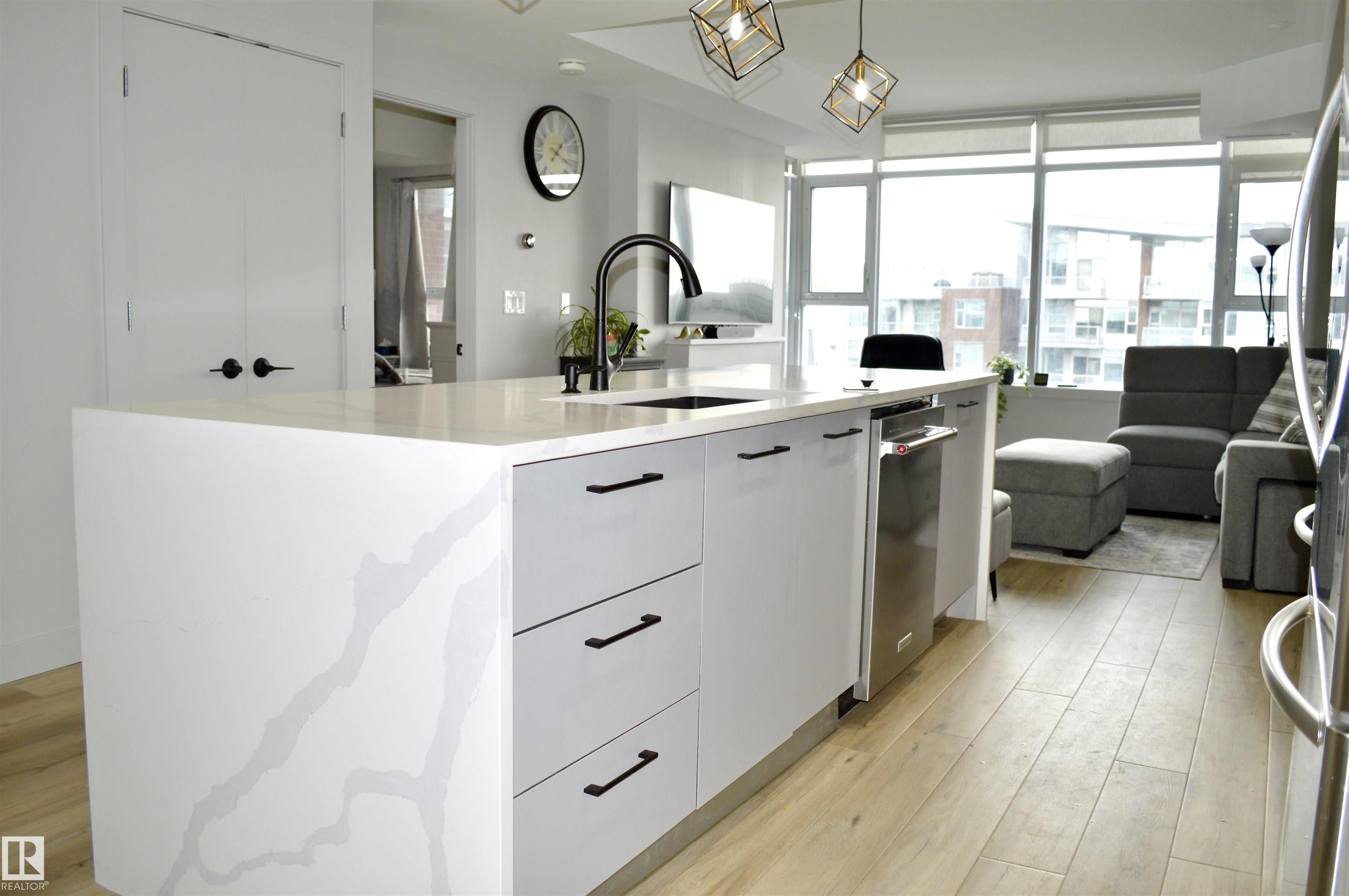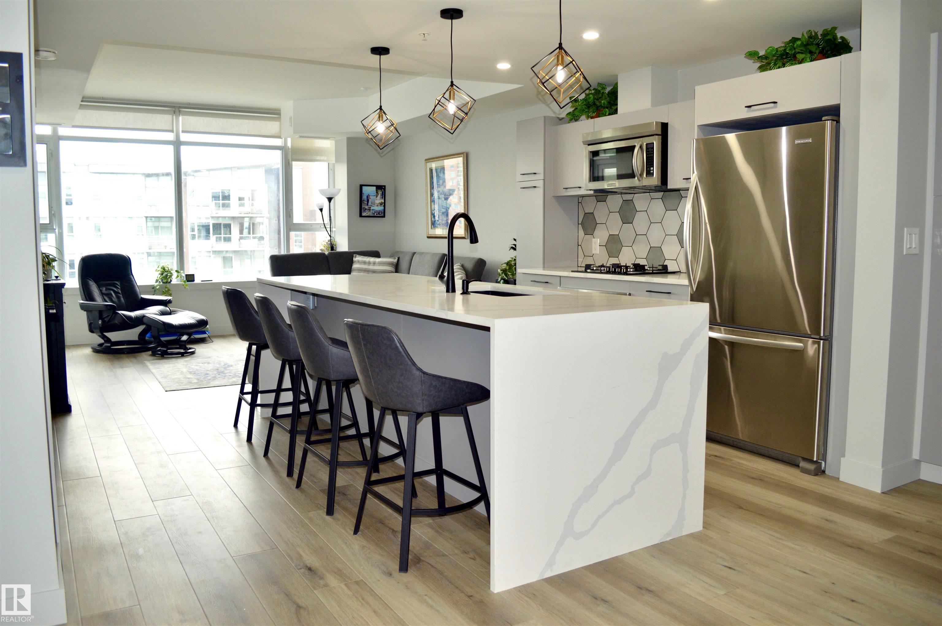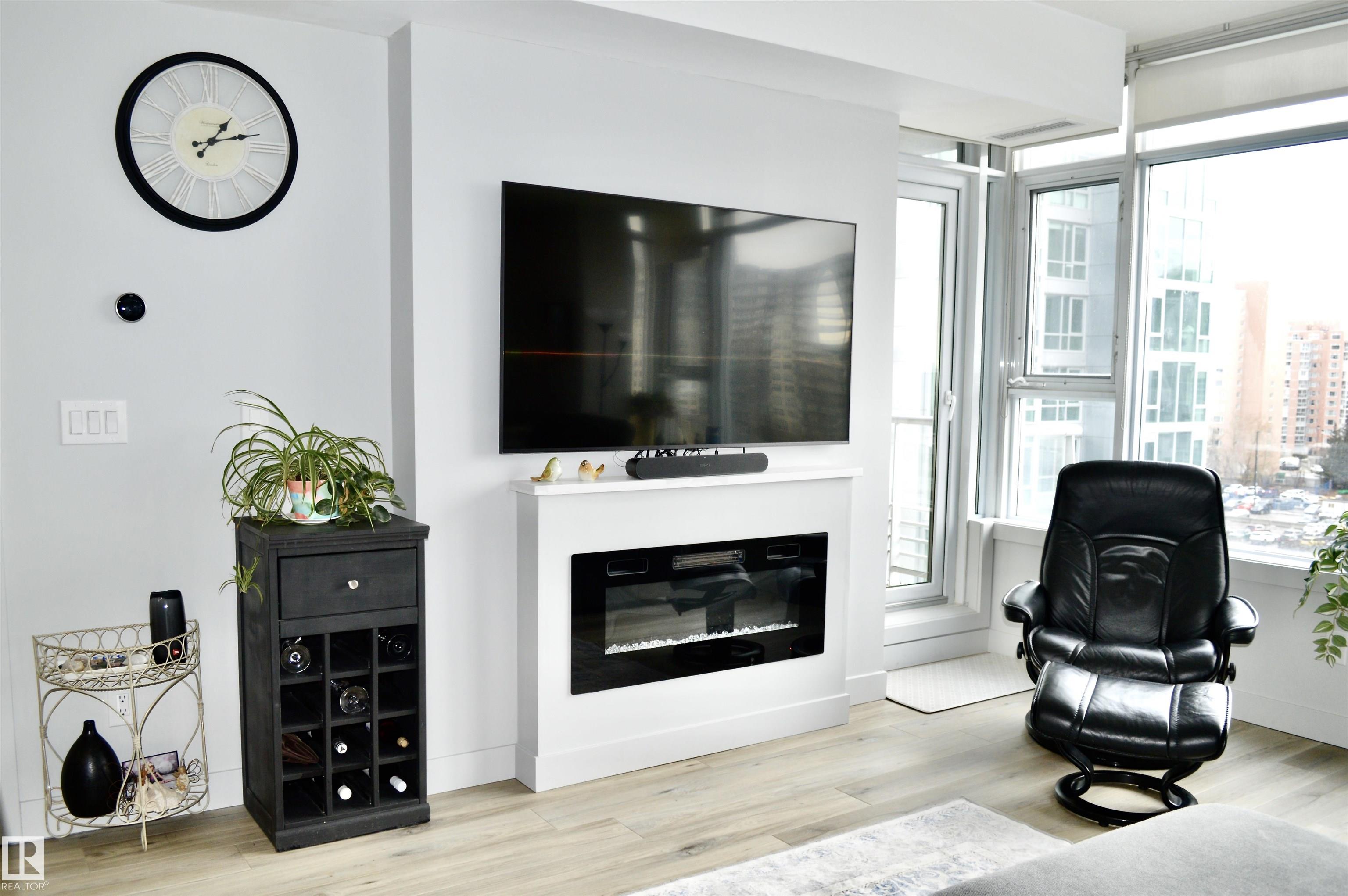 High up on the 7th FLOOR OVERLOOKING POND! ONLY 5 MINUTE WALK TO CENTURY PARK LRT STATION! PET FRIENDLY! You will love the bright/open floor plan featuring brand new flooring and kitchen with loads of new custom cabinetry and countertops. The open concept kitchen/dining/family room has large windows providing plenty of natural light. Loads of room for curling up around the fireplace! Generously sized primary suite with walk-in closet & 4 piece ensuite is your private oasis after a busy day! In-suite laundry & central AC included. Easy access to the HEATED UNDERGROUND titled parking AND storage unit! Complex also features a clean gym facility. Prime location within walking distance to Safeway, Starbucks, Shoppers Drug Mart, restaurants and more! **CONDO FEES OF $687.11 INCLUDE HEAT, WATER, POWER & INTERNET!** Welcome home!