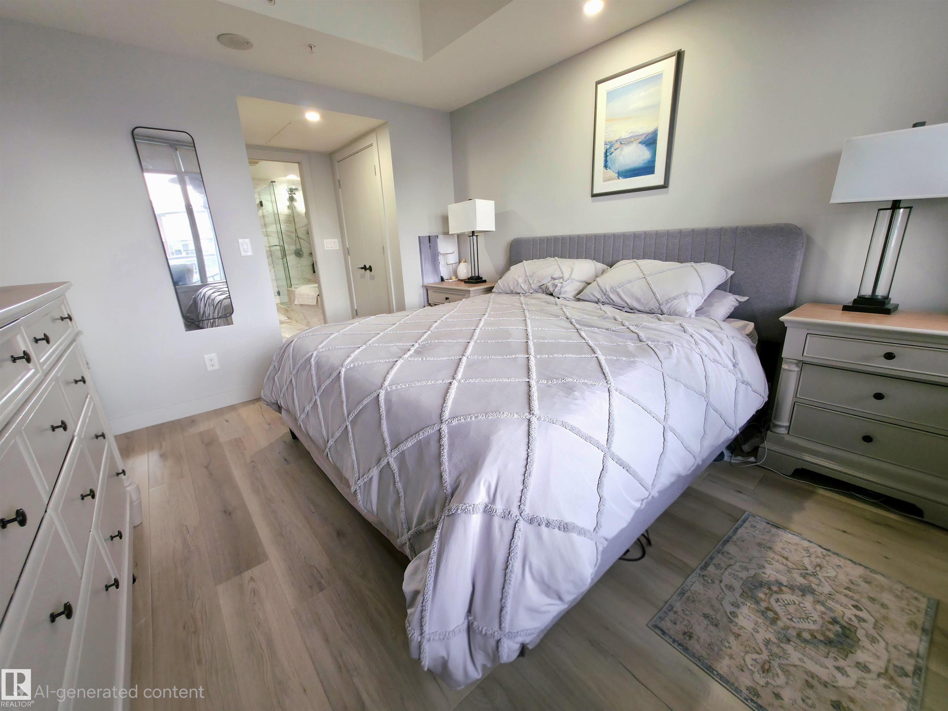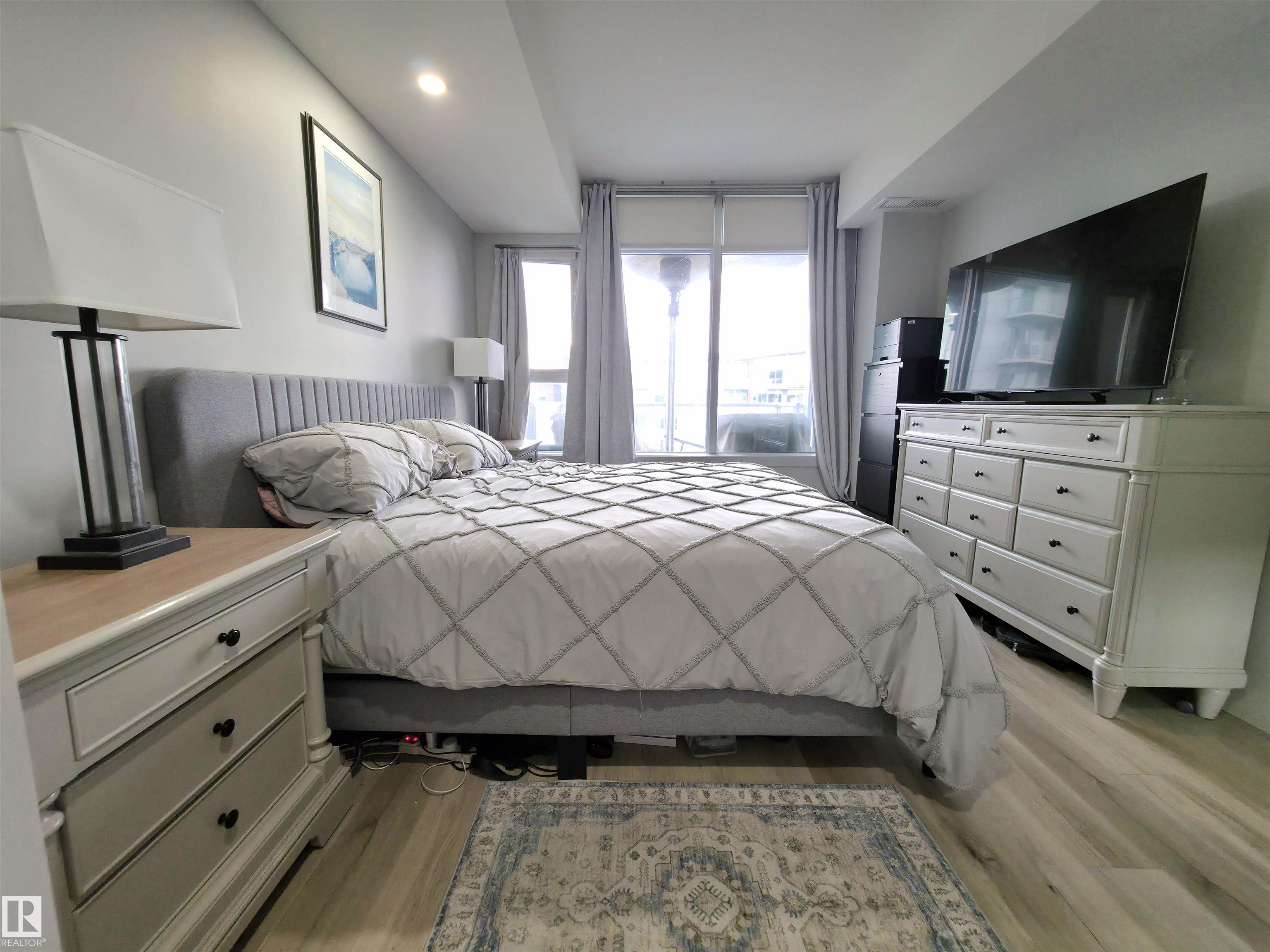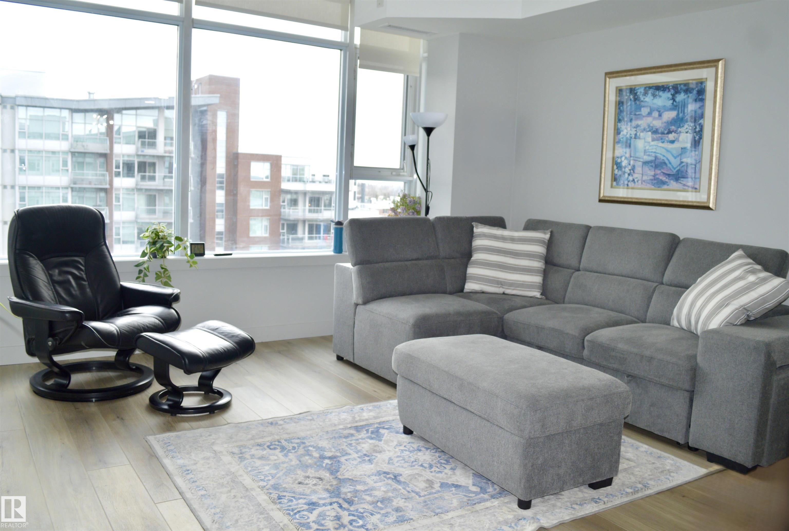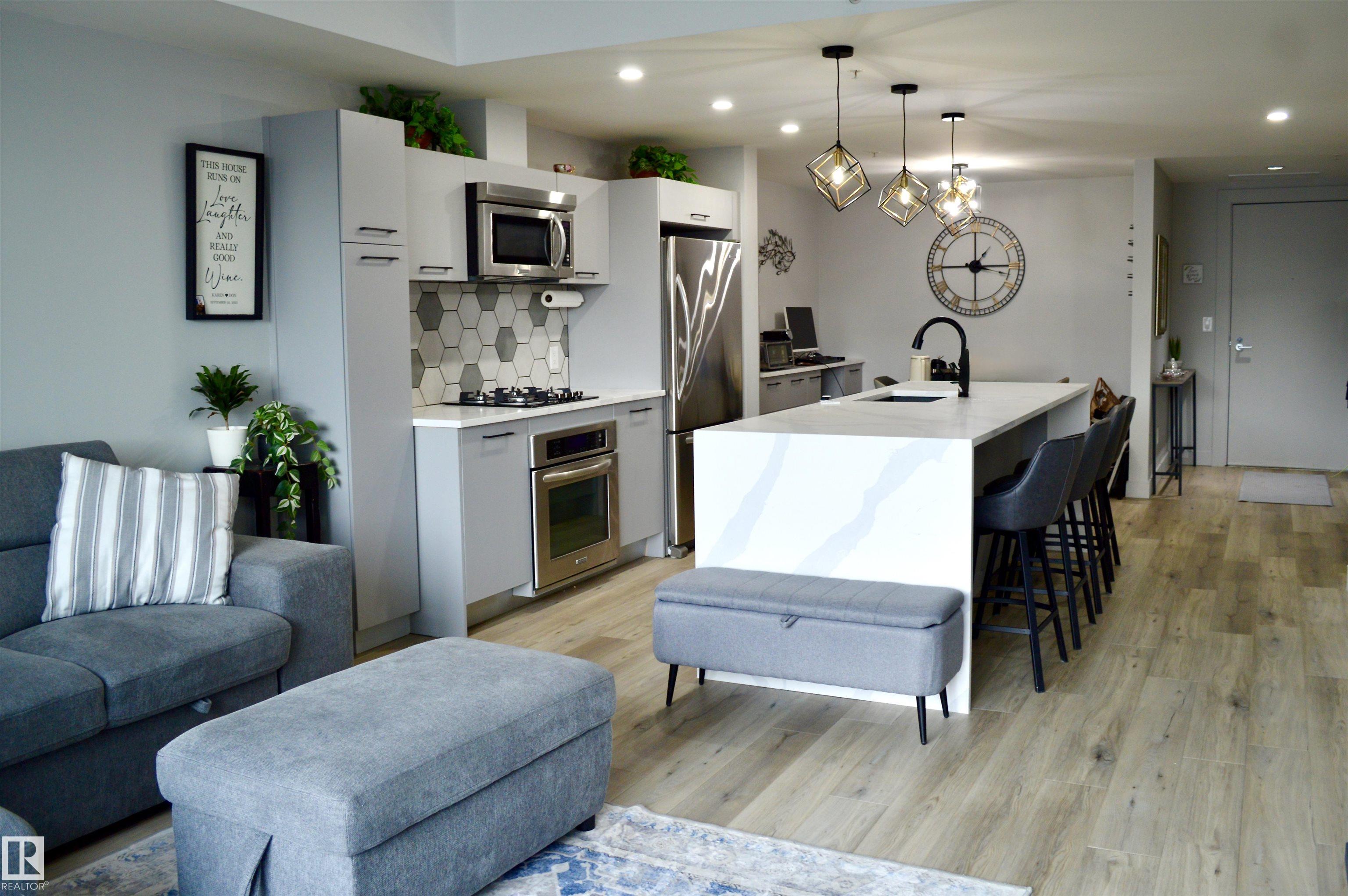 High up on the 7th FLOOR OVERLOOKING POND! ONLY 5 MINUTE WALK TO CENTURY PARK LRT STATION! PET FRIENDLY! You will love the bright/open floor plan featuring brand new flooring and kitchen with loads of new custom cabinetry and countertops. The open concept kitchen/dining/family room has large windows providing plenty of natural light. Loads of room for curling up around the fireplace! Generously sized primary suite with walk-in closet & 4 piece ensuite is your private oasis after a busy day! In-suite laundry & central AC included. Easy access to the HEATED UNDERGROUND titled parking AND storage unit! Complex also features a clean gym facility. Prime location within walking distance to Safeway, Starbucks, Shoppers Drug Mart, restaurants and more! **CONDO FEES OF $687.11 INCLUDE HEAT, WATER, POWER & INTERNET!** Welcome home!