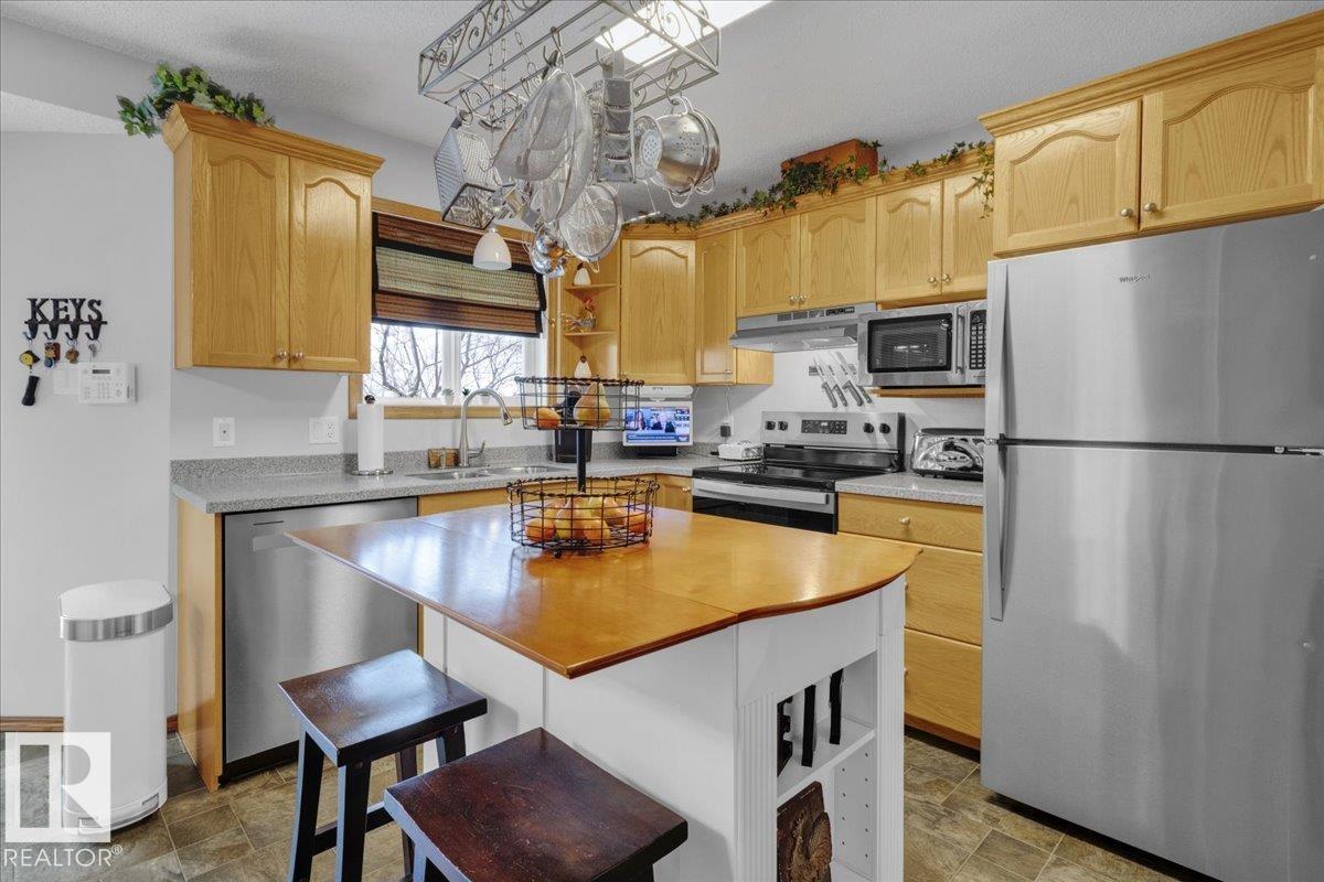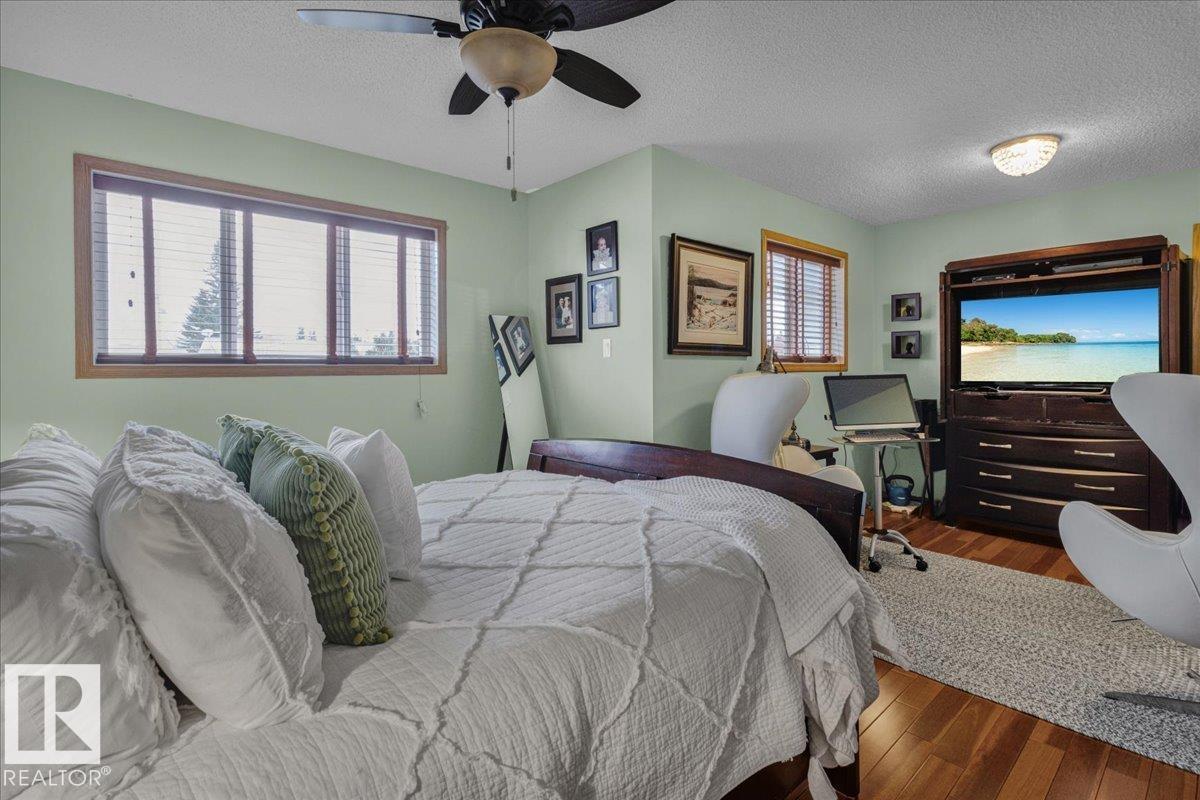 Welcome to this beautifully maintained 4-bedroom, 2 bathroom bungalow in a quiet small-town neighborhood. This fully finished home features stunning hardwood and tile floors with a spacious layout. The kitchen boasts elegant oak cabinets, island, new appliances and large dining area. The master suite and 2nd bdrm are both very spacious, plenty of room for larger bedroom suites. The fully finished basement offers 2 additional bdrms and large family room and 3 pc bath. The double detached garage provides ample space for vehicles and storage. Back alley access, perfect for parking toys and trailers. Enjoy the privacy of a fenced yard, perfect for outdoor relaxation or entertaining. Well cared for and nicely finished, this home offers the ideal blend of comfort and style. Located in a peaceful, family-friendly area, close to parks, it's the perfect place to call home. Don?t miss out on this gem!