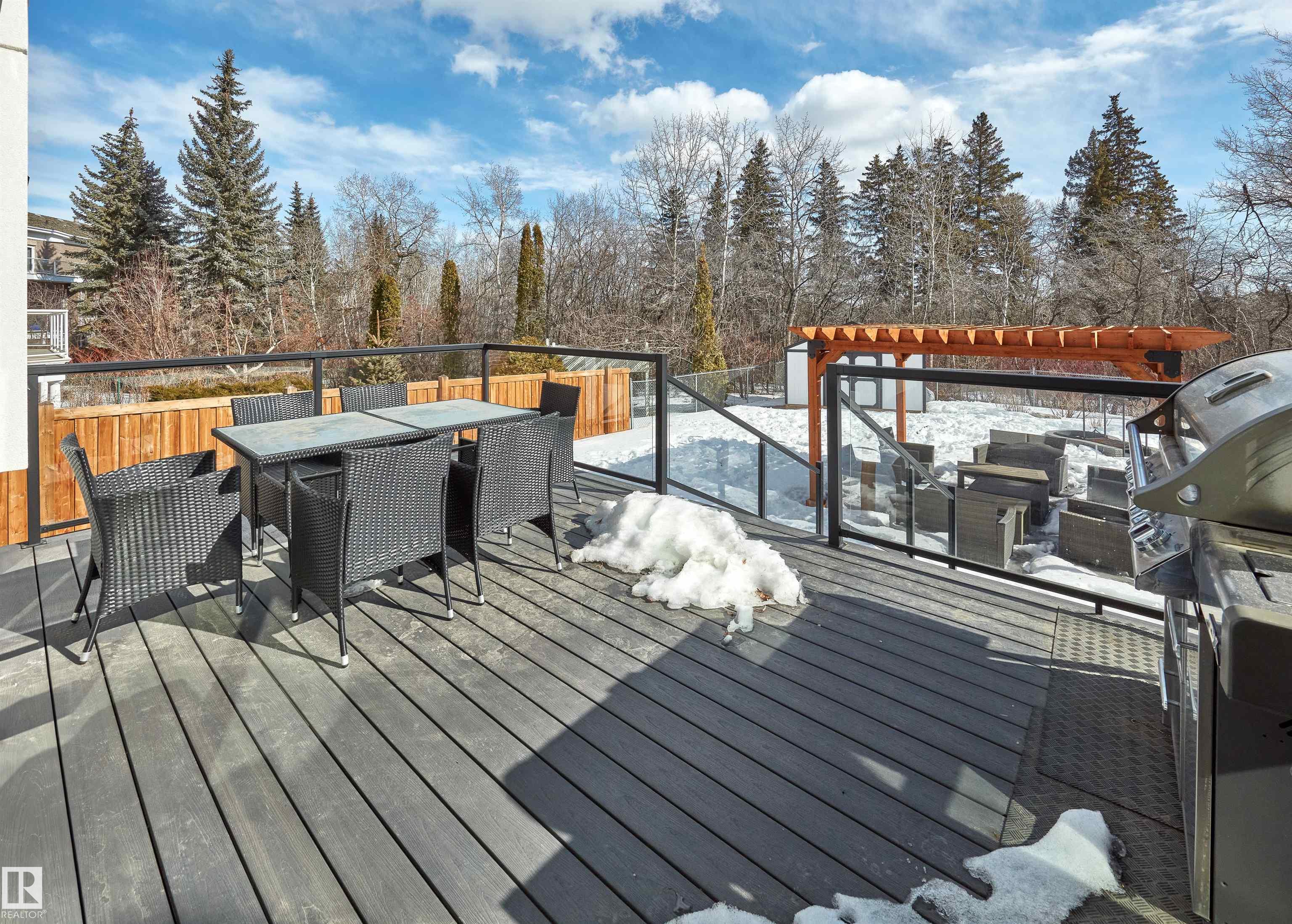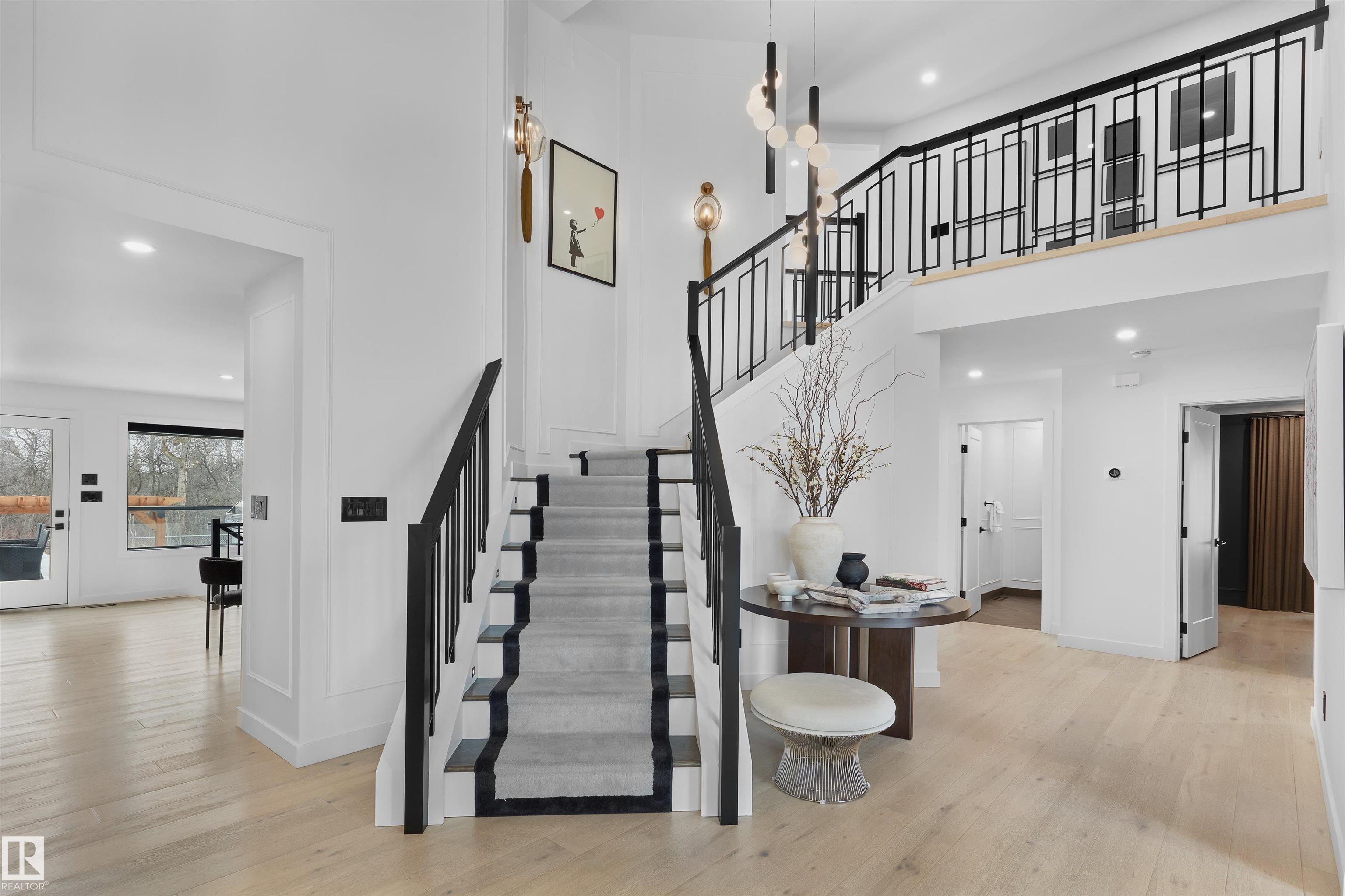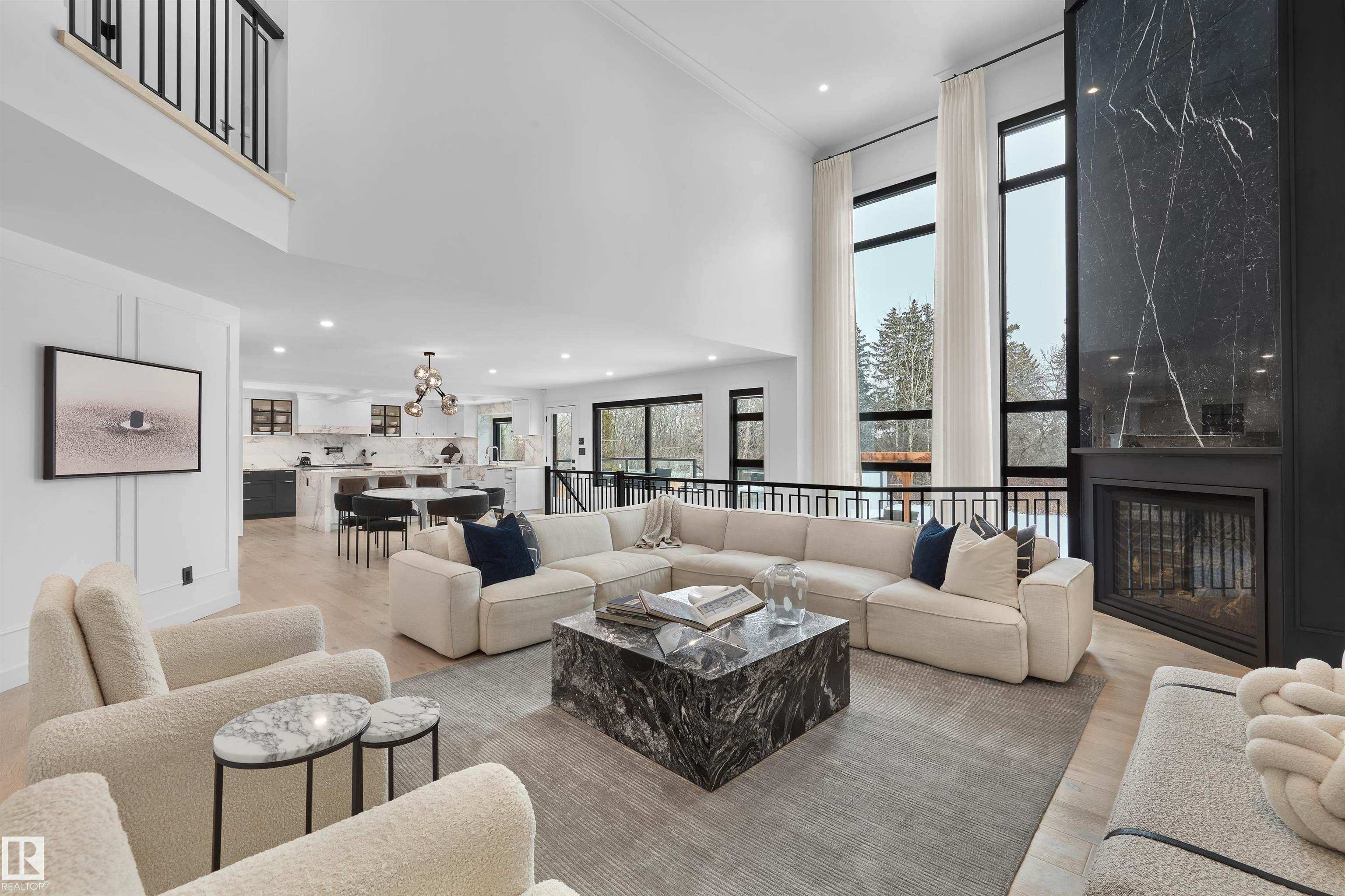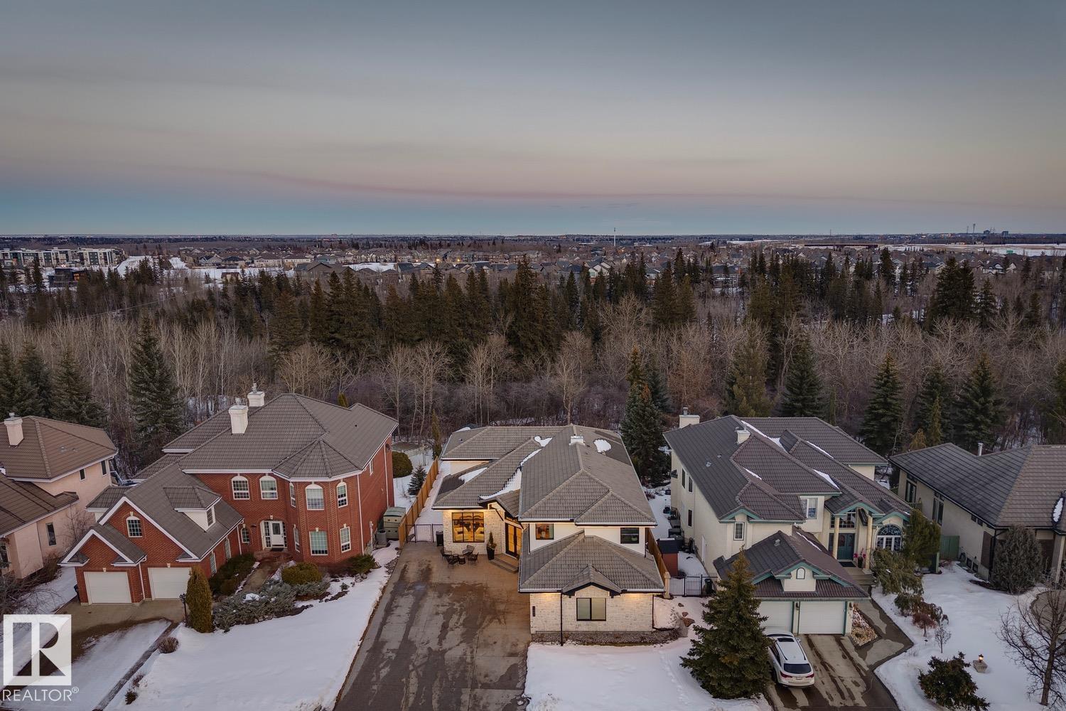 Exclusively designed by Kyle & Co, this exceptional residence is located on a quiet street in prestigious Wedgewood, backing directly onto the scenic Wedgewood Ravine (10,918sqft lot). Offering 5,745sqft of developed living space ? 4 beds up + 1 down ? 4.5 baths, this home blends timeless design with modern luxury. The impressive interior features soaring 20-ft ceilings, expansive living spaces filled with natural light & a thoughtfully designed layout. The chef?s kitchen is equipped with premium Sub-Zero & Miele appliances, perfect for both everyday living & entertaining. Designed with comfort & wellness in mind, the home includes a private infrared sauna & fully equipped home gym. Major electrical, plumbing & mechanical systems have been updated, providing peace of mind for years to come. Outside, enjoy professionally landscaped grounds & direct access to the ravine?s natural beauty. A heated driveway leads to the triple attached garage, offering convenience during Edmonton winters.