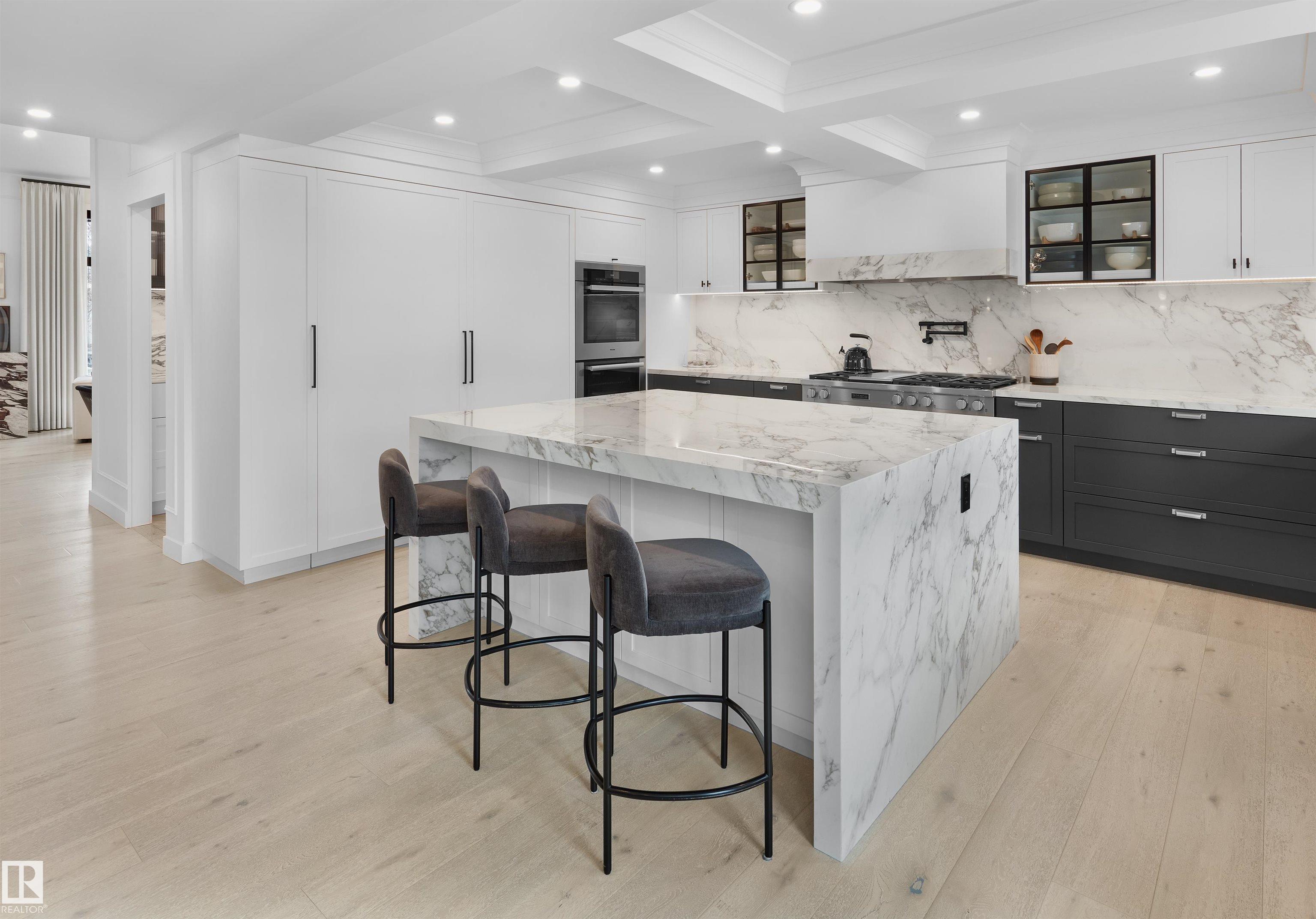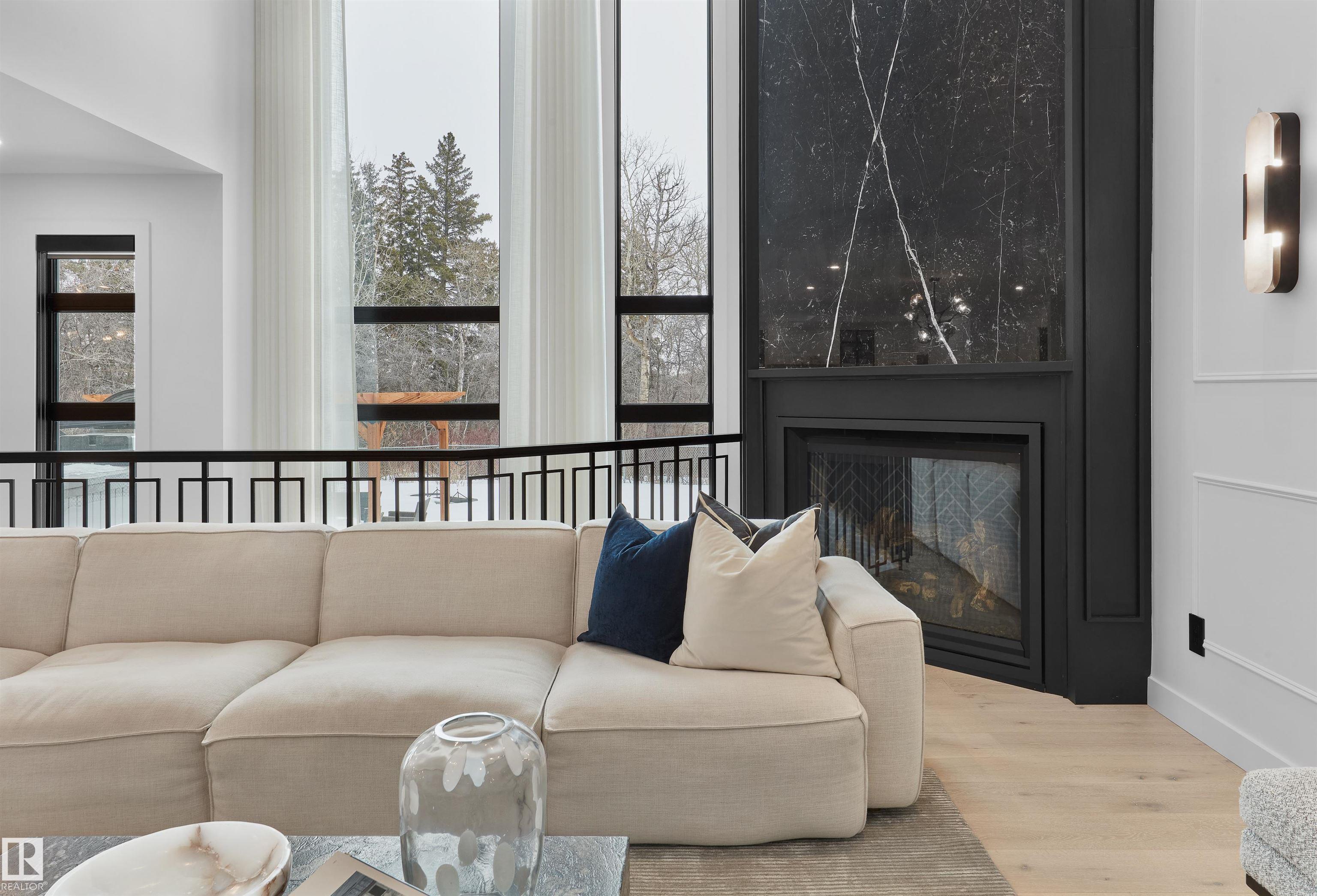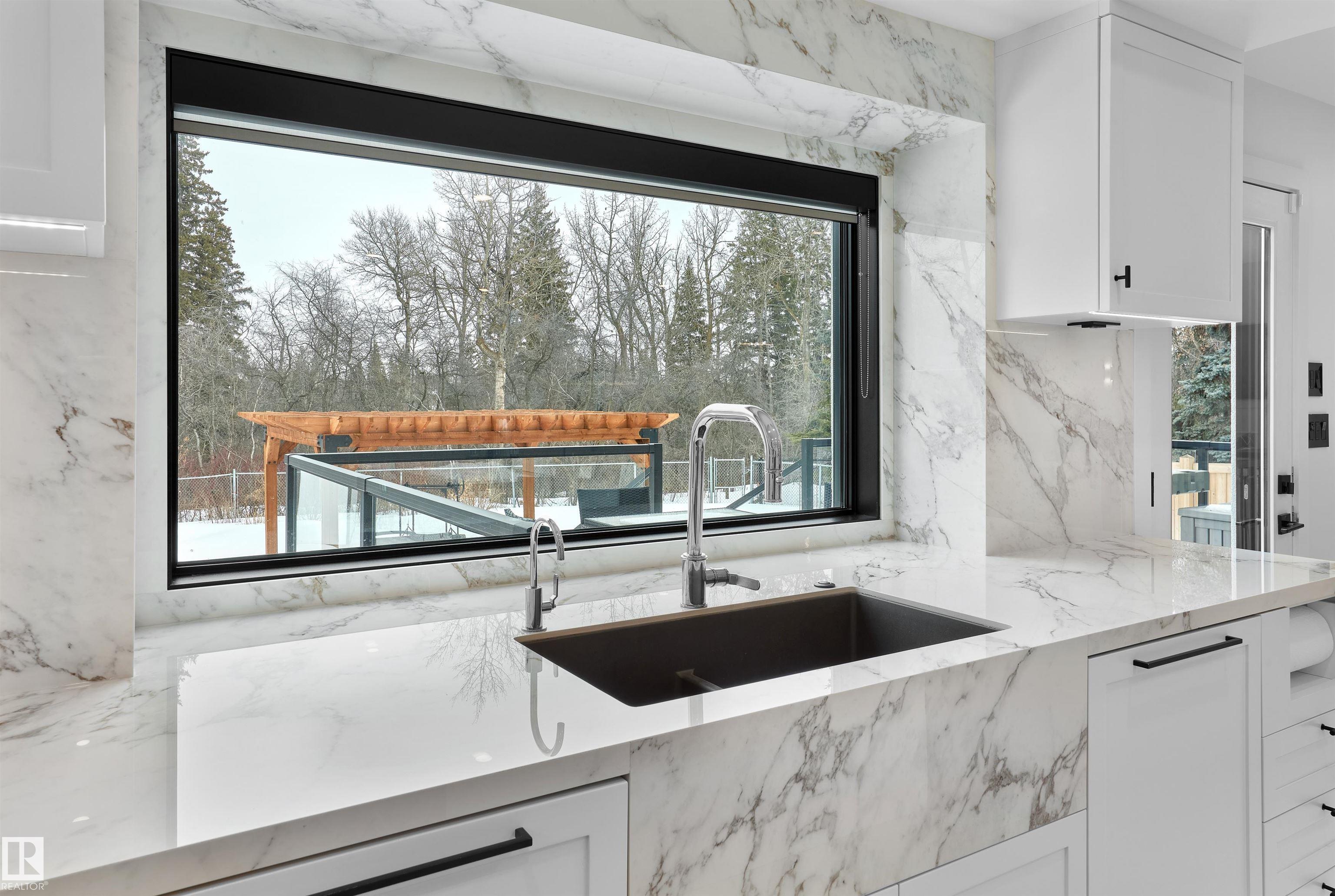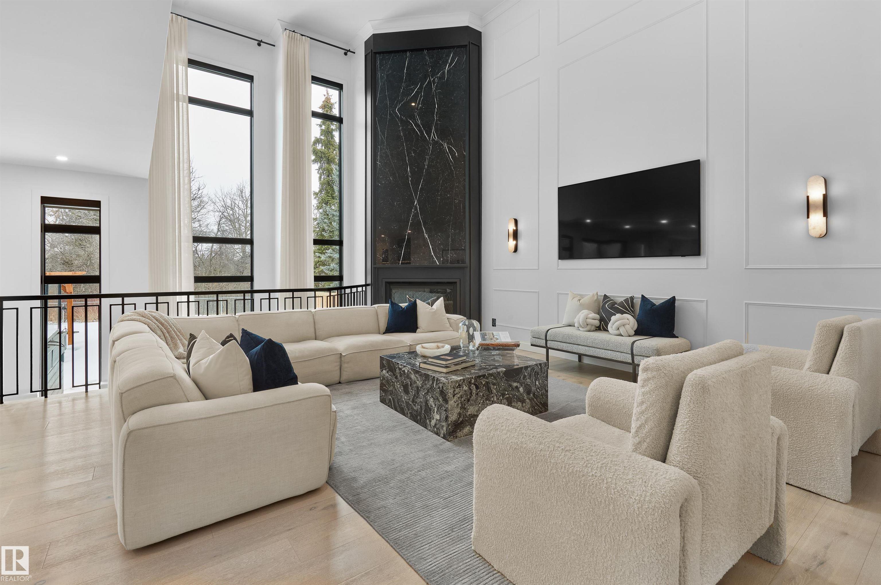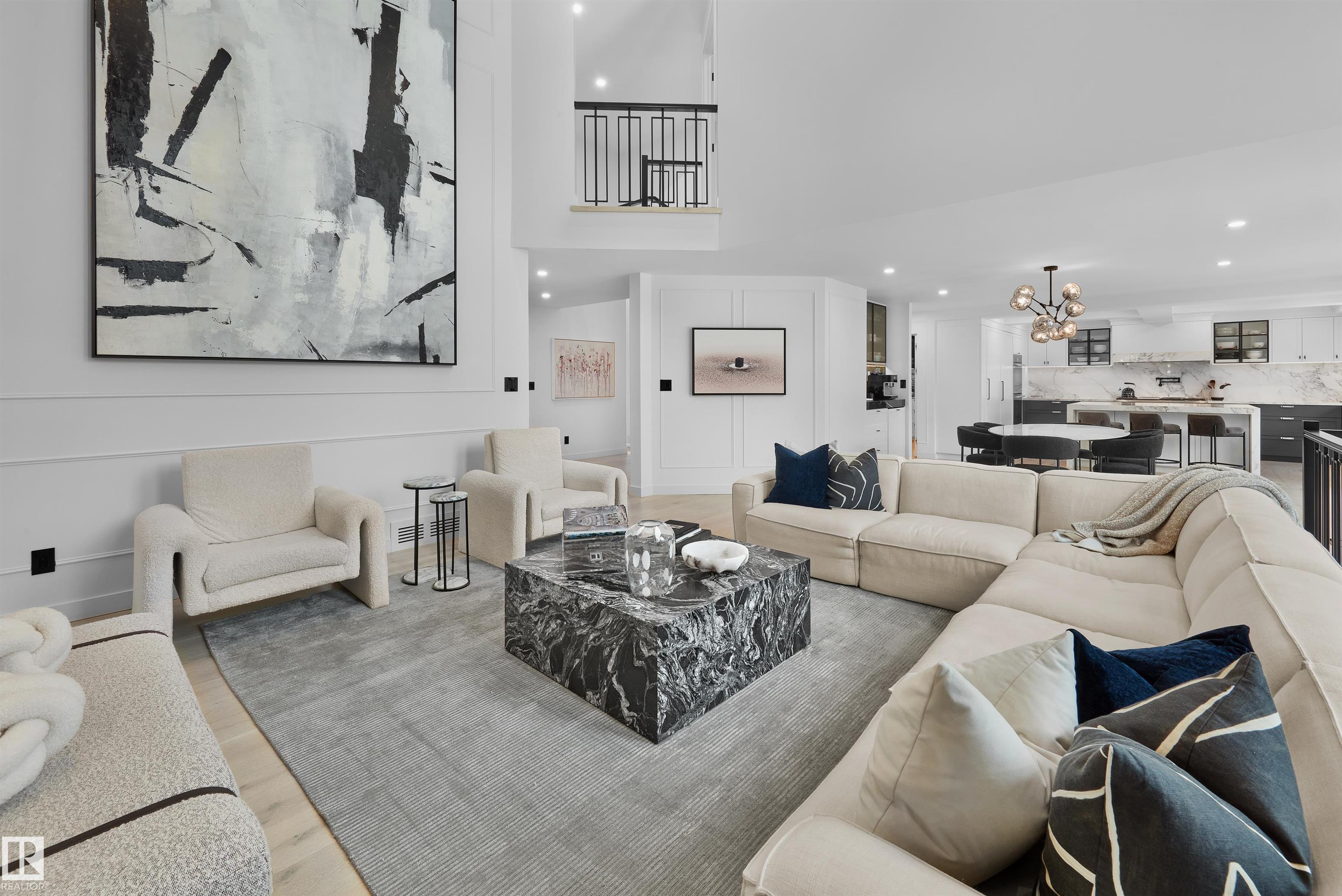Exclusively designed by Kyle & Co, this exceptional residence is located on a quiet street in prestigious Wedgewood, backing directly onto the scenic Wedgewood Ravine (10,918sqft lot). Offering 5,745sqft of developed living space ? 4 beds up + 1 down ? 4.5 baths, this home blends timeless design with modern luxury. The impressive interior features soaring 20-ft ceilings, expansive living spaces filled with natural light & a thoughtfully designed layout. The chef?s kitchen is equipped with premium Sub-Zero & Miele appliances, perfect for both everyday living & entertaining. Designed with comfort & wellness in mind, the home includes a private infrared sauna & fully equipped home gym. Major electrical, plumbing & mechanical systems have been updated, providing peace of mind for years to come. Outside, enjoy professionally landscaped grounds & direct access to the ravine?s natural beauty. A heated driveway leads to the triple attached garage, offering convenience during Edmonton winters.