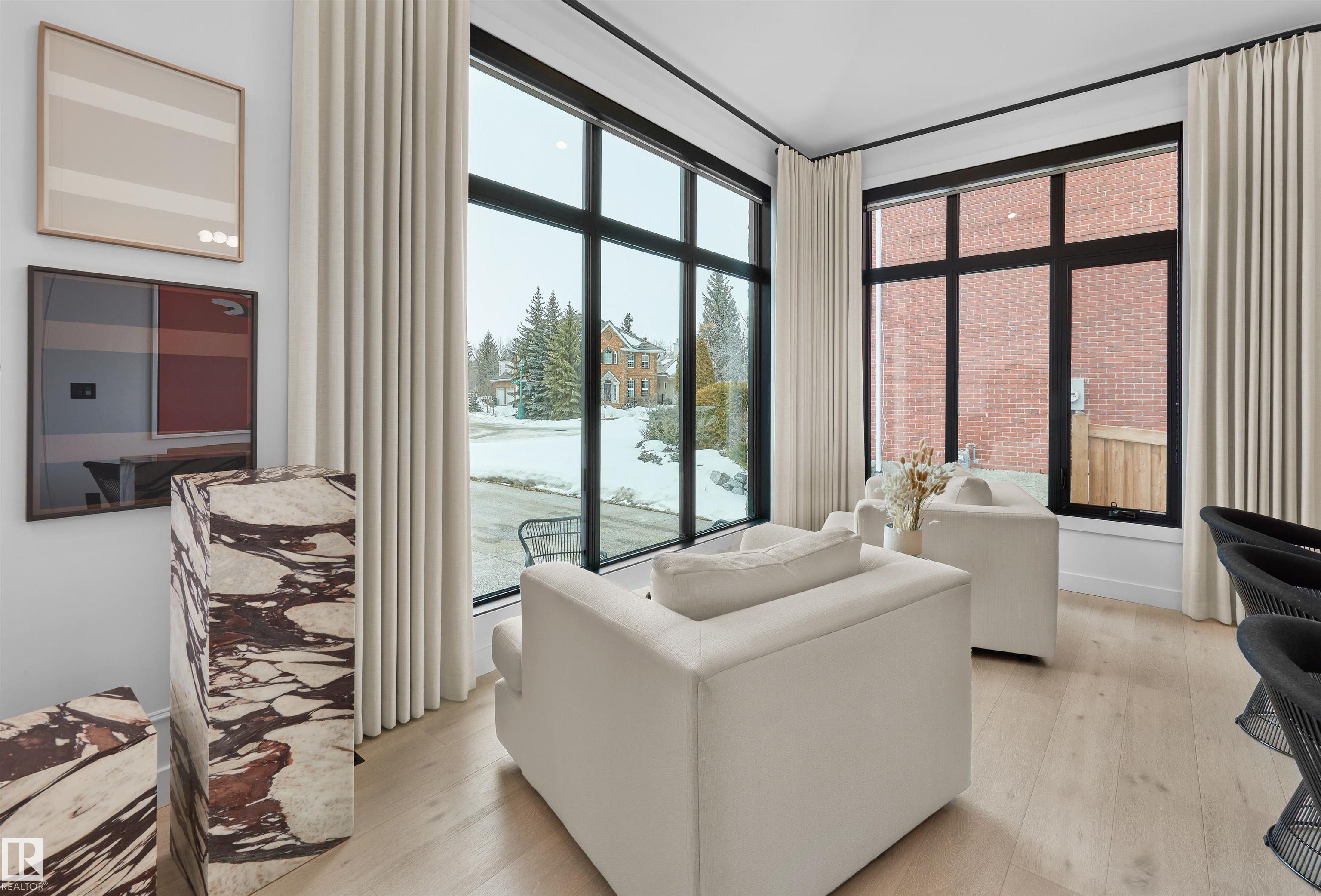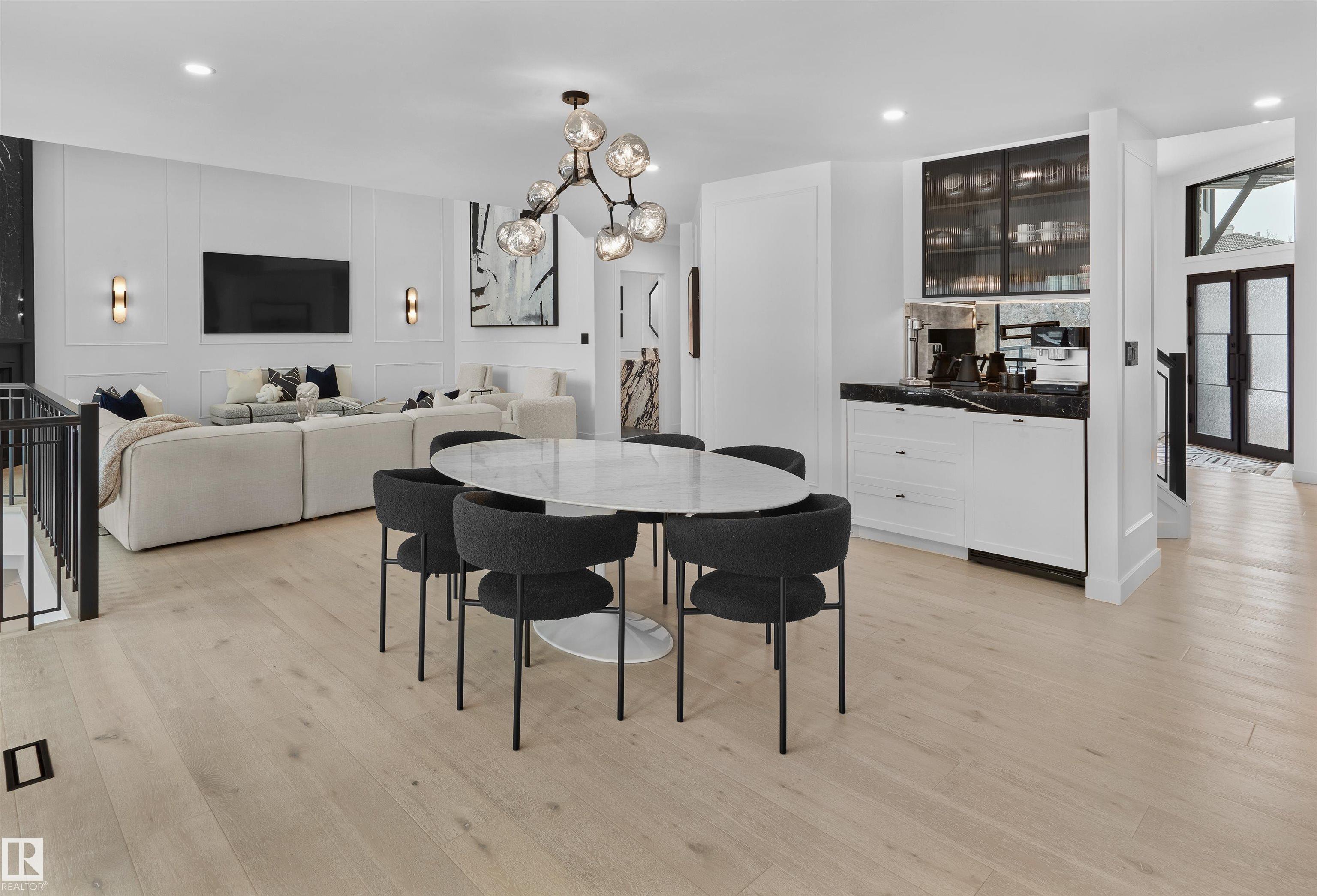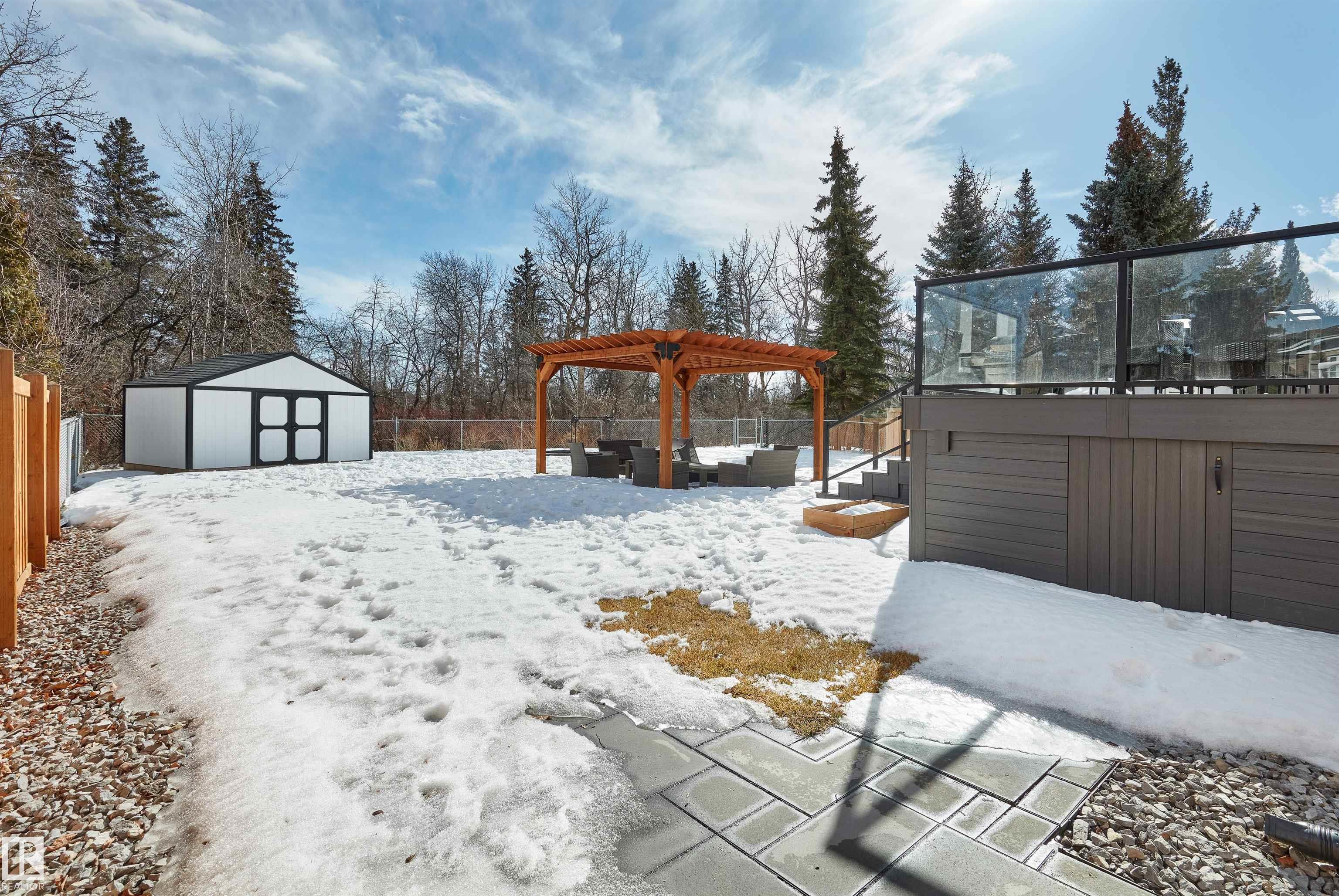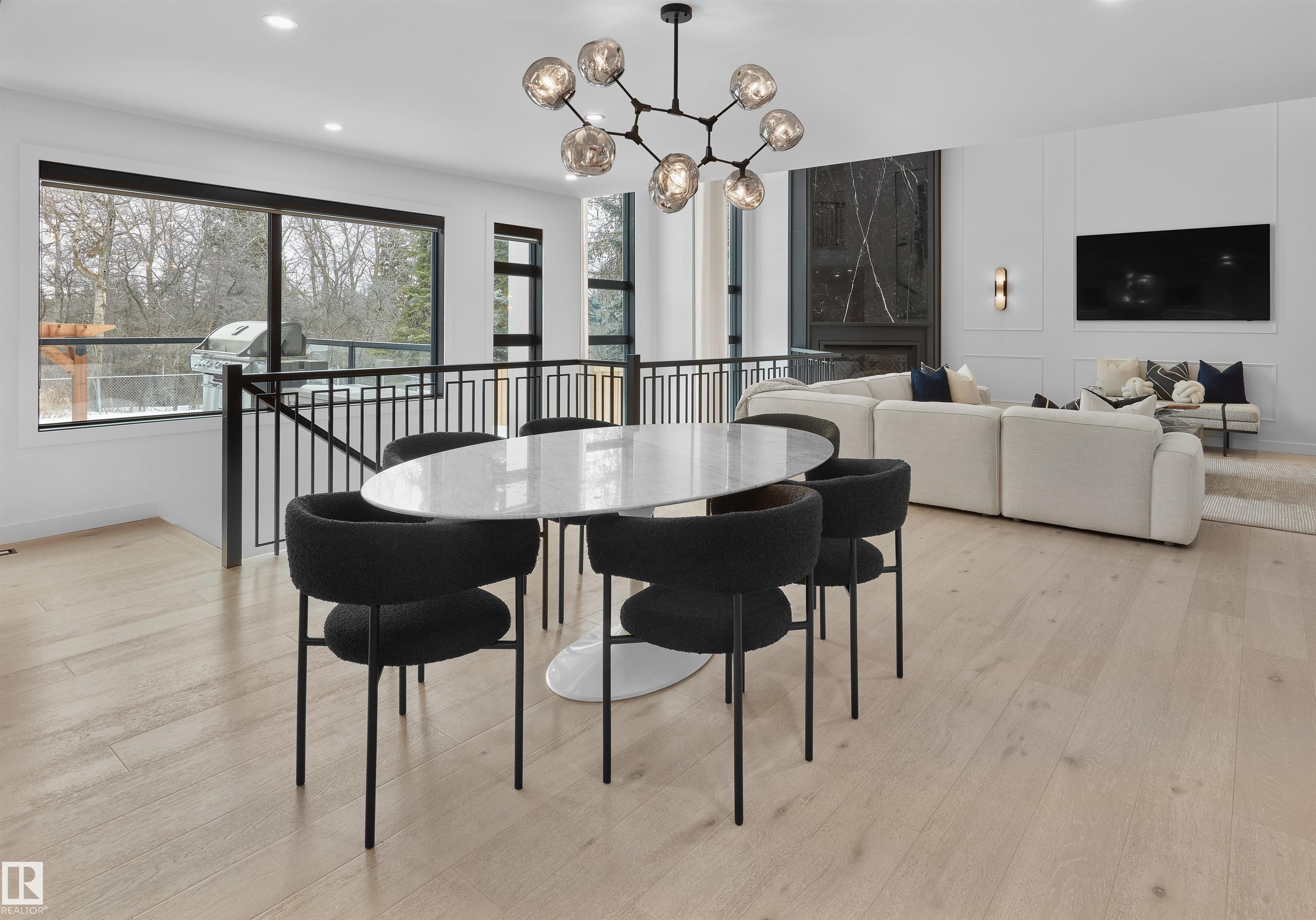Exclusively designed by Kyle & Co, this exceptional residence is located on a quiet street in prestigious Wedgewood, backing directly onto the scenic Wedgewood Ravine (10,918sqft lot). Offering 5,745sqft of developed living space ? 4 beds up + 1 down ? 4.5 baths, this home blends timeless design with modern luxury. The impressive interior features soaring 20-ft ceilings, expansive living spaces filled with natural light & a thoughtfully designed layout. The chef?s kitchen is equipped with premium Sub-Zero & Miele appliances, perfect for both everyday living & entertaining. Designed with comfort & wellness in mind, the home includes a private infrared sauna & fully equipped home gym. Major electrical, plumbing & mechanical systems have been updated, providing peace of mind for years to come. Outside, enjoy professionally landscaped grounds & direct access to the ravine?s natural beauty. A heated driveway leads to the triple attached garage, offering convenience during Edmonton winters.