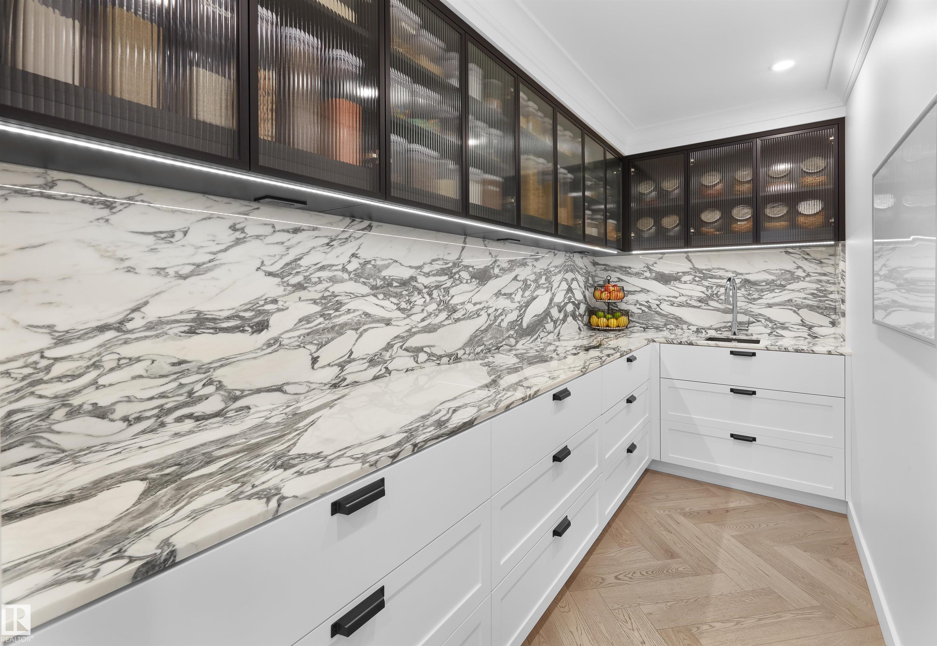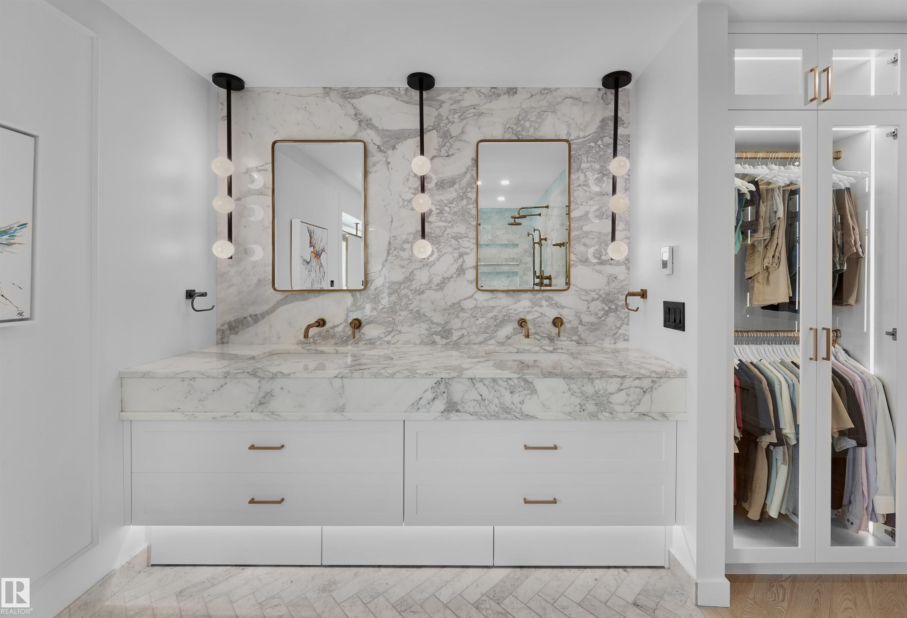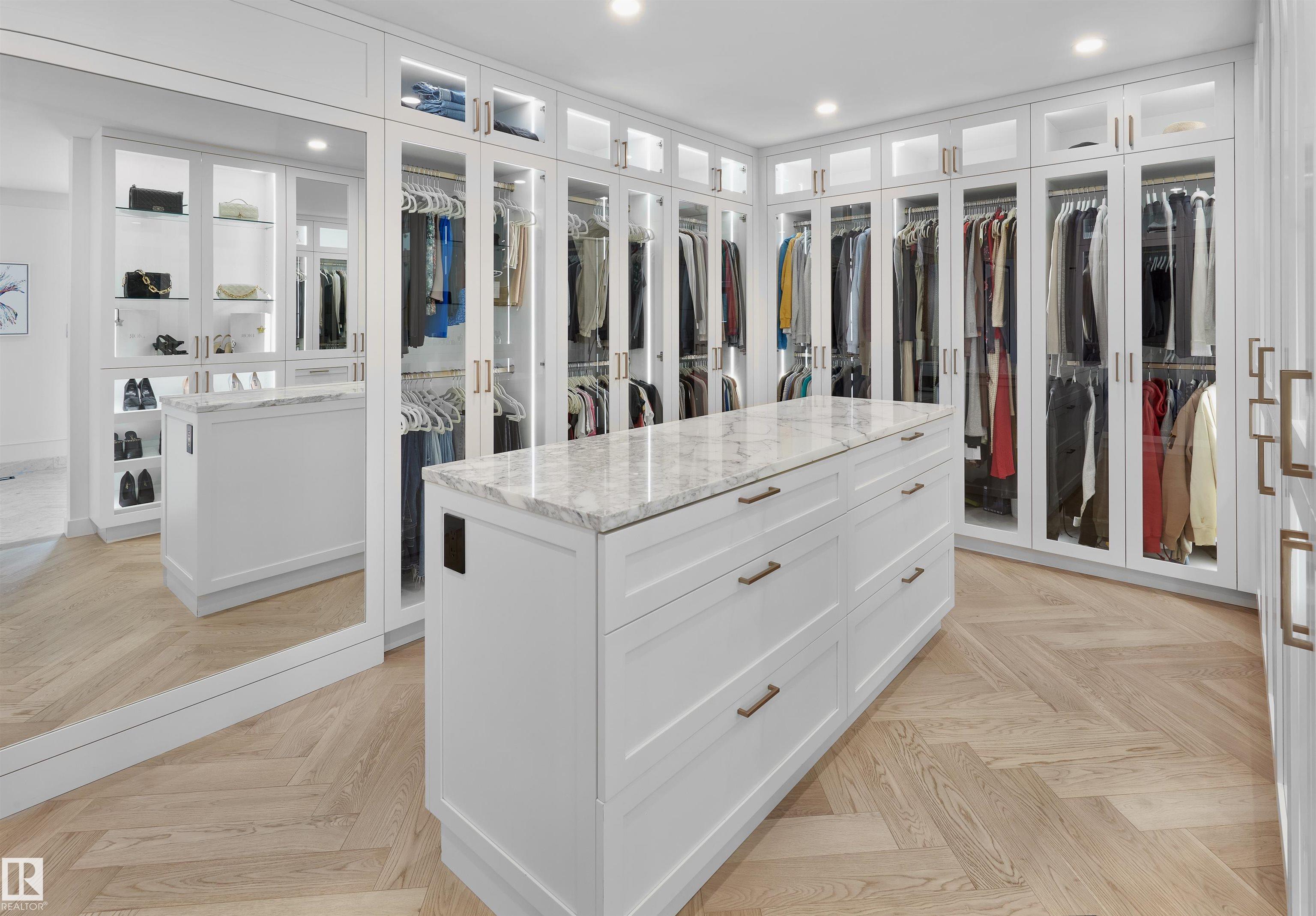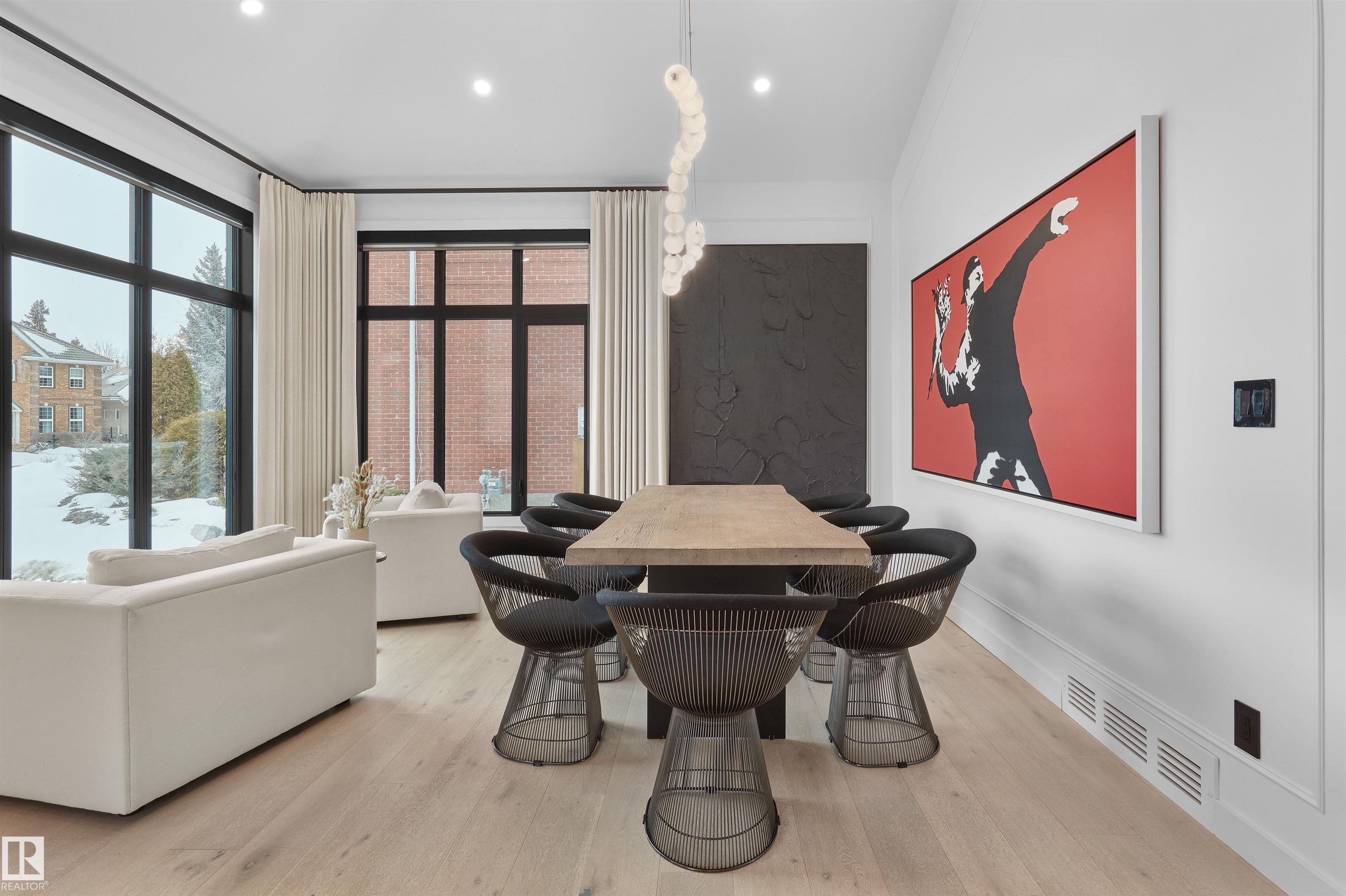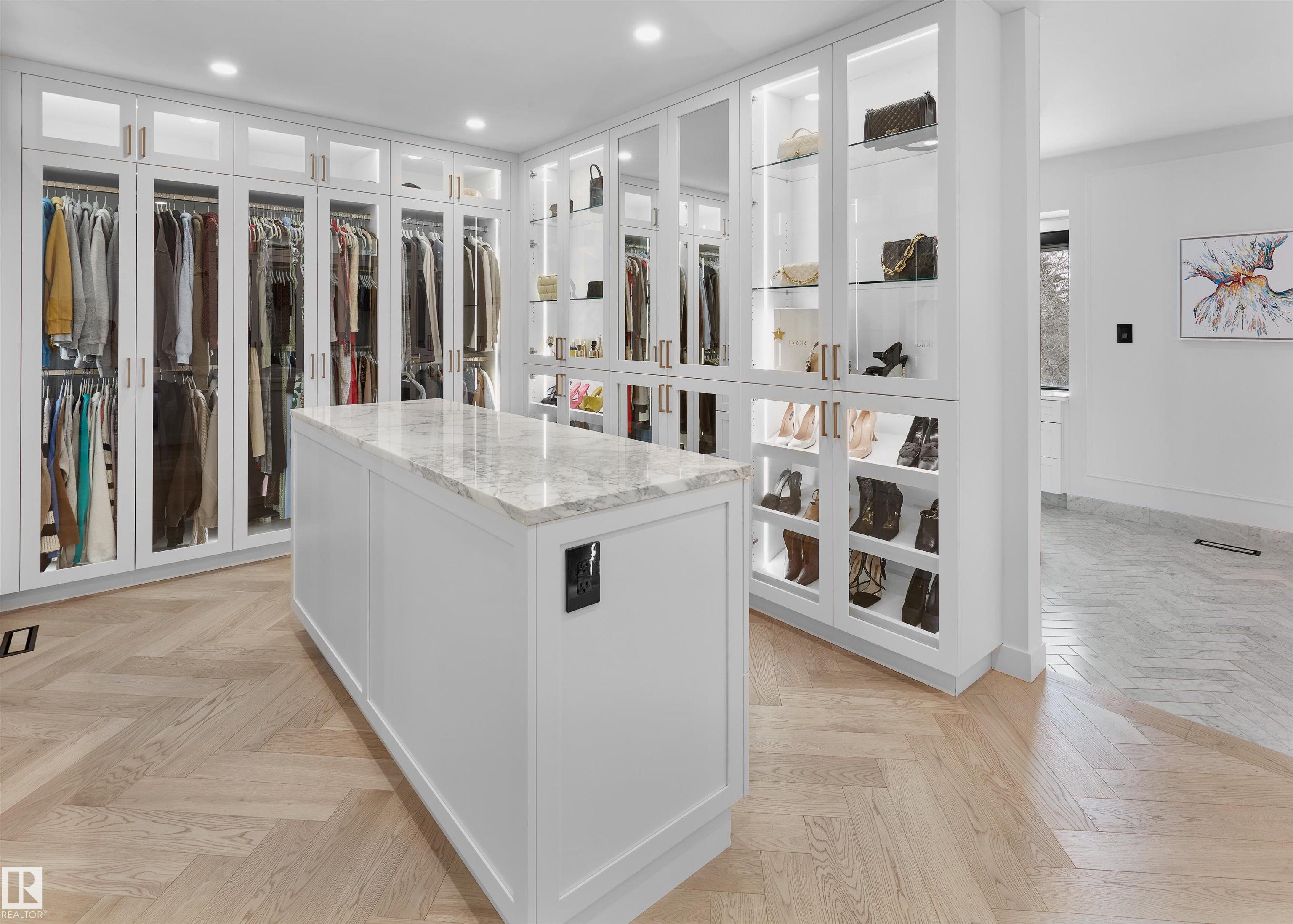 Exclusively designed by Kyle & Co, this exceptional residence is located on a quiet street in prestigious Wedgewood, backing directly onto the scenic Wedgewood Ravine (10,918sqft lot). Offering 5,745sqft of developed living space ? 4 beds up + 1 down ? 4.5 baths, this home blends timeless design with modern luxury. The impressive interior features soaring 20-ft ceilings, expansive living spaces filled with natural light & a thoughtfully designed layout. The chef?s kitchen is equipped with premium Sub-Zero & Miele appliances, perfect for both everyday living & entertaining. Designed with comfort & wellness in mind, the home includes a private infrared sauna & fully equipped home gym. Major electrical, plumbing & mechanical systems have been updated, providing peace of mind for years to come. Outside, enjoy professionally landscaped grounds & direct access to the ravine?s natural beauty. A heated driveway leads to the triple attached garage, offering convenience during Edmonton winters.