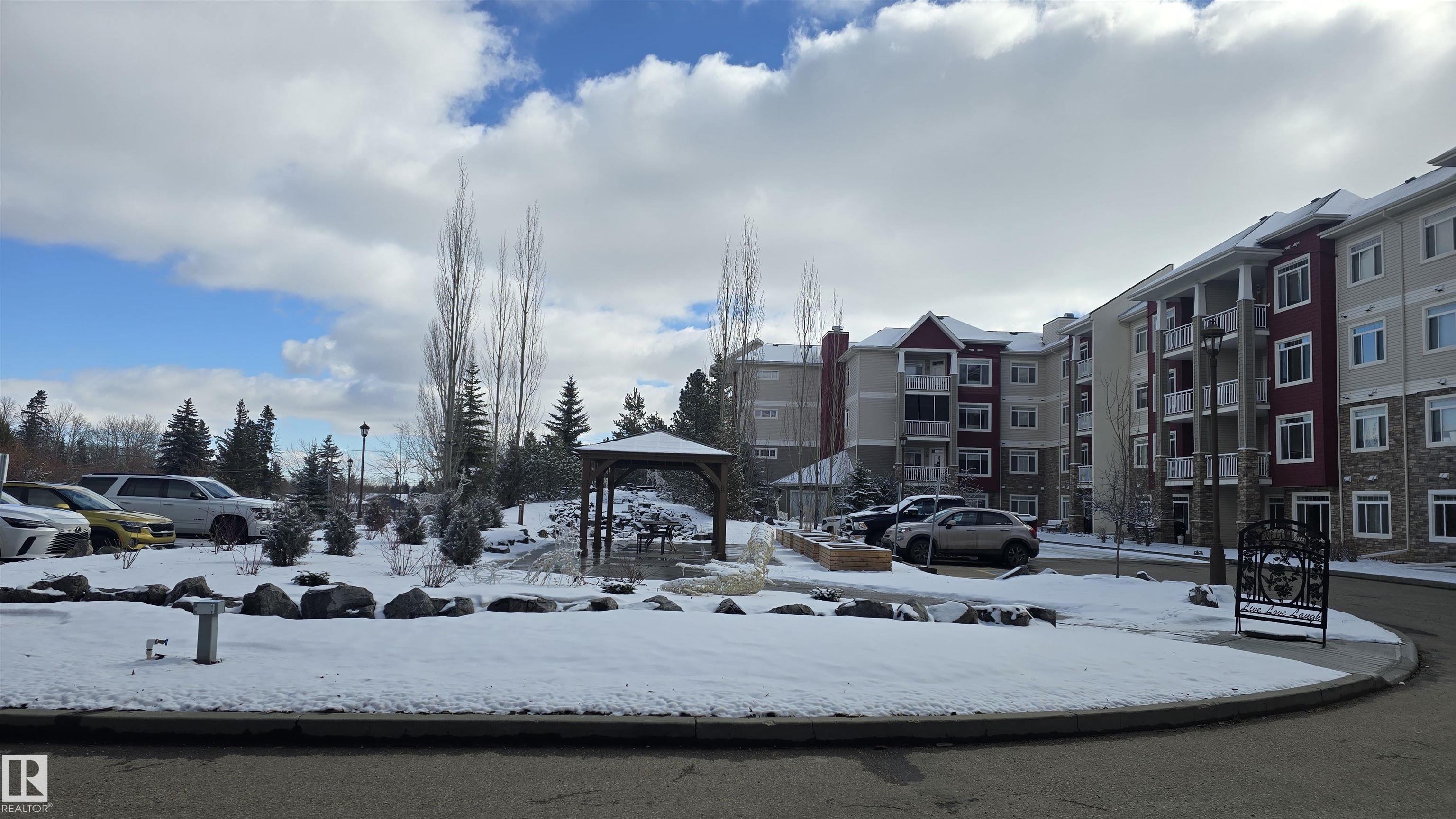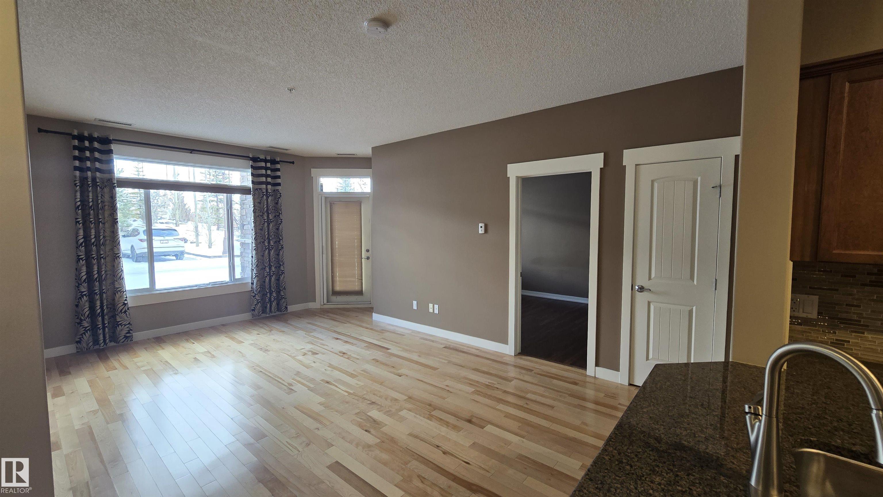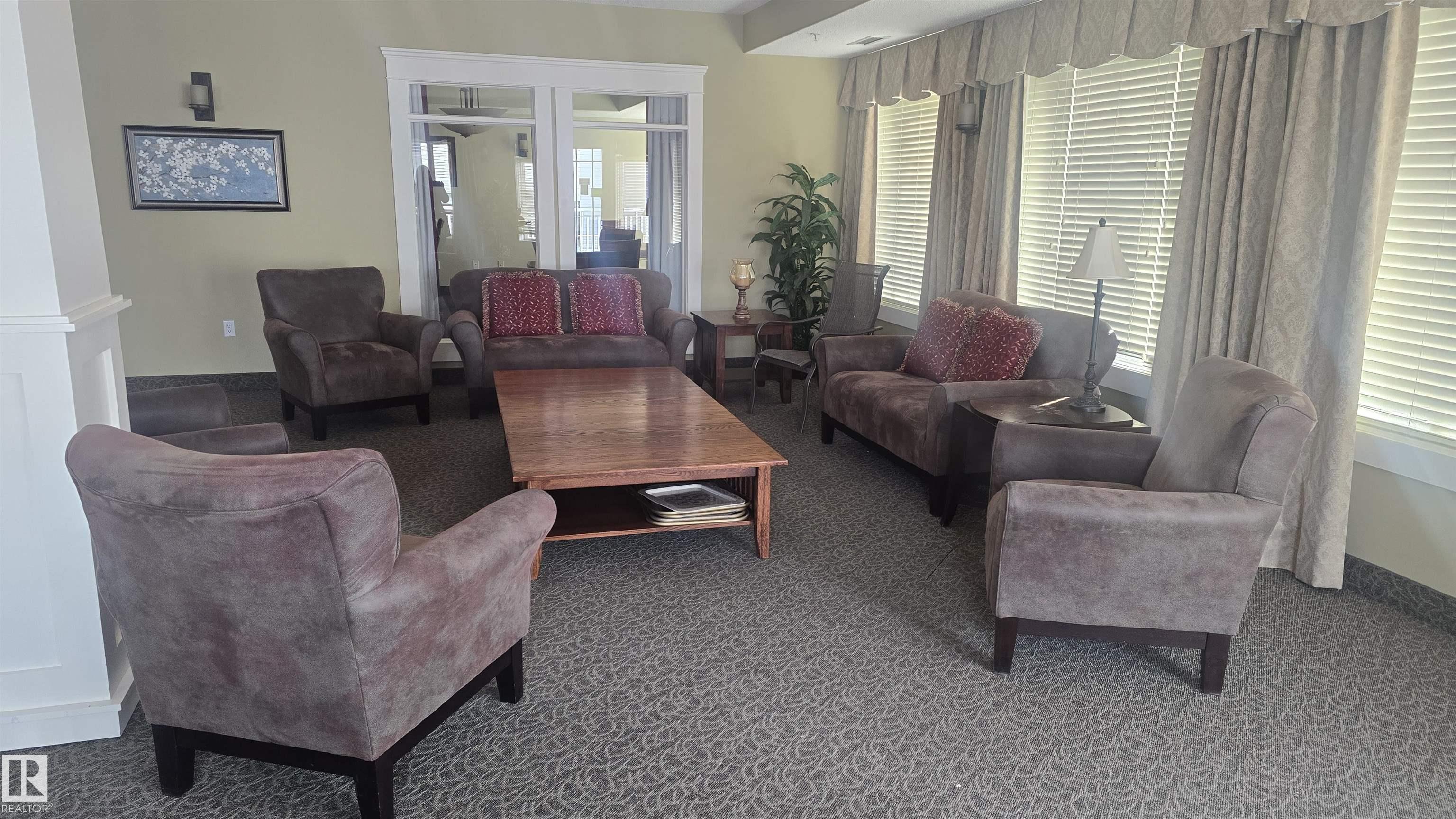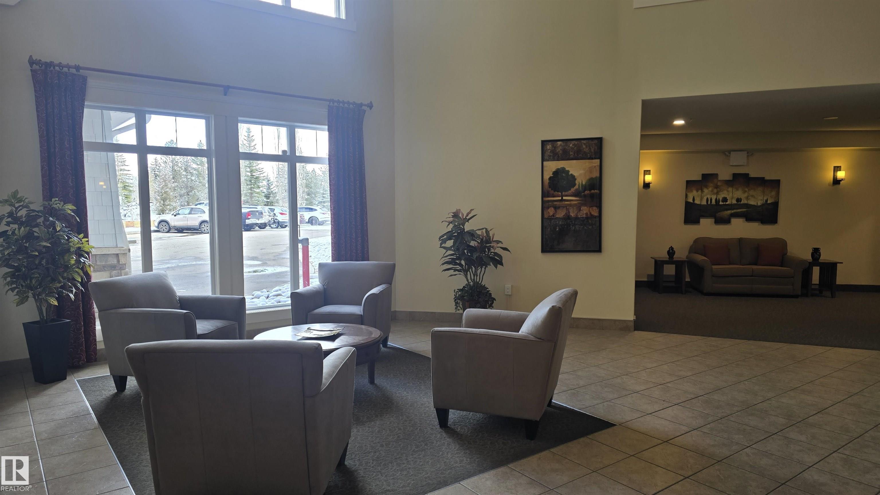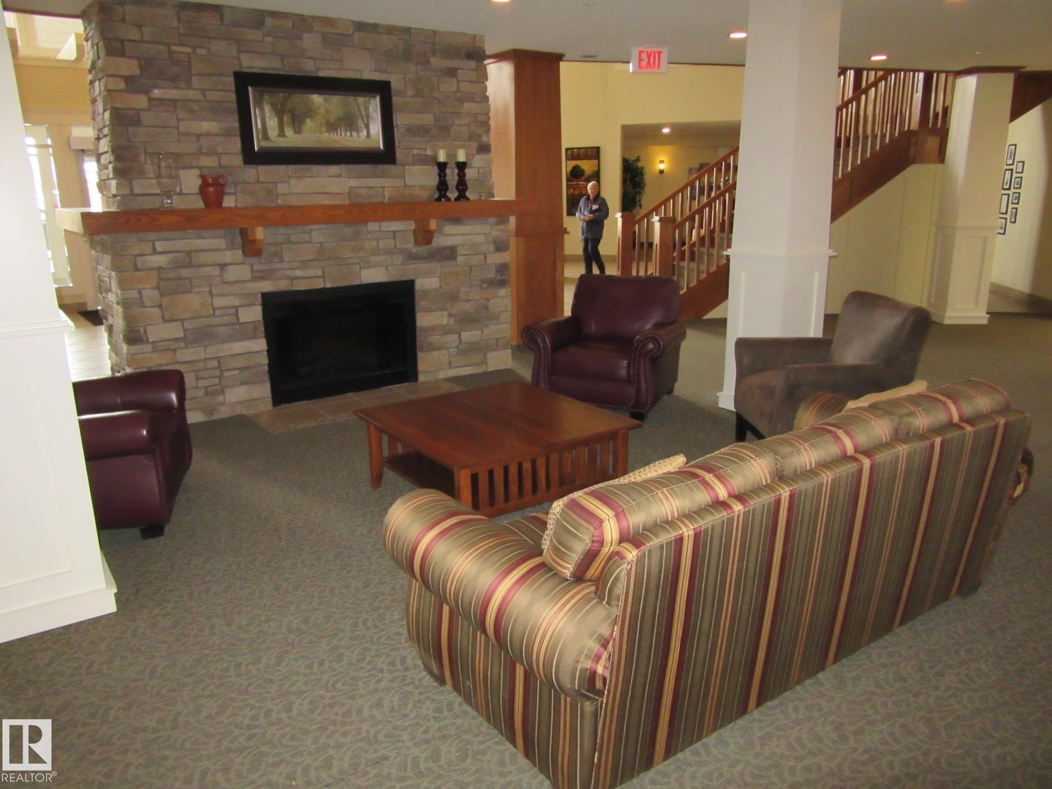 Welcome to prestigious 55+ living in Spruce Grove! This beautifully maintained two bedroom condo offers a perfect blend of comfort and lifestyle in a sought-after adult community. The bright kitchen features lovely cabinetry, upgraded gleaming granite countertops, and stainless steel appliances, complemented by vinyl plank flooring throughout. Enjoy the convenience of in-suite laundry and relax on your spacious main floor north-facing balcony, ideal for morning coffee and summer evenings. Situated on the main floor of a well-kept 4-storey building, residents enjoy exceptional amenities including an elegant lobby, social activity center with full kitchen, theatre room, games and cards room, library, and inviting many sitting areas. Additional highlights include heated underground parking, ample visitor parking, and a beautifully landscaped courtyard with a tranquil water feature. A welcoming community offering a vibrant lifestyle, comfort, and the opportunity to build lasting friendships.