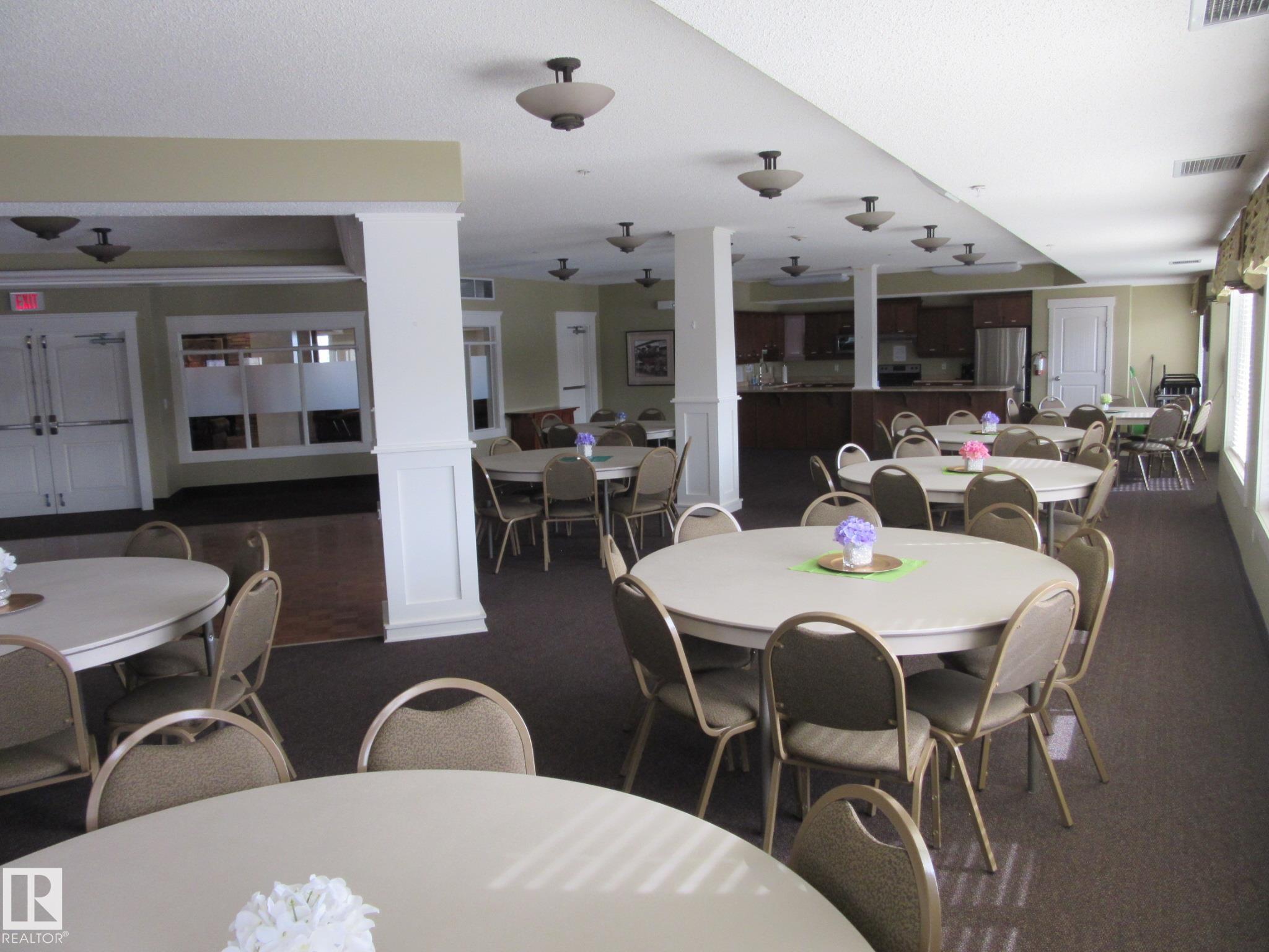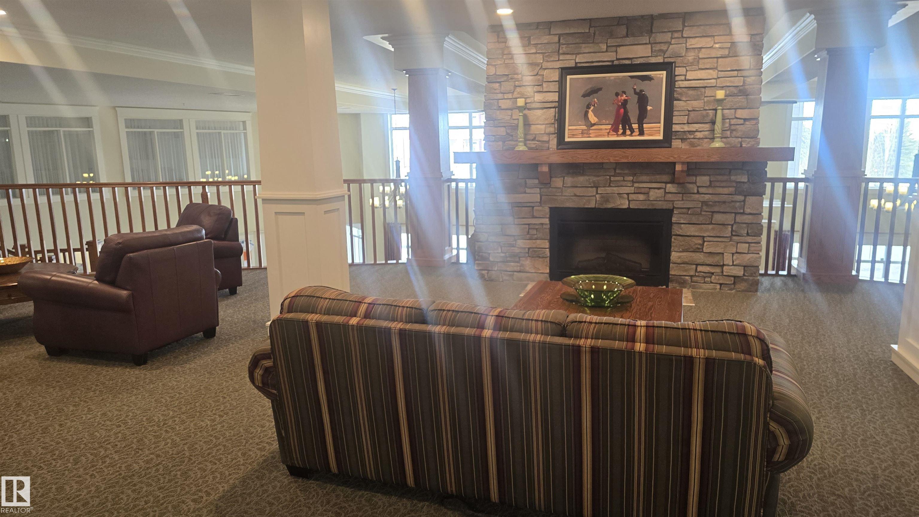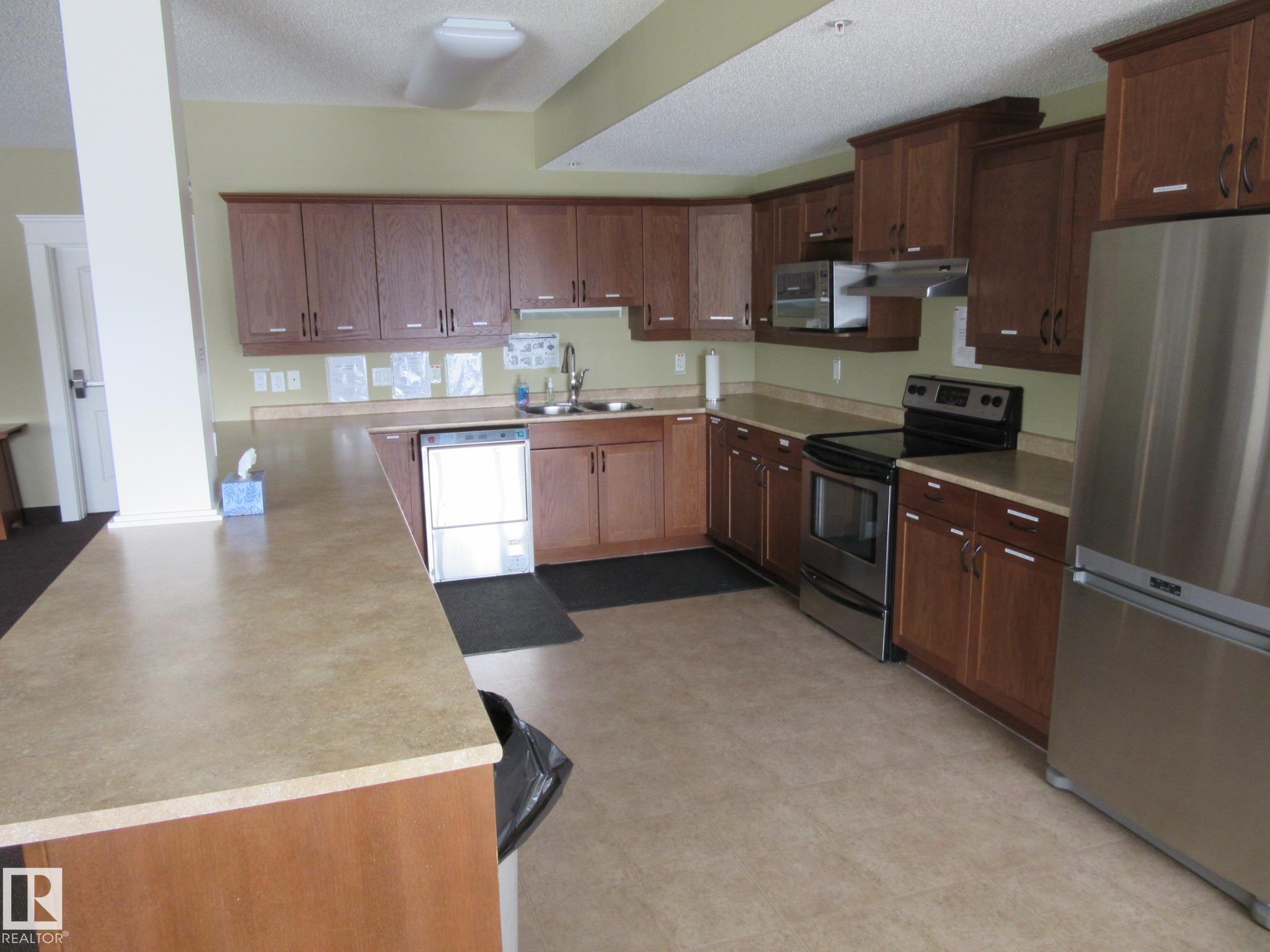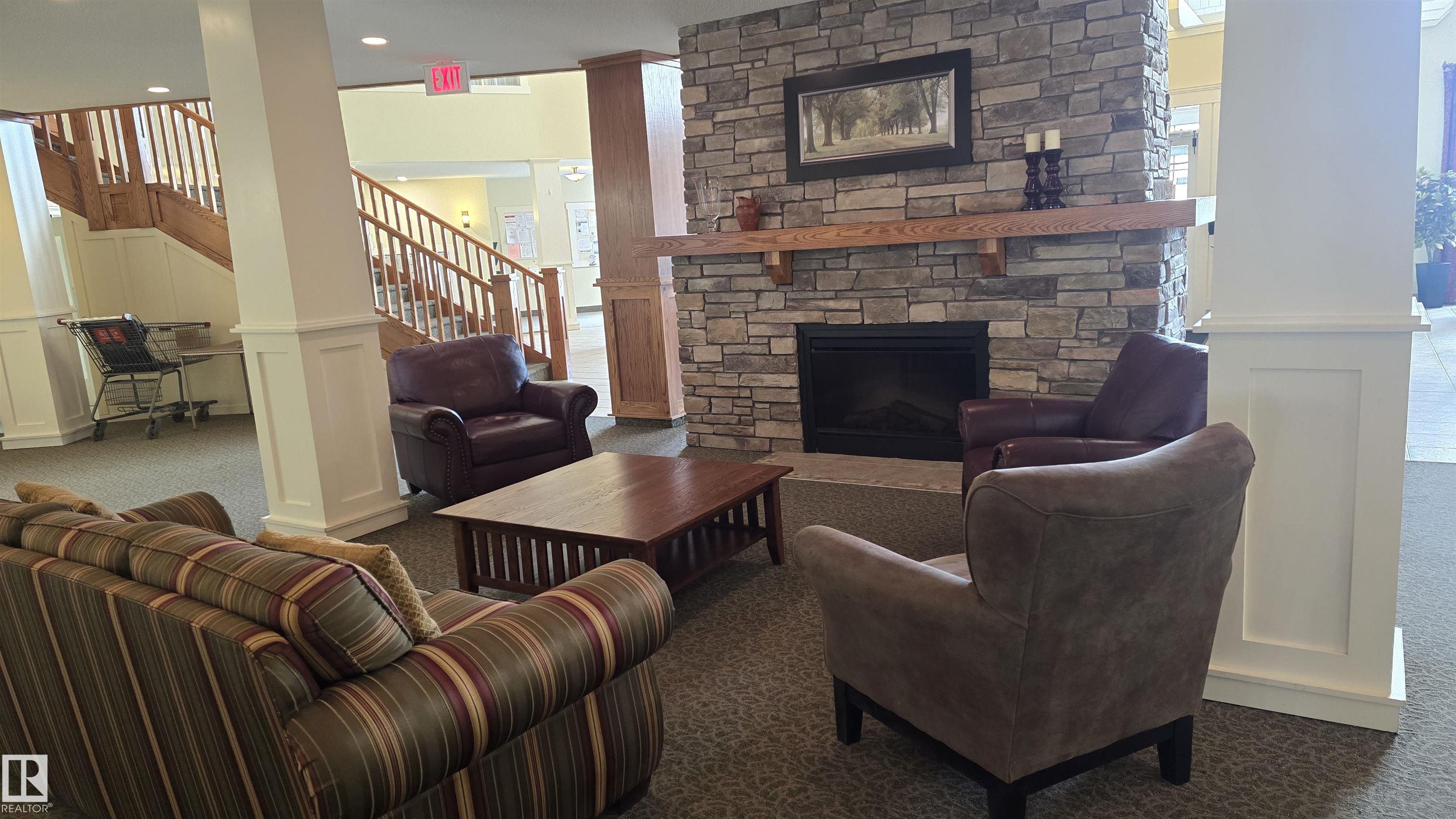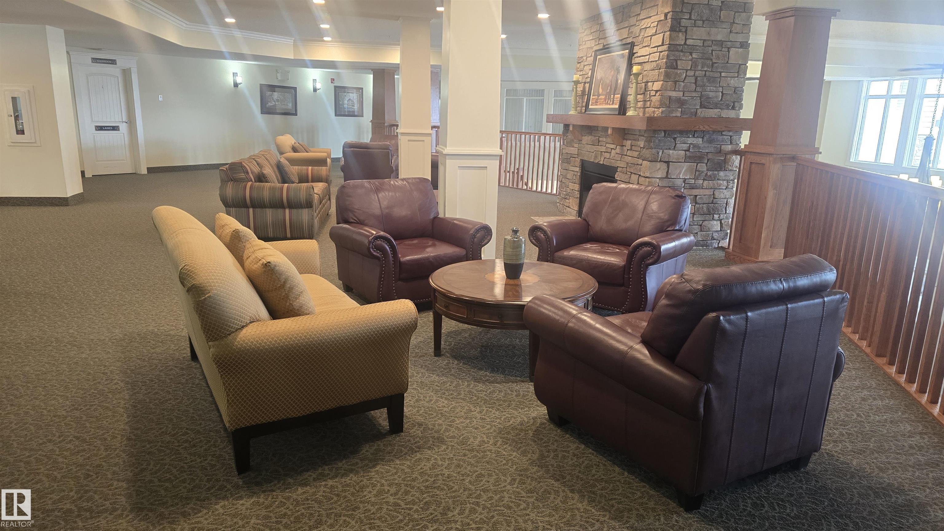 Welcome to prestigious 55+ living in Spruce Grove! This beautifully maintained two bedroom condo offers a perfect blend of comfort and lifestyle in a sought-after adult community. The bright kitchen features lovely cabinetry, upgraded gleaming granite countertops, and stainless steel appliances, complemented by vinyl plank flooring throughout. Enjoy the convenience of in-suite laundry and relax on your spacious main floor north-facing balcony, ideal for morning coffee and summer evenings. Situated on the main floor of a well-kept 4-storey building, residents enjoy exceptional amenities including an elegant lobby, social activity center with full kitchen, theatre room, games and cards room, library, and inviting many sitting areas. Additional highlights include heated underground parking, ample visitor parking, and a beautifully landscaped courtyard with a tranquil water feature. A welcoming community offering a vibrant lifestyle, comfort, and the opportunity to build lasting friendships.