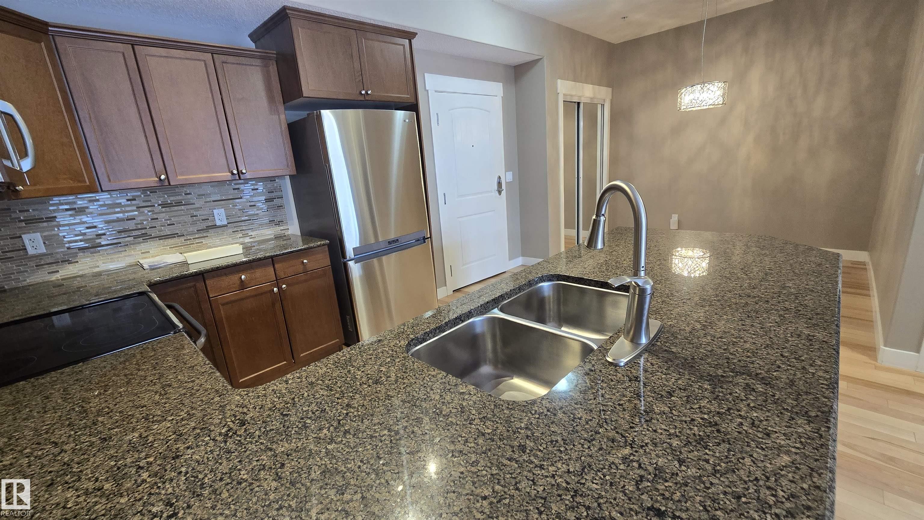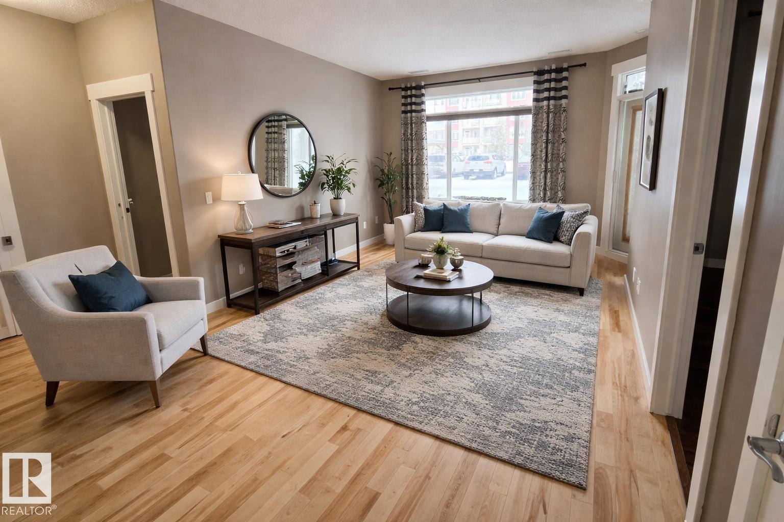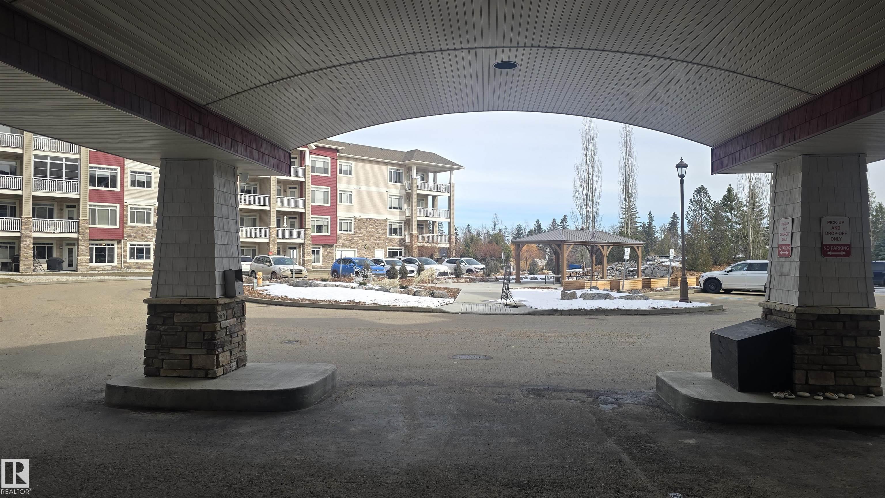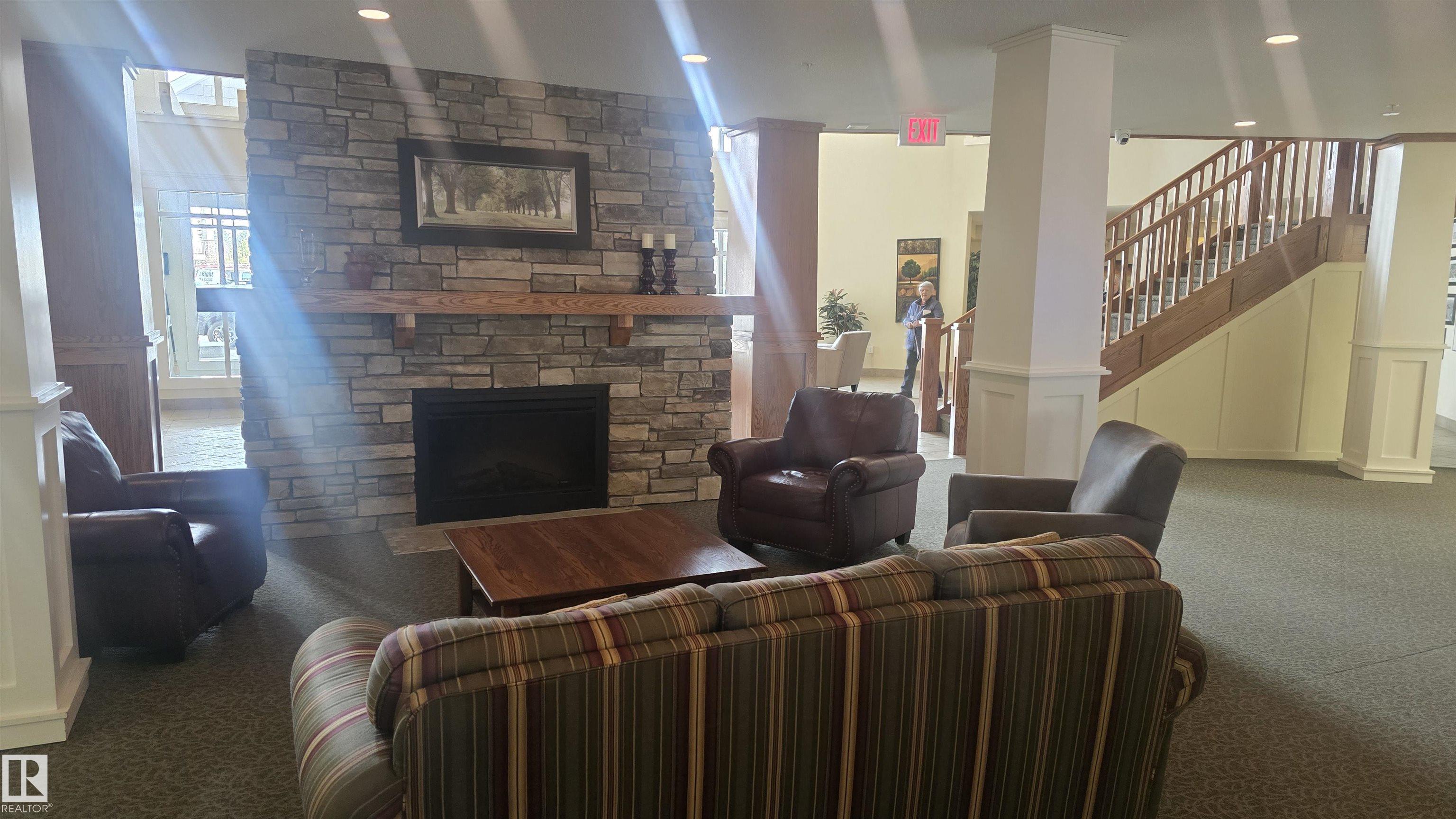 Welcome to prestigious 55+ living in Spruce Grove! This beautifully maintained two bedroom condo offers a perfect blend of comfort and lifestyle in a sought-after adult community. The bright kitchen features lovely cabinetry, upgraded gleaming granite countertops, and stainless steel appliances, complemented by vinyl plank flooring throughout. Enjoy the convenience of in-suite laundry and relax on your spacious main floor north-facing balcony, ideal for morning coffee and summer evenings. Situated on the main floor of a well-kept 4-storey building, residents enjoy exceptional amenities including an elegant lobby, social activity center with full kitchen, theatre room, games and cards room, library, and inviting many sitting areas. Additional highlights include heated underground parking, ample visitor parking, and a beautifully landscaped courtyard with a tranquil water feature. A welcoming community offering a vibrant lifestyle, comfort, and the opportunity to build lasting friendships.