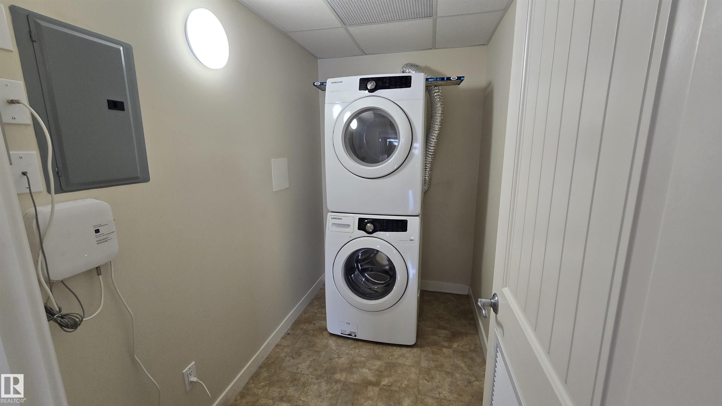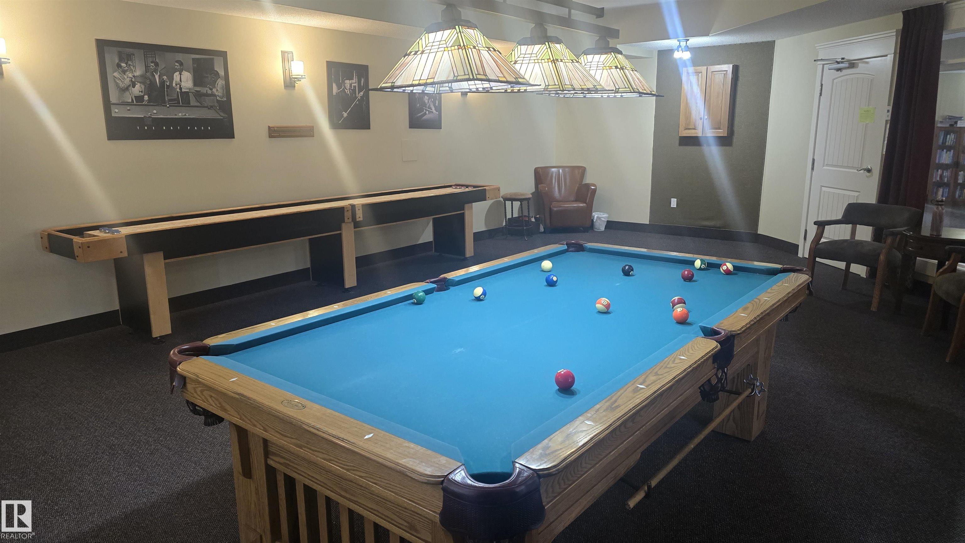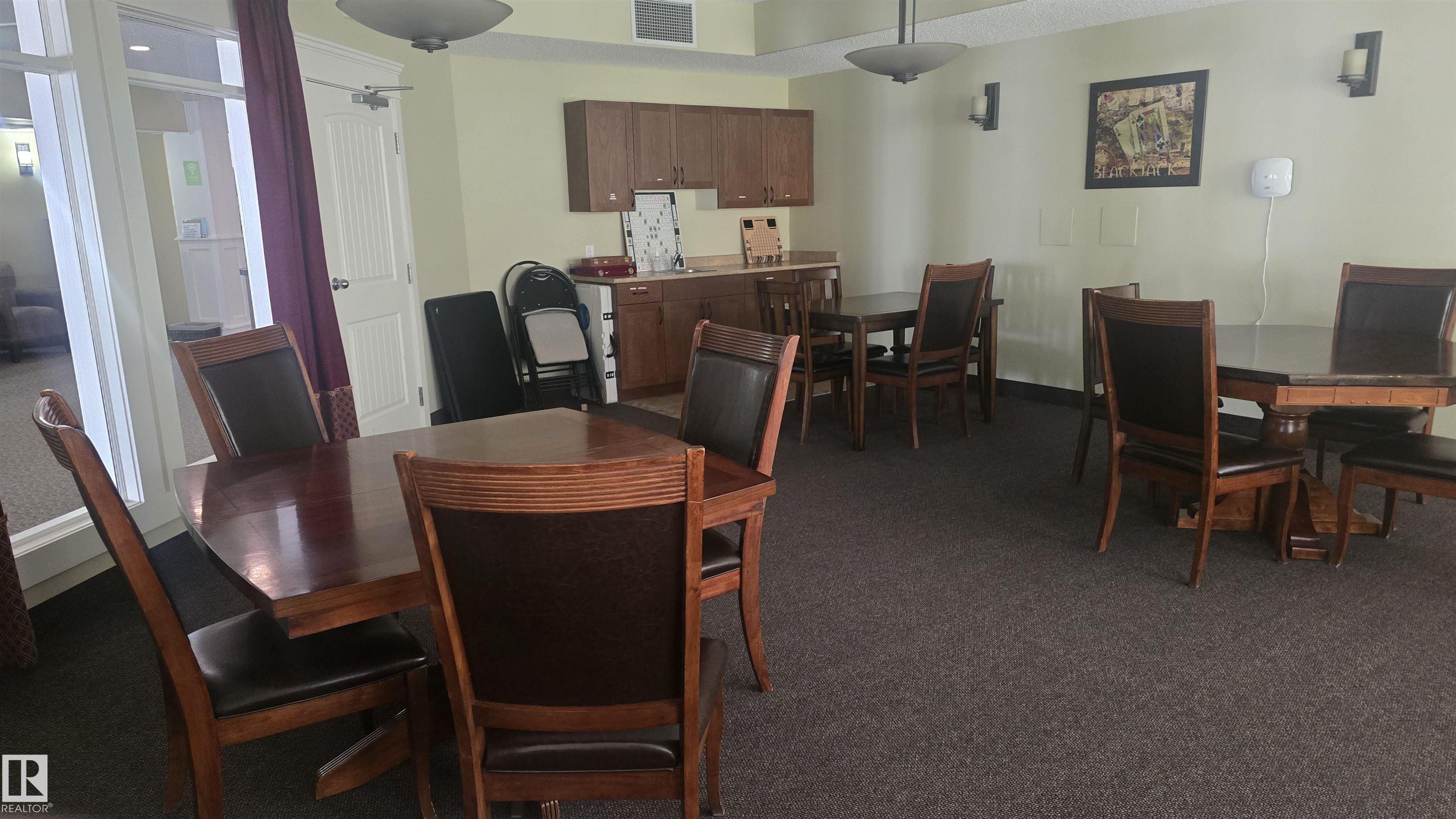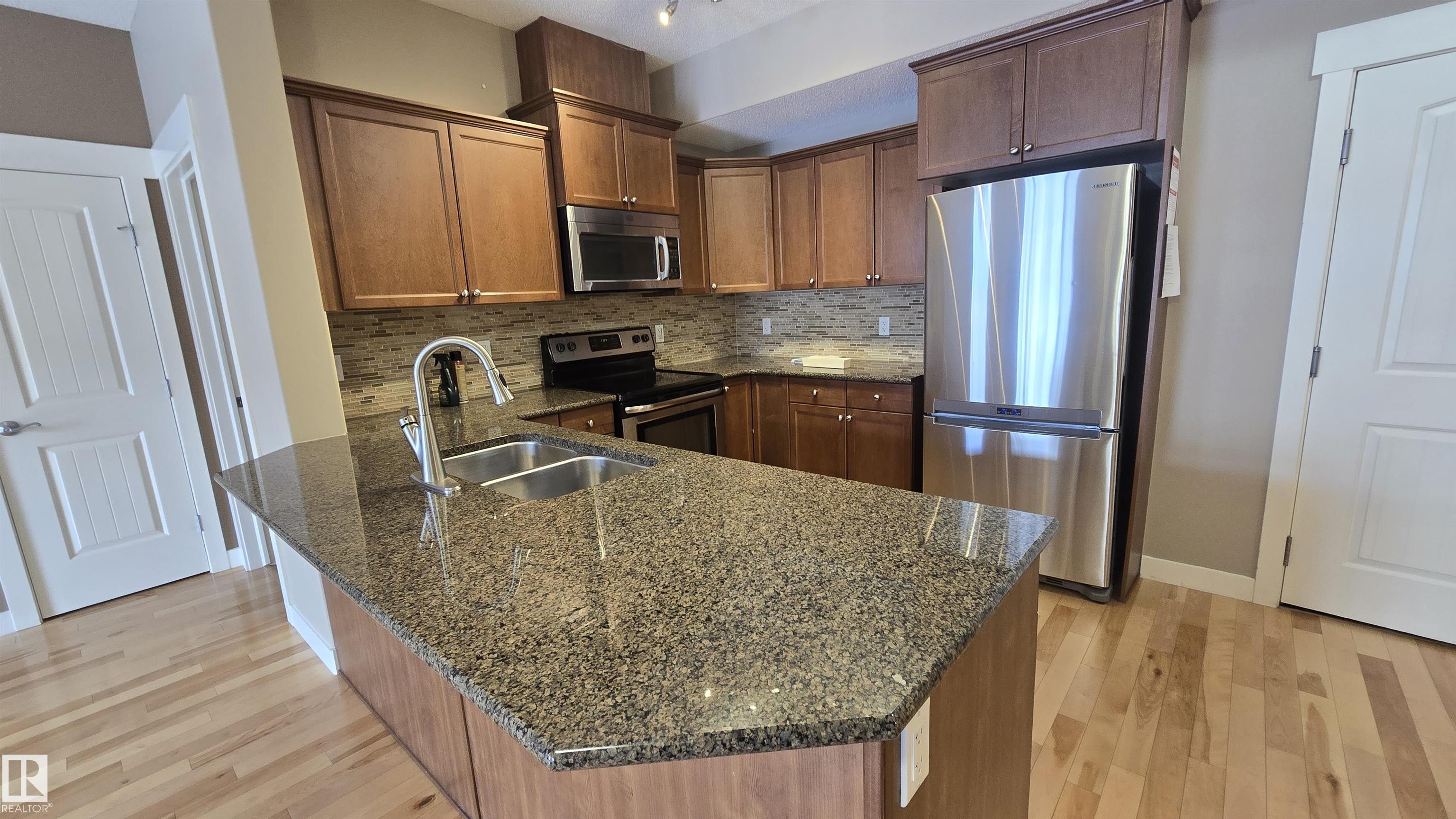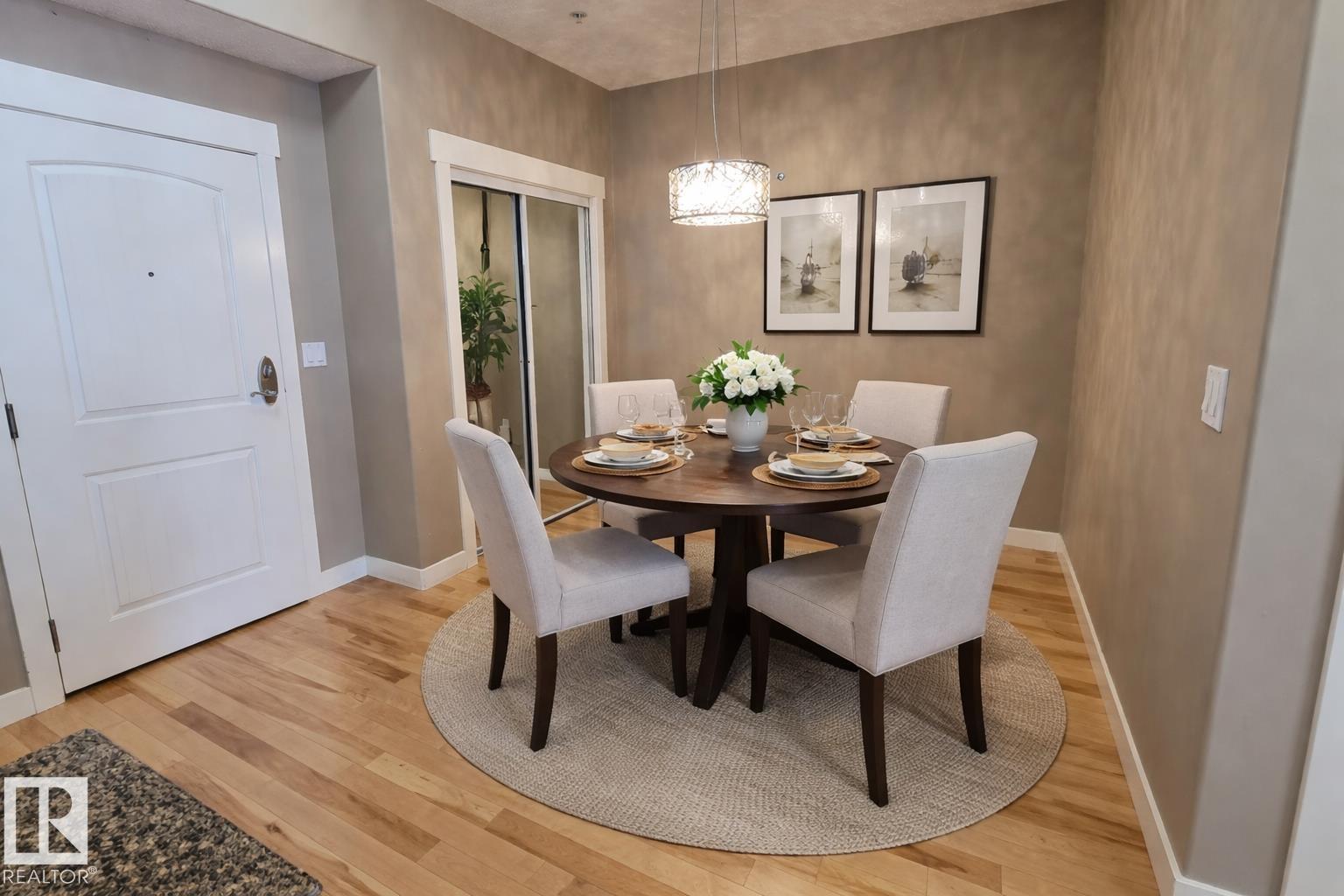 Welcome to prestigious 55+ living in Spruce Grove! This beautifully maintained two bedroom condo offers a perfect blend of comfort and lifestyle in a sought-after adult community. The bright kitchen features lovely cabinetry, upgraded gleaming granite countertops, and stainless steel appliances, complemented by vinyl plank flooring throughout. Enjoy the convenience of in-suite laundry and relax on your spacious main floor north-facing balcony, ideal for morning coffee and summer evenings. Situated on the main floor of a well-kept 4-storey building, residents enjoy exceptional amenities including an elegant lobby, social activity center with full kitchen, theatre room, games and cards room, library, and inviting many sitting areas. Additional highlights include heated underground parking, ample visitor parking, and a beautifully landscaped courtyard with a tranquil water feature. A welcoming community offering a vibrant lifestyle, comfort, and the opportunity to build lasting friendships.