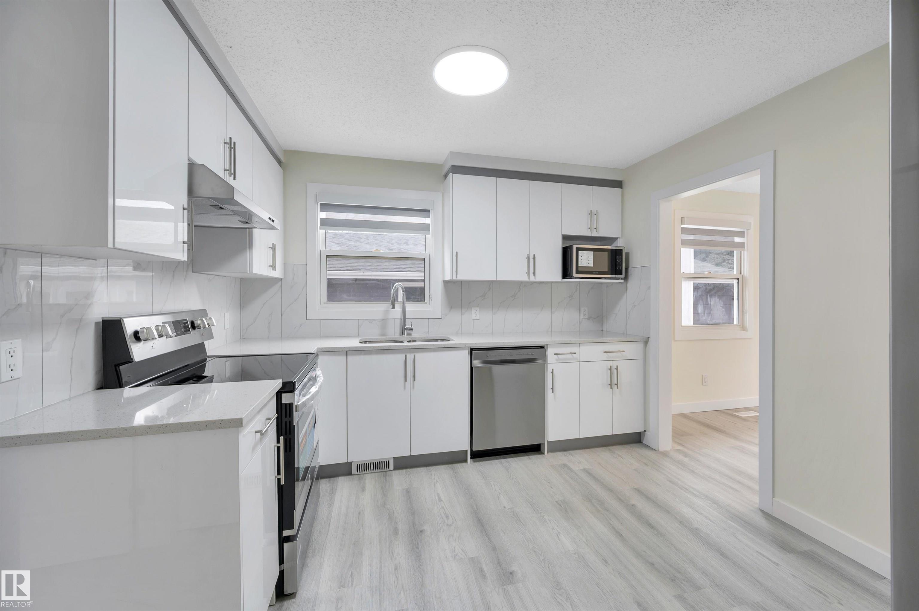 Amazing opportunity to own this beautiful fully renovated 1,962.55 sq ft bungalow situated on a large 616.13 sq m lot in the desirable Pollard Meadows community. The main floor features a bright, modern layout with 3 spacious bedrooms, a stunning bathroom, and a beautifully updated kitchen complete with brand-new appliances and elegant quartz countertops. A separate side entrance welcomes you to the fully finished basement with the same bright and modern design, featuring 2 bedrooms, a gorgeous bathroom, and a fully functioning kitchen. Recent upgrades include a newer furnace, hot water tank, shingles, exterior front porch, and side deck, providing added peace of mind. Parking is plentiful with a detached double garage with alley access, plus additional front street parking. The home centered around a great community with schools, shops and a mall in a short walking distance.