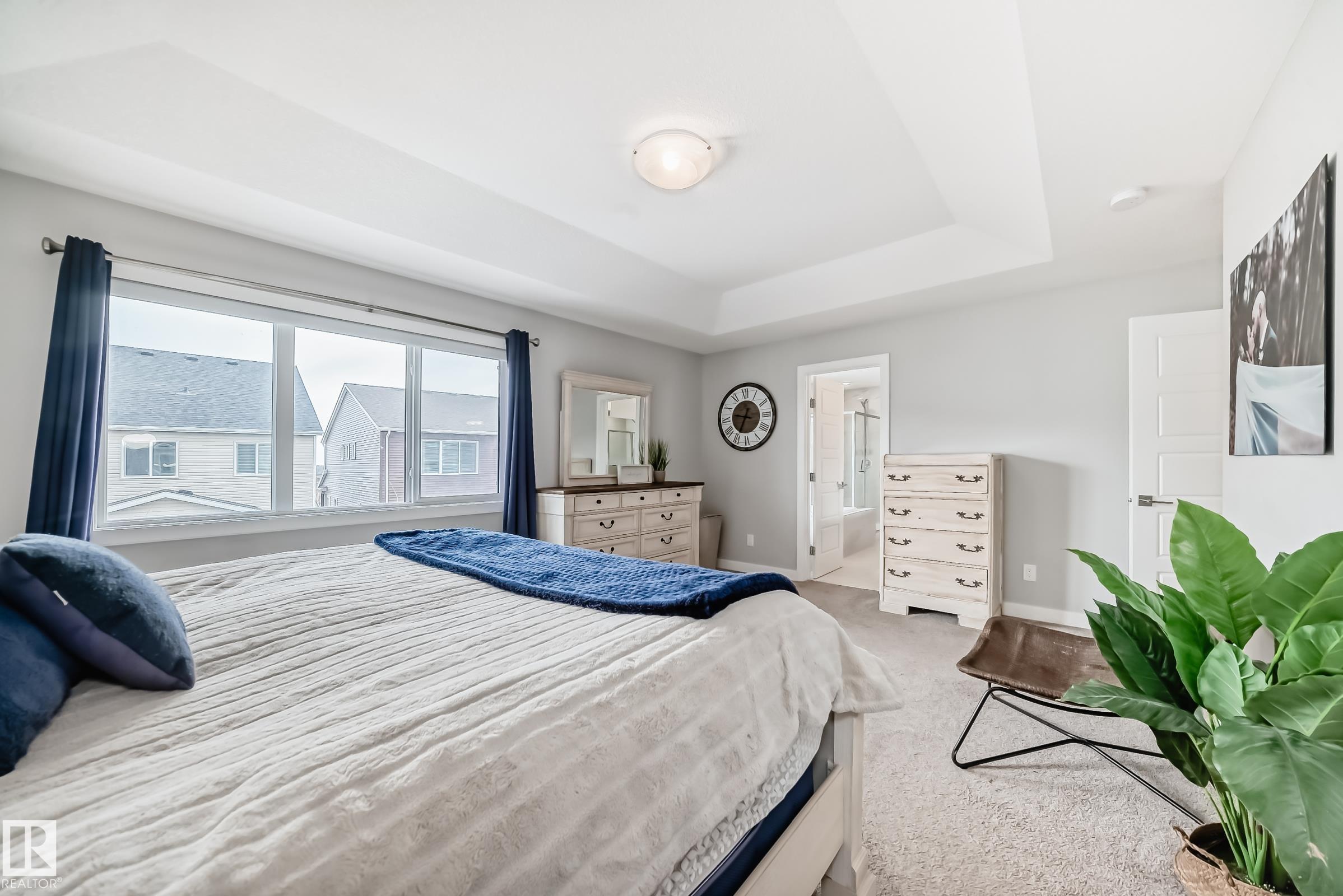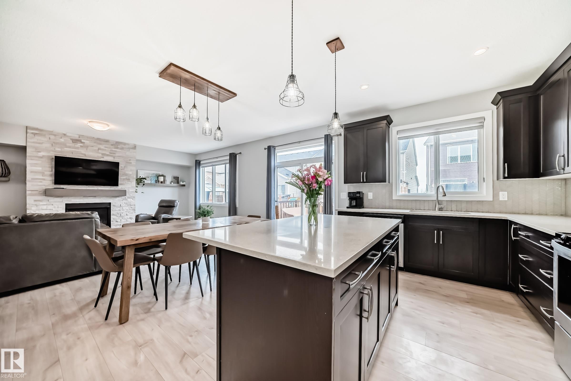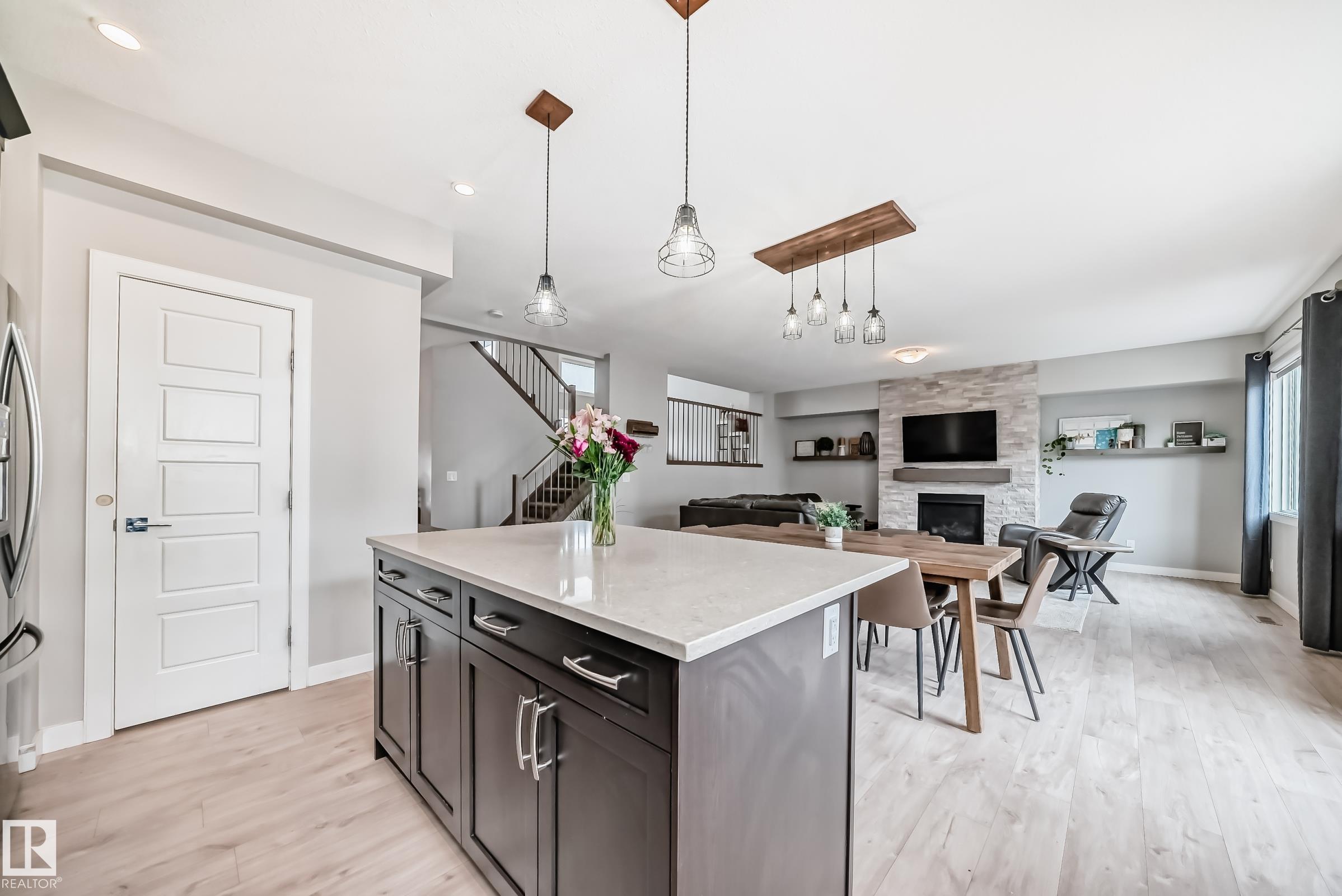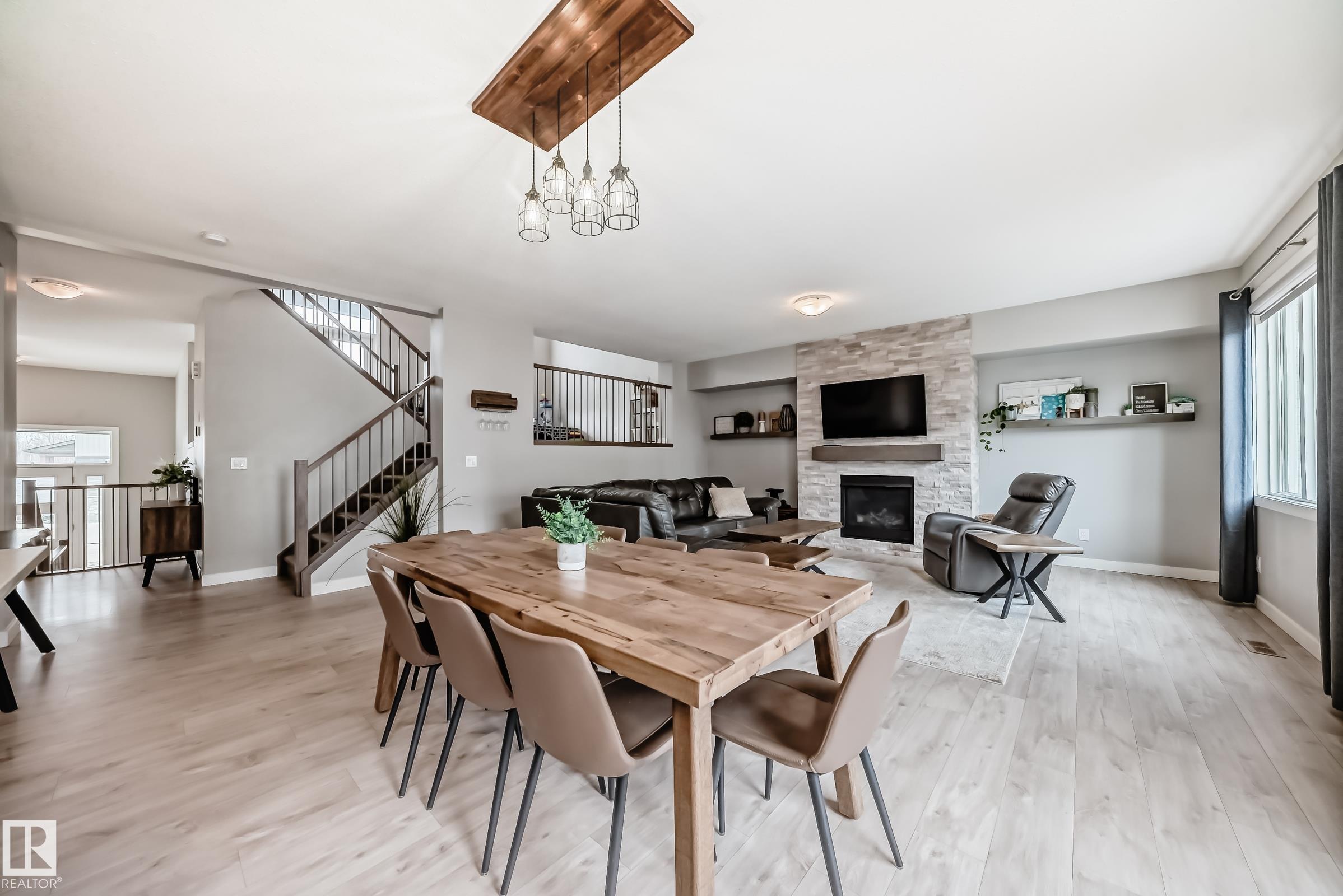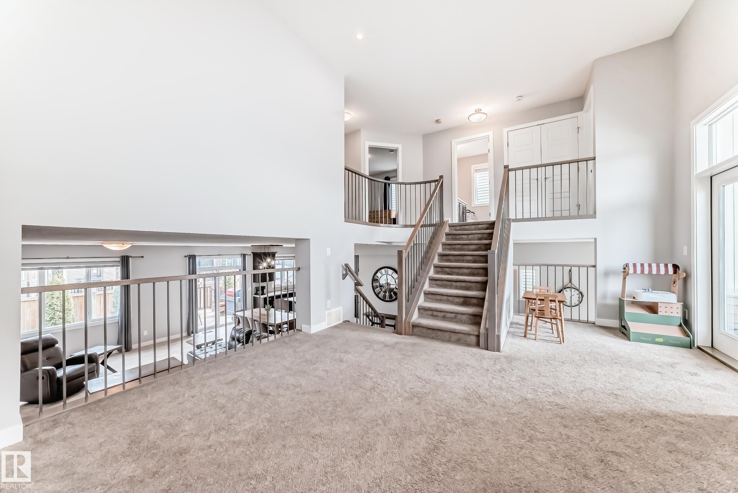 Welcome to the popular Banff model by Mattamy, located in the desirable quiet and relaxing community of Stillwater. This open-concept home offers luxury quality throughout and a functional layout perfect for families. The main floor features 9? ceilings, large windows for plenty of natural light, and a mix of carpet, ceramic tile, and vinyl plank flooring with flush-mount vents. The gourmet kitchen includes quartz countertops, stylish cabinetry, a large island with breakfast bar, and a spacious pantry. The living room is highlighted by a cozy gas fireplace located in a fantastic feature wall, while the dining area provides plenty of space for gatherings. Upstairs features a vaulted bonus room with access to a covered veranda, plus two generous bedrooms and a spacious primary suite with walk-in closet and ensuite. Conveniently located near shopping, amenities, West Edmonton Mall, and Anthony Henday Drive, this home offers comfort, space, and a unique design. Time to move in!