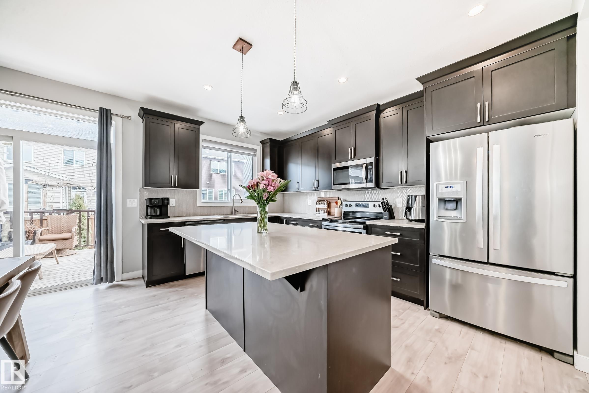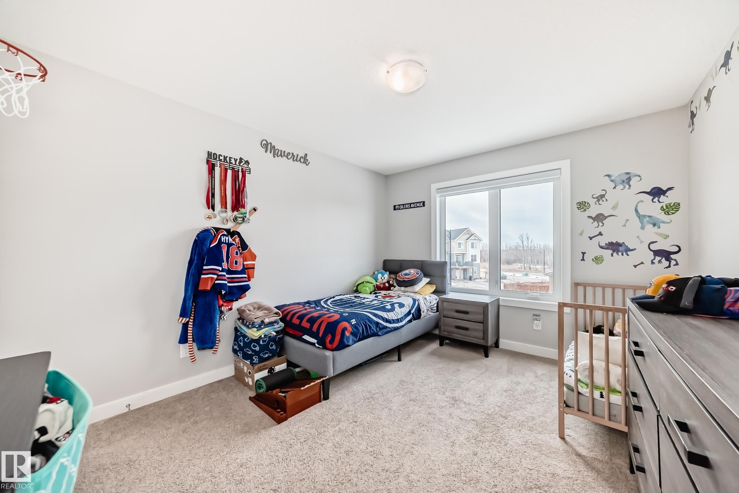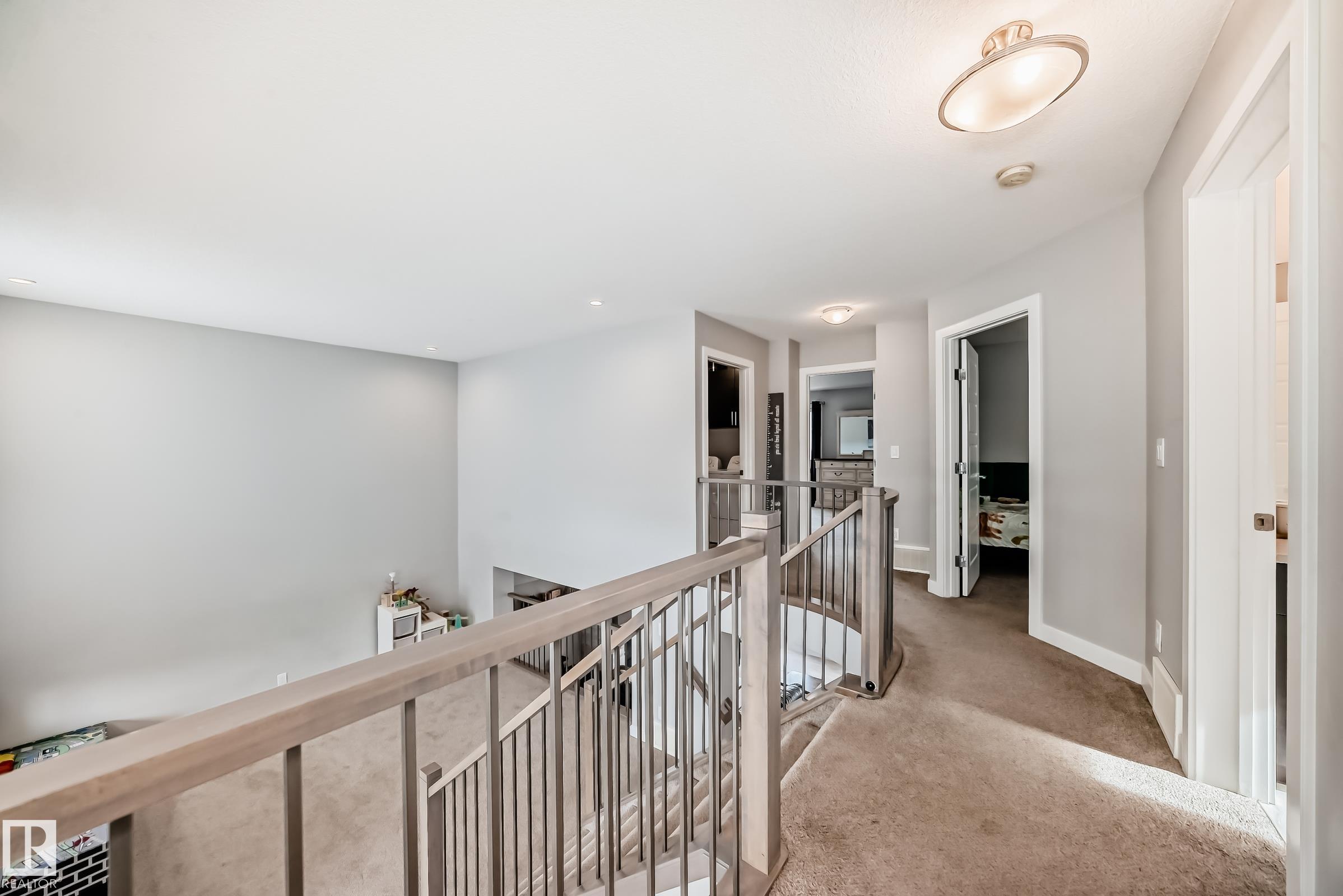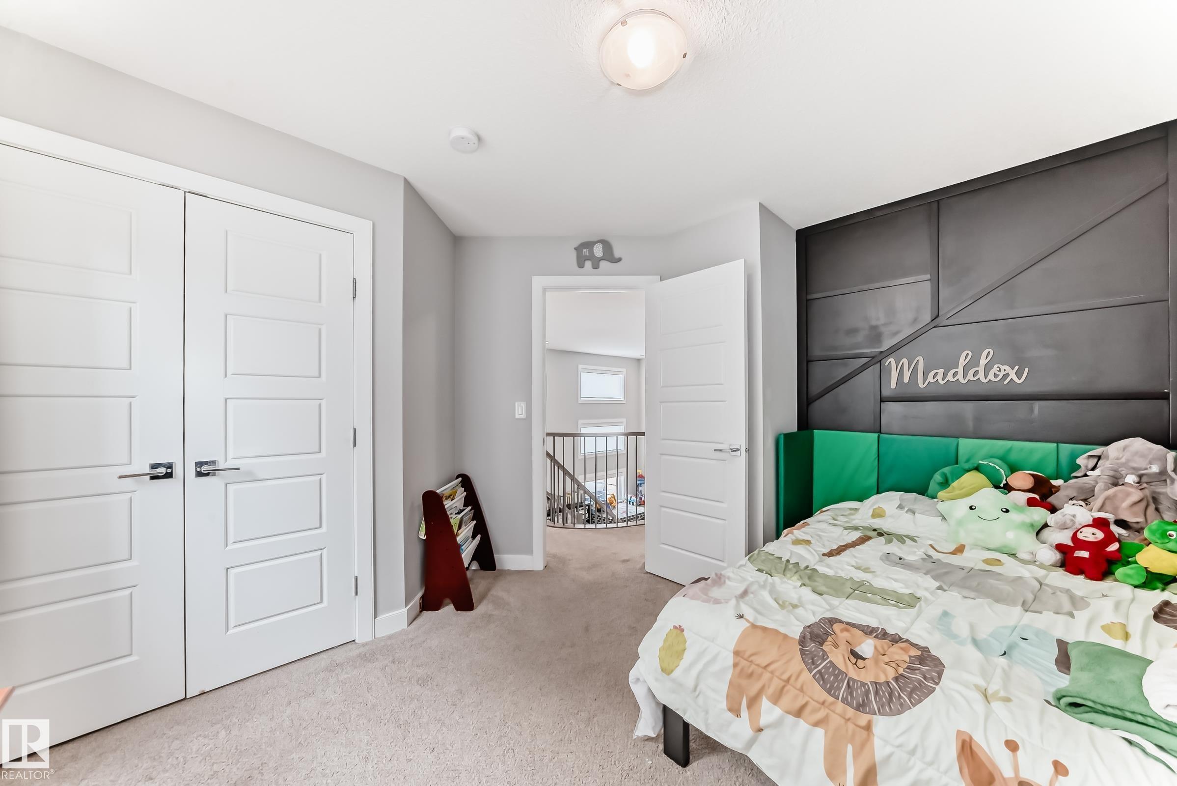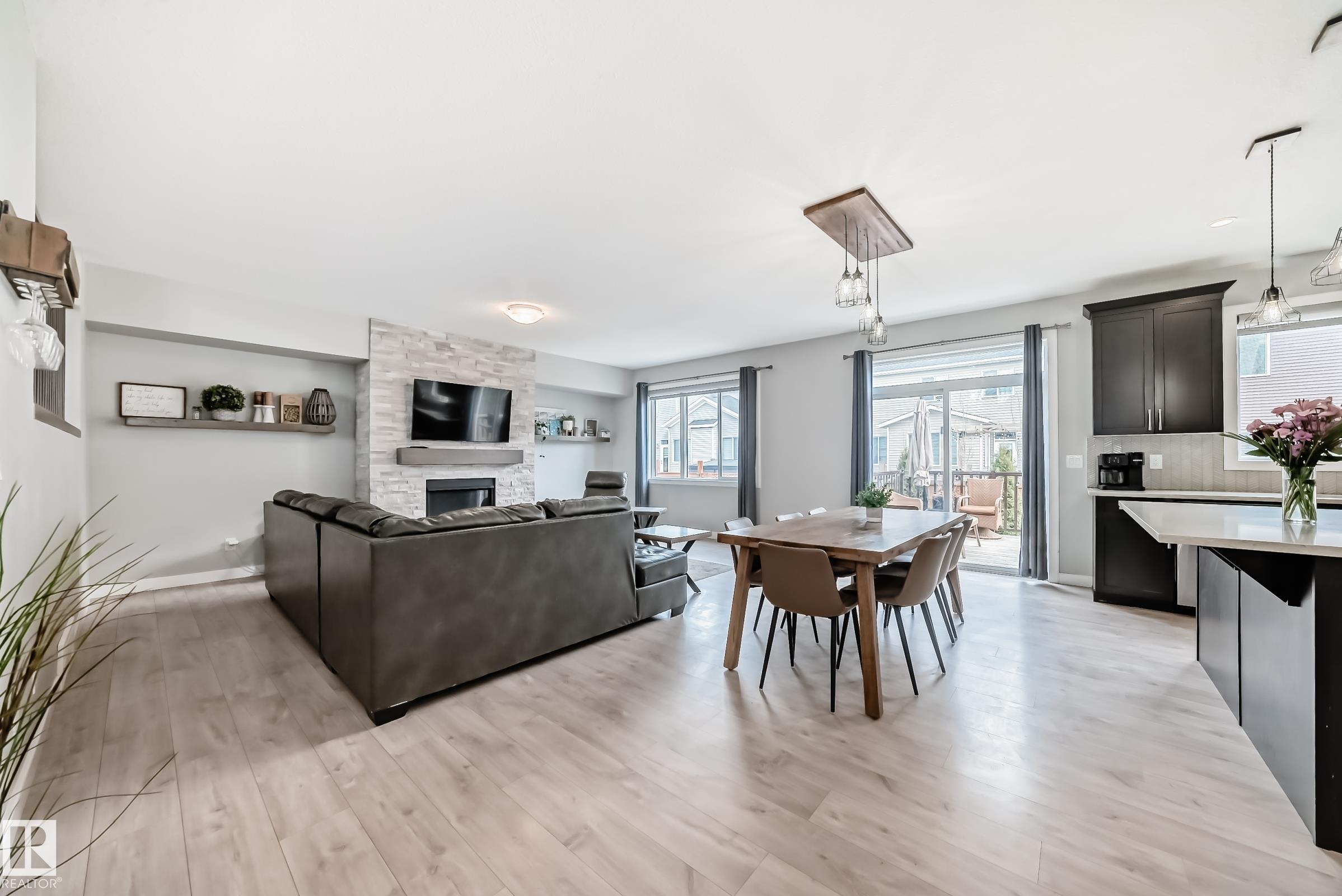 Welcome to the popular Banff model by Mattamy, located in the desirable quiet and relaxing community of Stillwater. This open-concept home offers luxury quality throughout and a functional layout perfect for families. The main floor features 9? ceilings, large windows for plenty of natural light, and a mix of carpet, ceramic tile, and vinyl plank flooring with flush-mount vents. The gourmet kitchen includes quartz countertops, stylish cabinetry, a large island with breakfast bar, and a spacious pantry. The living room is highlighted by a cozy gas fireplace located in a fantastic feature wall, while the dining area provides plenty of space for gatherings. Upstairs features a vaulted bonus room with access to a covered veranda, plus two generous bedrooms and a spacious primary suite with walk-in closet and ensuite. Conveniently located near shopping, amenities, West Edmonton Mall, and Anthony Henday Drive, this home offers comfort, space, and a unique design. Time to move in!