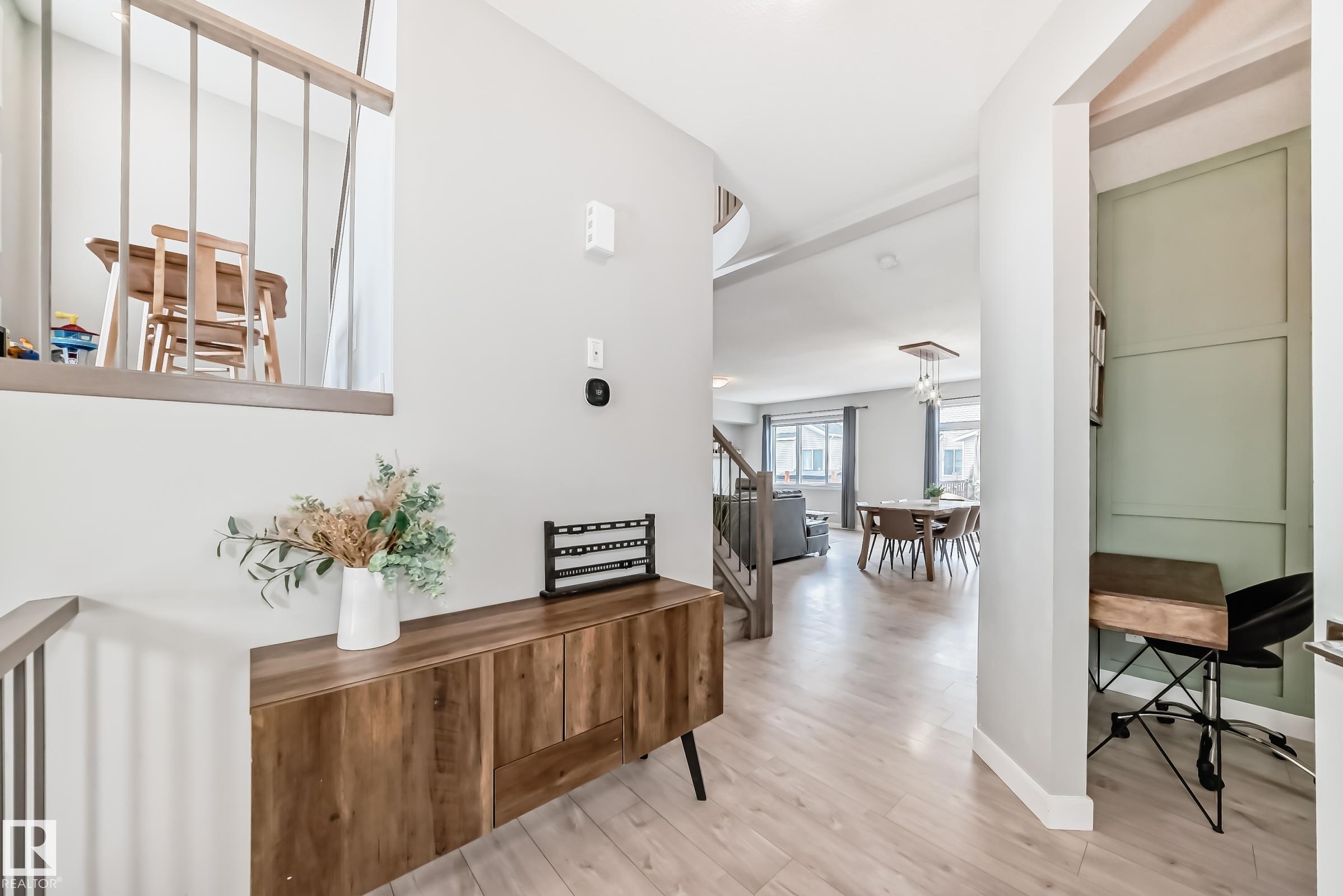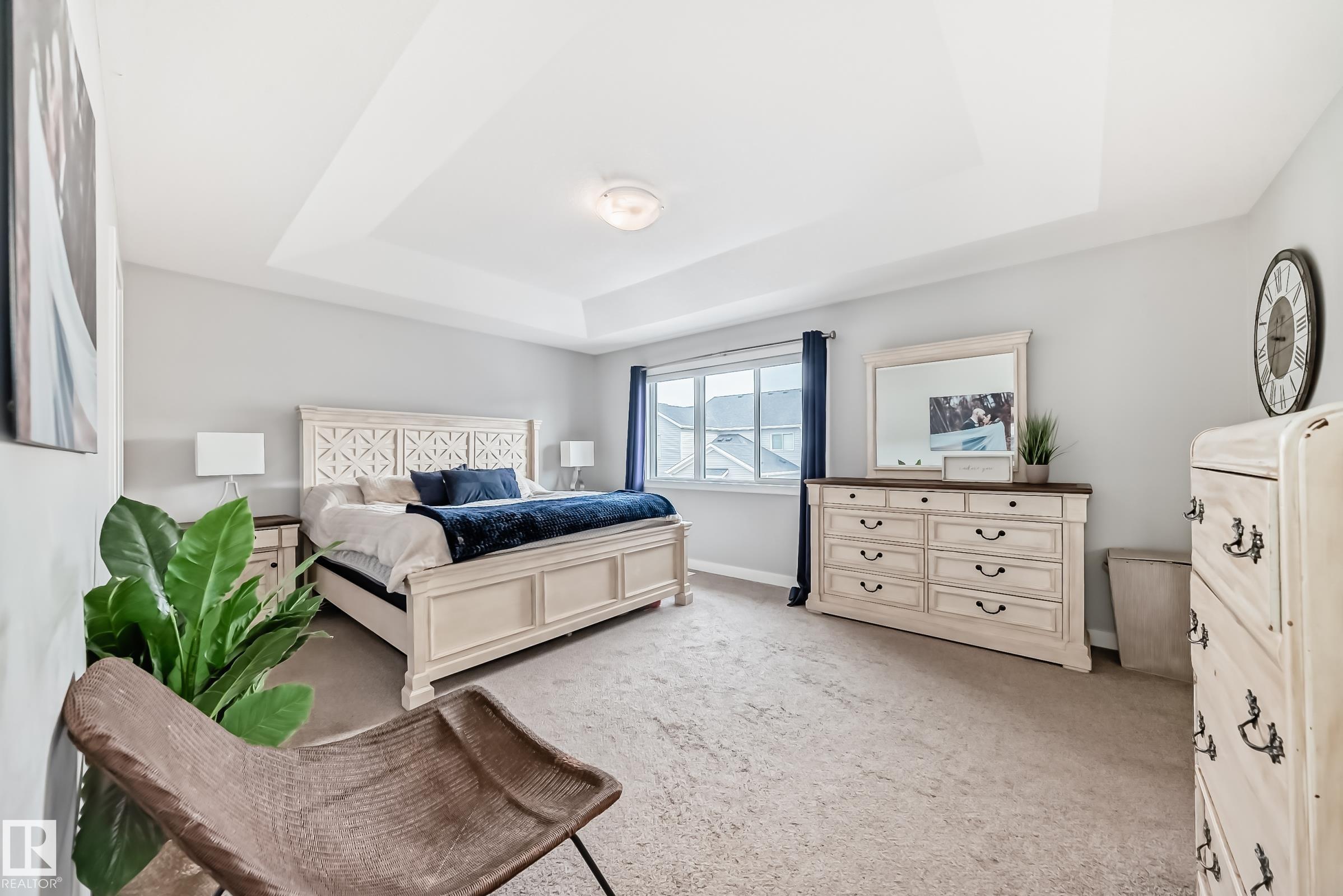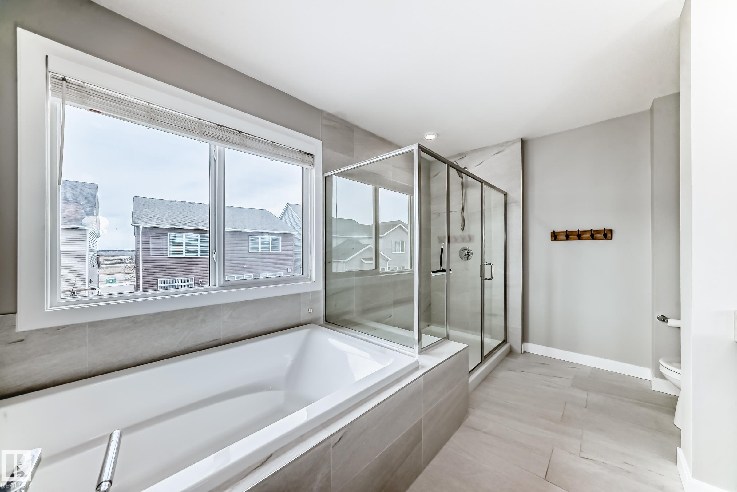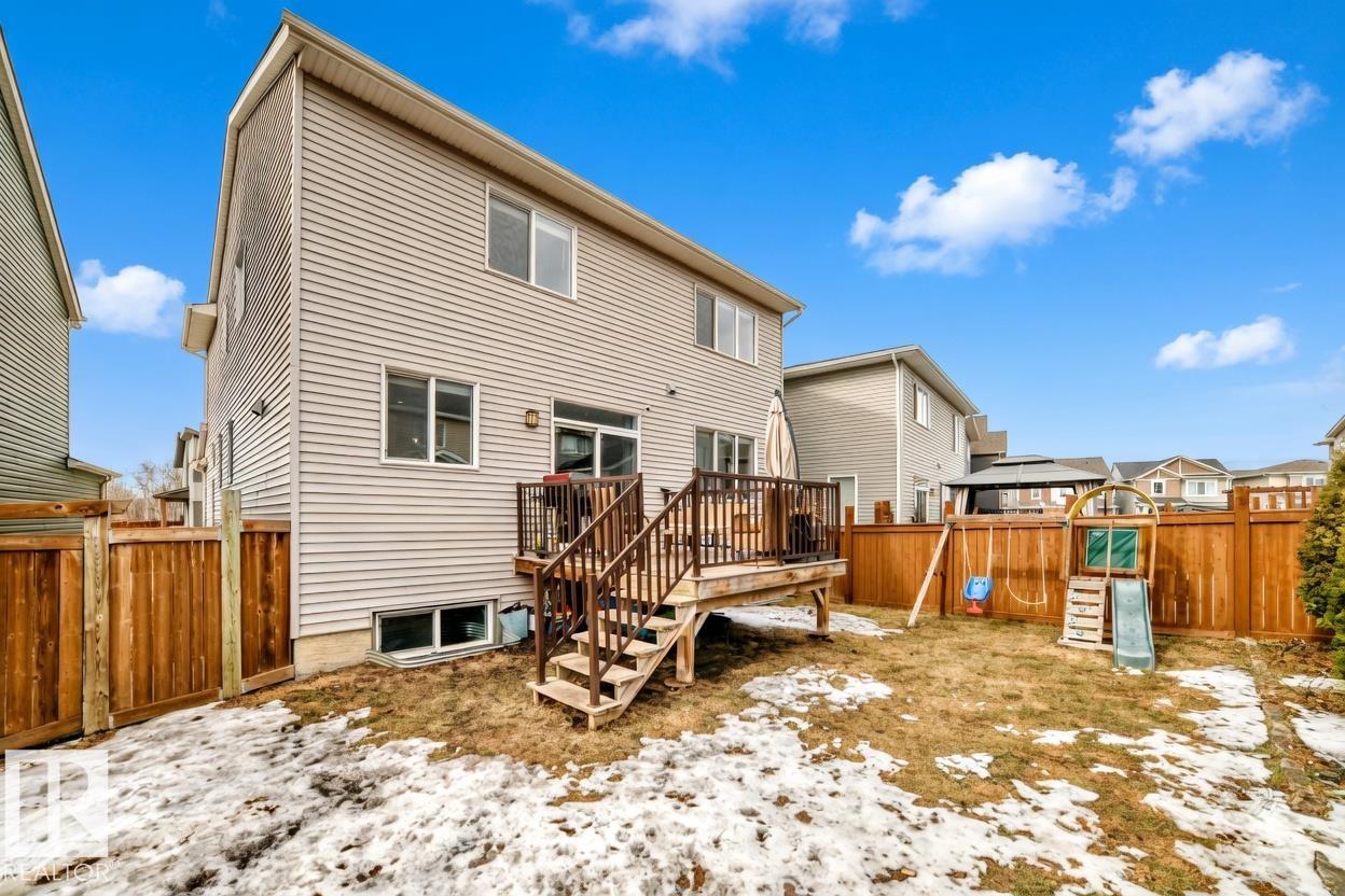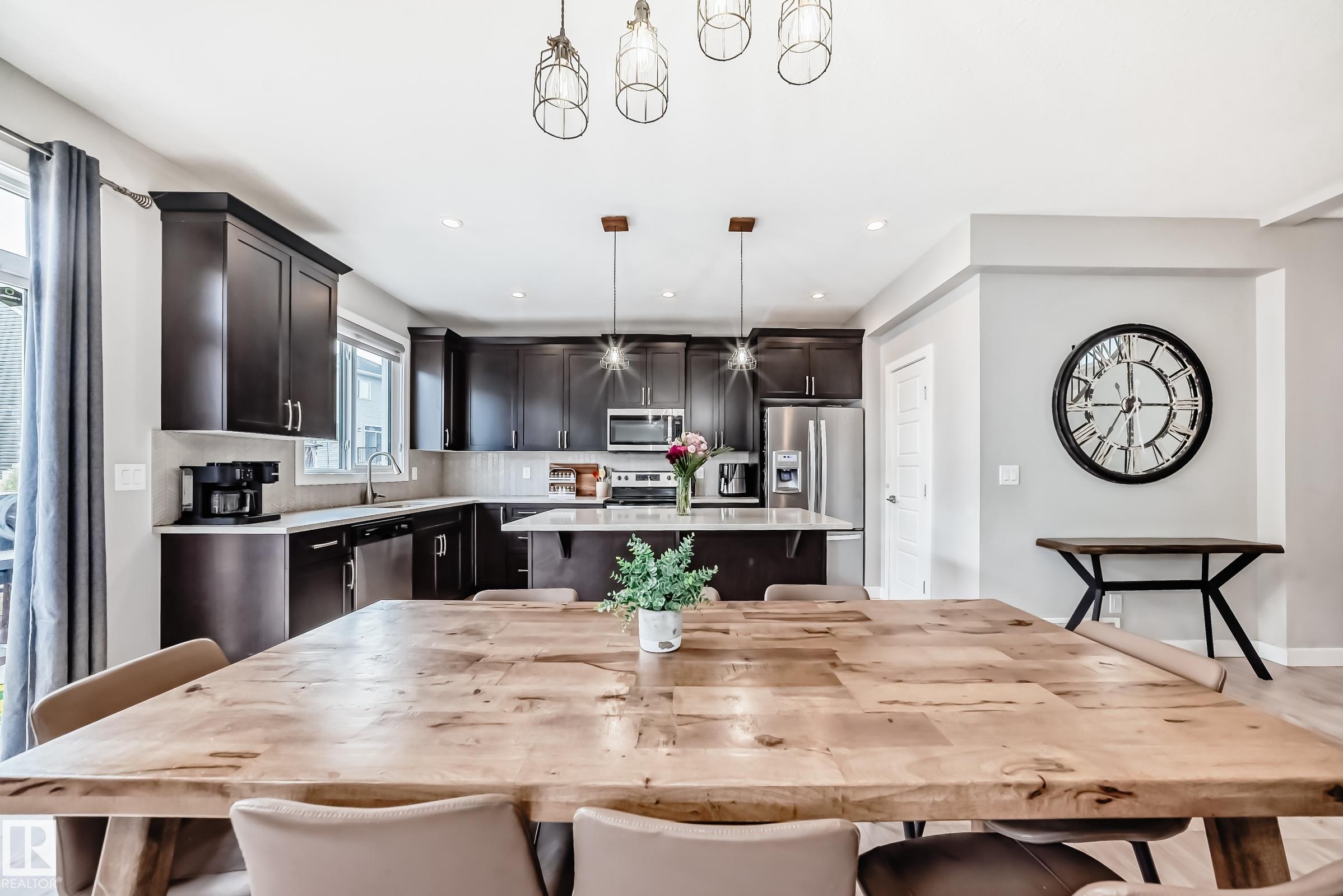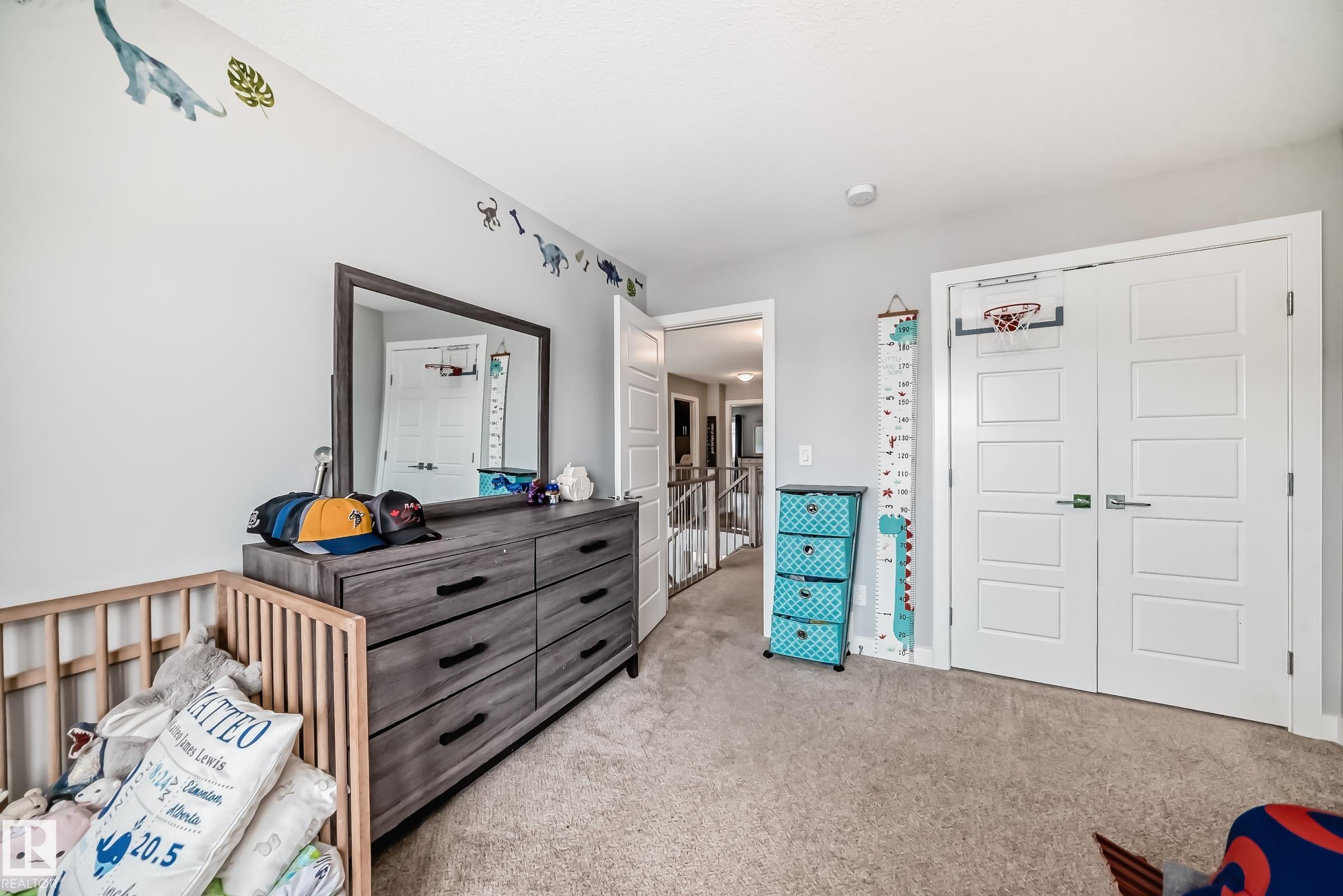 Welcome to the popular Banff model by Mattamy, located in the desirable quiet and relaxing community of Stillwater. This open-concept home offers luxury quality throughout and a functional layout perfect for families. The main floor features 9? ceilings, large windows for plenty of natural light, and a mix of carpet, ceramic tile, and vinyl plank flooring with flush-mount vents. The gourmet kitchen includes quartz countertops, stylish cabinetry, a large island with breakfast bar, and a spacious pantry. The living room is highlighted by a cozy gas fireplace located in a fantastic feature wall, while the dining area provides plenty of space for gatherings. Upstairs features a vaulted bonus room with access to a covered veranda, plus two generous bedrooms and a spacious primary suite with walk-in closet and ensuite. Conveniently located near shopping, amenities, West Edmonton Mall, and Anthony Henday Drive, this home offers comfort, space, and a unique design. Time to move in!
