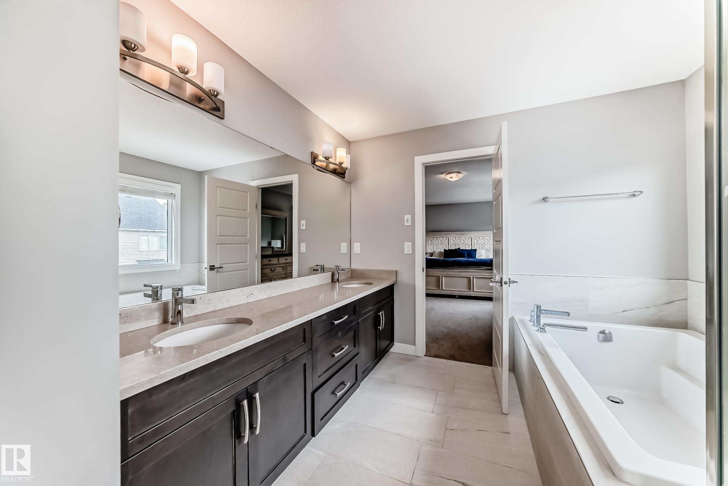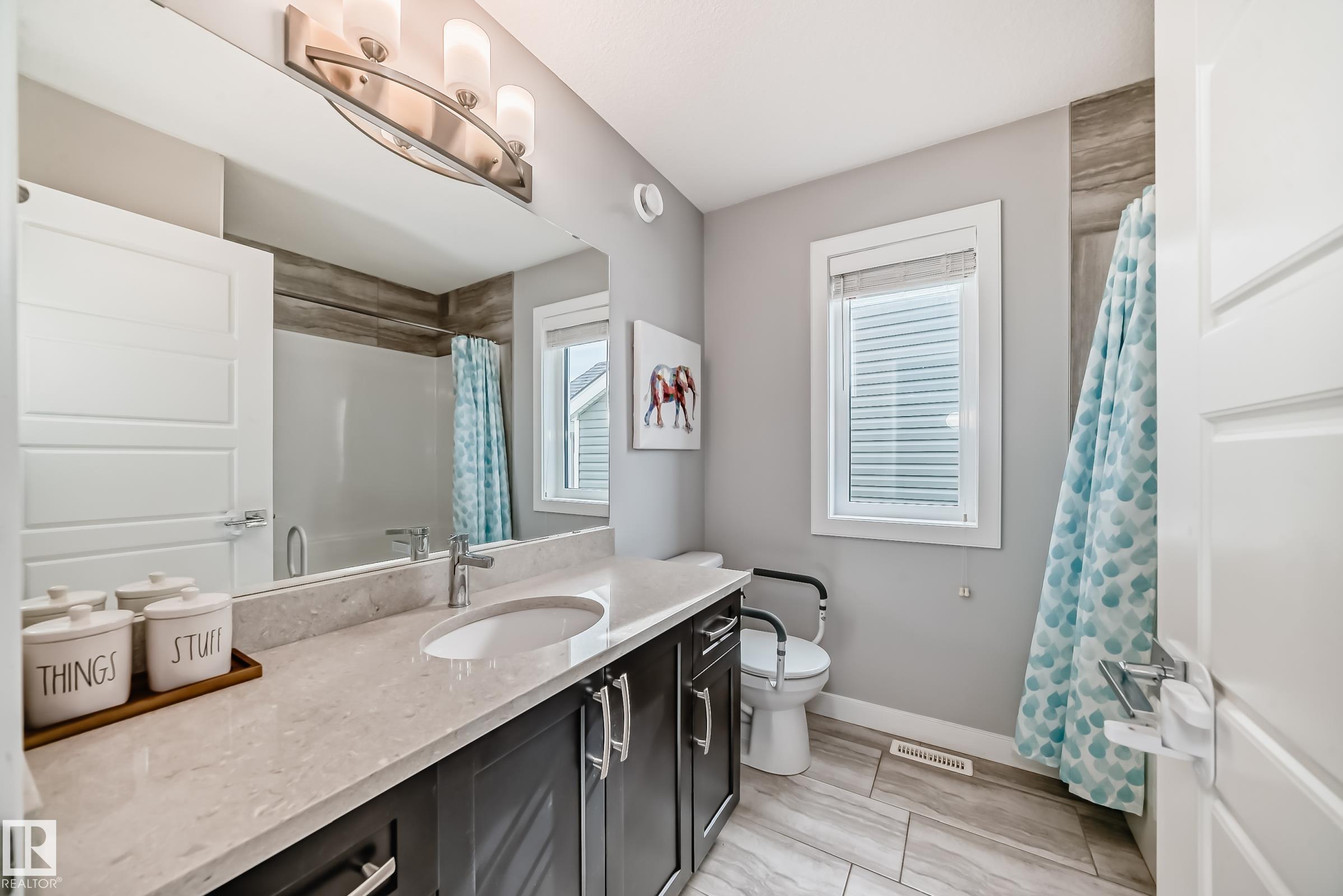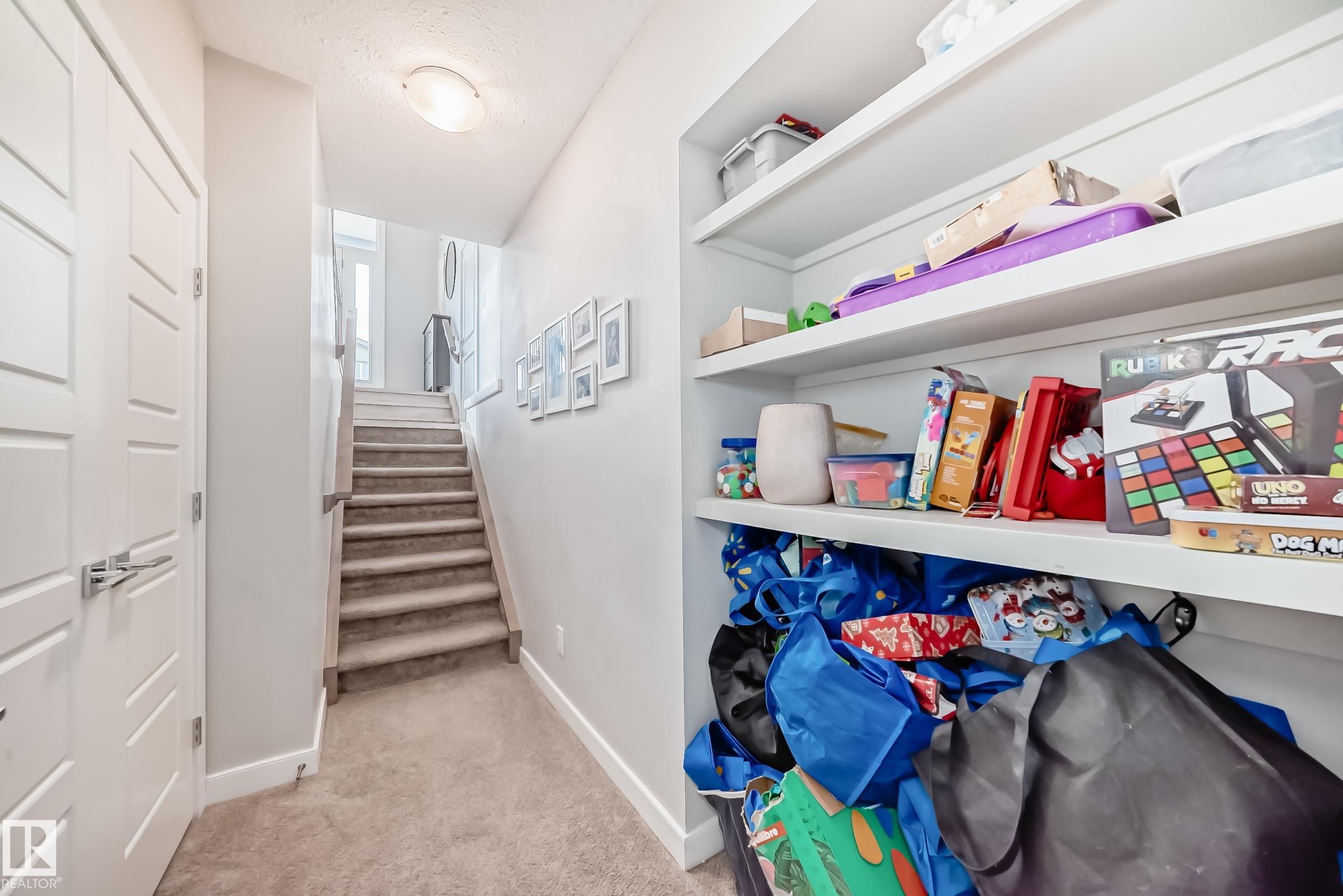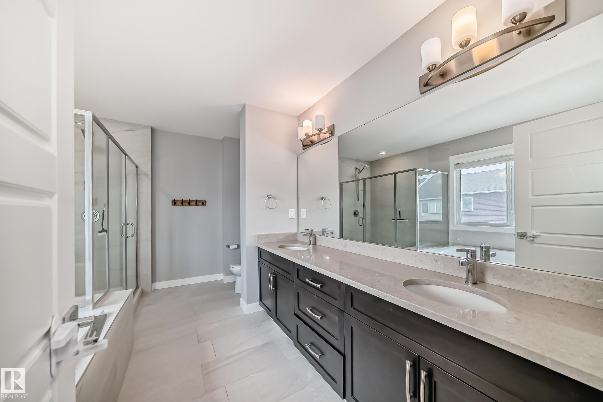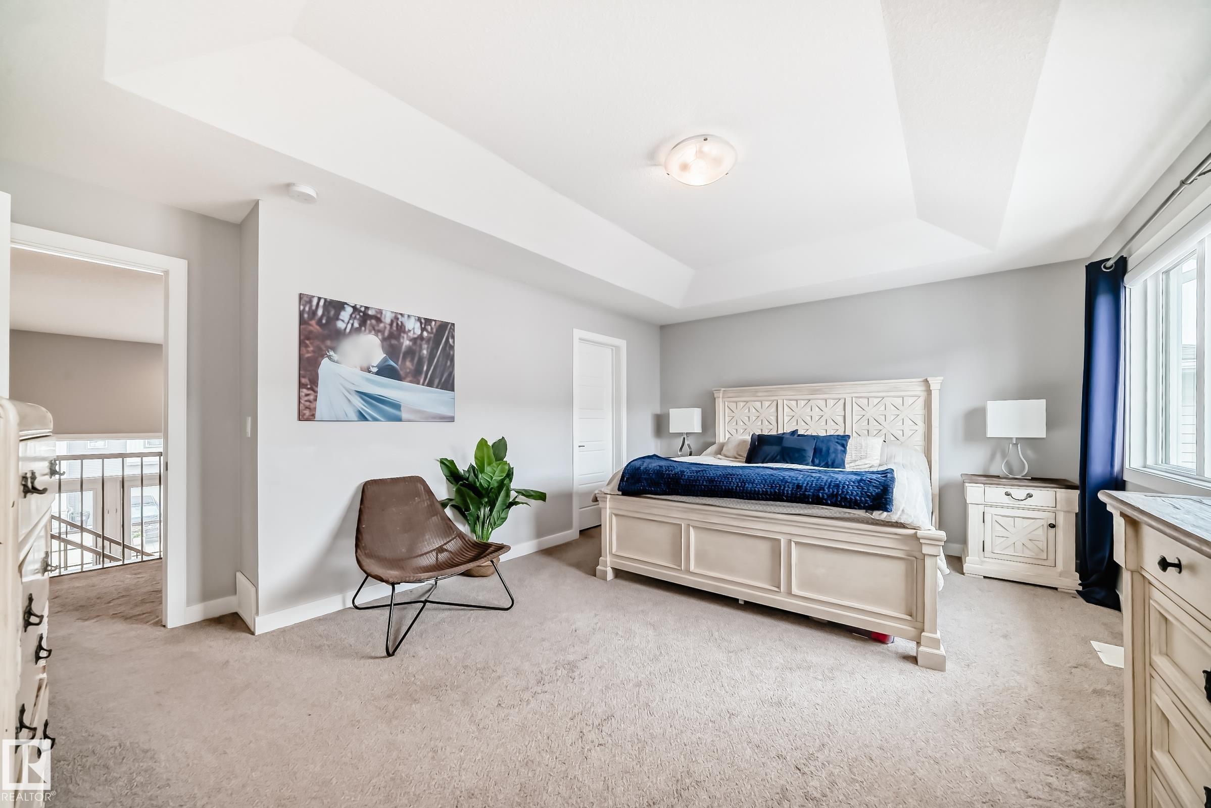 Welcome to the popular Banff model by Mattamy, located in the desirable quiet and relaxing community of Stillwater. This open-concept home offers luxury quality throughout and a functional layout perfect for families. The main floor features 9? ceilings, large windows for plenty of natural light, and a mix of carpet, ceramic tile, and vinyl plank flooring with flush-mount vents. The gourmet kitchen includes quartz countertops, stylish cabinetry, a large island with breakfast bar, and a spacious pantry. The living room is highlighted by a cozy gas fireplace located in a fantastic feature wall, while the dining area provides plenty of space for gatherings. Upstairs features a vaulted bonus room with access to a covered veranda, plus two generous bedrooms and a spacious primary suite with walk-in closet and ensuite. Conveniently located near shopping, amenities, West Edmonton Mall, and Anthony Henday Drive, this home offers comfort, space, and a unique design. Time to move in!