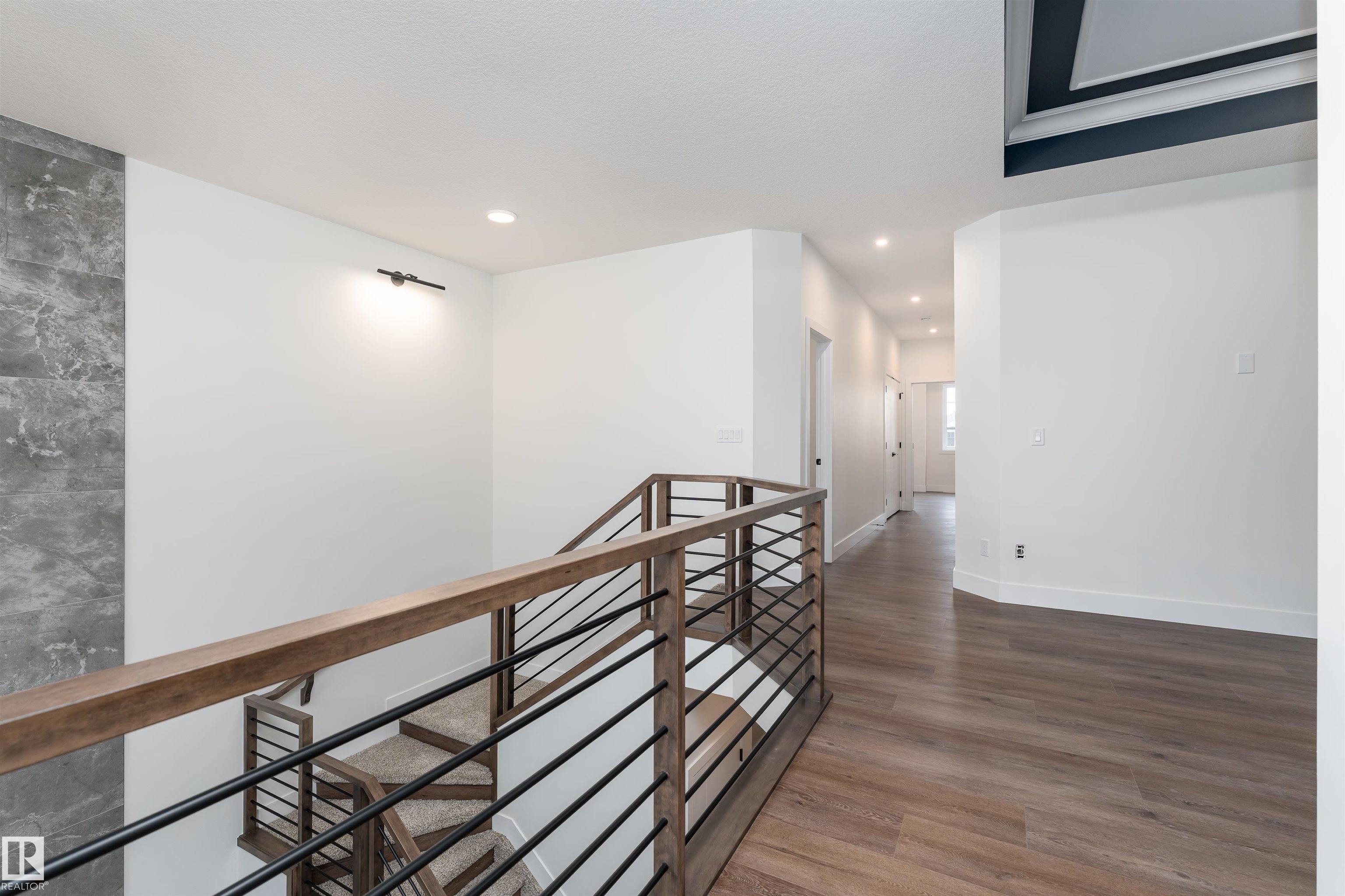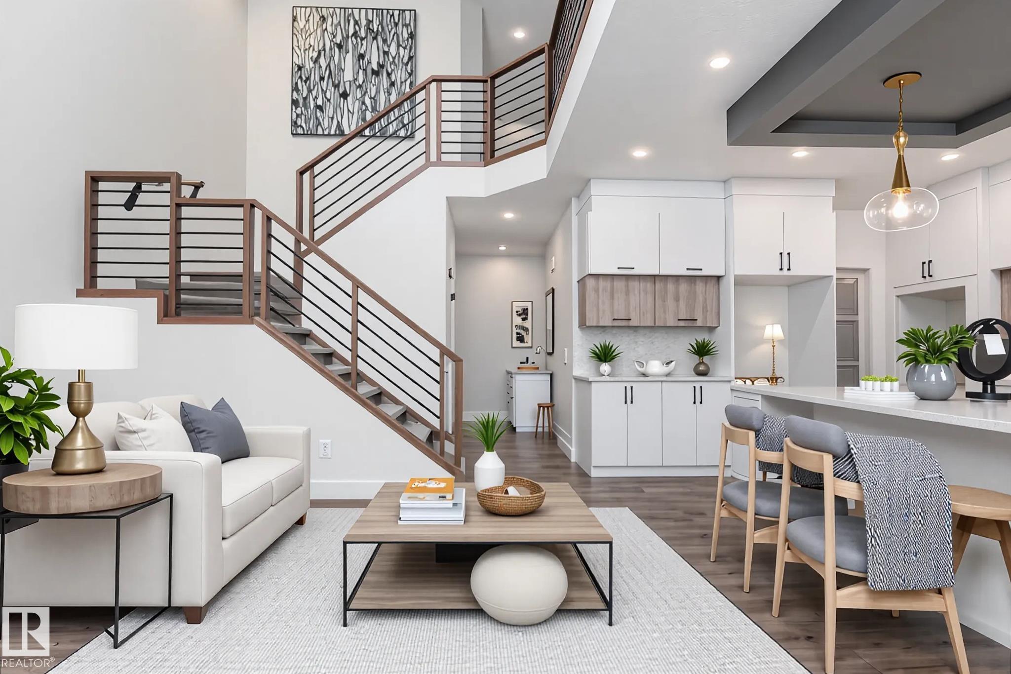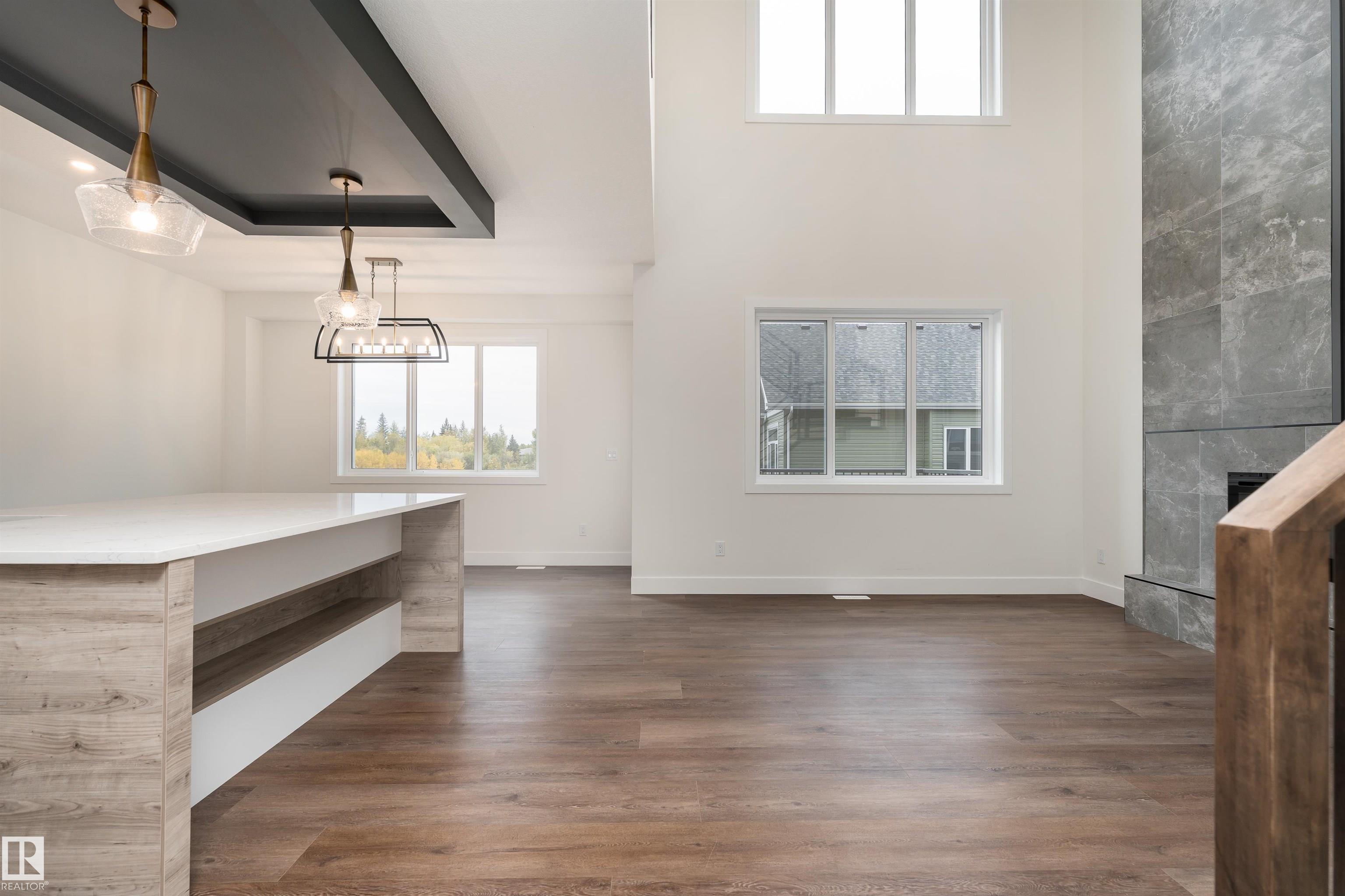 Step into luxury in this brand new, never occupied 2,150 sq ft 2-storey offers a walkout basement, separate entrance, and oversized 3-car garage. Soaring ceilings and an open-concept layout showcase a bright white kitchen with a showpiece island, walk-in pantry, and a dining area surrounded by windows with balcony access. The living room features a dramatic floor-to-ceiling tiled fireplace, while a main floor bedroom and 2-piece bath add convenience. Upstairs, the primary suite shines with a textured accent wall, spa-inspired ensuite with double sinks, soaker tub, stand-up shower, and a walk-through to a spacious walk-in closet. Two more bedrooms, a 3-piece bath, upstairs laundry, and an open family room complete the level. The walkout basement offers potential for a suite, and the oversized 3-car garage easily fits RVs, trucks, or a lift. Close to Gibbons Country Club, Oliver Park, and Gibbons Town Centre, this home is the perfect mix of elegance, function, and lifestyle. Some photos are virtually staged