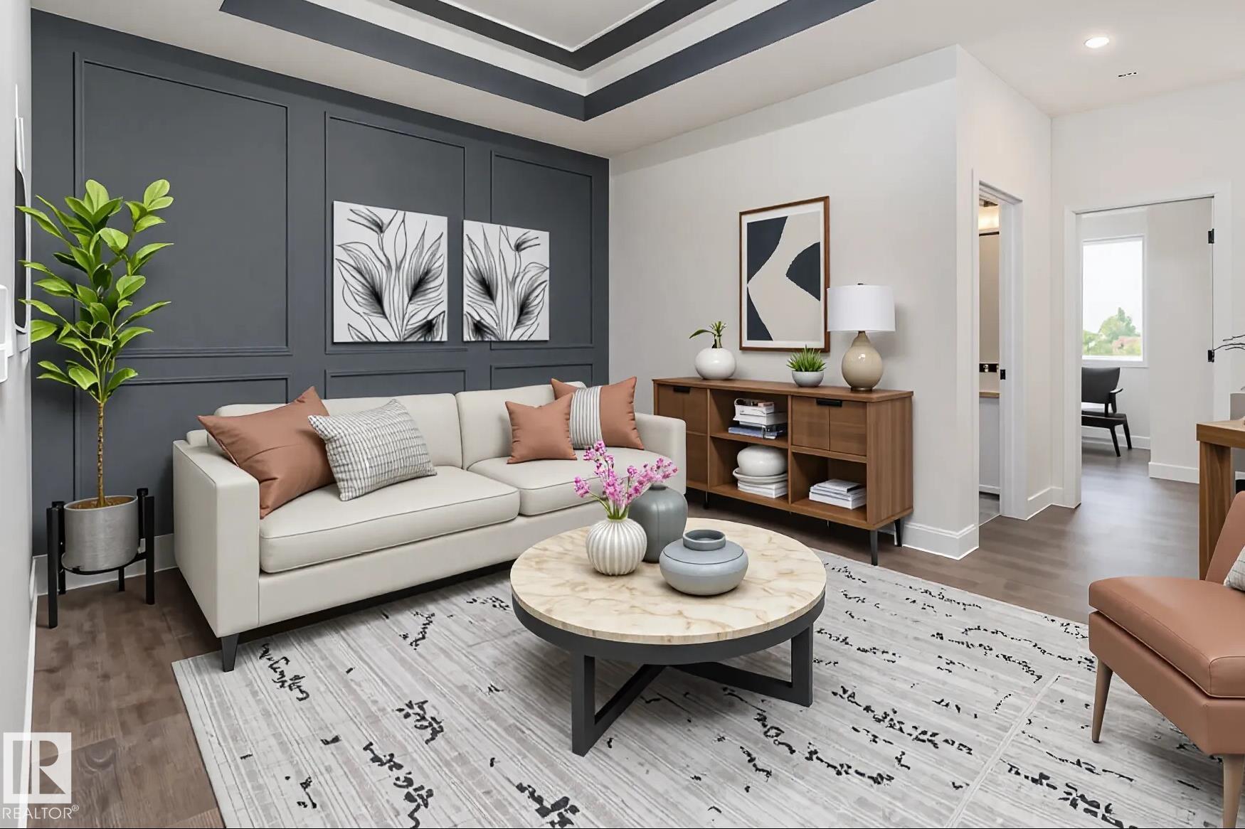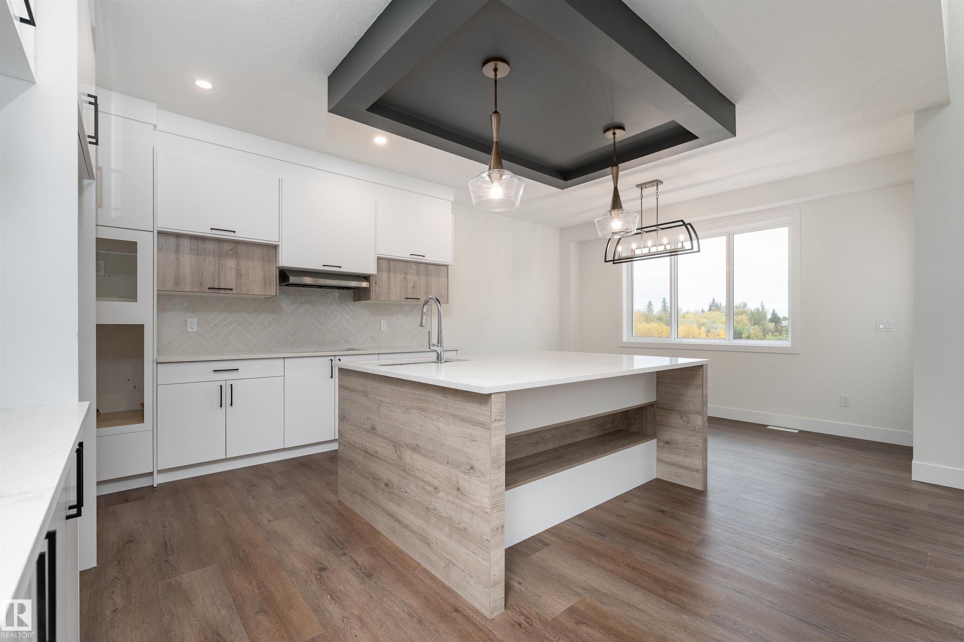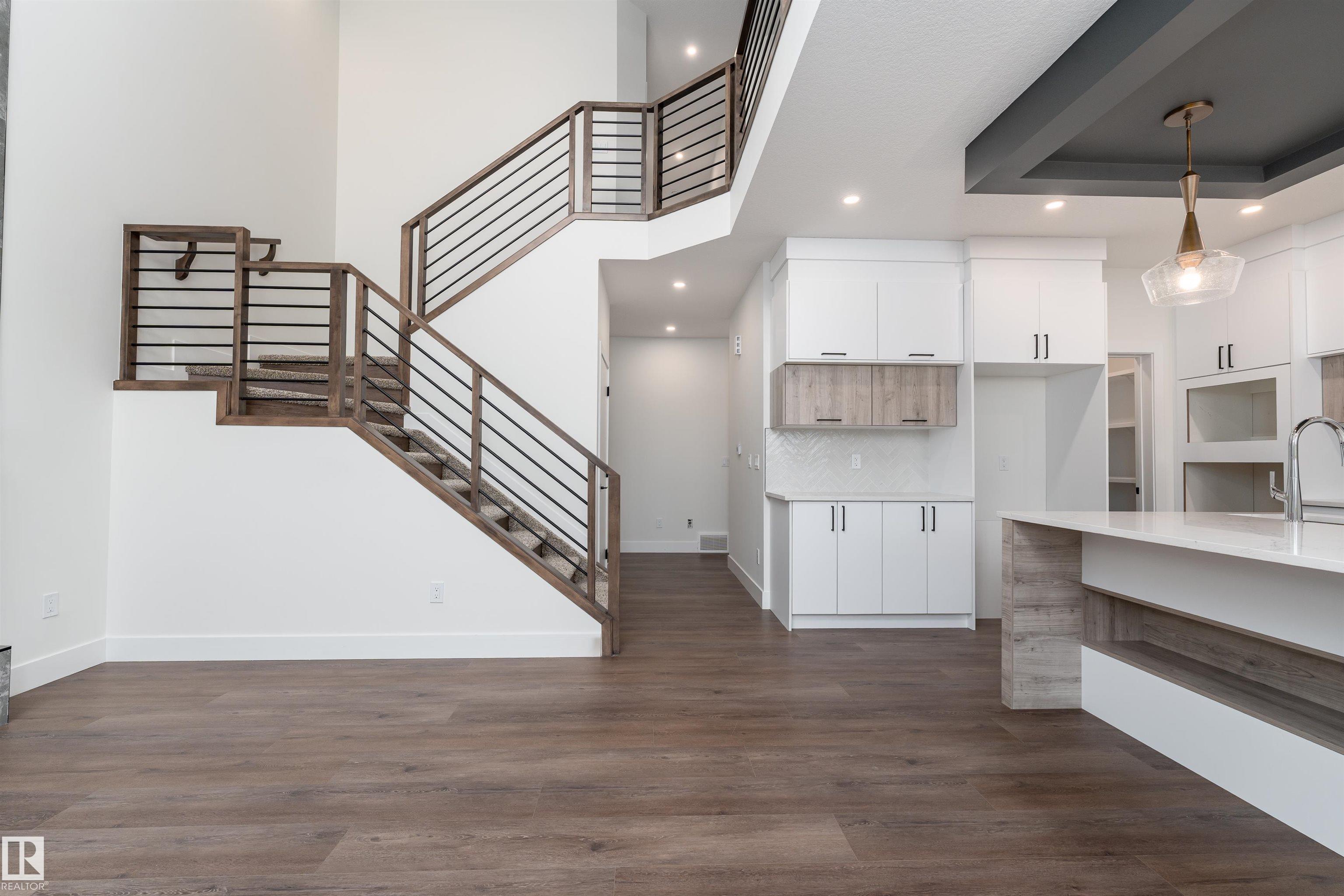 Step into luxury in this brand new, never occupied 2,150 sq ft 2-storey offers a walkout basement, separate entrance, and oversized 3-car garage. Soaring ceilings and an open-concept layout showcase a bright white kitchen with a showpiece island, walk-in pantry, and a dining area surrounded by windows with balcony access. The living room features a dramatic floor-to-ceiling tiled fireplace, while a main floor bedroom and 2-piece bath add convenience. Upstairs, the primary suite shines with a textured accent wall, spa-inspired ensuite with double sinks, soaker tub, stand-up shower, and a walk-through to a spacious walk-in closet. Two more bedrooms, a 3-piece bath, upstairs laundry, and an open family room complete the level. The walkout basement offers potential for a suite, and the oversized 3-car garage easily fits RVs, trucks, or a lift. Close to Gibbons Country Club, Oliver Park, and Gibbons Town Centre, this home is the perfect mix of elegance, function, and lifestyle. Some photos are virtually staged