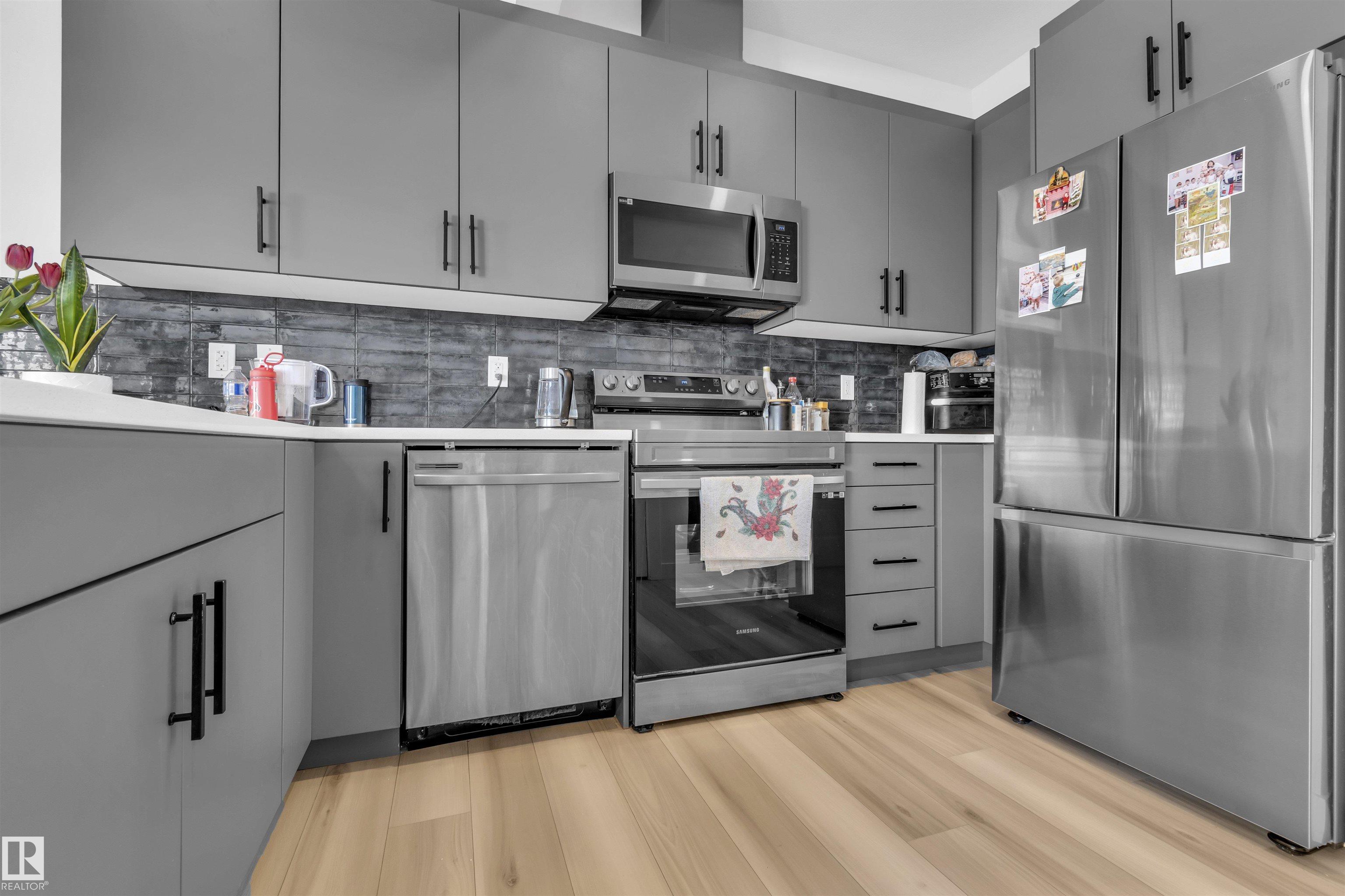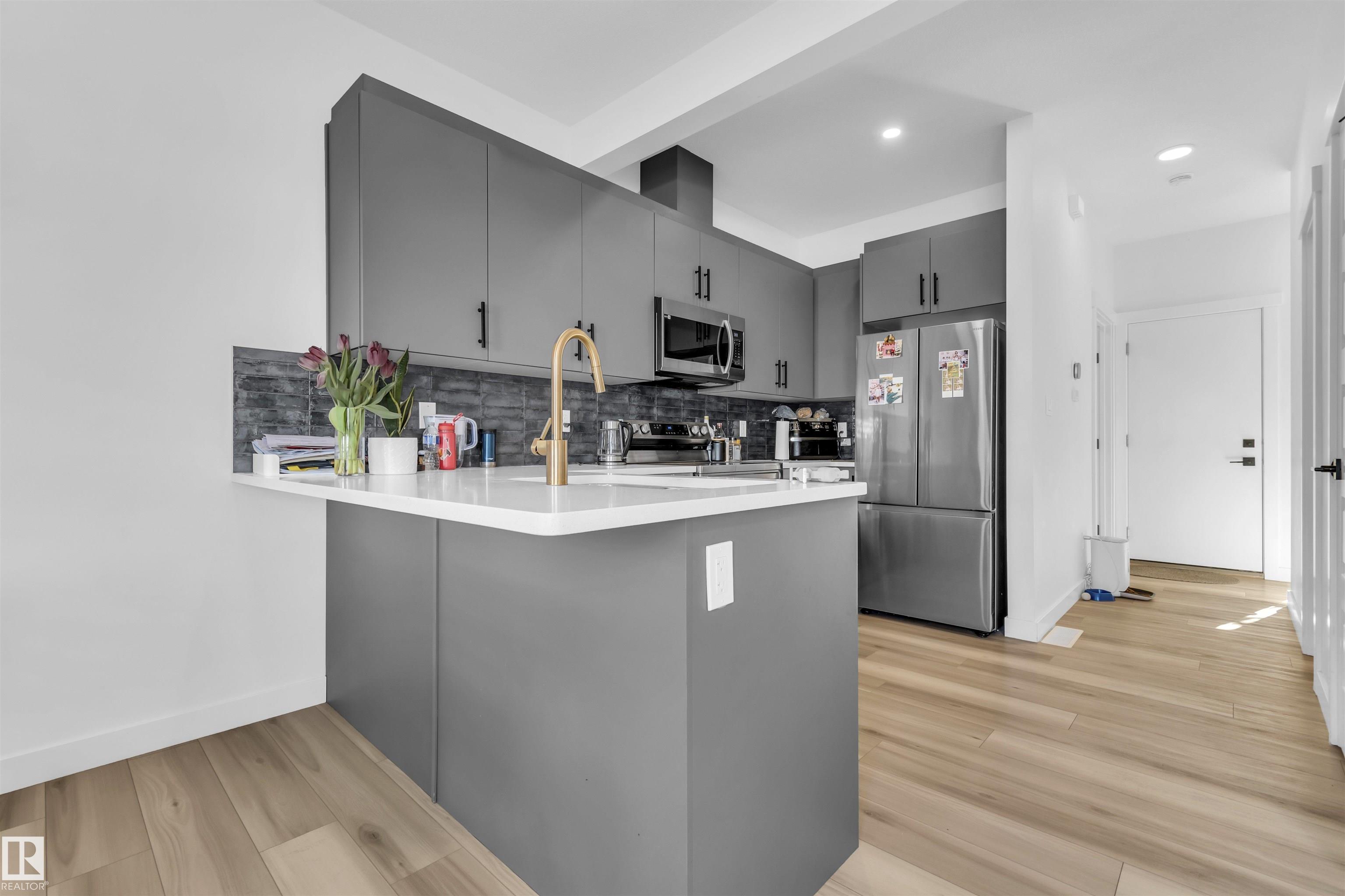 Begin your next chapter in Edmonton?s vibrant community of Cavanagh. This modern PARKWOOD BUILDER BUILT CORNER unit offers 3 bedrooms, 2.5 baths, a single attached garage, and over 1200.0 square feet of stylish living space. Step inside to find luxurious features like vinyl plank flooring, 9-foot ceilings, quartz countertops, and designer lighting. The spacious front entry flows seamlessly into a bright, open living area, complete with a sleek kitchen featuring warm cabinetry, an island with a breakfast bar, lots of storage . Upstairs, the primary suite boasts a luxurious ensuite and a mid size walk-in closet, offering a peaceful retreat. The single garage provides ample parking for a mid size SUV. Additional highlights include laundry and an unfinished basement ready for your personal touch. Within walking distance to shops and schools, with easy access to major routes, close to Edmonton south common , airports and walking trails, this property is an opportunity you won?t want to miss!