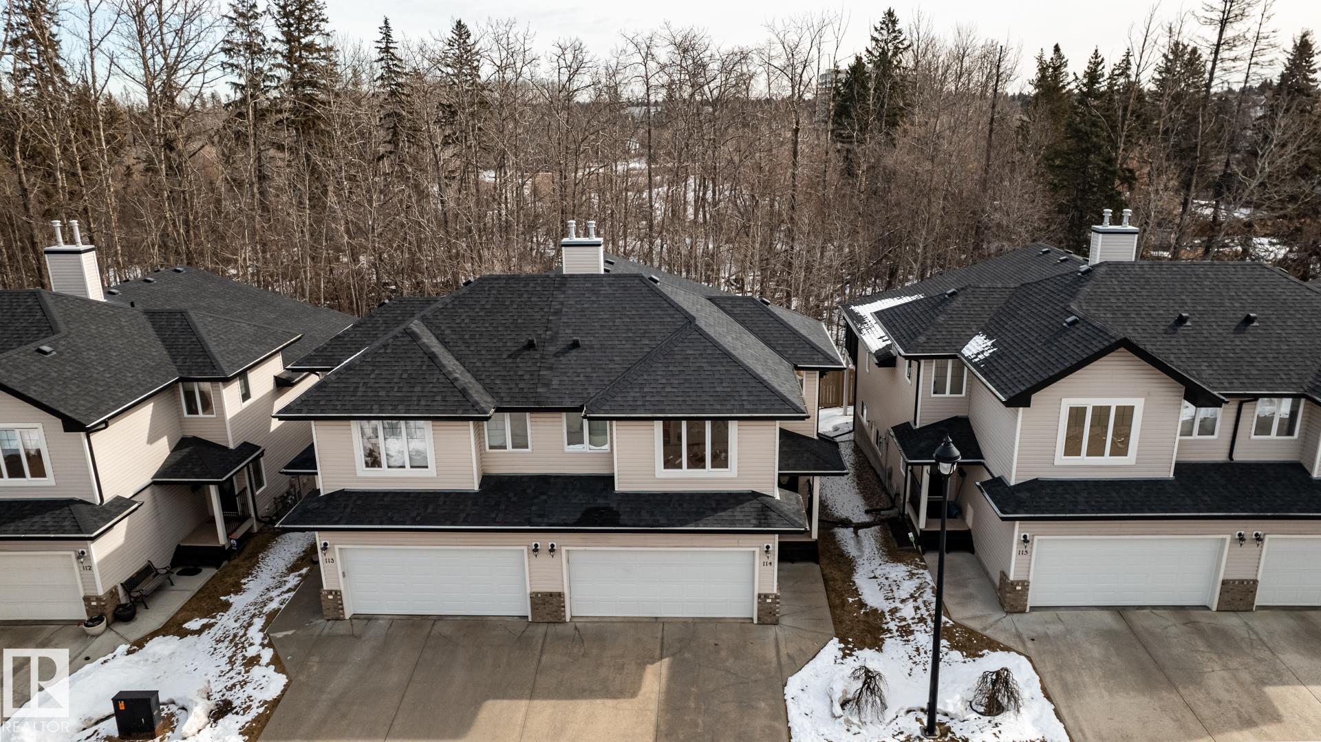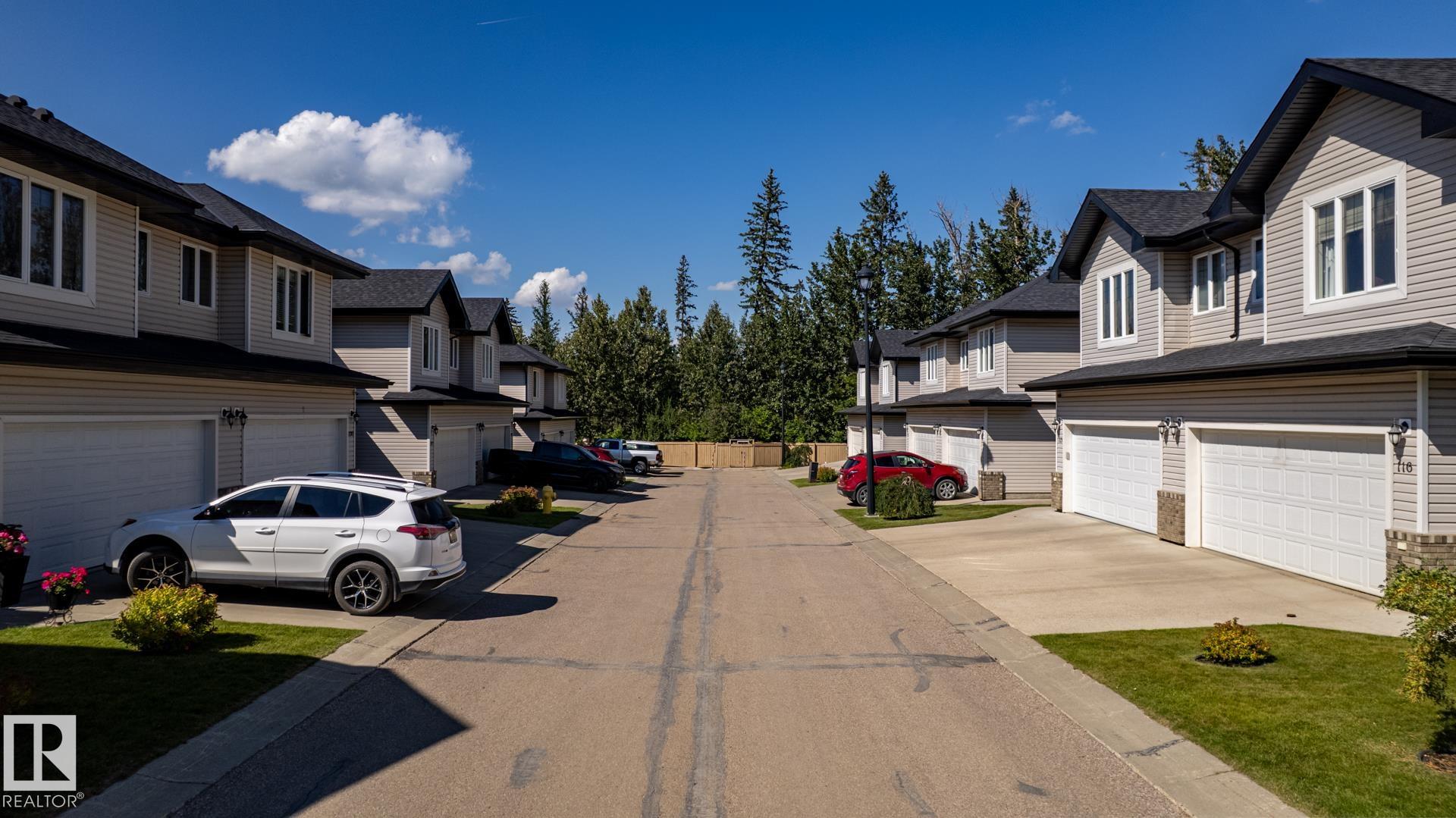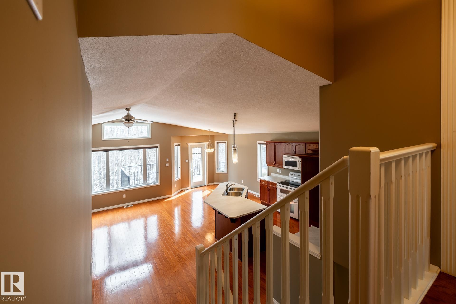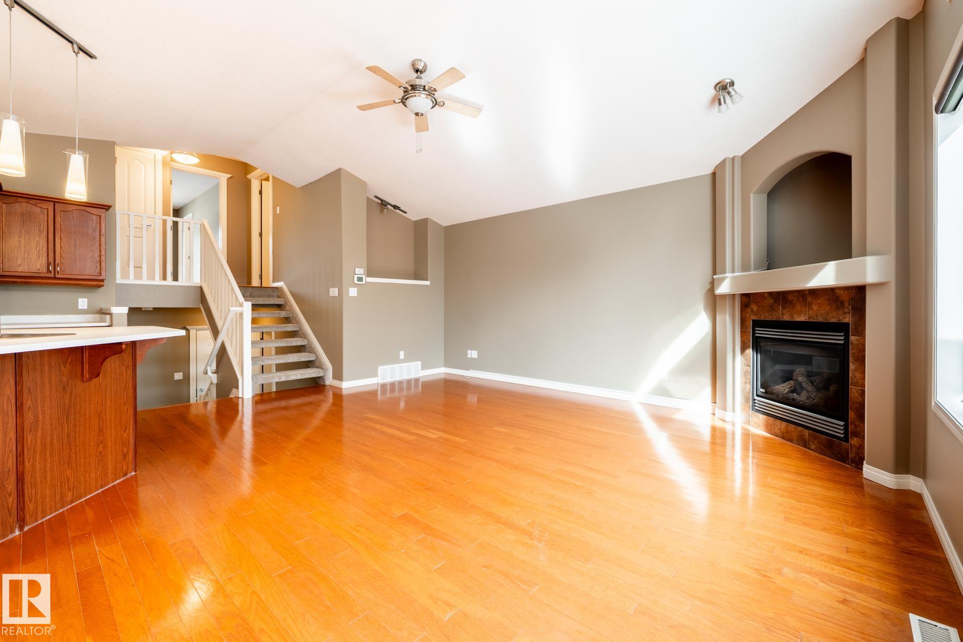 Welcome to Regal Point, an 18+ age-restricted community backing onto the beautifully treed Heritage Park trail in central Spruce Grove, near Queen Street Medical Centre. This well-maintained, 3-level split was built in 2006 & offers over 1,800 sf of developed living space. Generous front entry transitions smoothly to the double (18?Wx20?L) attached garage & laundry room. Impressive main floor features a great room concept w/ vaulted ceiling, hardwood flooring, corner gas f/p, many windows, kitchen w/ brand new countertops & corner pantry. Enjoy your morning coffee on your east-facing balcony. Upstairs: 4-pc bath, 2 bedrooms including the over-sized primary w/ walk-in closet & 4-pc ensuite. Professionally developed 3rd level has just been completed to include a 4-pc bath & WALK-OUT family room w/ sliding patio door access to the covered rear patio. Upgrades: New Carpet, A/C, Refrigerator (2020), Dishwasher (2024), HWT (2021) & Shingles (2019). Only $145/month for lawn maintenance & street snow removal!