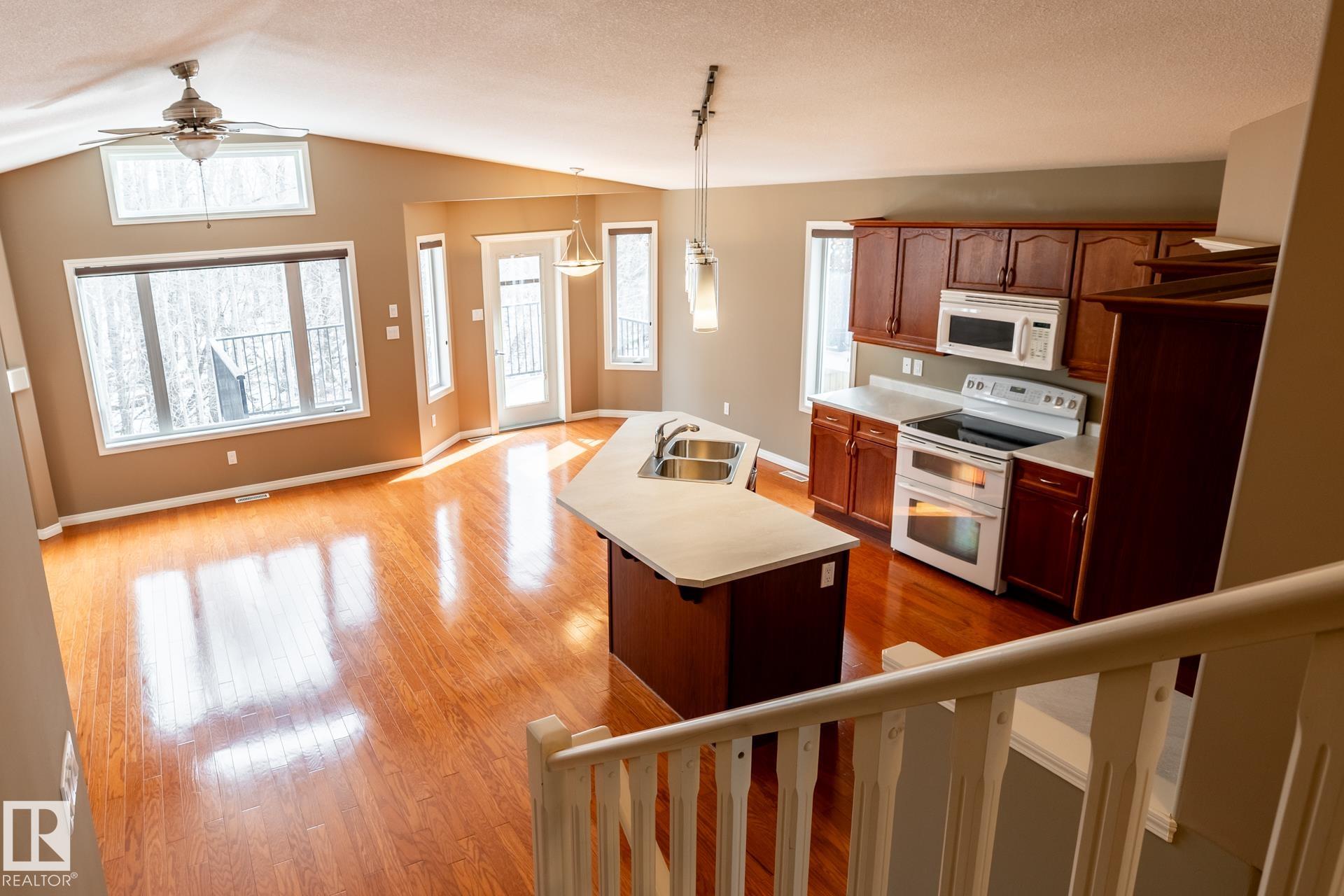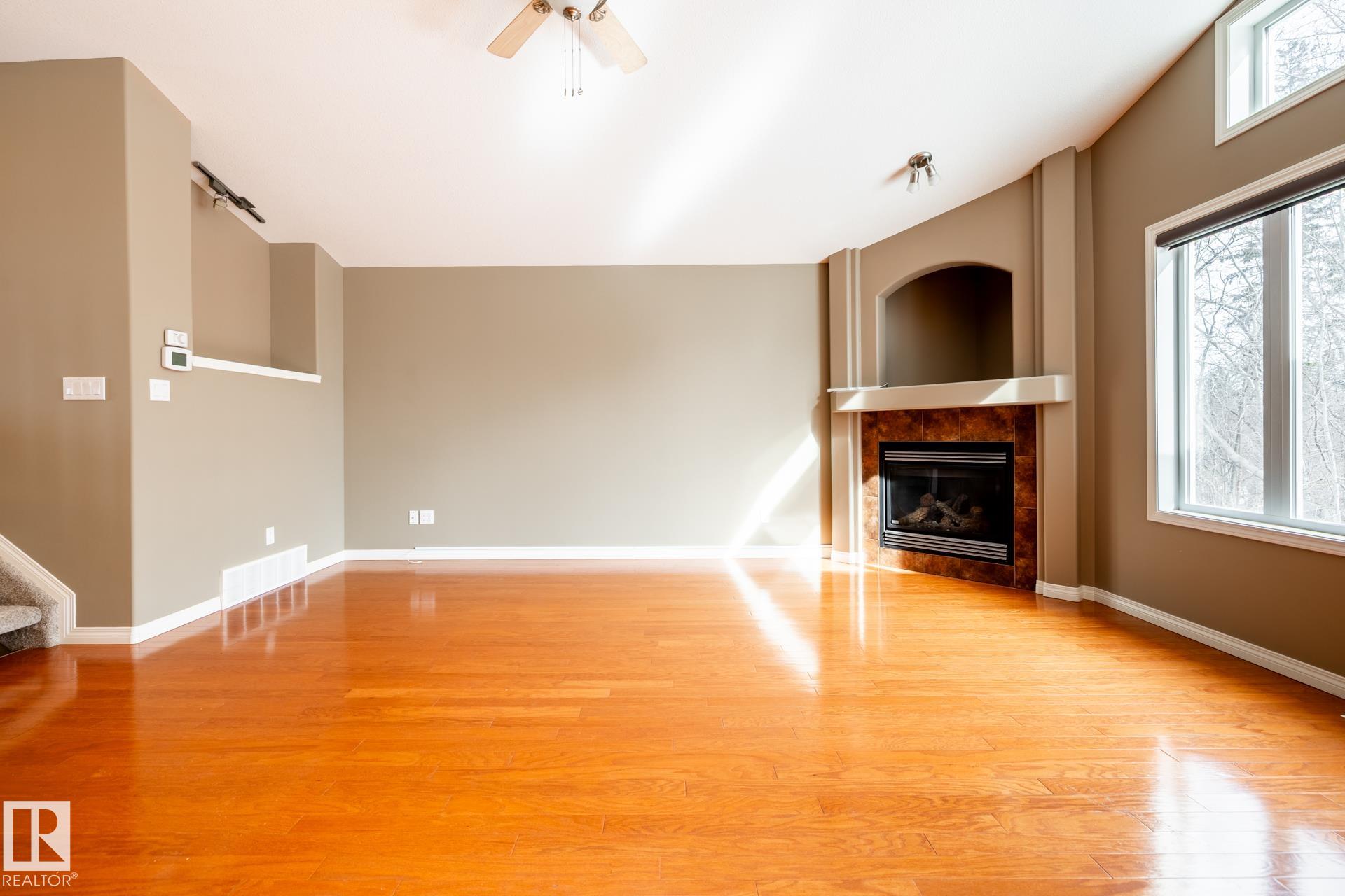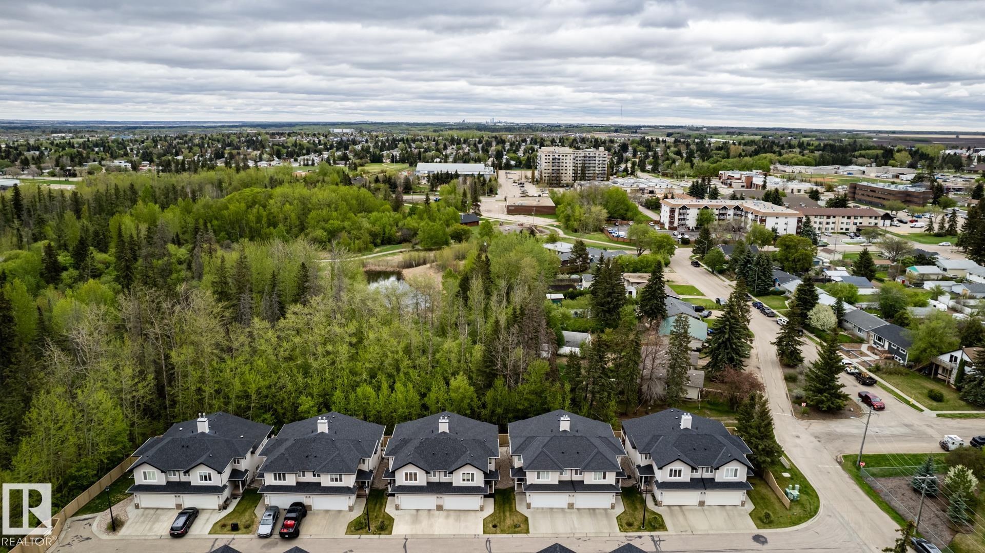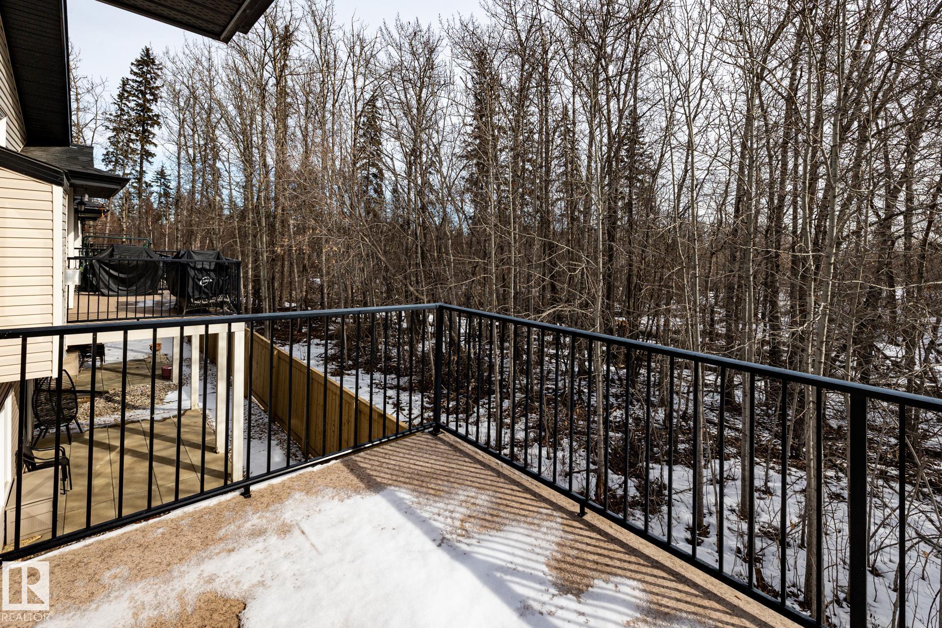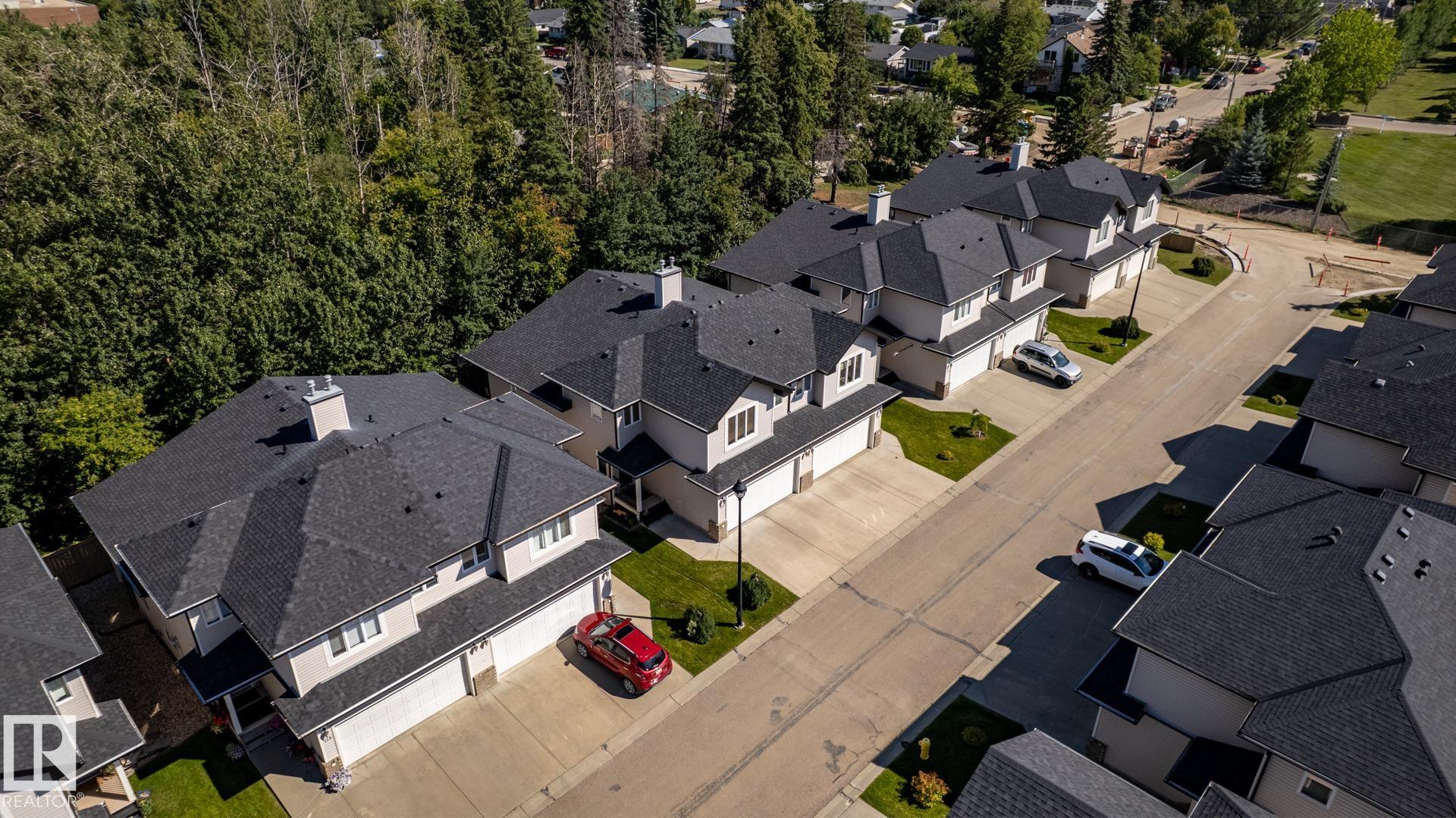 Welcome to Regal Point, an 18+ age-restricted community backing onto the beautifully treed Heritage Park trail in central Spruce Grove, near Queen Street Medical Centre. This well-maintained, 3-level split was built in 2006 & offers over 1,800 sf of developed living space. Generous front entry transitions smoothly to the double (18?Wx20?L) attached garage & laundry room. Impressive main floor features a great room concept w/ vaulted ceiling, hardwood flooring, corner gas f/p, many windows, kitchen w/ brand new countertops & corner pantry. Enjoy your morning coffee on your east-facing balcony. Upstairs: 4-pc bath, 2 bedrooms including the over-sized primary w/ walk-in closet & 4-pc ensuite. Professionally developed 3rd level has just been completed to include a 4-pc bath & WALK-OUT family room w/ sliding patio door access to the covered rear patio. Upgrades: New Carpet, A/C, Refrigerator (2020), Dishwasher (2024), HWT (2021) & Shingles (2019). Only $145/month for lawn maintenance & street snow removal!