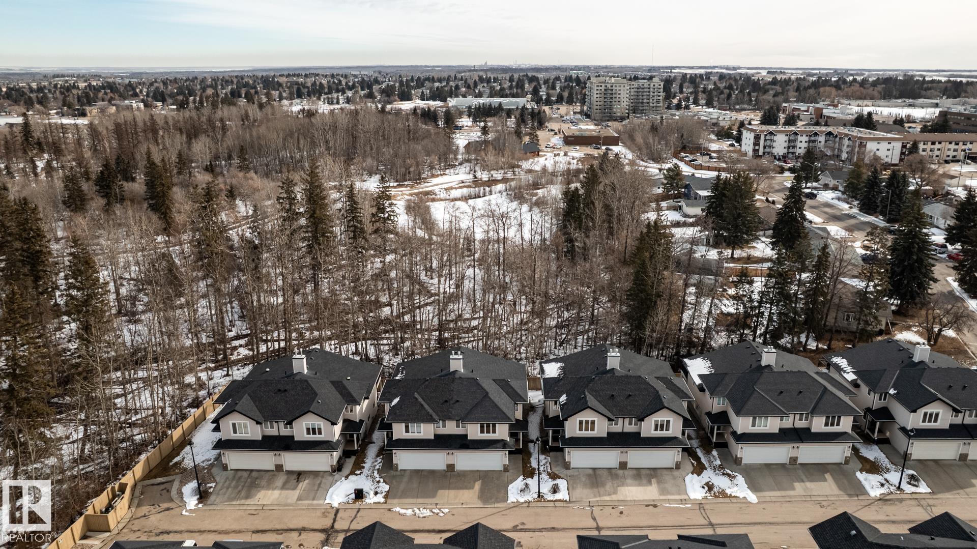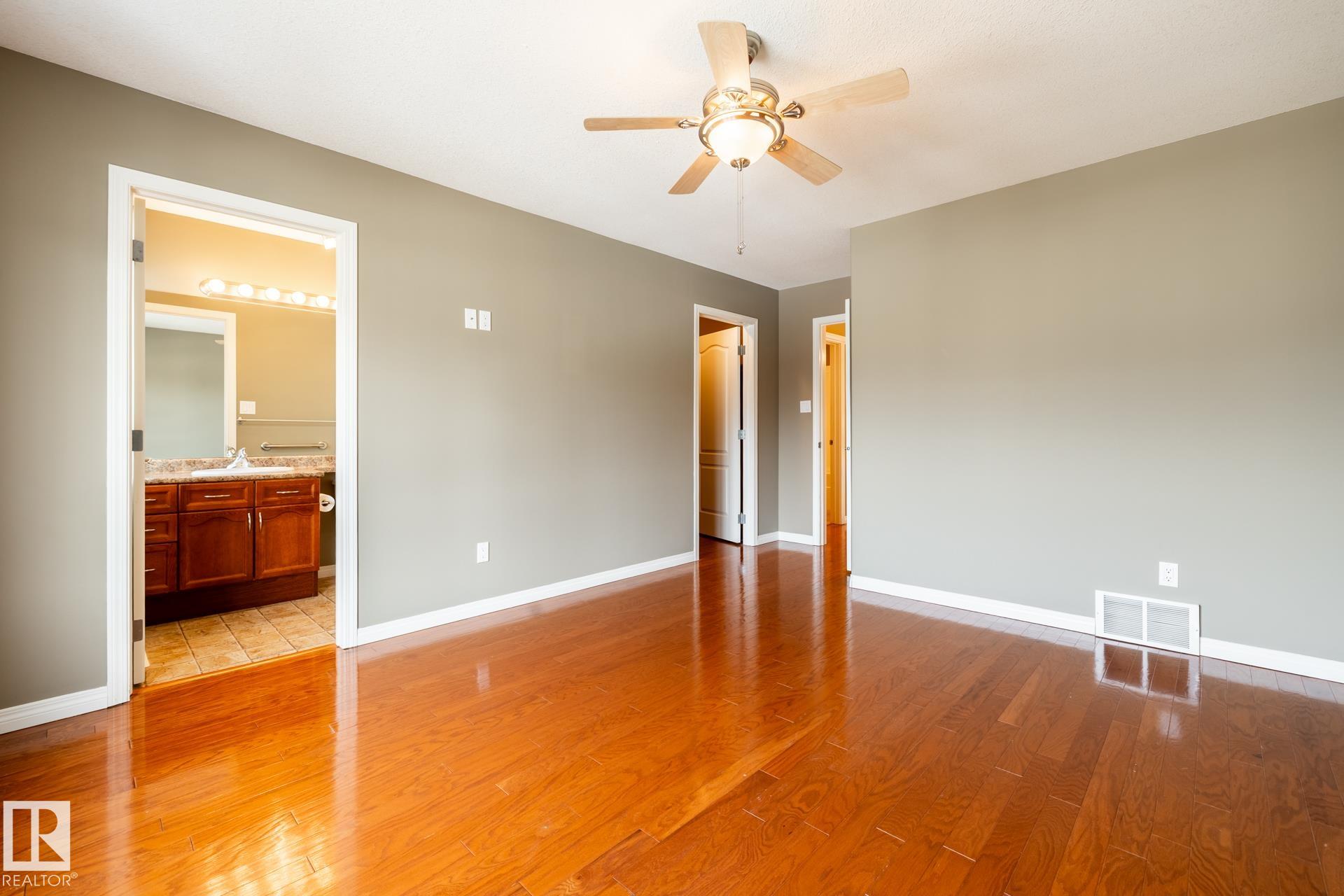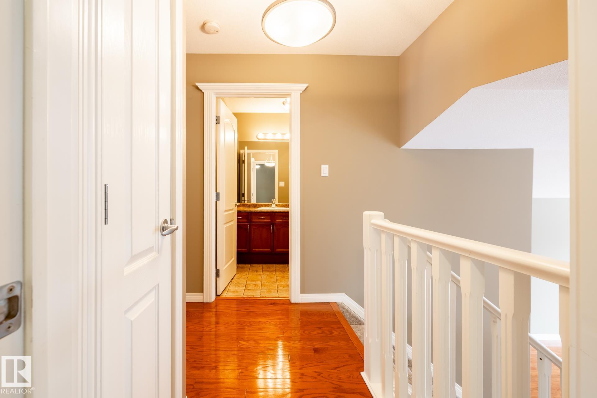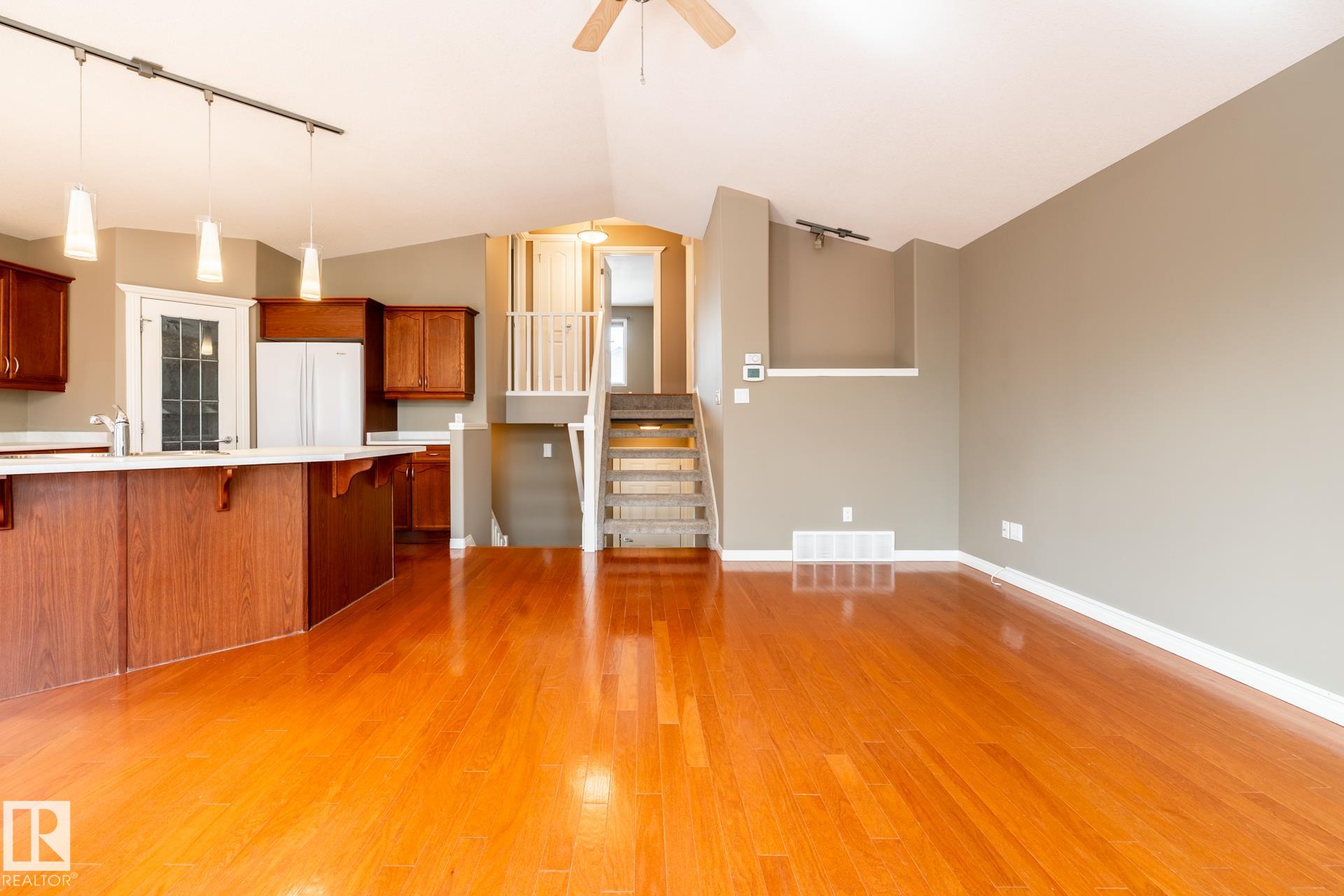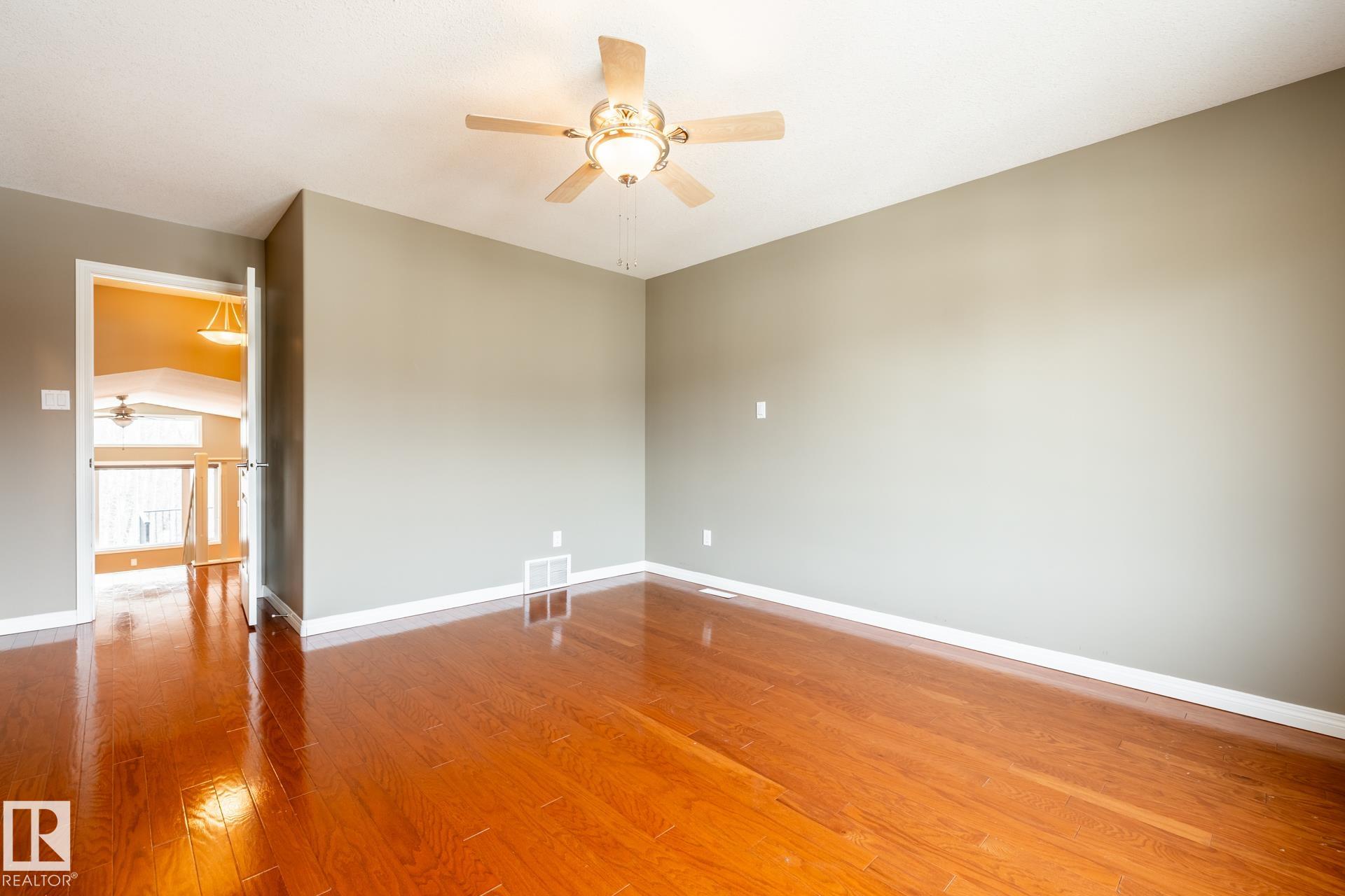 Welcome to Regal Point, an 18+ age-restricted community backing onto the beautifully treed Heritage Park trail in central Spruce Grove, near Queen Street Medical Centre. This well-maintained, 3-level split was built in 2006 & offers over 1,800 sf of developed living space. Generous front entry transitions smoothly to the double (18?Wx20?L) attached garage & laundry room. Impressive main floor features a great room concept w/ vaulted ceiling, hardwood flooring, corner gas f/p, many windows, kitchen w/ brand new countertops & corner pantry. Enjoy your morning coffee on your east-facing balcony. Upstairs: 4-pc bath, 2 bedrooms including the over-sized primary w/ walk-in closet & 4-pc ensuite. Professionally developed 3rd level has just been completed to include a 4-pc bath & WALK-OUT family room w/ sliding patio door access to the covered rear patio. Upgrades: New Carpet, A/C, Refrigerator (2020), Dishwasher (2024), HWT (2021) & Shingles (2019). Only $145/month for lawn maintenance & street snow removal!