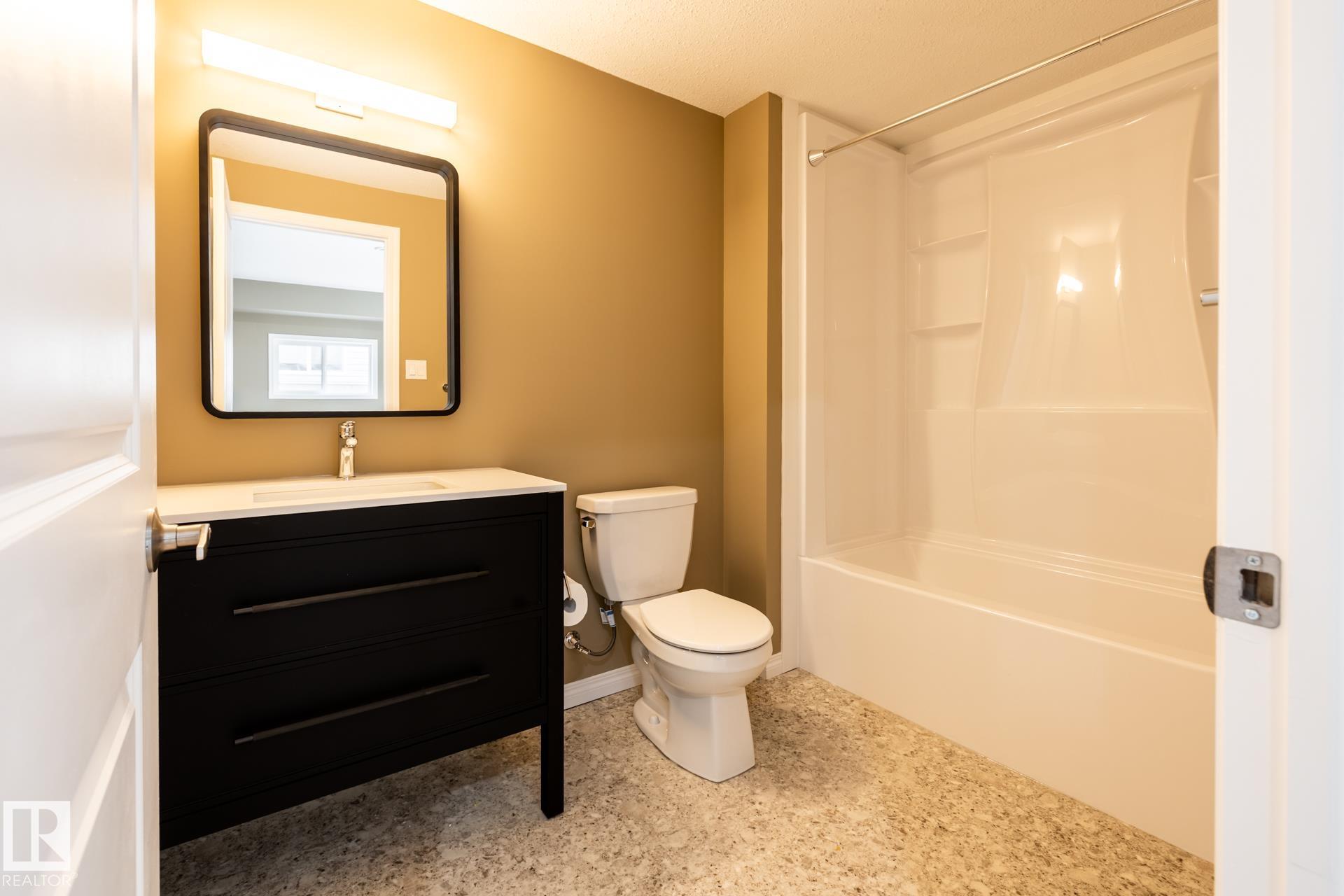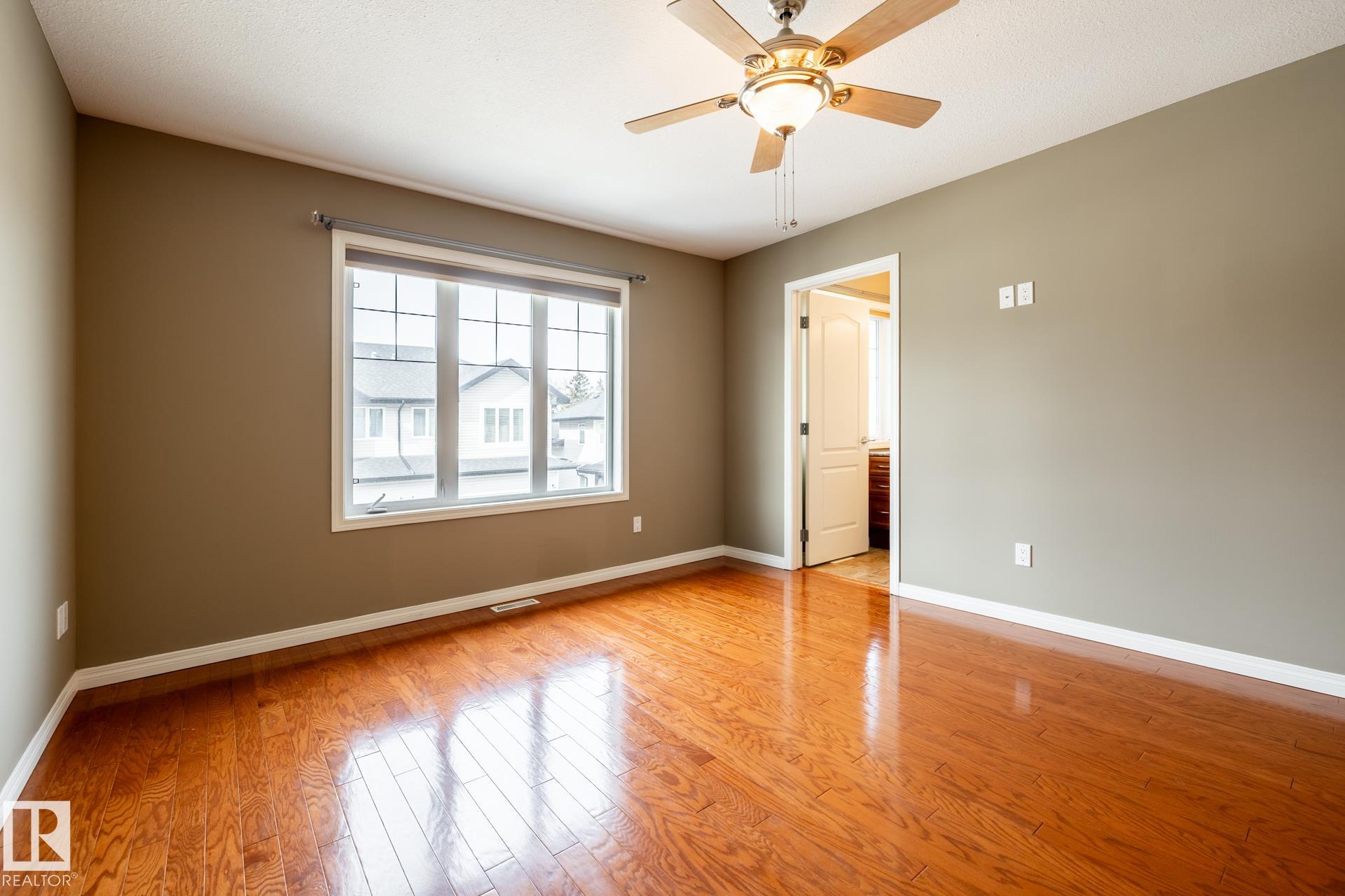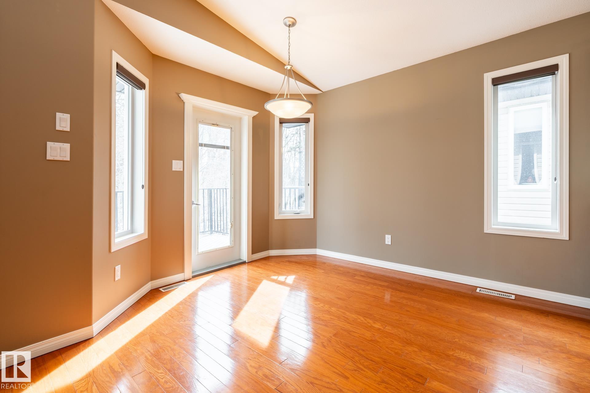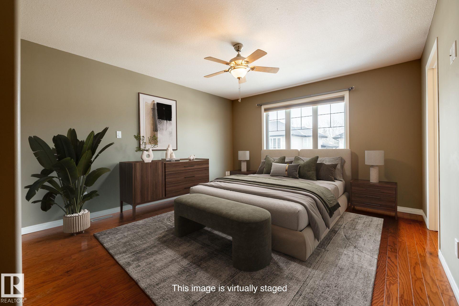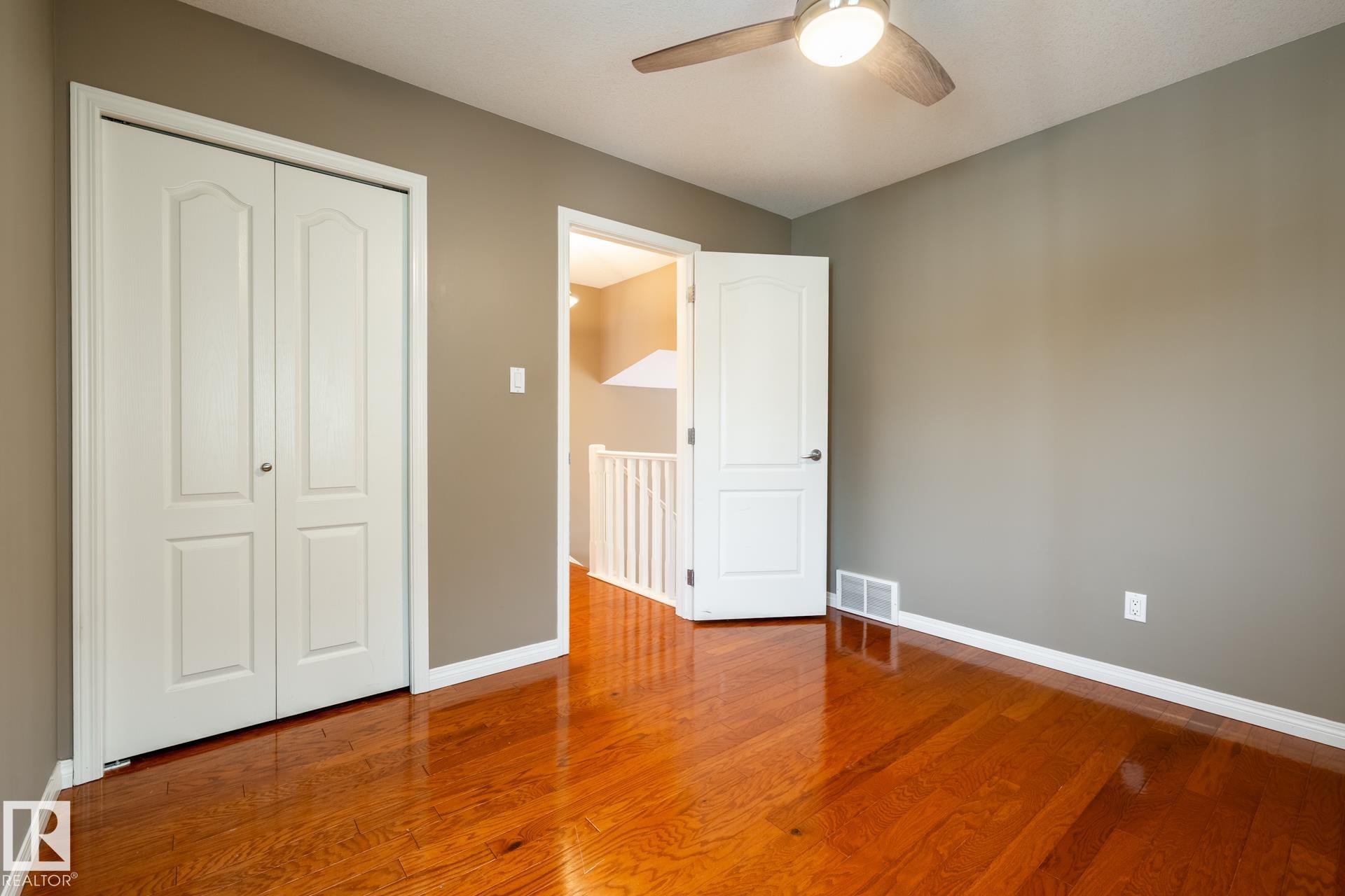 Welcome to Regal Point, an 18+ age-restricted community backing onto the beautifully treed Heritage Park trail in central Spruce Grove, near Queen Street Medical Centre. This well-maintained, 3-level split was built in 2006 & offers over 1,800 sf of developed living space. Generous front entry transitions smoothly to the double (18?Wx20?L) attached garage & laundry room. Impressive main floor features a great room concept w/ vaulted ceiling, hardwood flooring, corner gas f/p, many windows, kitchen w/ brand new countertops & corner pantry. Enjoy your morning coffee on your east-facing balcony. Upstairs: 4-pc bath, 2 bedrooms including the over-sized primary w/ walk-in closet & 4-pc ensuite. Professionally developed 3rd level has just been completed to include a 4-pc bath & WALK-OUT family room w/ sliding patio door access to the covered rear patio. Upgrades: New Carpet, A/C, Refrigerator (2020), Dishwasher (2024), HWT (2021) & Shingles (2019). Only $145/month for lawn maintenance & street snow removal!