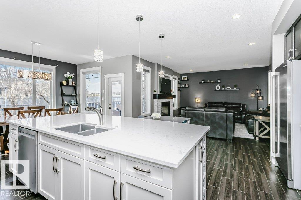 Welcome home to this gorgeous, meticulously maintained two-story in Fort Saskatchewan, tucked away in a quiet cul-de-sac. This fully finished 4-bedroom home offers a heated triple-car garage and an incredible yard complete with a putting green, dog run, and a huge deck?perfect for entertaining. Inside, you?ll love the open-concept main floor featuring a spacious kitchen with stunning countertops, a walk-through pantry, a dedicated office, and a cozy two-way fireplace. The thoughtful layout ensures every inch of space is well utilized. Upstairs, the large primary suite boasts a massive ensuite and walk-in closet, alongside a bright bonus room and two additional generously sized bedrooms. You?ll also appreciate the huge laundry room with a sink and plenty of counter space for added convenience. The fully finished basement includes an extra bedroom with its own ensuite and additional living space?ideal for guests or extended family. Countless upgrades throughout, this home truly has it all.
