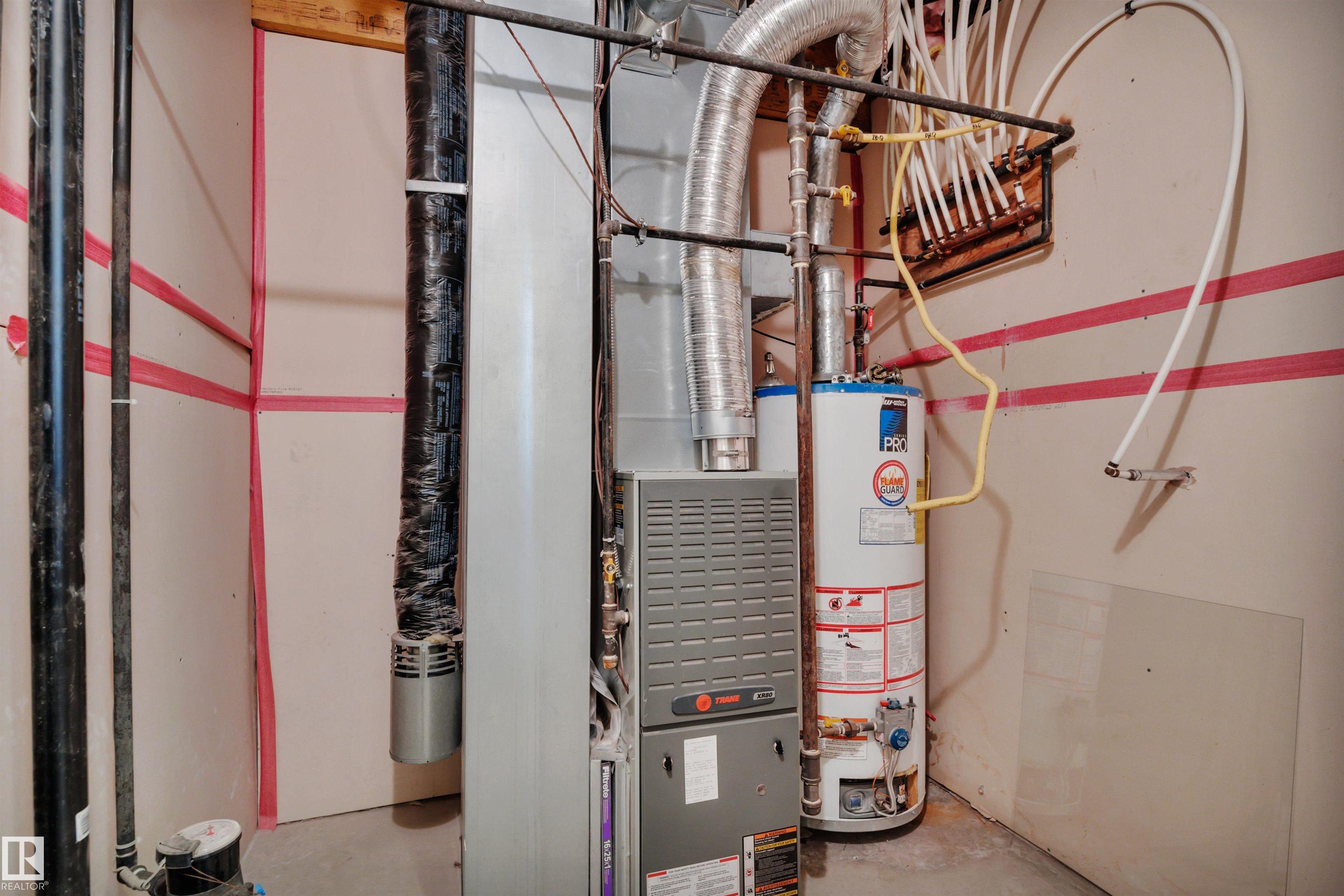 Welcome to Village de Mirabelle in Beaumont?perfect for homeowners seeking space, low maintenance living & easy access to shopping & EIA. This large townhouse features a unique double tandem garage with great storage & room for two vehicles. Great for Alberta winters. Lower level includes utility area & under stair storage. Main floor offers an open-concept kitchen, HUGE living room with big windows & dinette with sliding door to the back deck?no rear neighbours. Kitchen features black appliances, pantry, linoleum flooring & a window overlooking the yard. A 2-pce bath completes the main level. Upstairs, you'll find 2 large bedrooms, each with its own ensuite. The primary suite includes a walk-in closet & 4-pce bath. Hallway access to upper floor in-suite laundry adds convenience. New HW tank 2026! Let the condo take care of grass cutting & snow removal. Welcoming for pet owners with minimal pet restrictions. Affordable & move-in ready?this home checks all the boxes for modern, low-maintenance living!
