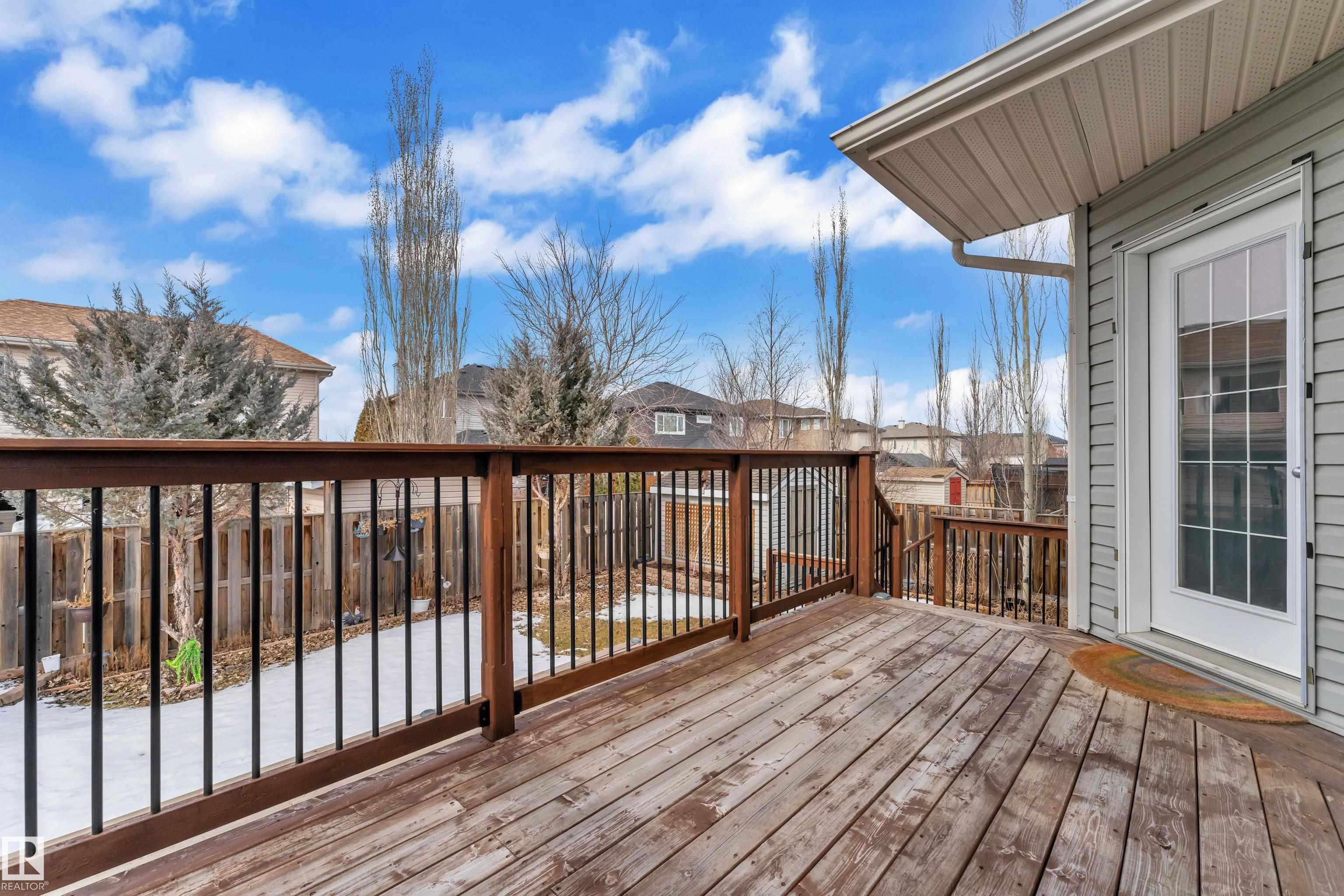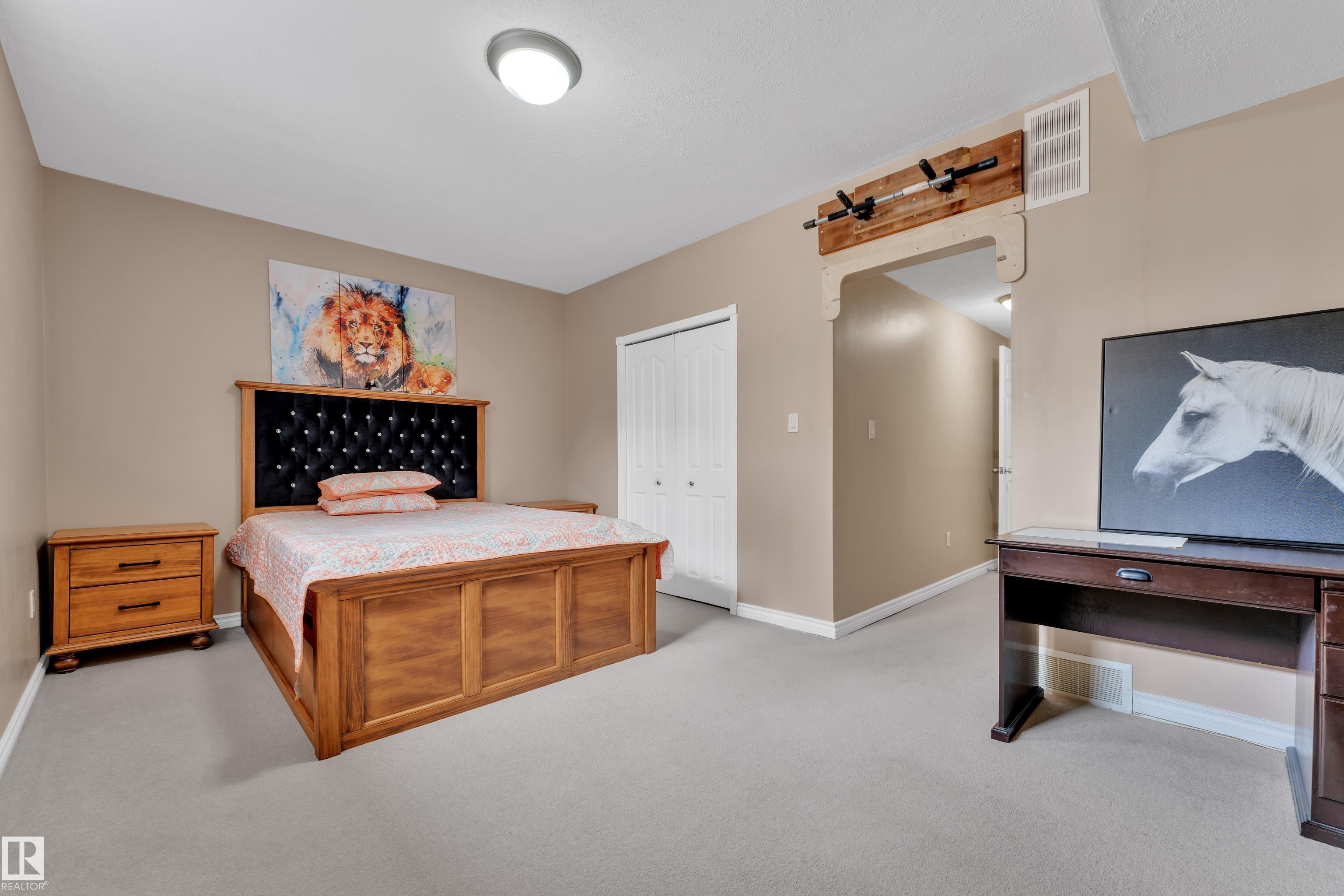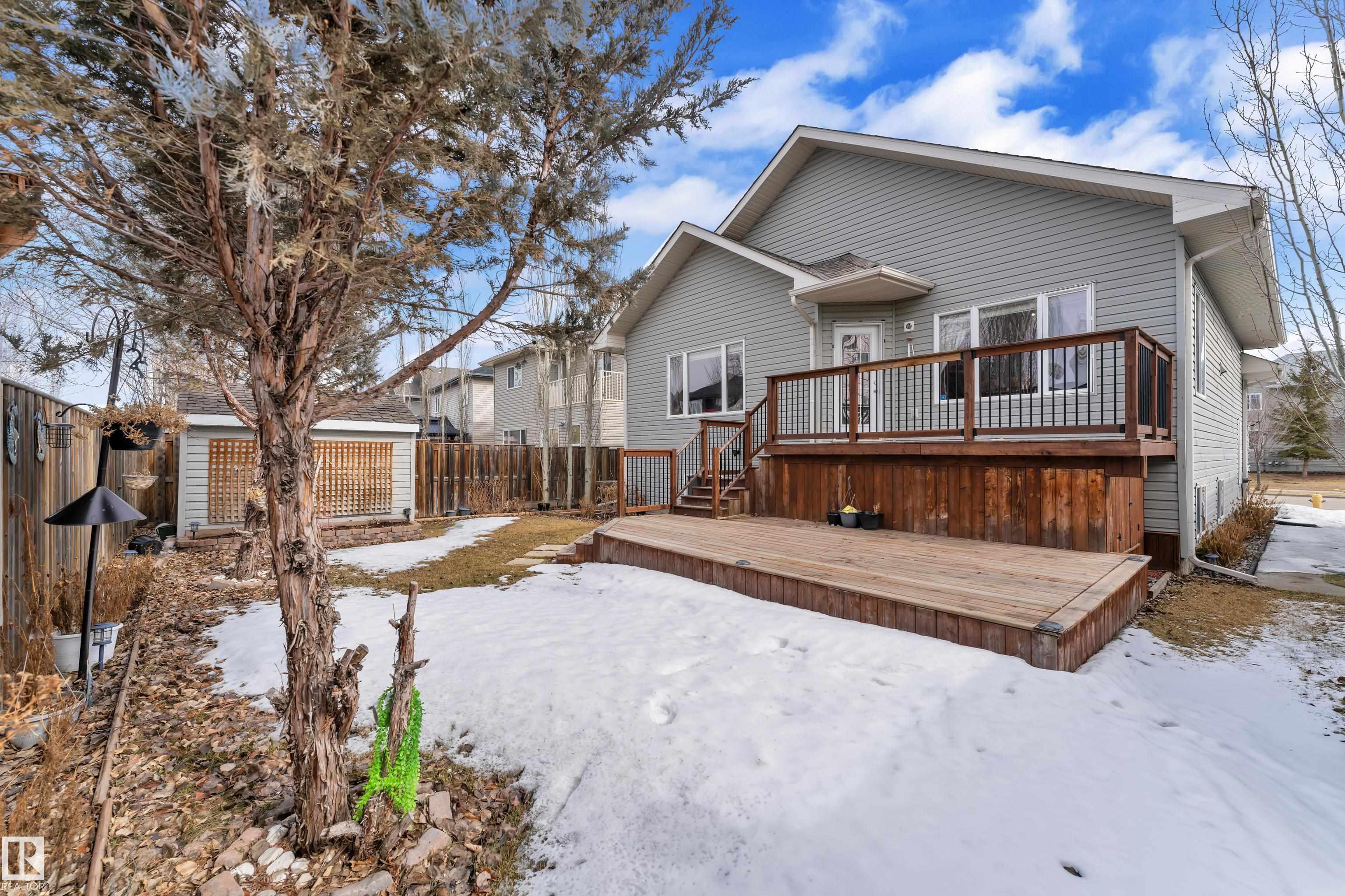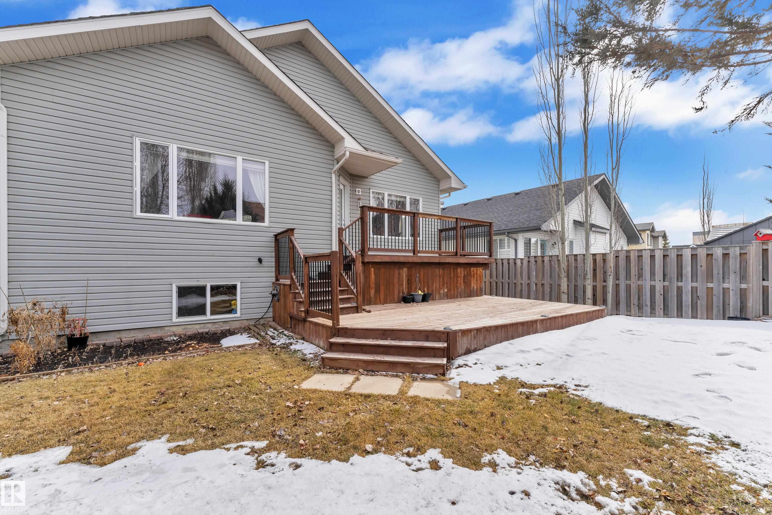 Welcome to Beaumont's famous community of EAGLEMONT HEIGHTS. This East Facing, bright & beautiful, fully finished with Double Attached Garage Bi-level is just at walking distance to Beaumont's SPORT and RECREATION Center with swimming pool. Over 2,900 sq ft of developed living space features 5 Bedrooms and 3 full washrooms. The main floor features a large open floor plan w/a spacious kitchen boasting ample cabinets, corner pantry and breakfast bar. The dining area can fit that large family table. The living room features hardwood floor, gas fireplace and vaulted ceilings. Completing the main floor is the 4pce bath and bedrooms 2 & 3. The large primary suite is on the upper level and feature a 4pce ensuite and walk-in closet. The finished basement boasts a great family room w/bar, 3pce bath, huge 4th and 5th bedroom. The lower level is the laundry/mechanical room that feature a great storage area. The west facing yard features a two-tiered deck, large trees and shed. Close to schools and amenities.