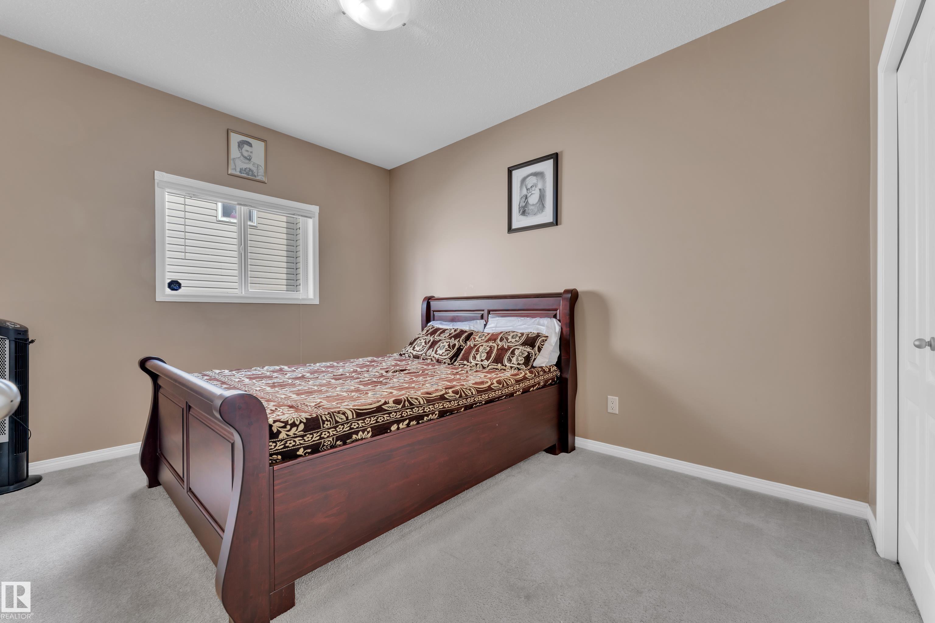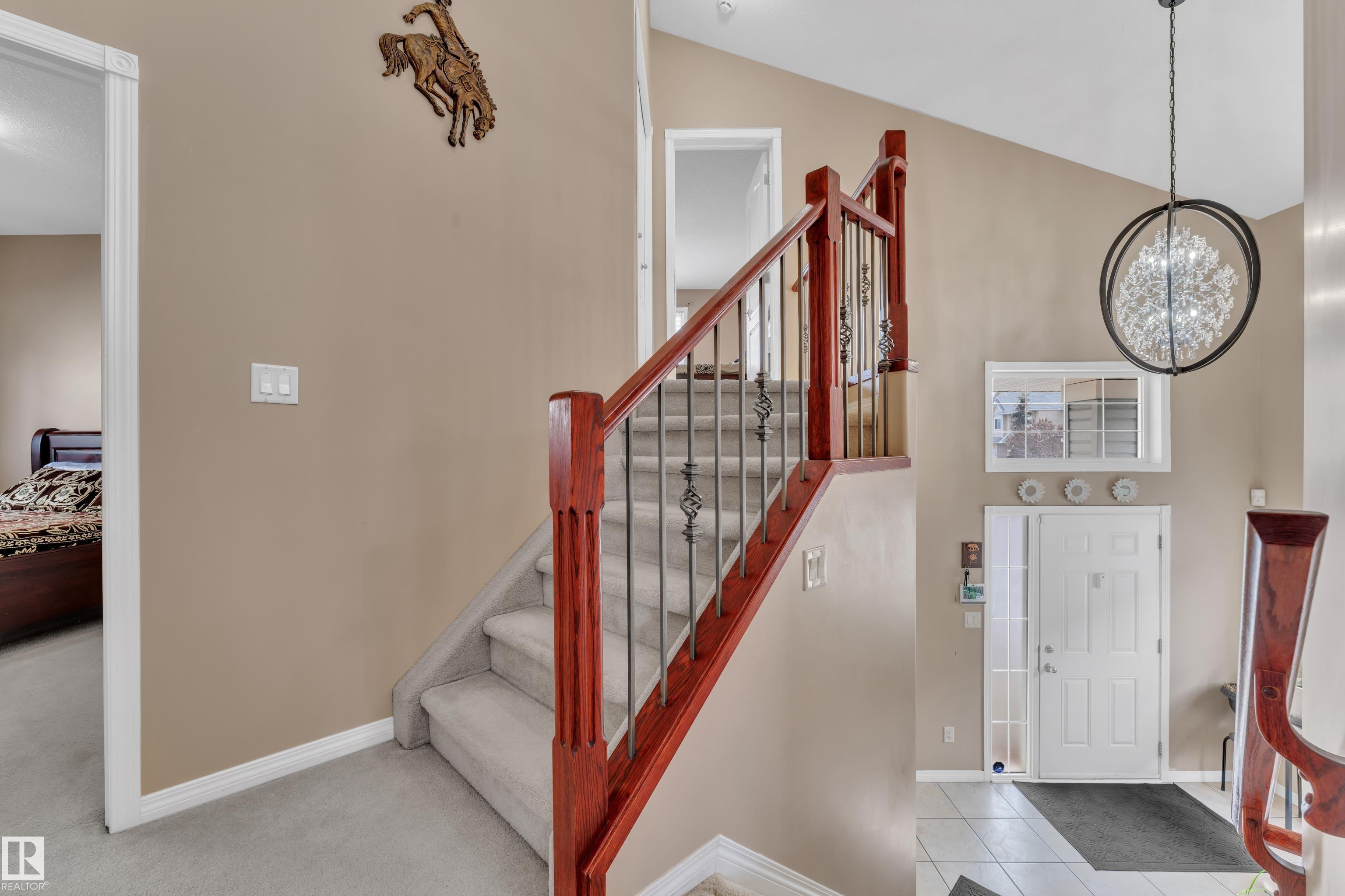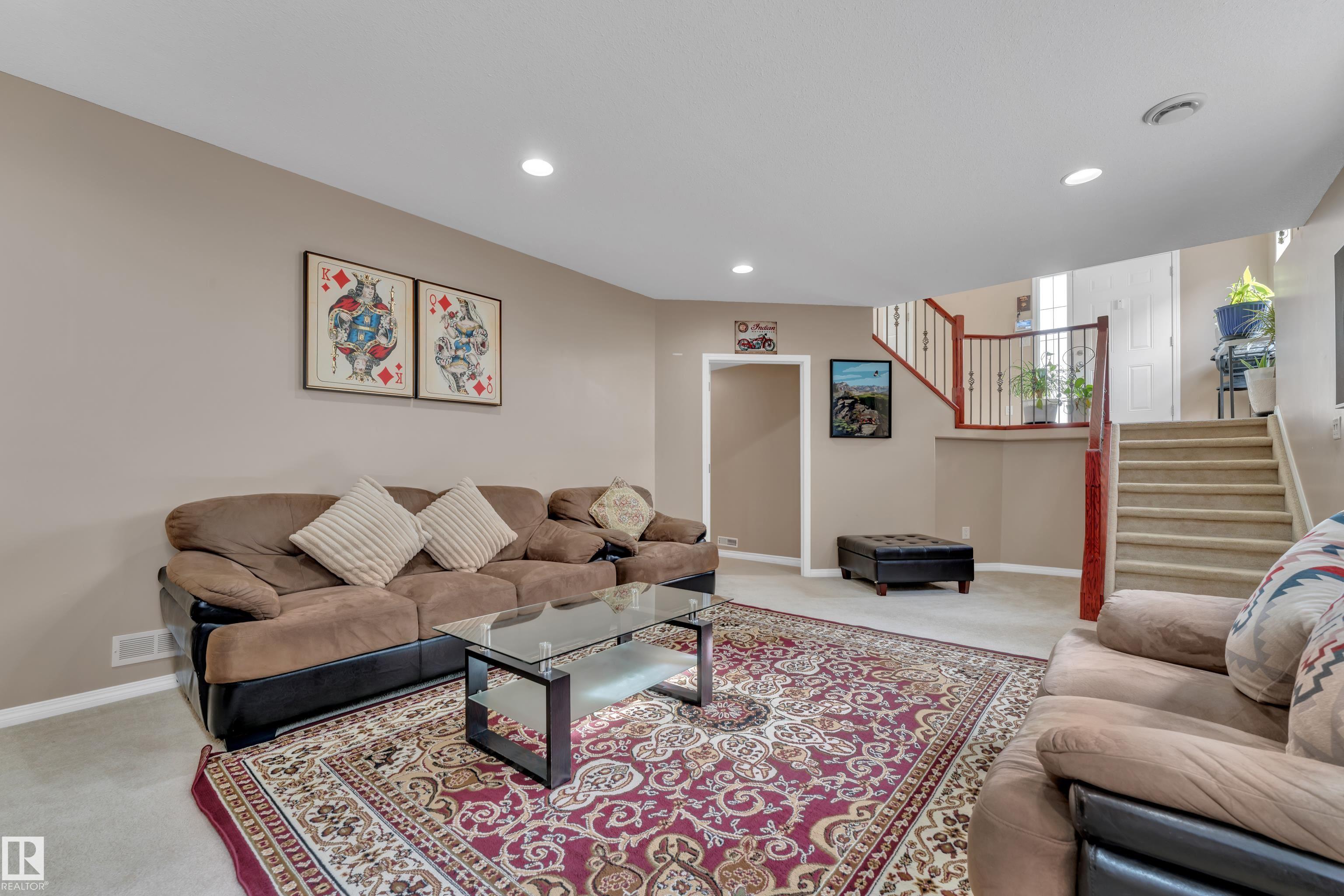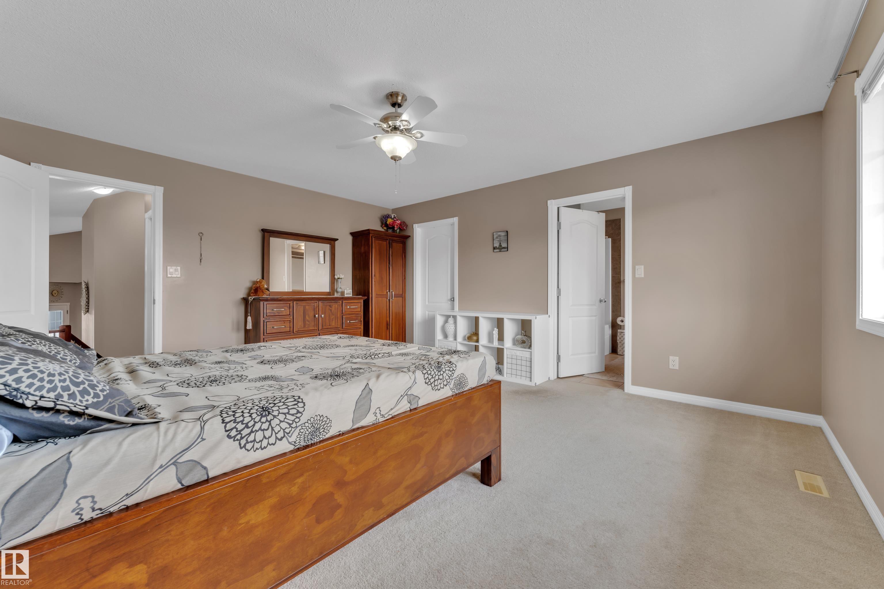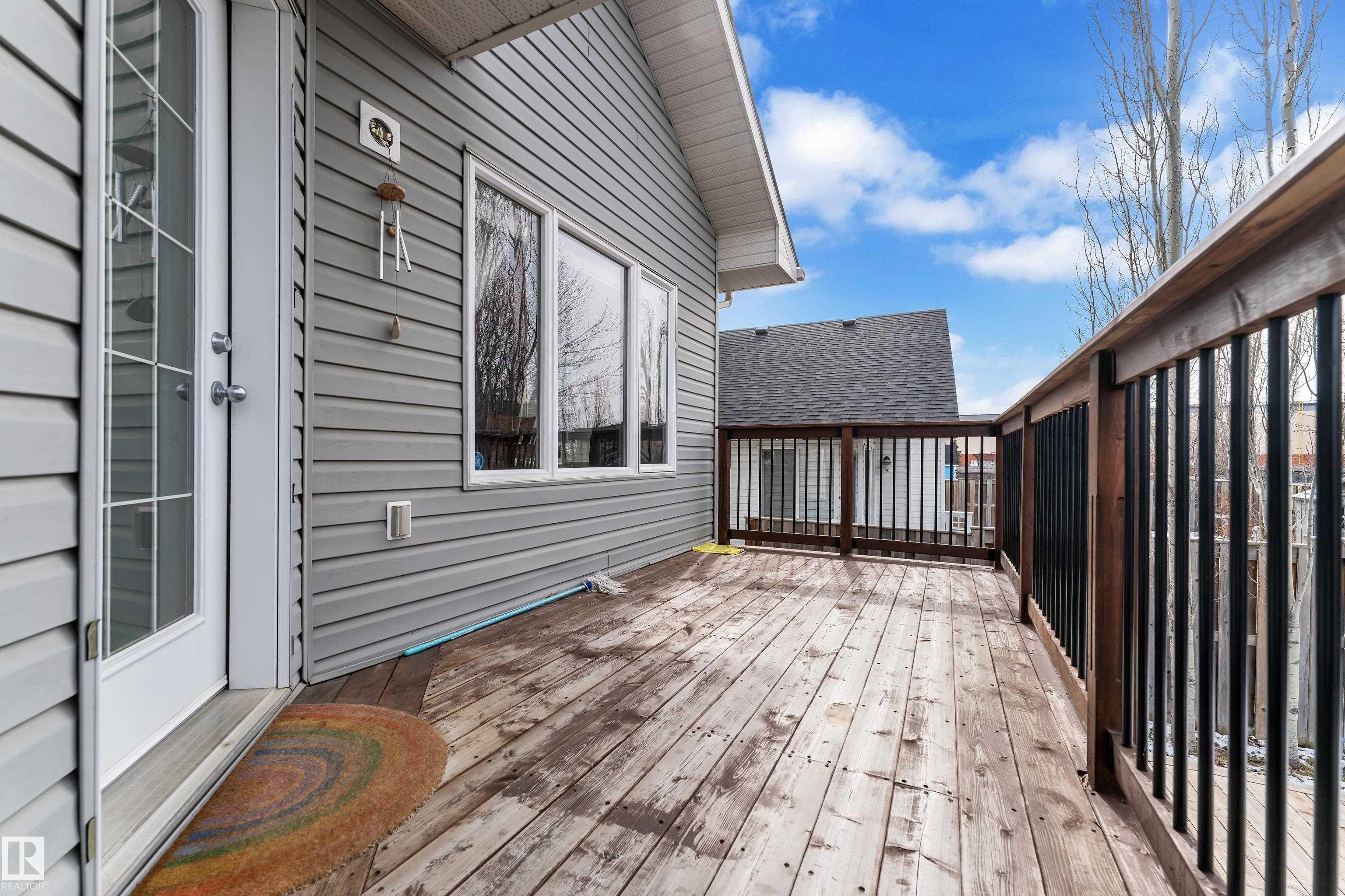 Welcome to Beaumont's famous community of EAGLEMONT HEIGHTS. This East Facing, bright & beautiful, fully finished with Double Attached Garage Bi-level is just at walking distance to Beaumont's SPORT and RECREATION Center with swimming pool. Over 2,900 sq ft of developed living space features 5 Bedrooms and 3 full washrooms. The main floor features a large open floor plan w/a spacious kitchen boasting ample cabinets, corner pantry and breakfast bar. The dining area can fit that large family table. The living room features hardwood floor, gas fireplace and vaulted ceilings. Completing the main floor is the 4pce bath and bedrooms 2 & 3. The large primary suite is on the upper level and feature a 4pce ensuite and walk-in closet. The finished basement boasts a great family room w/bar, 3pce bath, huge 4th and 5th bedroom. The lower level is the laundry/mechanical room that feature a great storage area. The west facing yard features a two-tiered deck, large trees and shed. Close to schools and amenities.