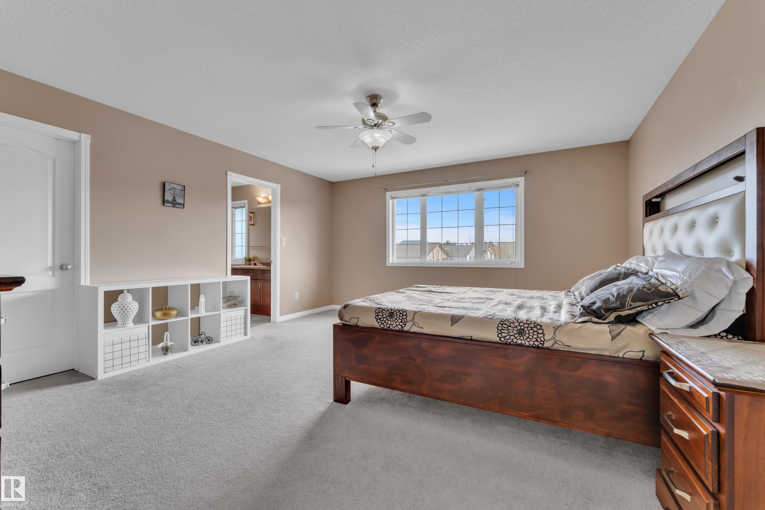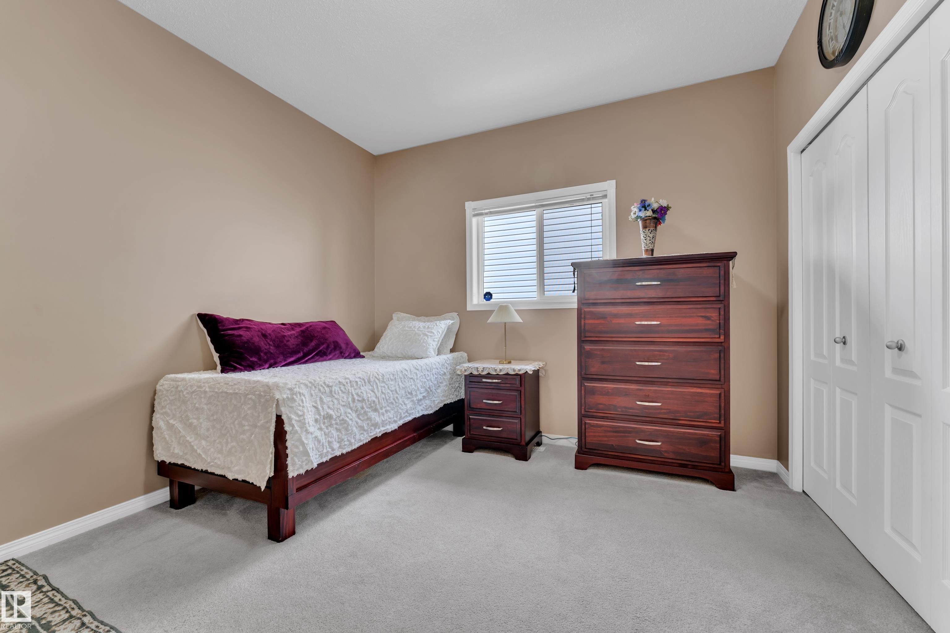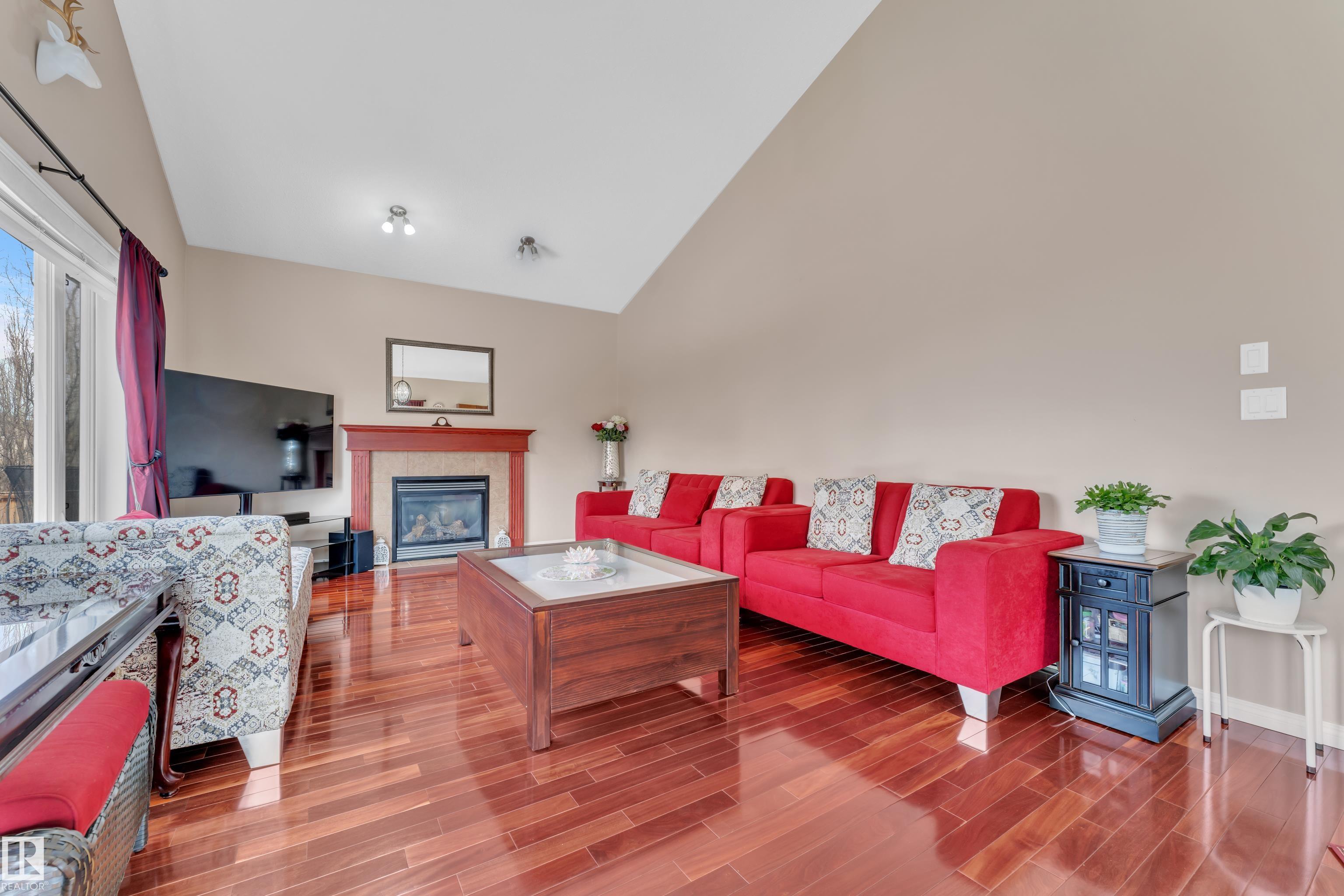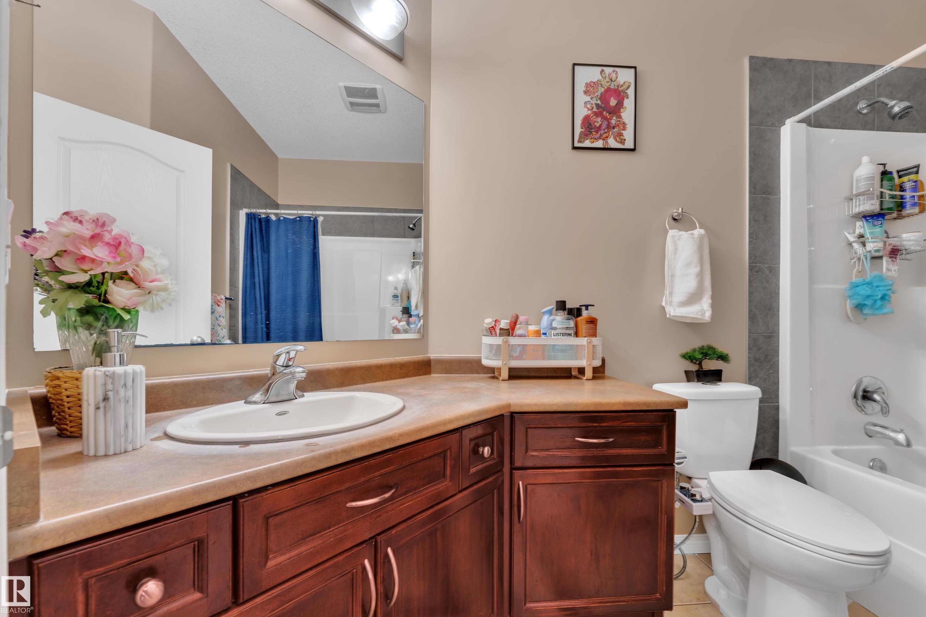 Welcome to Beaumont's famous community of EAGLEMONT HEIGHTS. This East Facing, bright & beautiful, fully finished with Double Attached Garage Bi-level is just at walking distance to Beaumont's SPORT and RECREATION Center with swimming pool. Over 2,900 sq ft of developed living space features 5 Bedrooms and 3 full washrooms. The main floor features a large open floor plan w/a spacious kitchen boasting ample cabinets, corner pantry and breakfast bar. The dining area can fit that large family table. The living room features hardwood floor, gas fireplace and vaulted ceilings. Completing the main floor is the 4pce bath and bedrooms 2 & 3. The large primary suite is on the upper level and feature a 4pce ensuite and walk-in closet. The finished basement boasts a great family room w/bar, 3pce bath, huge 4th and 5th bedroom. The lower level is the laundry/mechanical room that feature a great storage area. The west facing yard features a two-tiered deck, large trees and shed. Close to schools and amenities.