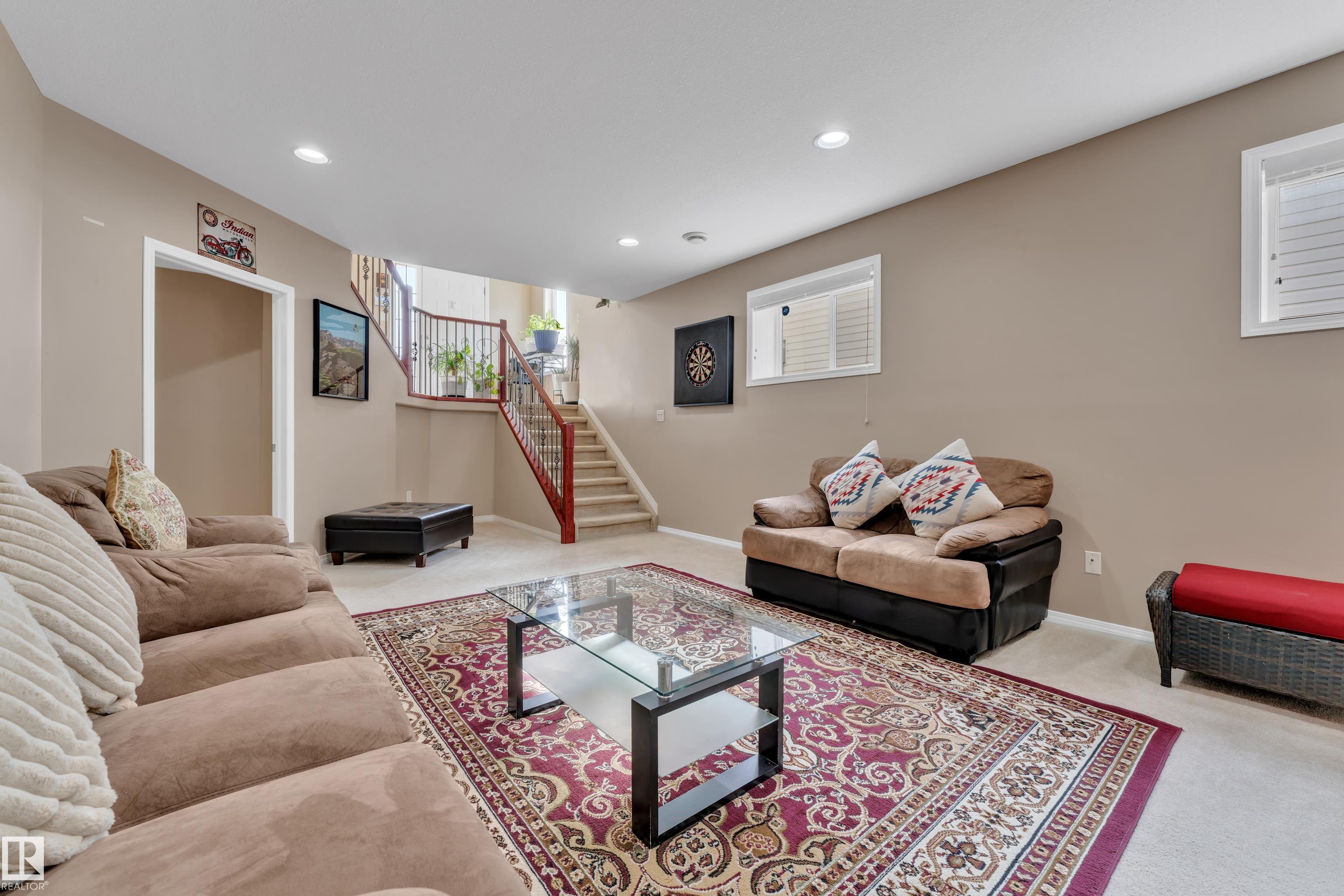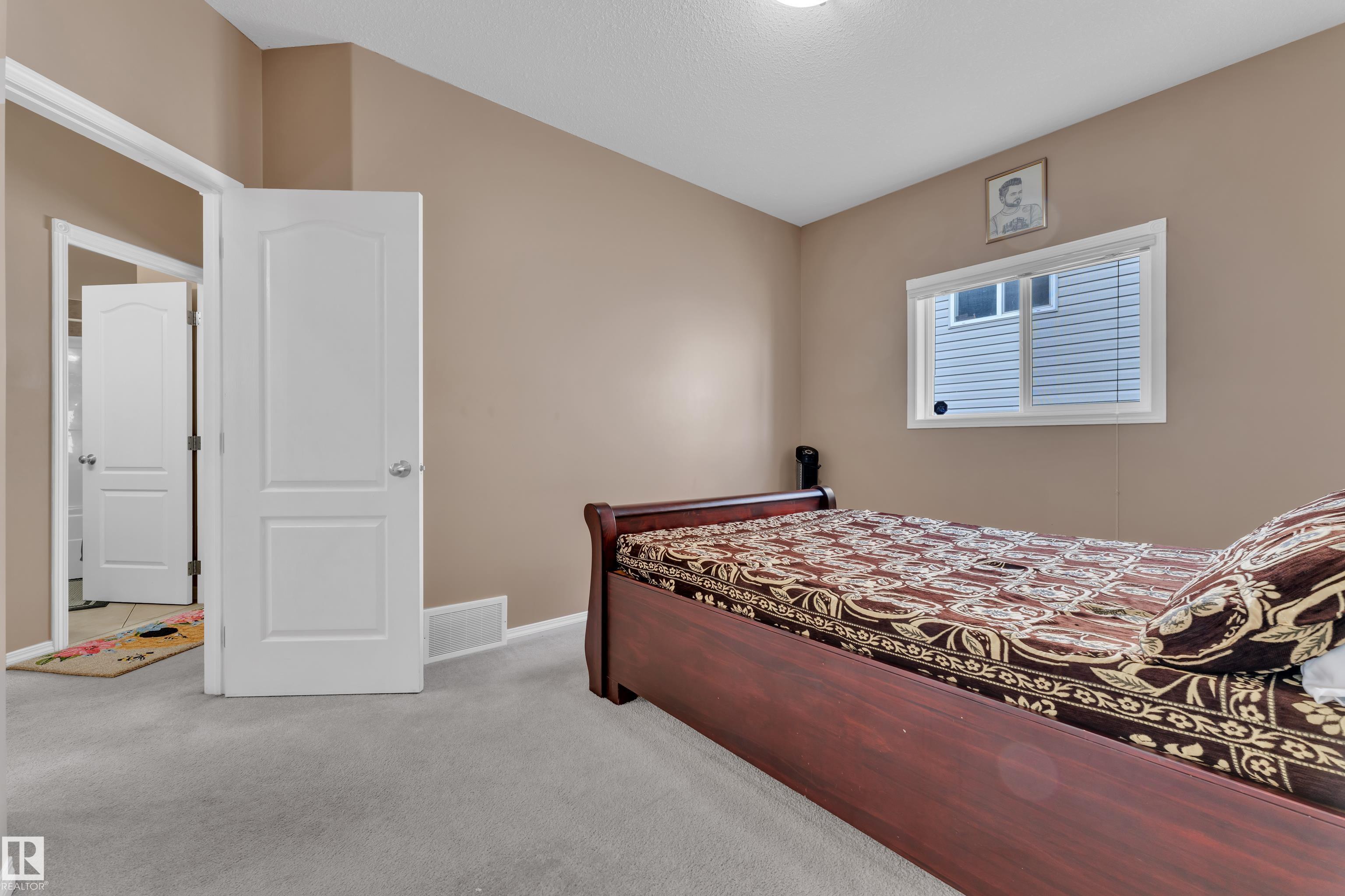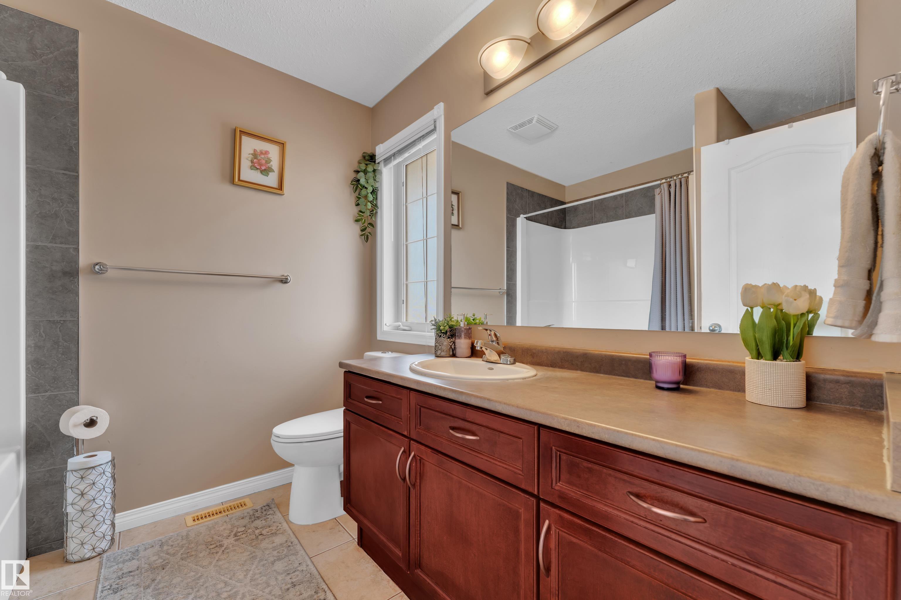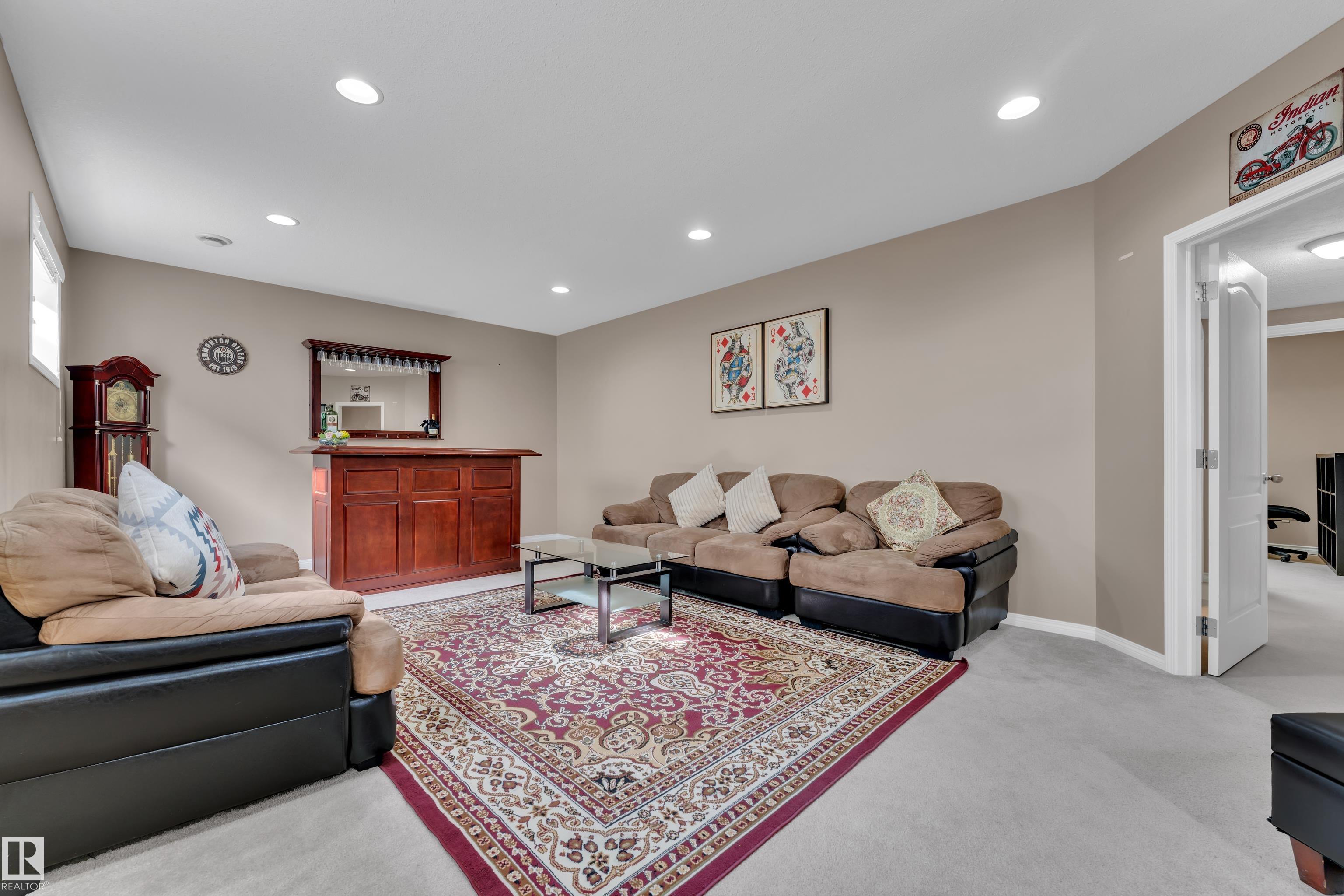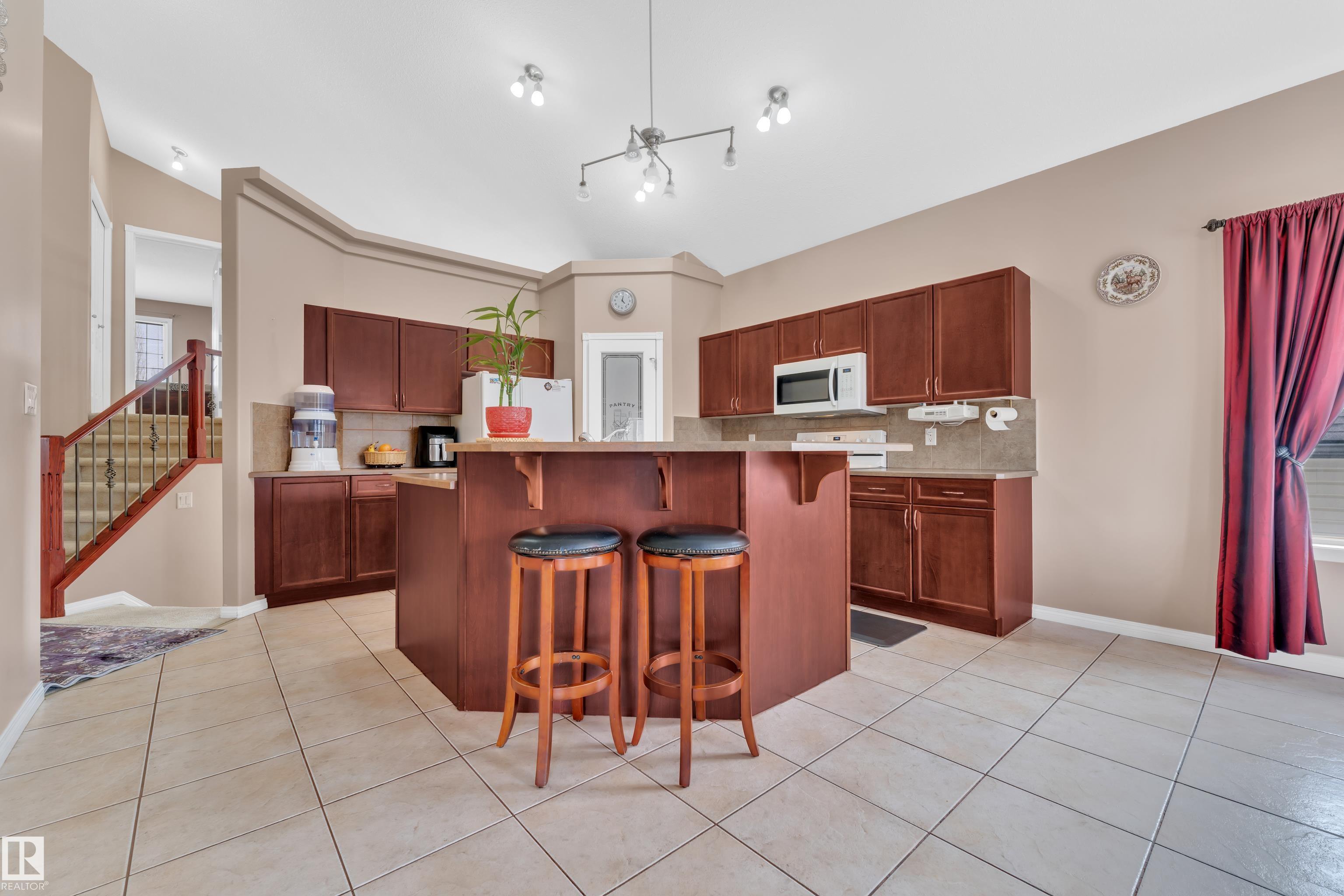 Welcome to Beaumont's famous community of EAGLEMONT HEIGHTS. This East Facing, bright & beautiful, fully finished with Double Attached Garage Bi-level is just at walking distance to Beaumont's SPORT and RECREATION Center with swimming pool. Over 2,900 sq ft of developed living space features 5 Bedrooms and 3 full washrooms. The main floor features a large open floor plan w/a spacious kitchen boasting ample cabinets, corner pantry and breakfast bar. The dining area can fit that large family table. The living room features hardwood floor, gas fireplace and vaulted ceilings. Completing the main floor is the 4pce bath and bedrooms 2 & 3. The large primary suite is on the upper level and feature a 4pce ensuite and walk-in closet. The finished basement boasts a great family room w/bar, 3pce bath, huge 4th and 5th bedroom. The lower level is the laundry/mechanical room that feature a great storage area. The west facing yard features a two-tiered deck, large trees and shed. Close to schools and amenities.