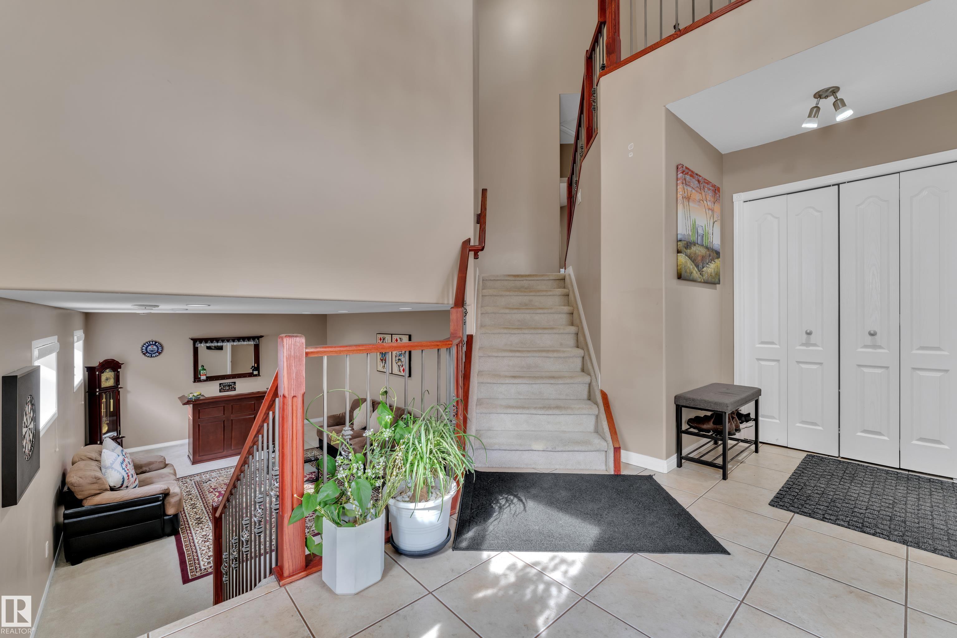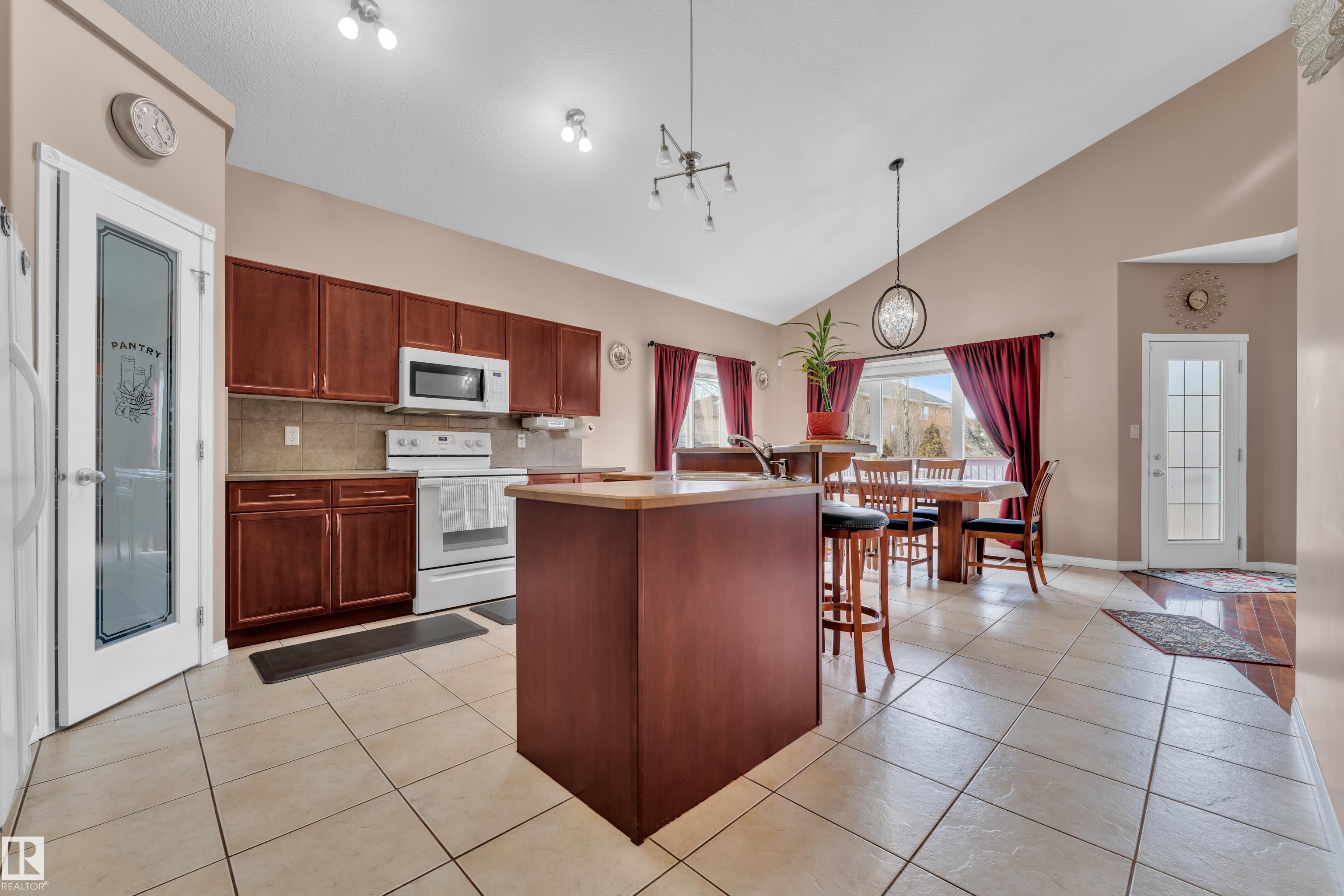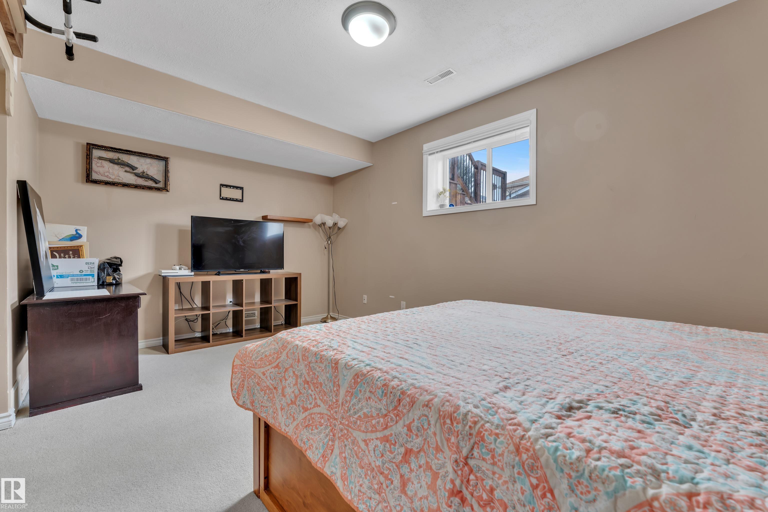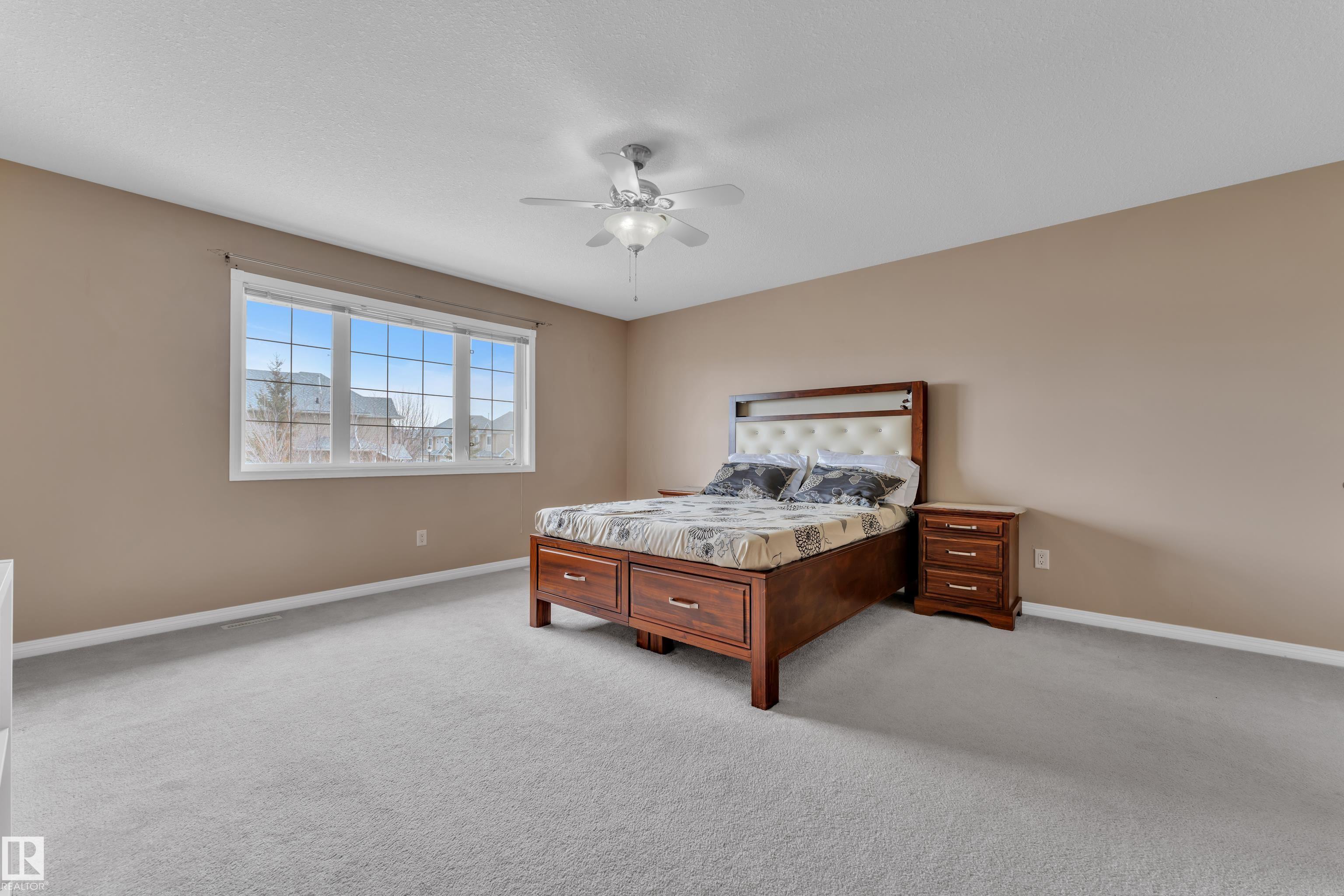 Welcome to Beaumont's famous community of EAGLEMONT HEIGHTS. This East Facing, bright & beautiful, fully finished with Double Attached Garage Bi-level is just at walking distance to Beaumont's SPORT and RECREATION Center with swimming pool. Over 2,900 sq ft of developed living space features 5 Bedrooms and 3 full washrooms. The main floor features a large open floor plan w/a spacious kitchen boasting ample cabinets, corner pantry and breakfast bar. The dining area can fit that large family table. The living room features hardwood floor, gas fireplace and vaulted ceilings. Completing the main floor is the 4pce bath and bedrooms 2 & 3. The large primary suite is on the upper level and feature a 4pce ensuite and walk-in closet. The finished basement boasts a great family room w/bar, 3pce bath, huge 4th and 5th bedroom. The lower level is the laundry/mechanical room that feature a great storage area. The west facing yard features a two-tiered deck, large trees and shed. Close to schools and amenities.