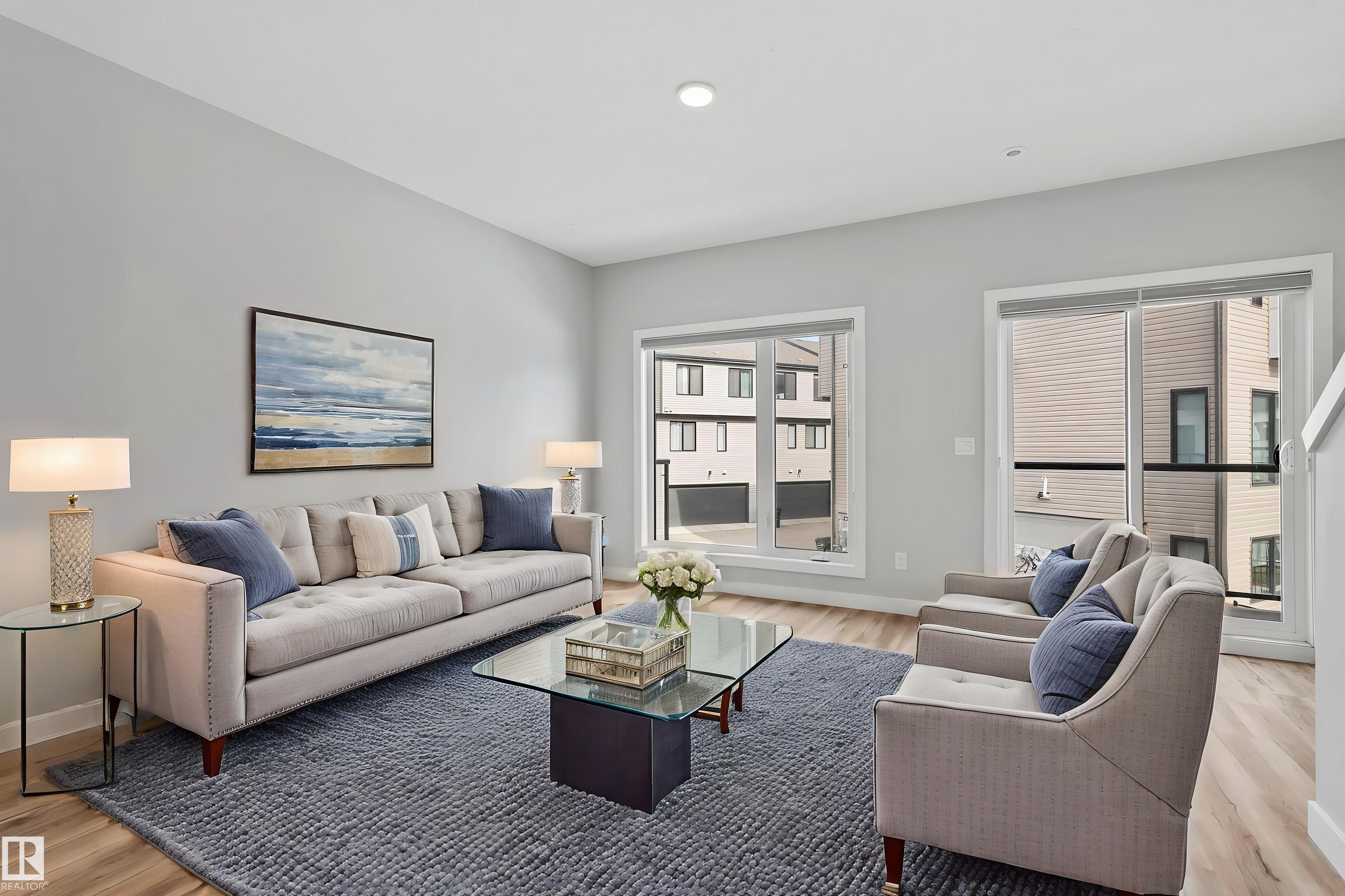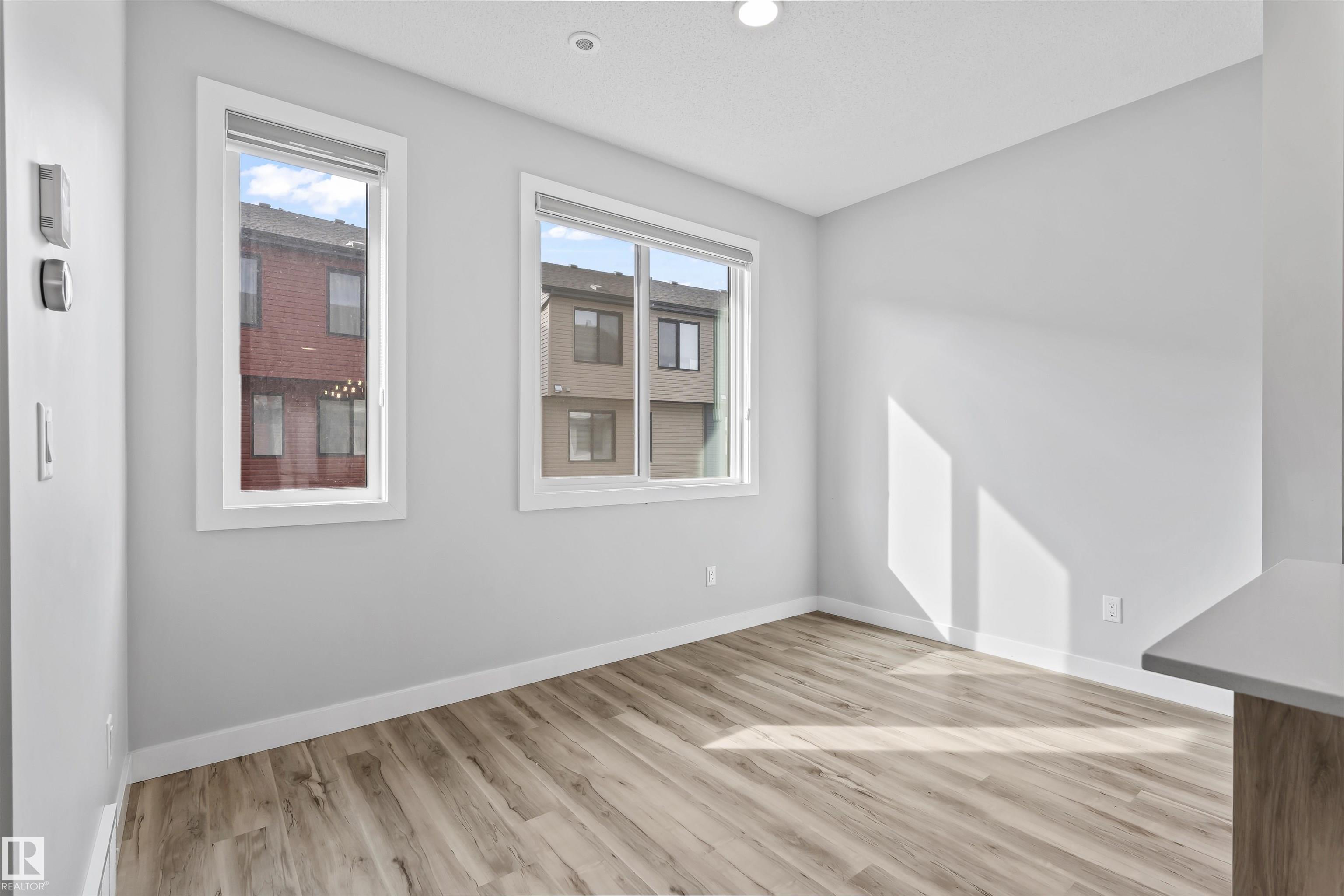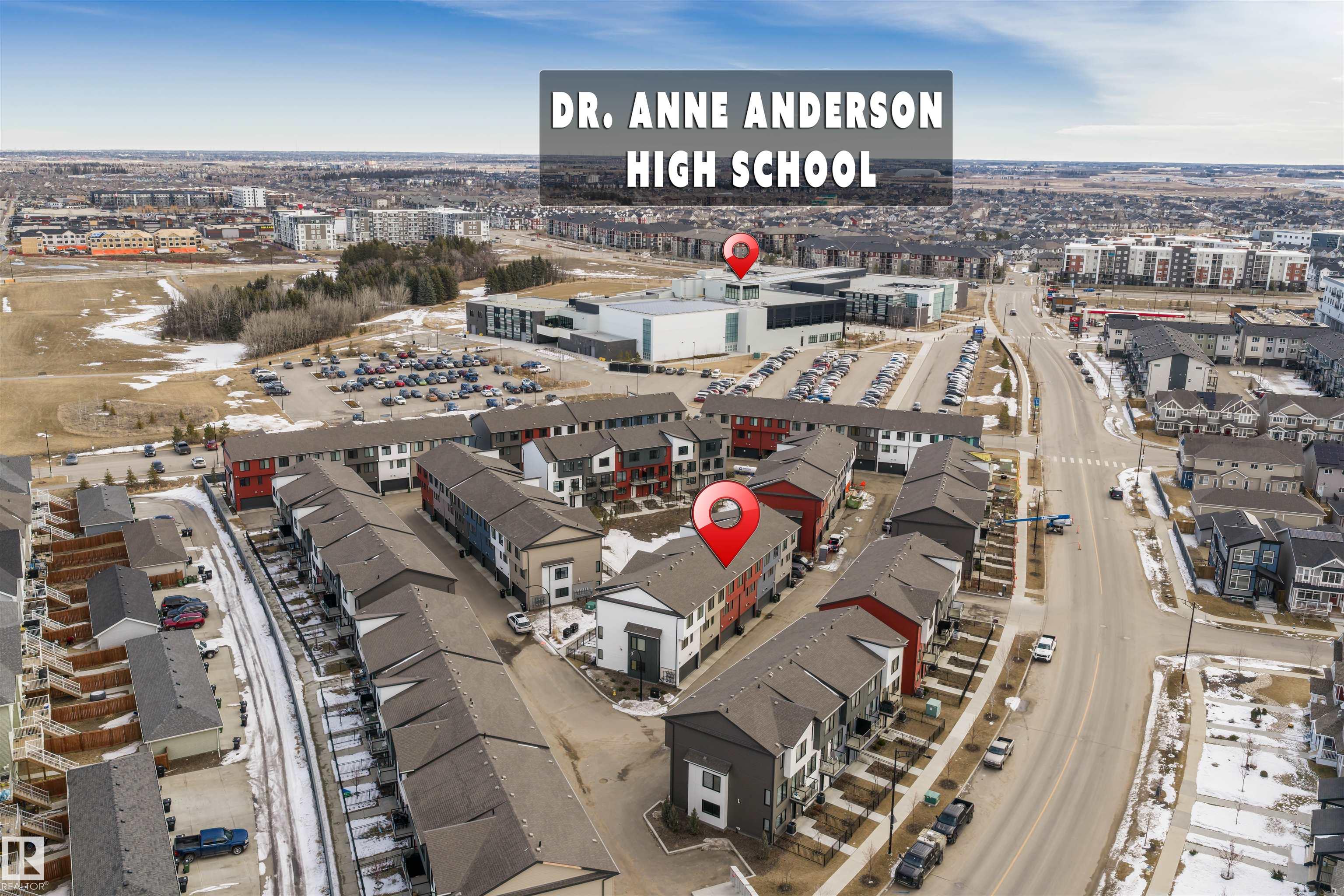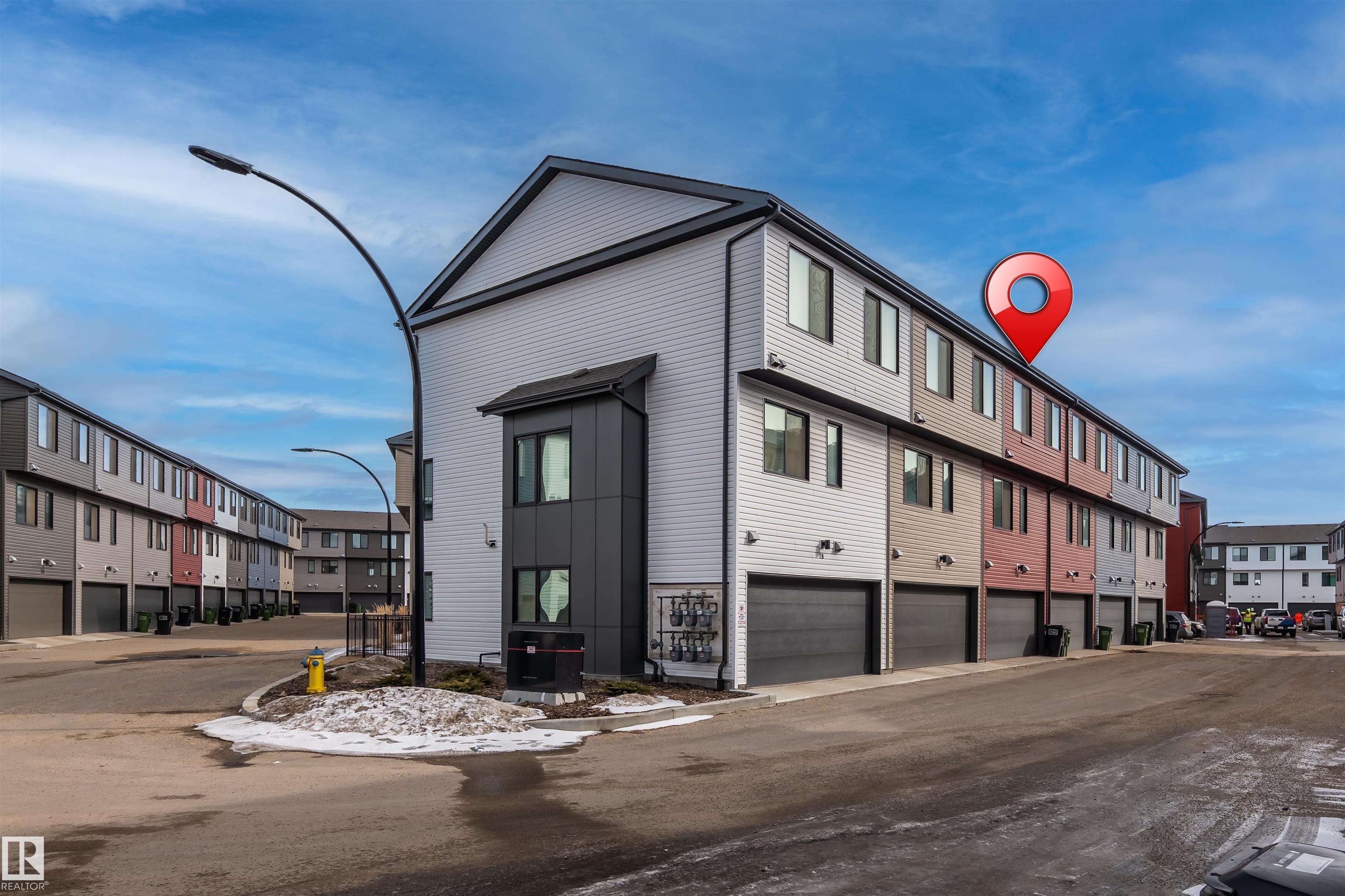 Move-in-ready townhome offering modern comfort and exceptional value. Featuring over 1500 sq ft, 3 bedrooms, 2.5 bathrooms, and a versatile main-floor den. The bright, open-concept main floor is the heart of the home, showcasing a huge island, quartz countertops, and stainless steel appliances. The seamless flow between the dining and living areas creates an inviting atmosphere, while the private balcony is ideal for summer days. Upstairs, the spacious primary bedroom offers a private retreat with its own ensuite and walk-in closet. Two additional bedrooms, a linen closet, and convenient upstairs laundry add to the home?s functional design.Enjoy the added benefits of a double-attached garage and a low condo fee. Location is unbeatable, within walking distance of Dr. Anne Anderson High School and just seconds from Heritage Valley shopping center and other amenities. With easy access to major highways and the airport, commuting is easy. IMMEDIATE POSSESSION, some images are virtually staged. PRICED TO SELL!