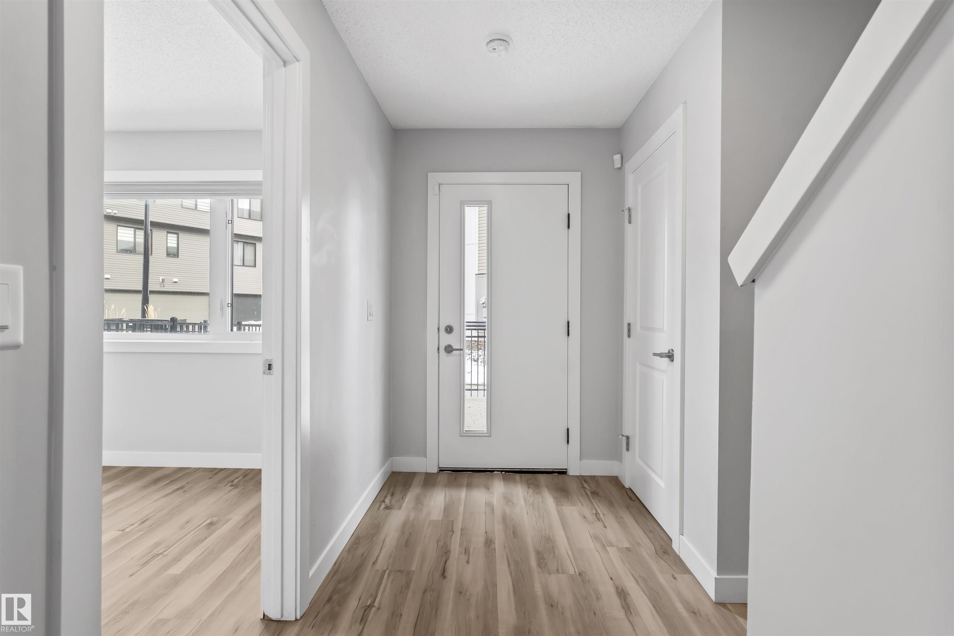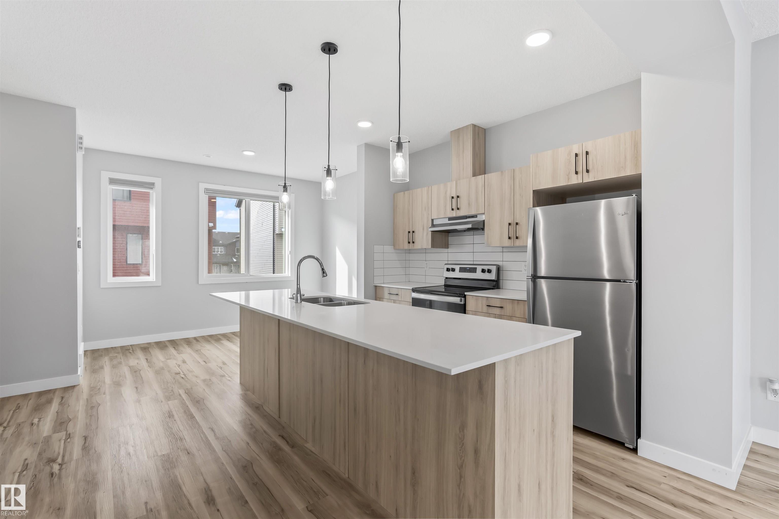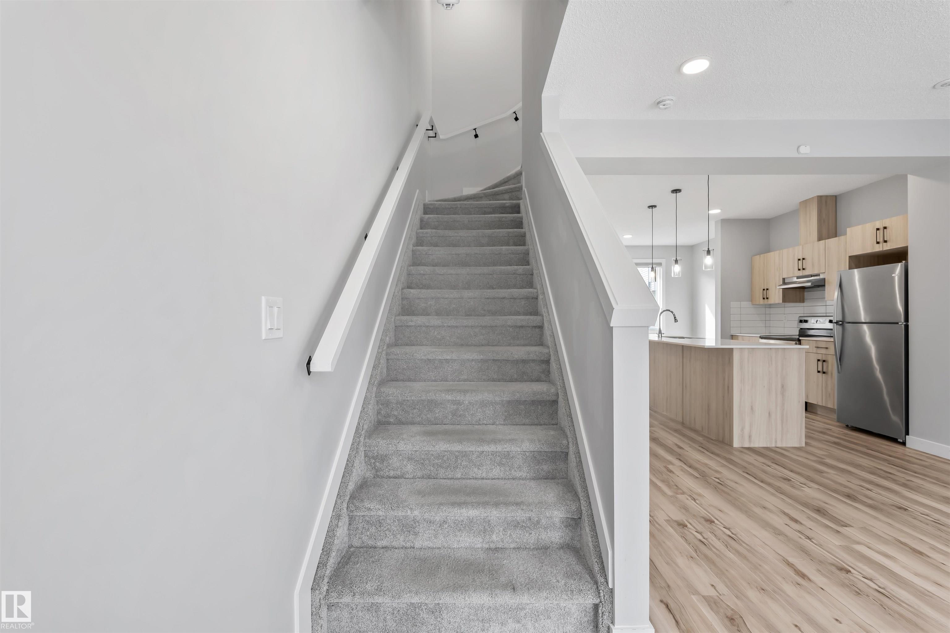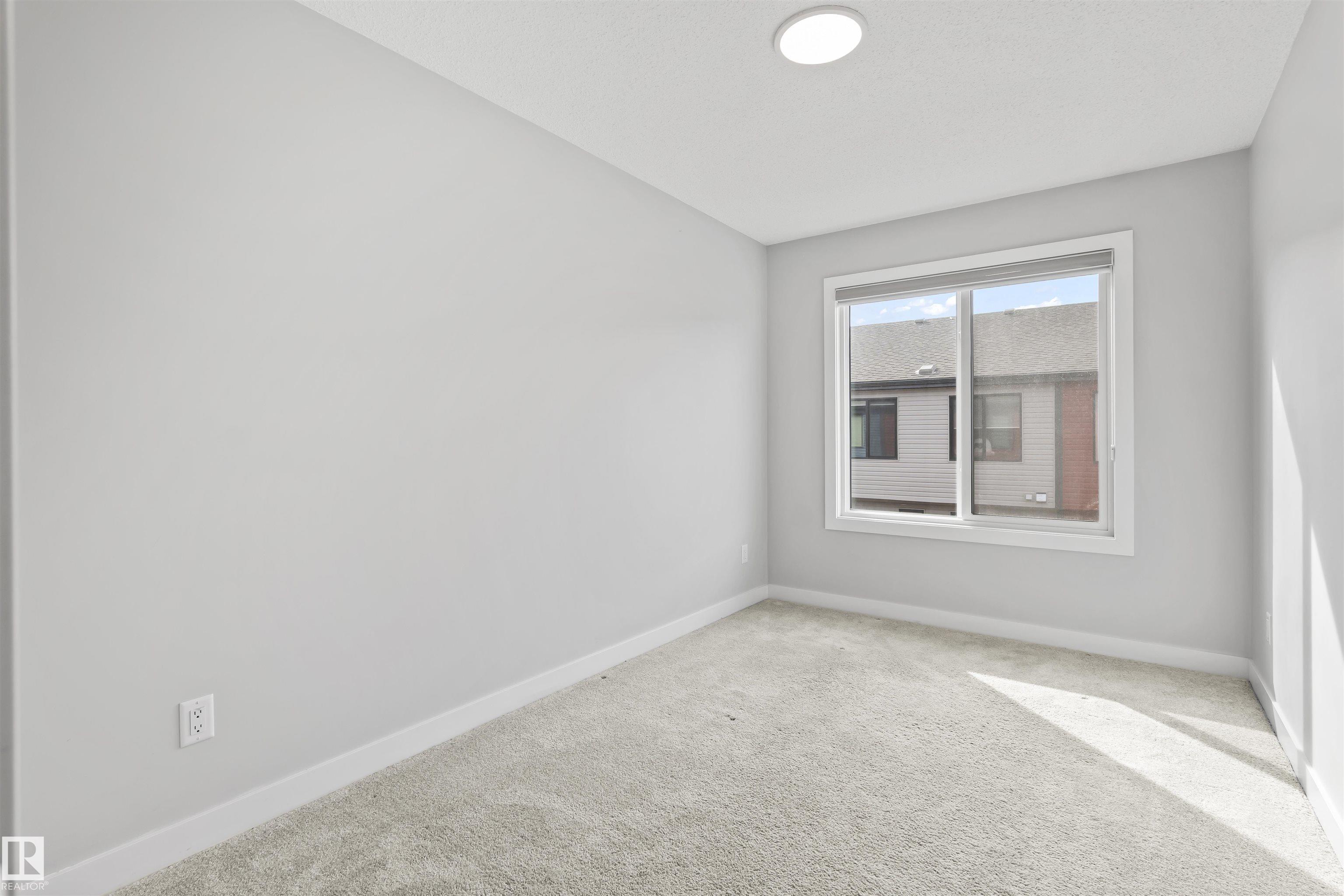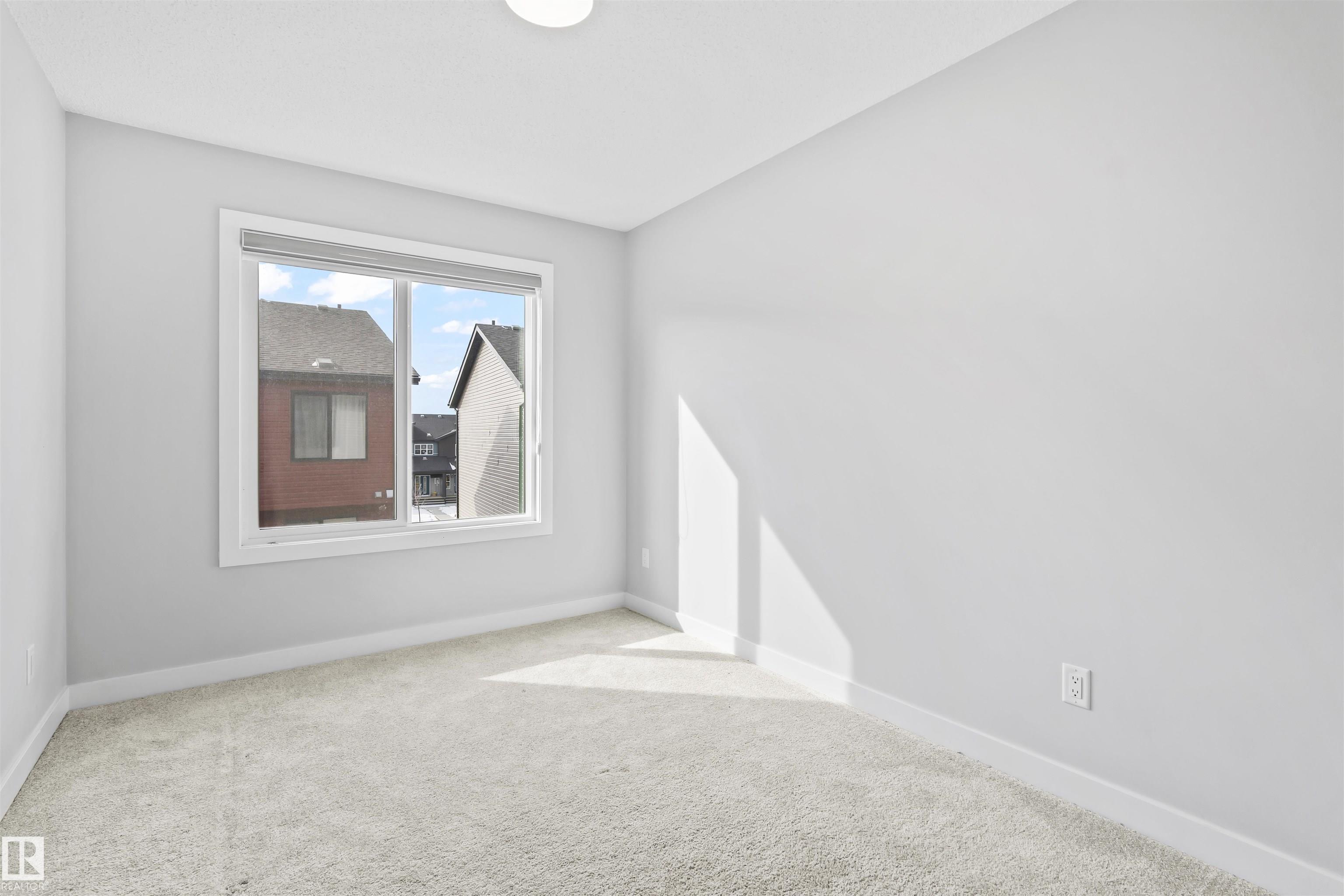Move-in-ready townhome offering modern comfort and exceptional value. Featuring over 1500 sq ft, 3 bedrooms, 2.5 bathrooms, and a versatile main-floor den. The bright, open-concept main floor is the heart of the home, showcasing a huge island, quartz countertops, and stainless steel appliances. The seamless flow between the dining and living areas creates an inviting atmosphere, while the private balcony is ideal for summer days. Upstairs, the spacious primary bedroom offers a private retreat with its own ensuite and walk-in closet. Two additional bedrooms, a linen closet, and convenient upstairs laundry add to the home?s functional design.Enjoy the added benefits of a double-attached garage and a low condo fee. Location is unbeatable, within walking distance of Dr. Anne Anderson High School and just seconds from Heritage Valley shopping center and other amenities. With easy access to major highways and the airport, commuting is easy. IMMEDIATE POSSESSION, some images are virtually staged. PRICED TO SELL!