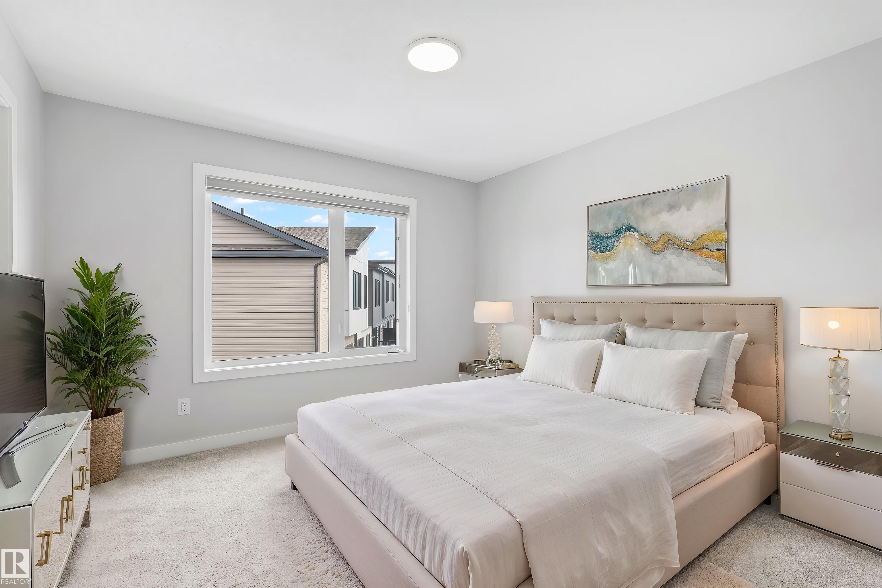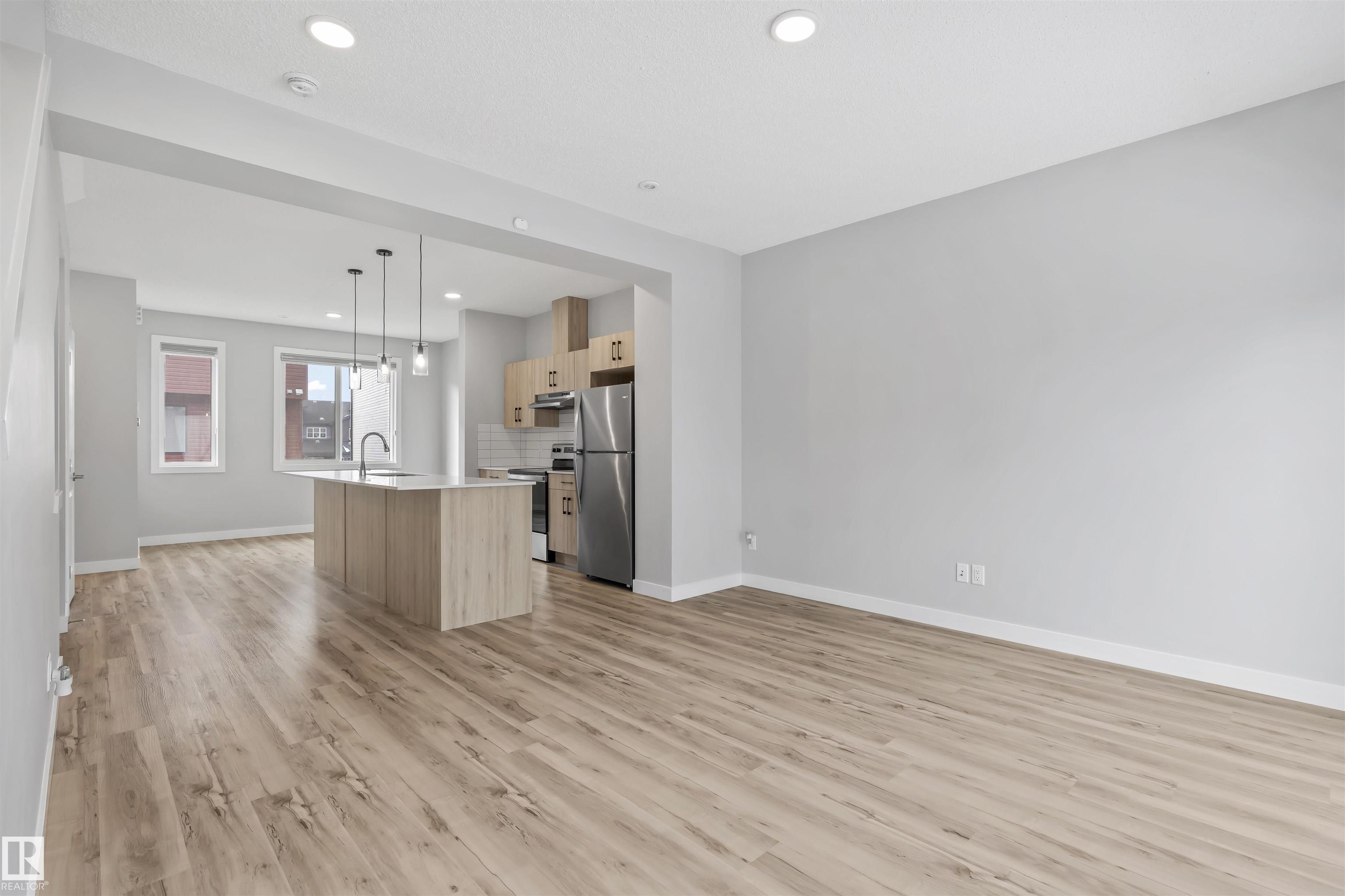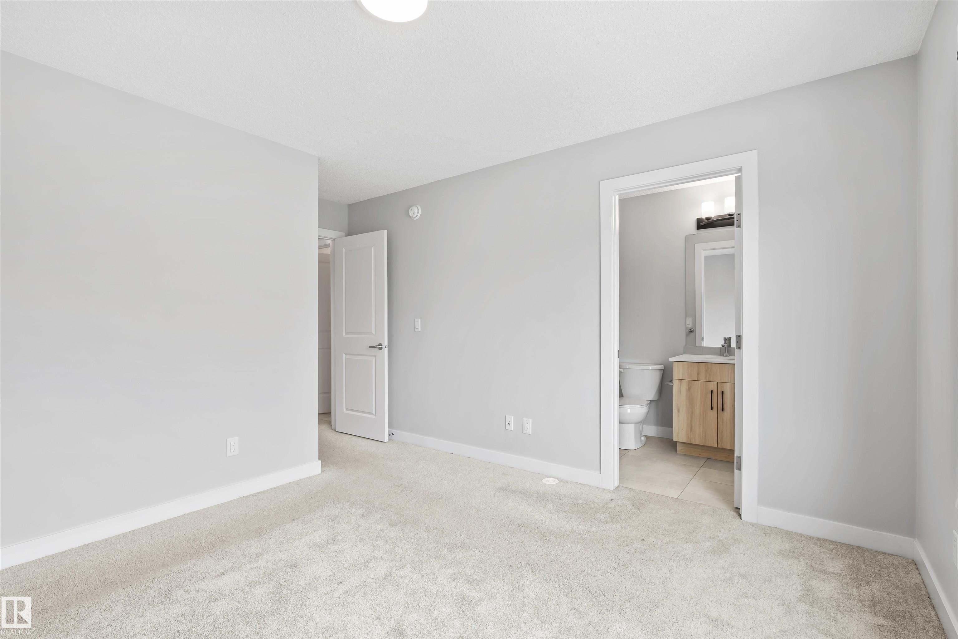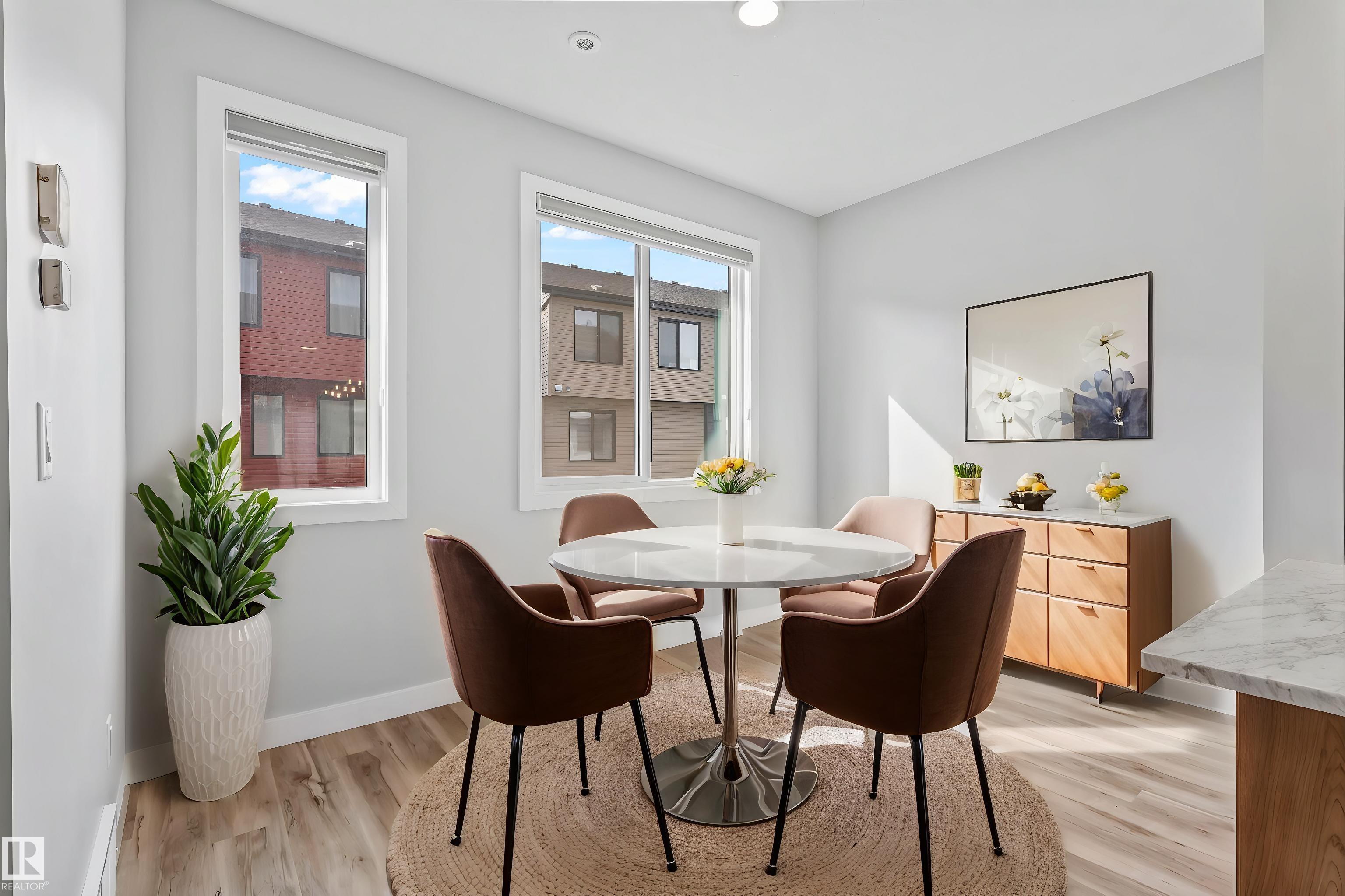 Move-in-ready townhome offering modern comfort and exceptional value. Featuring over 1500 sq ft, 3 bedrooms, 2.5 bathrooms, and a versatile main-floor den. The bright, open-concept main floor is the heart of the home, showcasing a huge island, quartz countertops, and stainless steel appliances. The seamless flow between the dining and living areas creates an inviting atmosphere, while the private balcony is ideal for summer days. Upstairs, the spacious primary bedroom offers a private retreat with its own ensuite and walk-in closet. Two additional bedrooms, a linen closet, and convenient upstairs laundry add to the home?s functional design.Enjoy the added benefits of a double-attached garage and a low condo fee. Location is unbeatable, within walking distance of Dr. Anne Anderson High School and just seconds from Heritage Valley shopping center and other amenities. With easy access to major highways and the airport, commuting is easy. IMMEDIATE POSSESSION, some images are virtually staged. PRICED TO SELL!