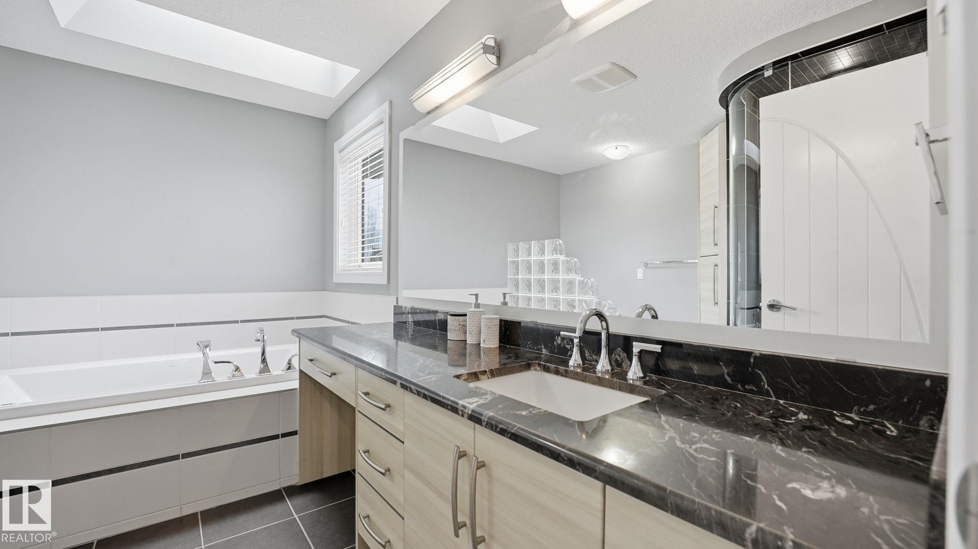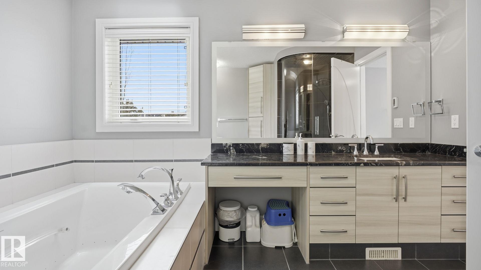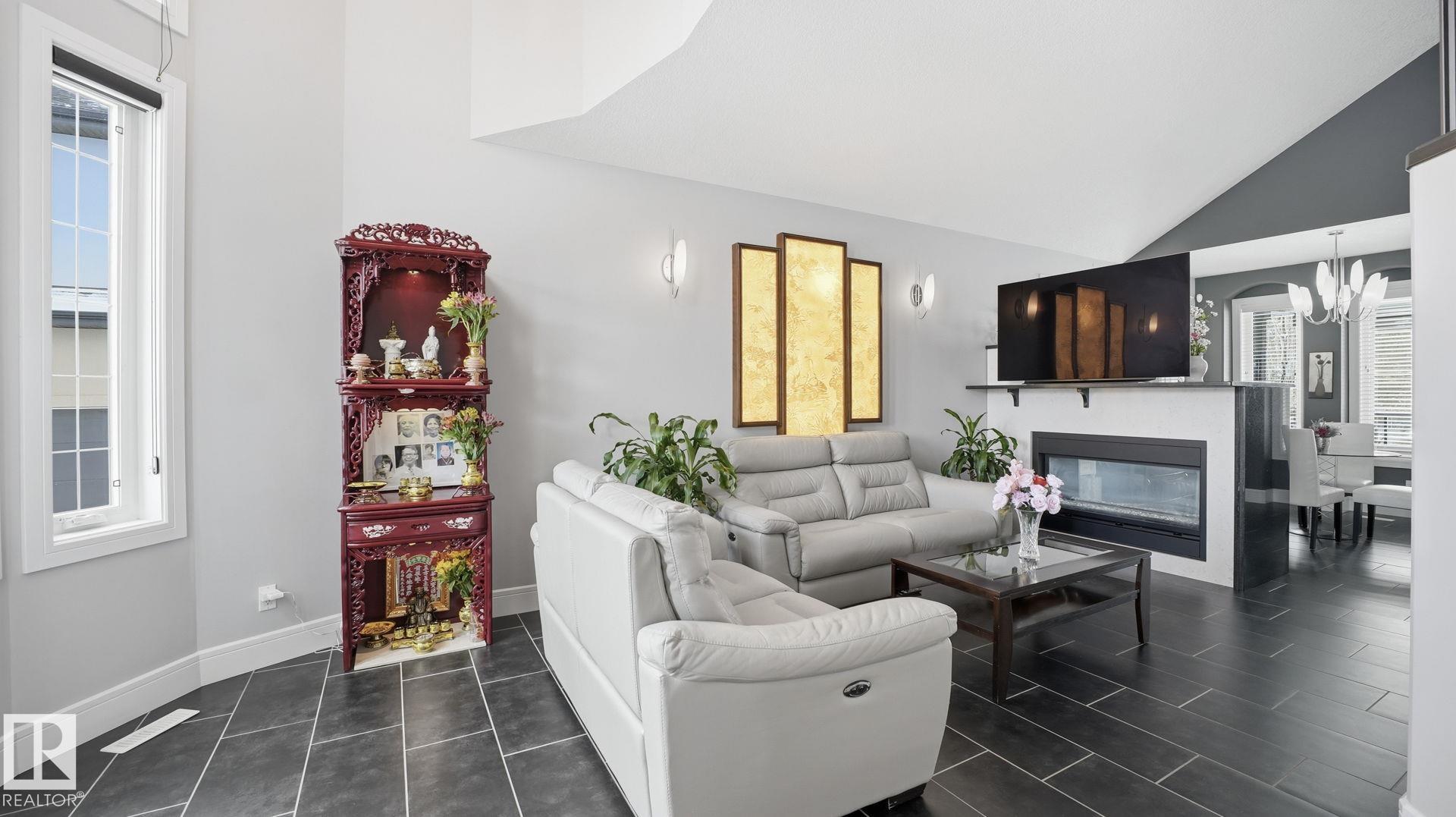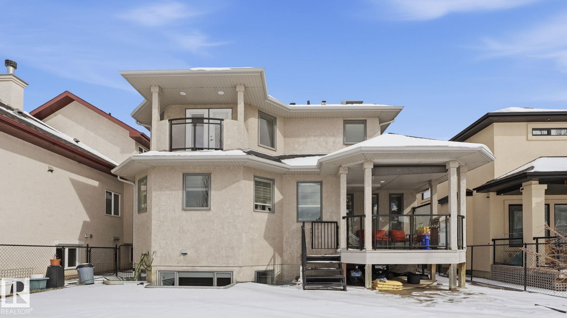 Situated in the desirable community of Chambery, this 5-bedroom residence features a private west-facing backyard backing onto green space. The main level offers vaulted ceilings and large windows that allow for abundant natural light. The kitchen is appointed with granite countertops, ample cabinetry, a central island, and stainless steel appliances, with access to a covered deck, while a bedroom, 2-piece bathroom, and laundry complete this level. Upstairs includes 2 additional bedrooms and a spacious primary suite with a fireplace, walk-in closet and a 4-piece ensuite featuring a jetted tub, separate shower, and skylight, along with access to a covered balcony. The fully developed basement features a LEGAL SUITE, kitchen, living area, fireplace, two bedrooms, a 4-piece bathroom, and 9-foot ceilings. Additional features include in-floor heating in the basement and primary bedroom, custom doors, and parking for up to five vehicles, along with convenient access to nearby amenities.