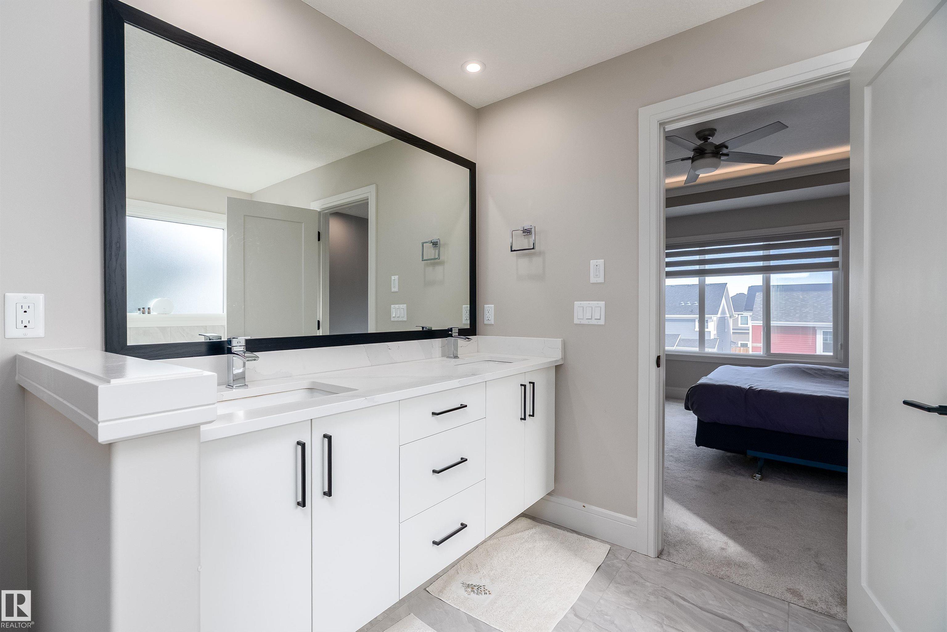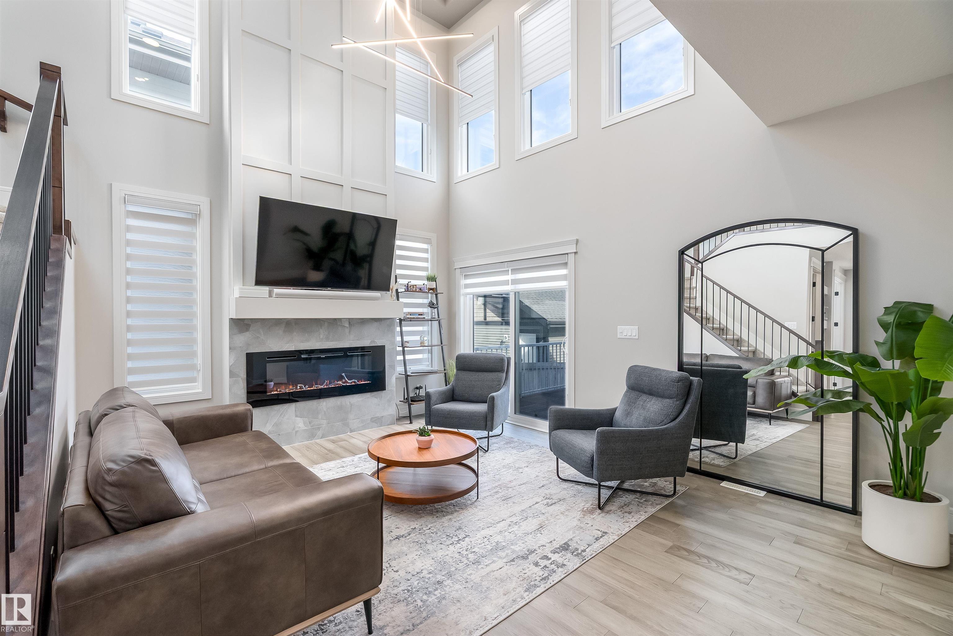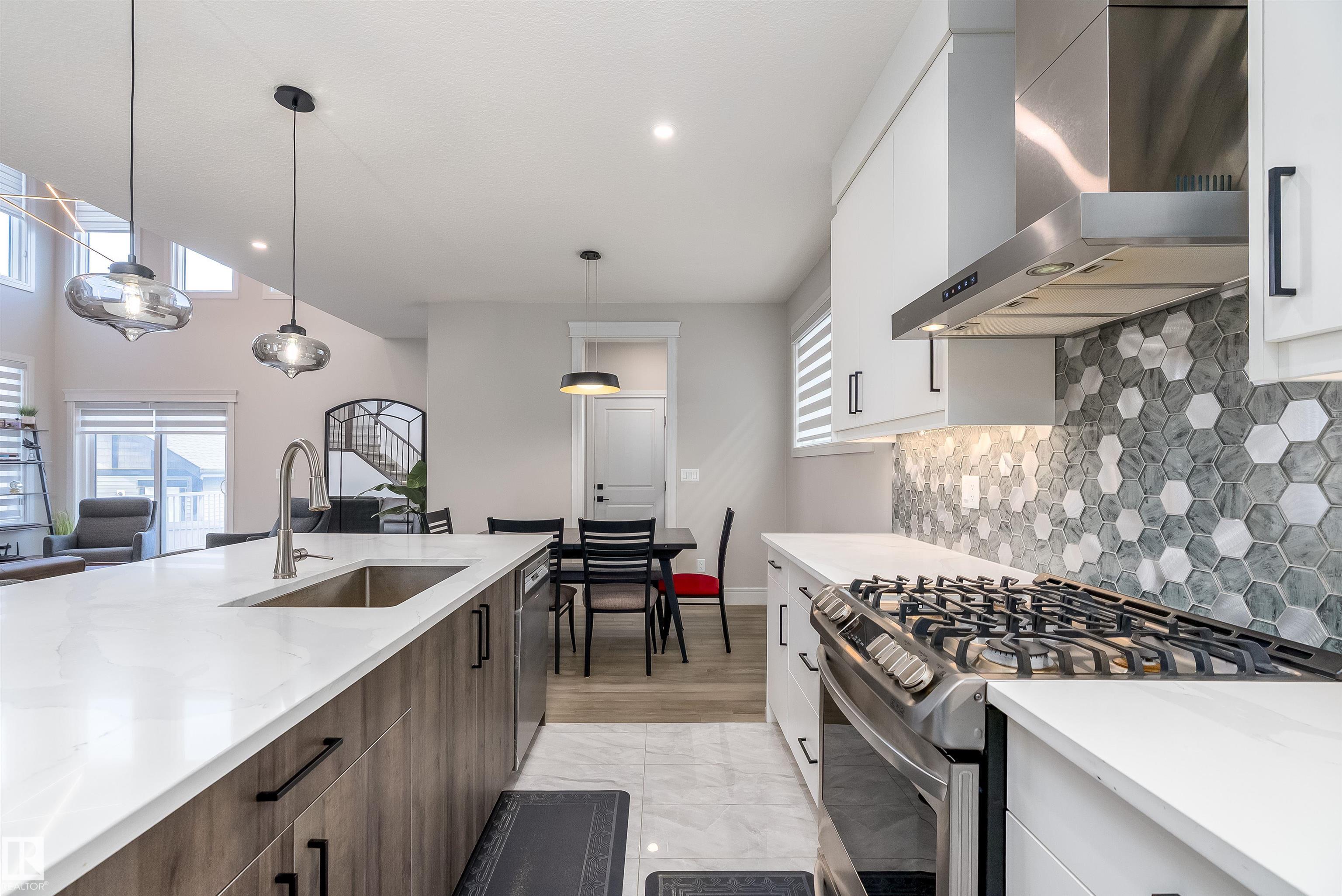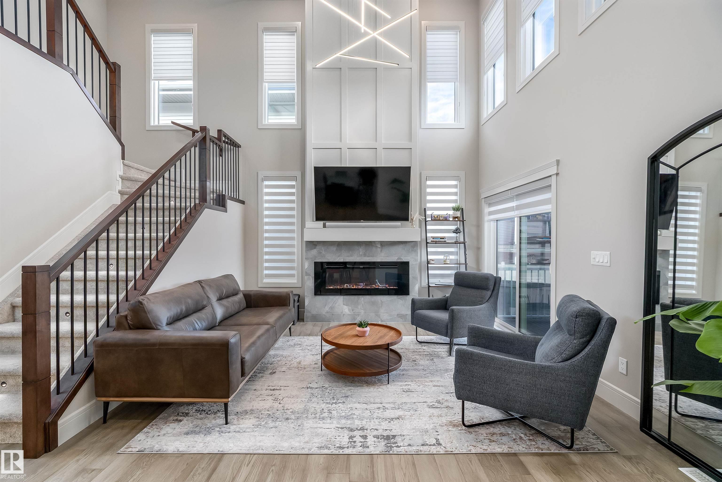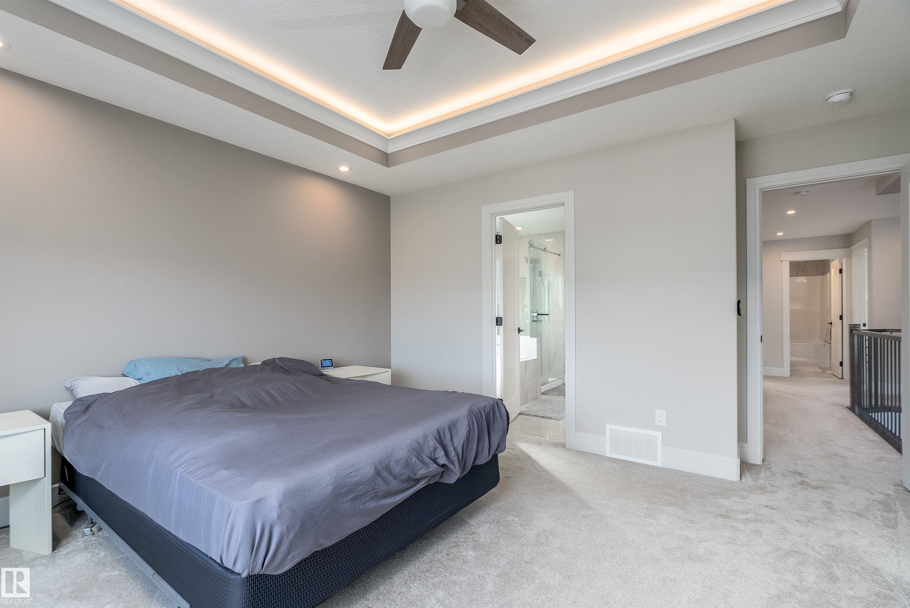 Welcome to this stunning 1894 sqft 2-storey home in the award-winning community of Griesbach, offering a total of 6 bedrooms (4+2) and 4 bathrooms. This property also includes a fully finished 2 bedroom LEGAL suite mortgage helper. Step inside to an impressive open-to-below great room showcasing sophisticated wainscoting and a coffered ceiling feature wall. The modern kitchen is beautifully finished with white and natural wood tone cabinetry, large island, upgraded SS appliances, gas range, hood fan, tiled backsplash, and corner pantry. The main floor also includes a bedroom and full bathroom, ideal for guests or multigenerational living. Upstairs you?ll find a spacious primary retreat with tray ceiling, walk-in closet, and luxurious 5pc ensuite, plus convenient upstairs laundry, a 4pce bath, and two junior bedrooms. The fully finished basement offers a legal 2-bedroom suite, providing additional value. Situated on an extra-wide lot, this home also includes central A/C and rough-ins for EV.