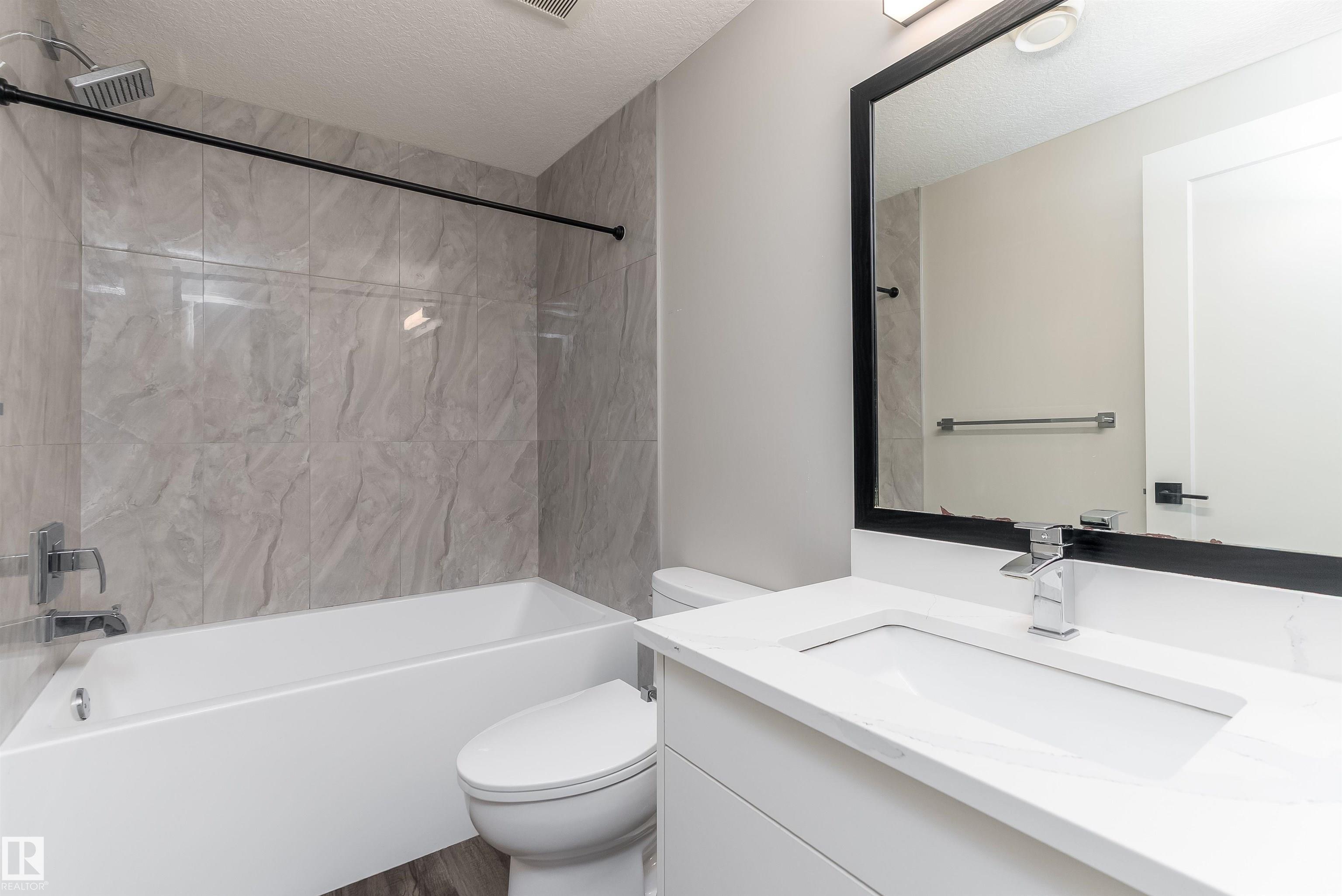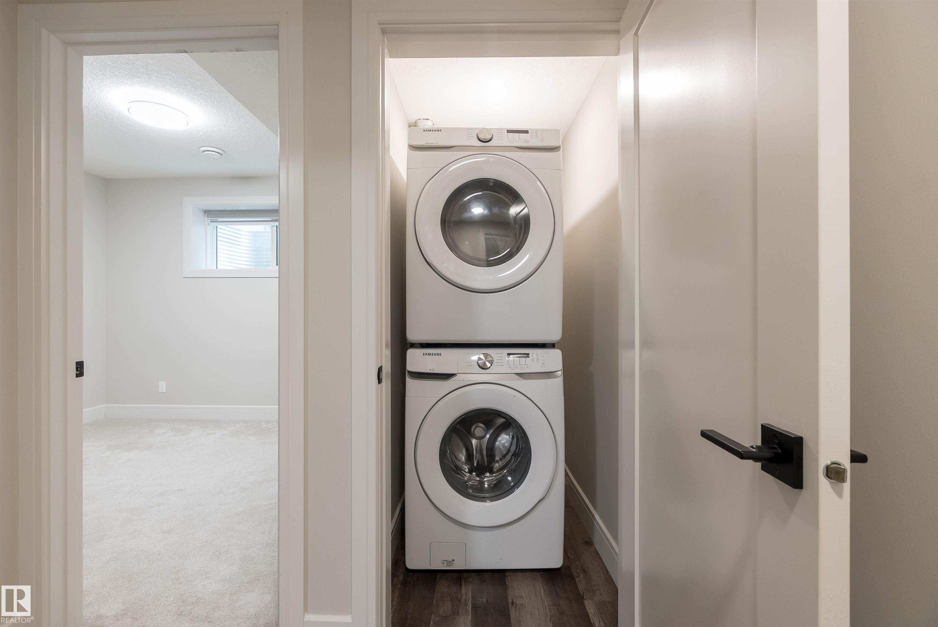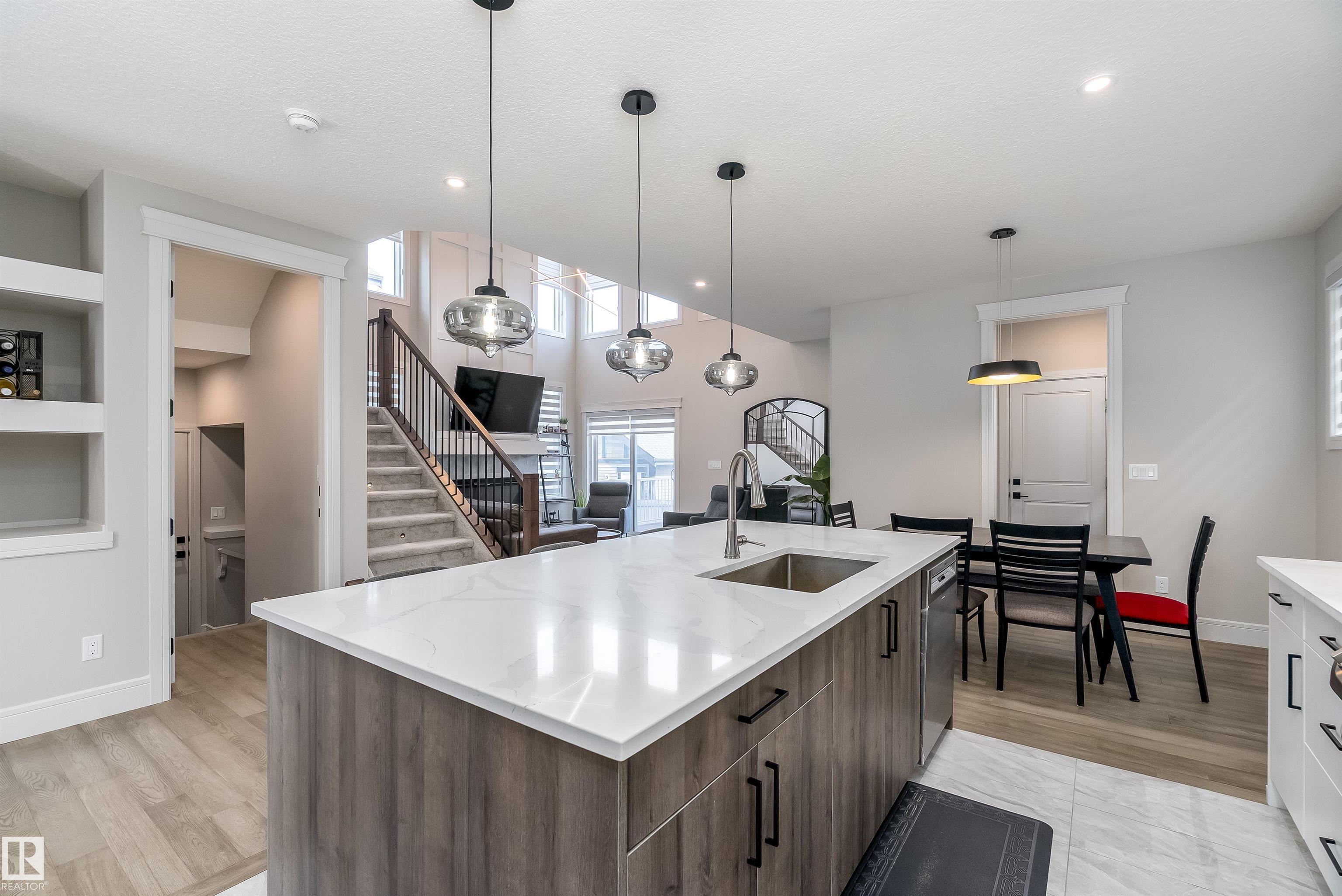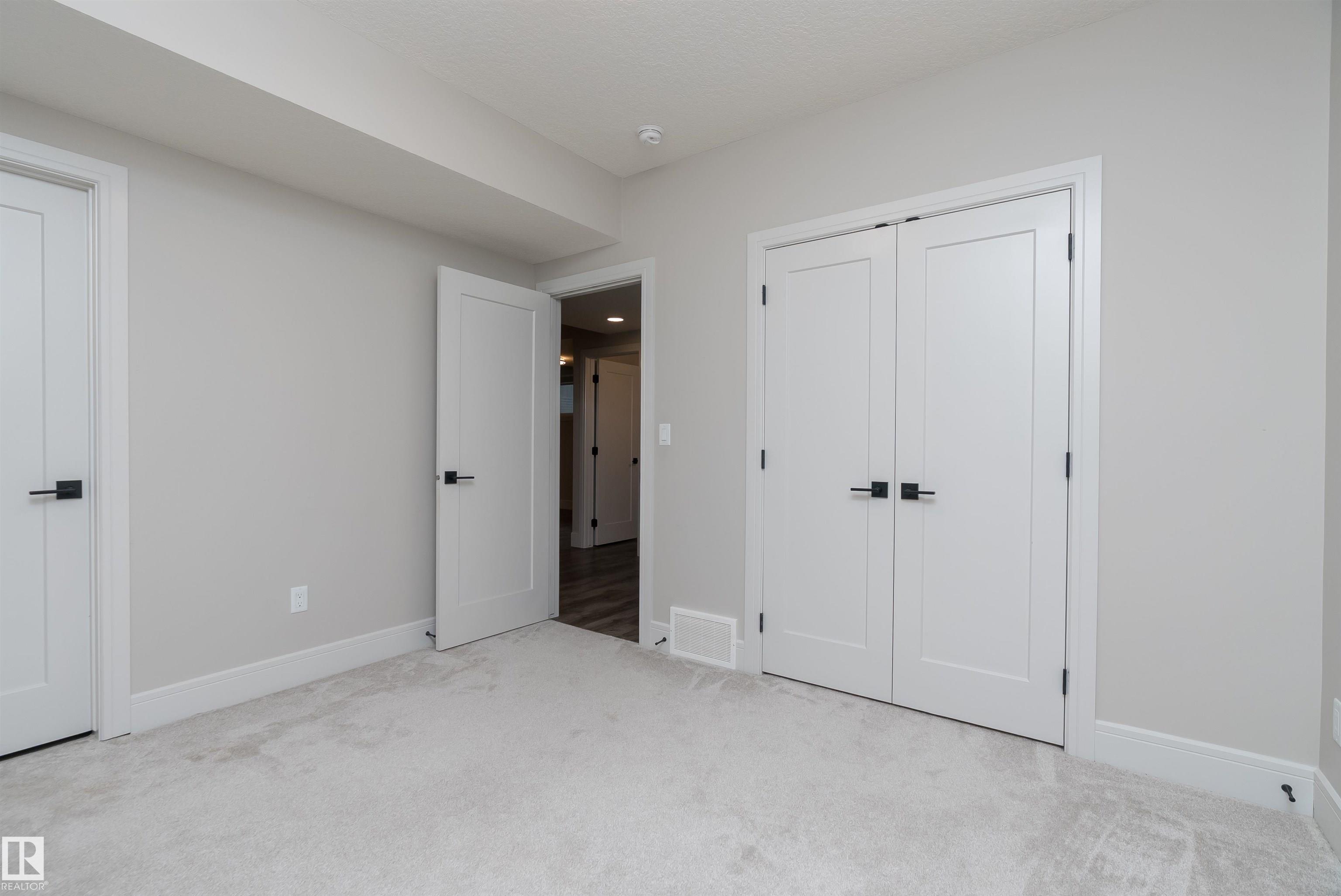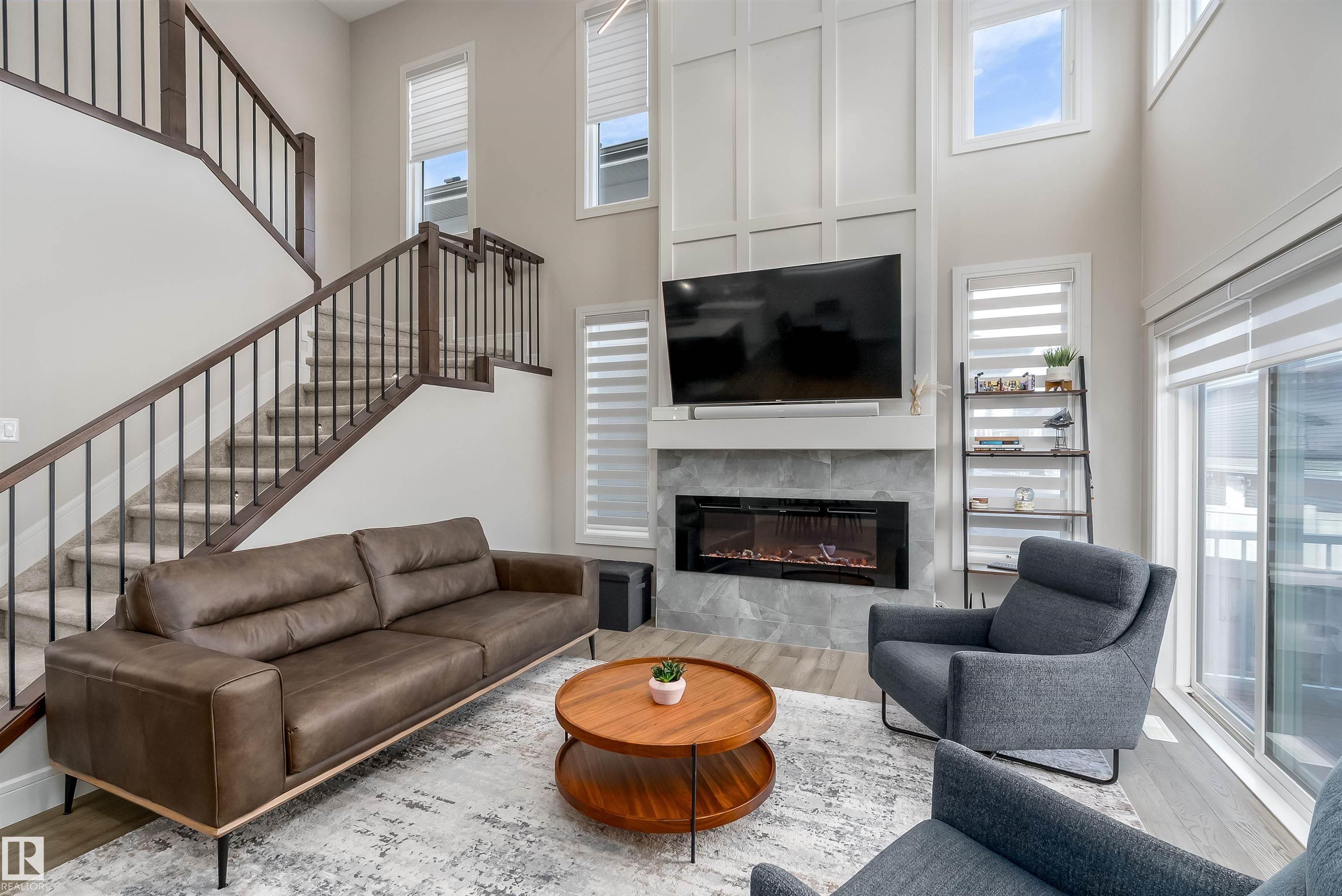 Welcome to this stunning 1894 sqft 2-storey home in the award-winning community of Griesbach, offering a total of 6 bedrooms (4+2) and 4 bathrooms. This property also includes a fully finished 2 bedroom LEGAL suite mortgage helper. Step inside to an impressive open-to-below great room showcasing sophisticated wainscoting and a coffered ceiling feature wall. The modern kitchen is beautifully finished with white and natural wood tone cabinetry, large island, upgraded SS appliances, gas range, hood fan, tiled backsplash, and corner pantry. The main floor also includes a bedroom and full bathroom, ideal for guests or multigenerational living. Upstairs you?ll find a spacious primary retreat with tray ceiling, walk-in closet, and luxurious 5pc ensuite, plus convenient upstairs laundry, a 4pce bath, and two junior bedrooms. The fully finished basement offers a legal 2-bedroom suite, providing additional value. Situated on an extra-wide lot, this home also includes central A/C and rough-ins for EV.