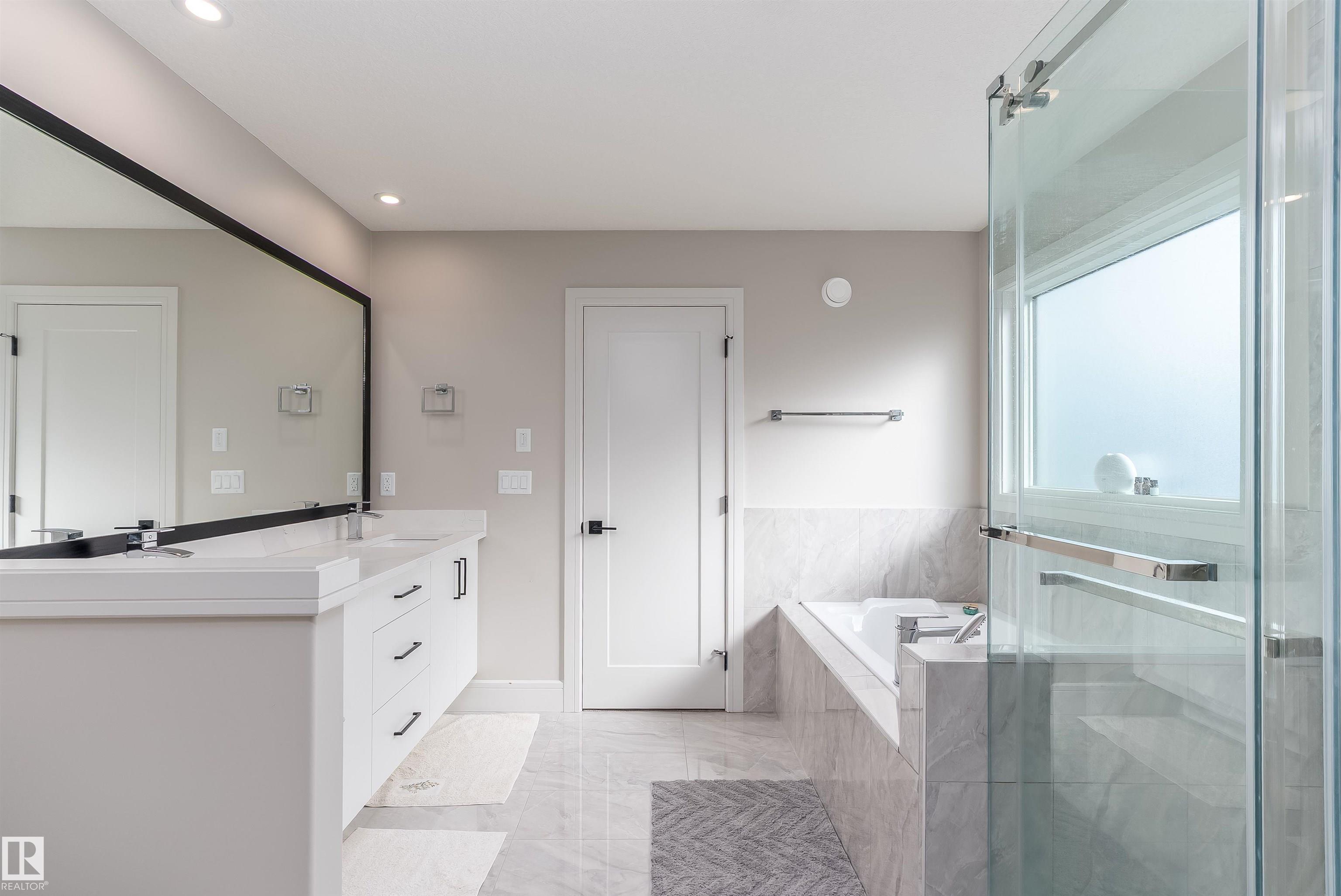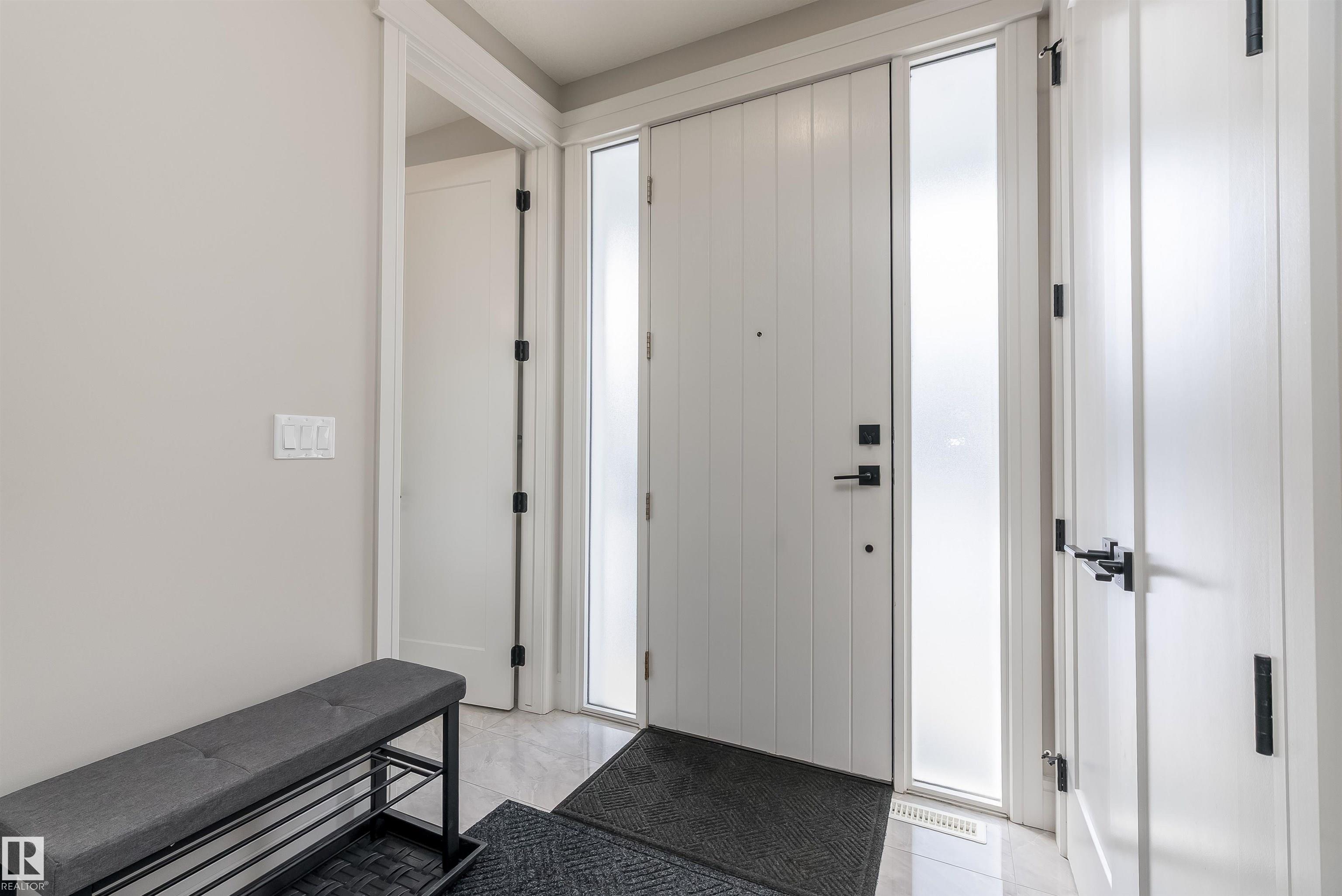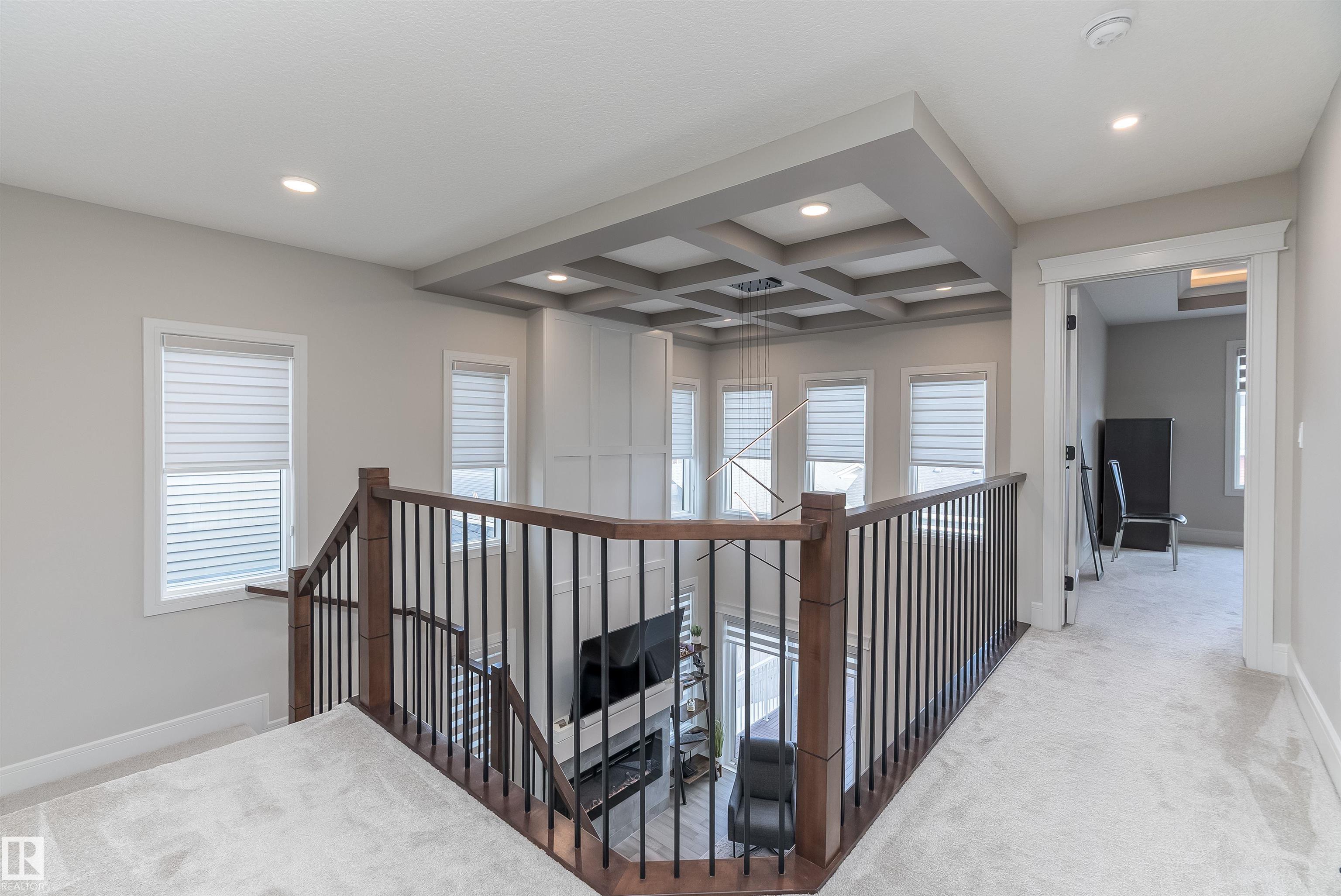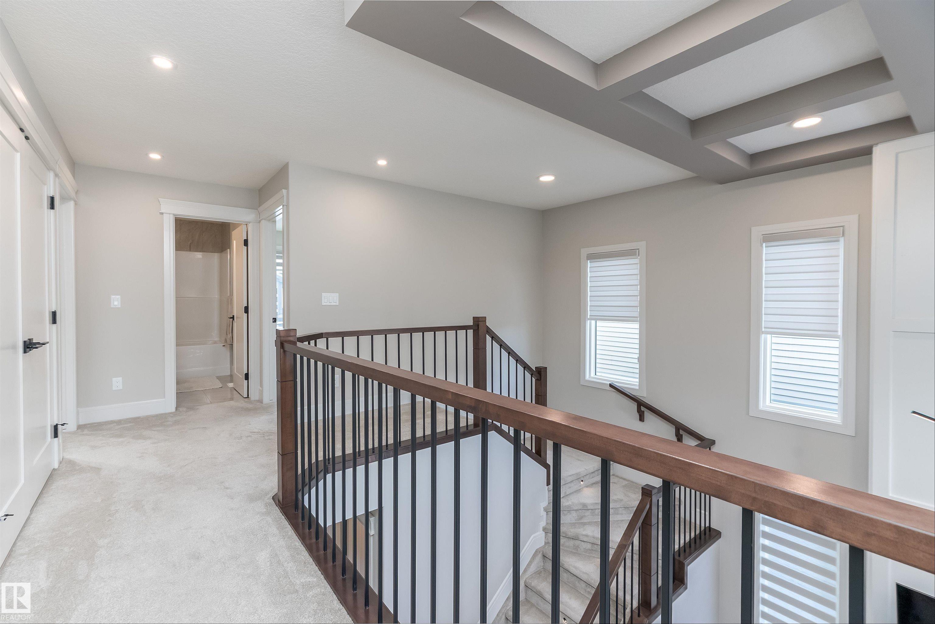 Welcome to this stunning 1894 sqft 2-storey home in the award-winning community of Griesbach, offering a total of 6 bedrooms (4+2) and 4 bathrooms. This property also includes a fully finished 2 bedroom LEGAL suite mortgage helper. Step inside to an impressive open-to-below great room showcasing sophisticated wainscoting and a coffered ceiling feature wall. The modern kitchen is beautifully finished with white and natural wood tone cabinetry, large island, upgraded SS appliances, gas range, hood fan, tiled backsplash, and corner pantry. The main floor also includes a bedroom and full bathroom, ideal for guests or multigenerational living. Upstairs you?ll find a spacious primary retreat with tray ceiling, walk-in closet, and luxurious 5pc ensuite, plus convenient upstairs laundry, a 4pce bath, and two junior bedrooms. The fully finished basement offers a legal 2-bedroom suite, providing additional value. Situated on an extra-wide lot, this home also includes central A/C and rough-ins for EV.