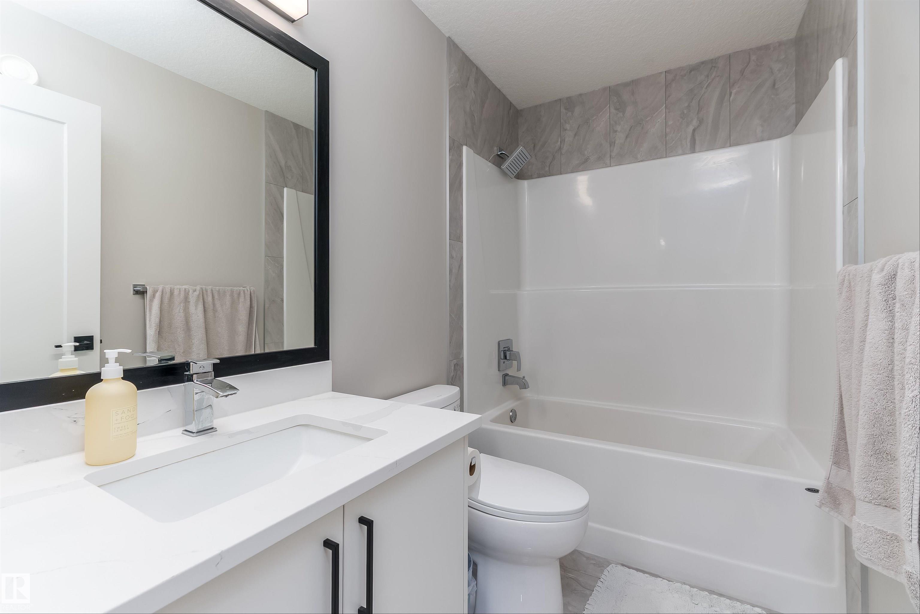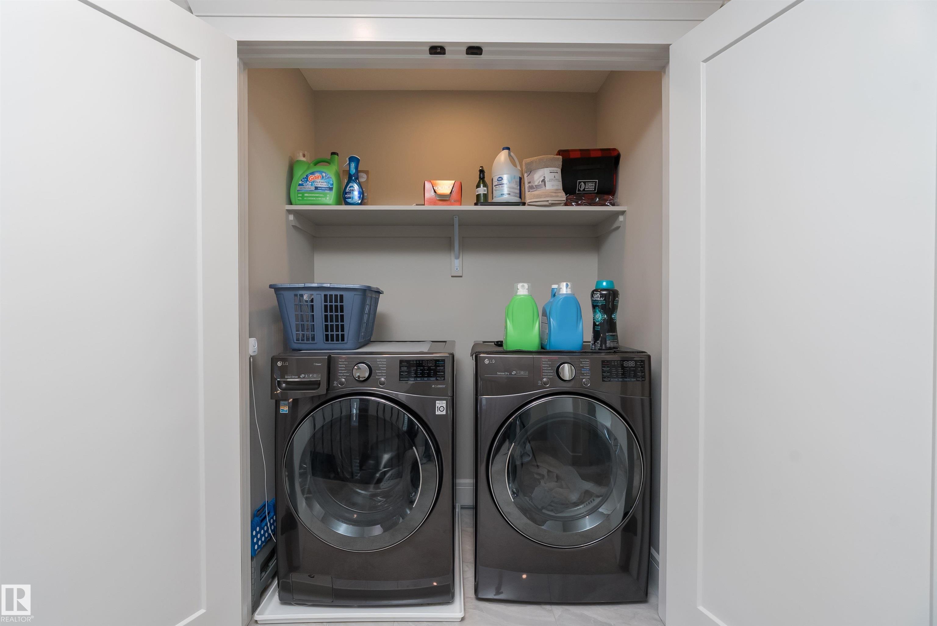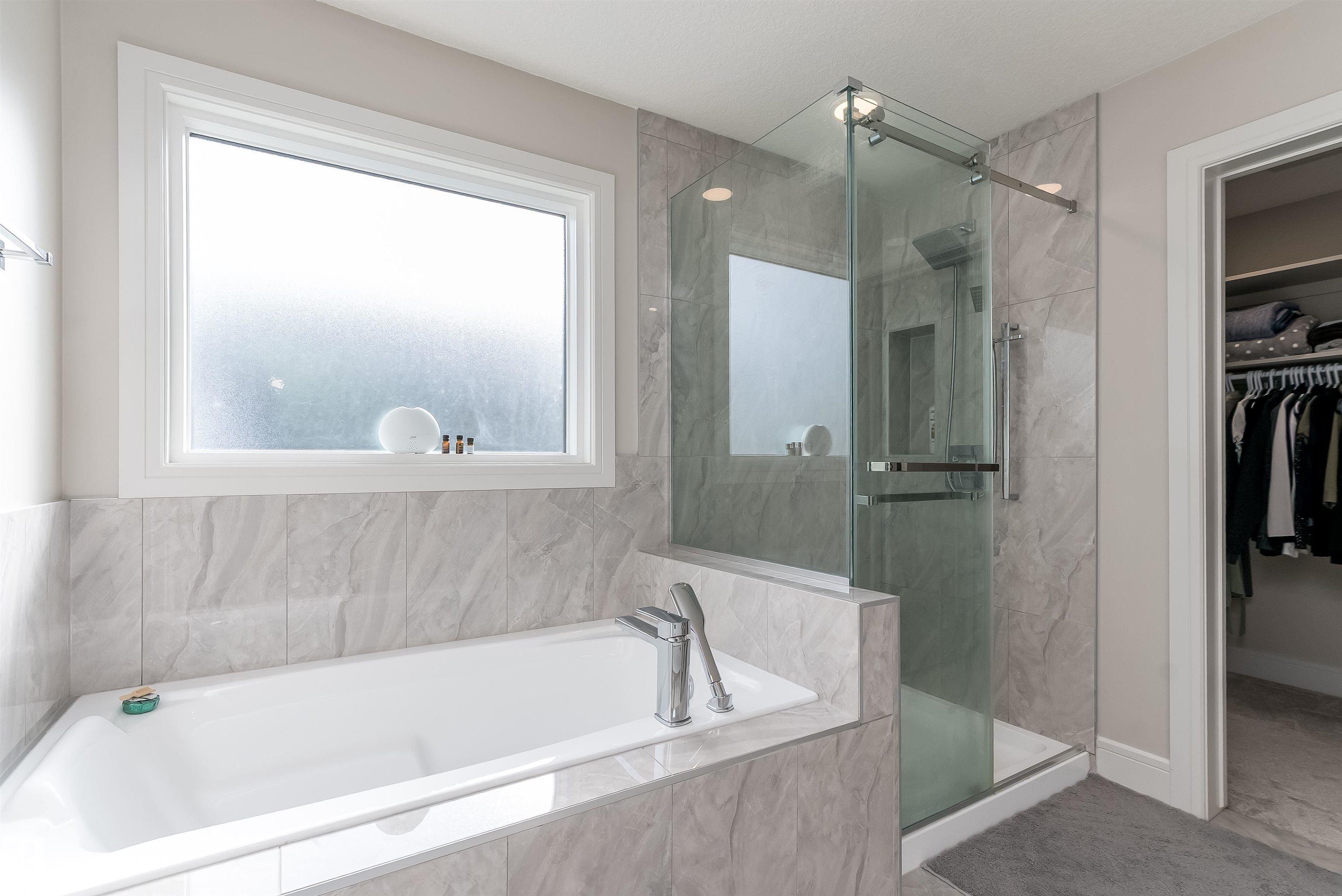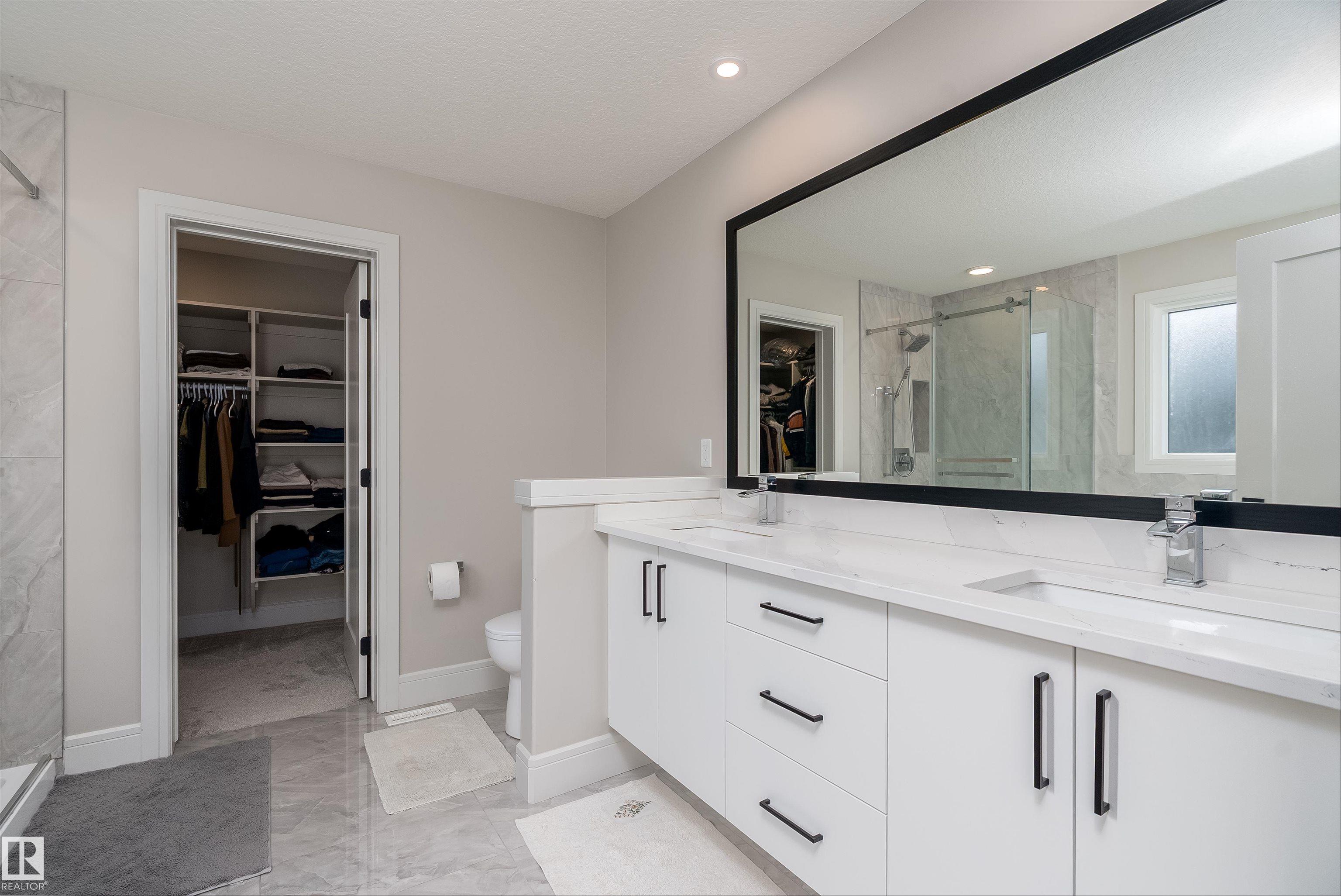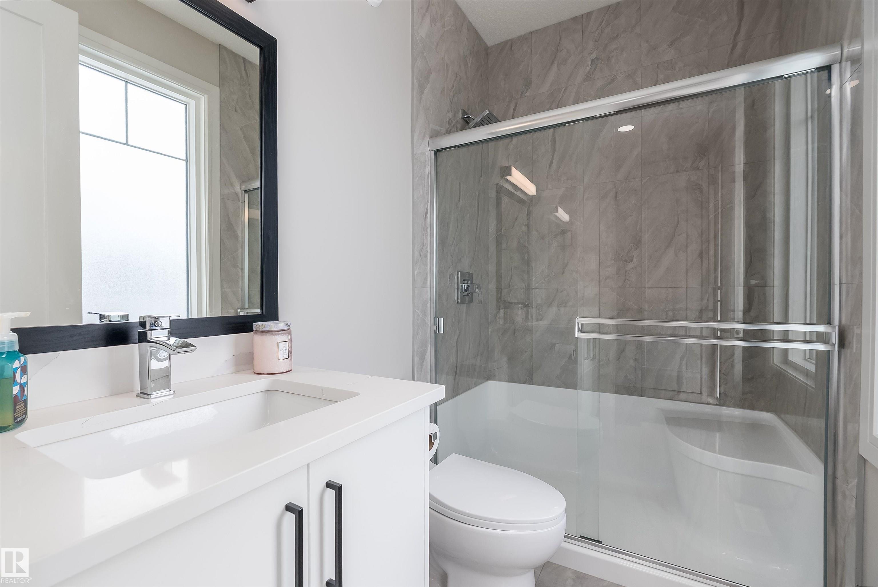 Welcome to this stunning 1894 sqft 2-storey home in the award-winning community of Griesbach, offering a total of 6 bedrooms (4+2) and 4 bathrooms. This property also includes a fully finished 2 bedroom LEGAL suite mortgage helper. Step inside to an impressive open-to-below great room showcasing sophisticated wainscoting and a coffered ceiling feature wall. The modern kitchen is beautifully finished with white and natural wood tone cabinetry, large island, upgraded SS appliances, gas range, hood fan, tiled backsplash, and corner pantry. The main floor also includes a bedroom and full bathroom, ideal for guests or multigenerational living. Upstairs you?ll find a spacious primary retreat with tray ceiling, walk-in closet, and luxurious 5pc ensuite, plus convenient upstairs laundry, a 4pce bath, and two junior bedrooms. The fully finished basement offers a legal 2-bedroom suite, providing additional value. Situated on an extra-wide lot, this home also includes central A/C and rough-ins for EV.