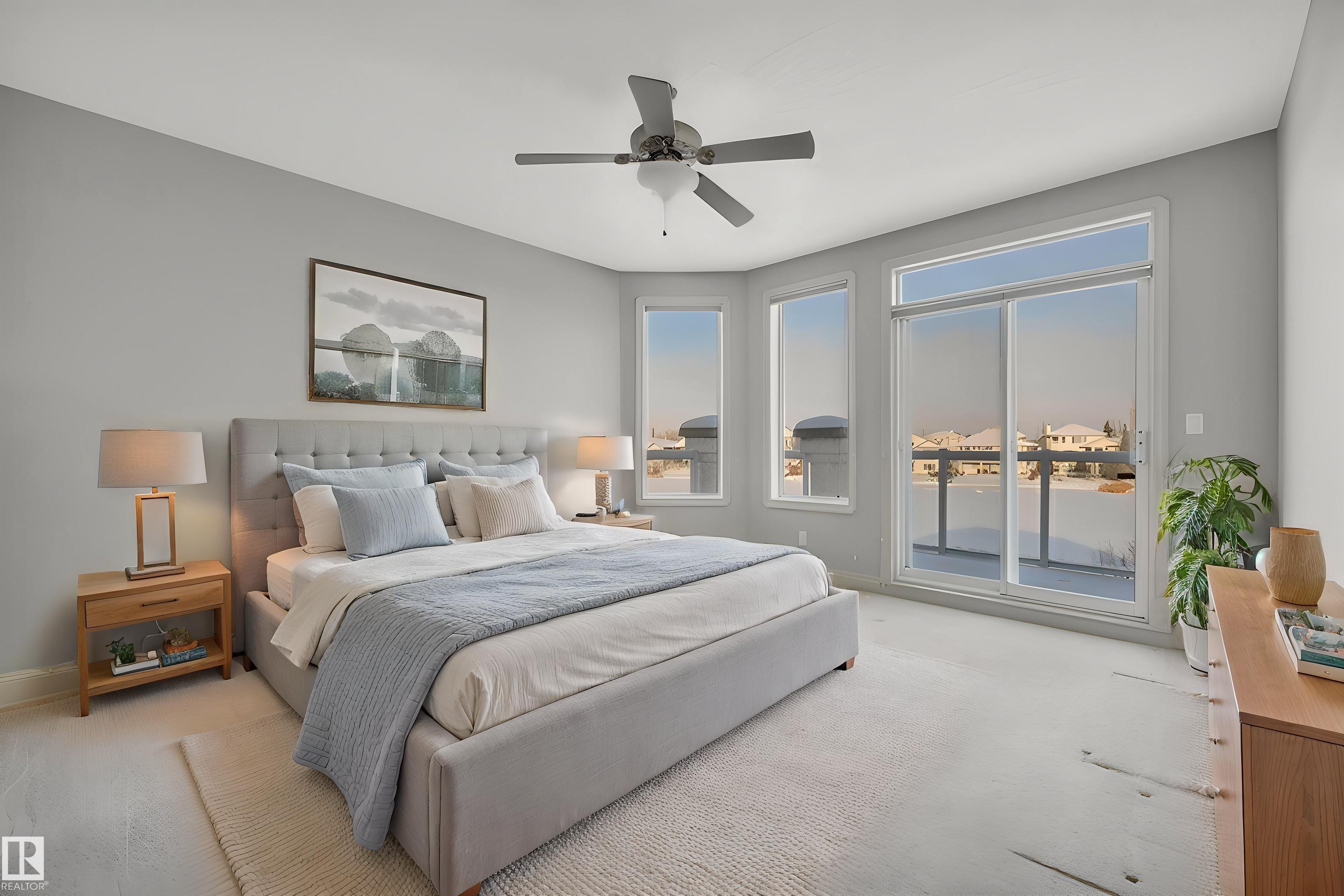 Backing onto Upper Nottingham Lake, this beautiful walkout bungalow offers spectacular lake views, soaring ceilings, and an abundance of natural light. Featuring air conditioning, 4 bedrooms, and 3.5 baths, this home is designed for comfortable family living. A grand entrance welcomes you into the spacious open layout. The family-sized kitchen offers ample cabinetry, a corner pantry, and island overlooking the dining area and living room with cozy fireplace. The main-level primary suite includes a 4-piece ensuite and walk-in closet, complemented by a den and guest bath. Upstairs, the loft features a unique second primary suite with its own 4-piece ensuite and walk-in closet. The fully finished walkout basement provides additional living space with a large rec room, two generous bedrooms, a 4-piece bath, and plenty of storage. Enjoy the spectacular yard and lake views. Located in the desirable Nottingham community with parks, trails around Ball Lake, and easy access to amenities.