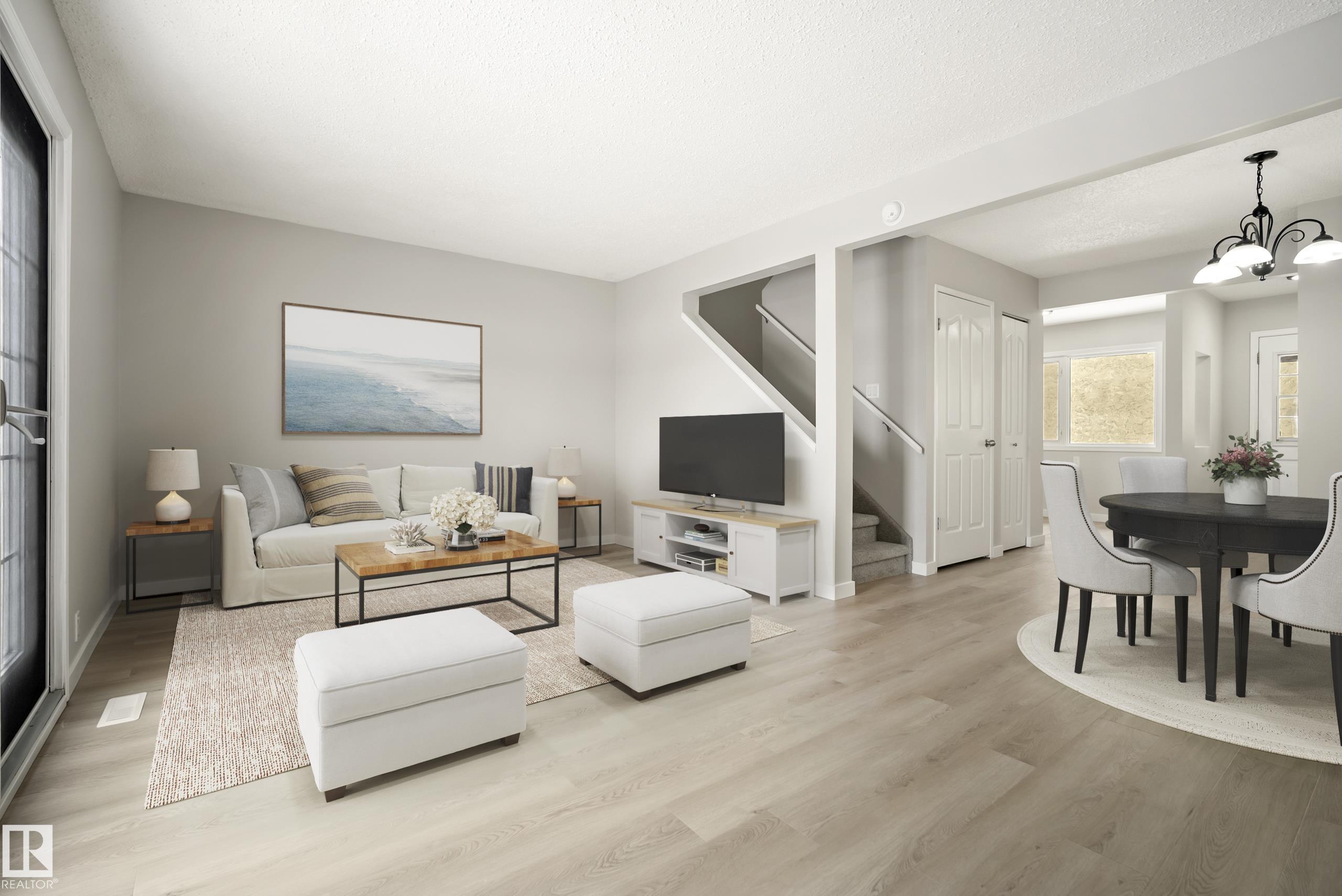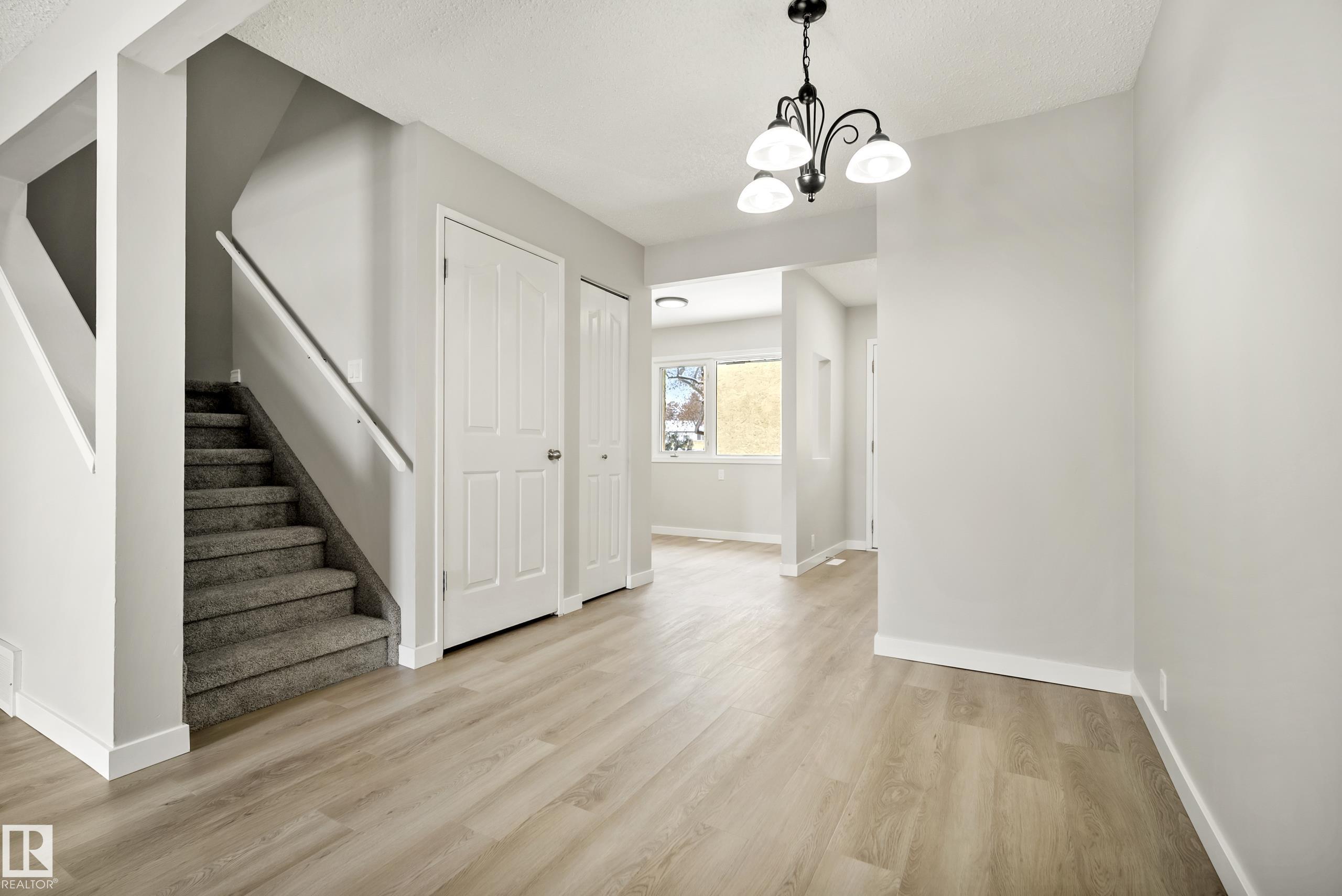 Move-in ready! Beautifully updated 3-bedroom, 1.5-bathroom home offering a bright and functional layout in a convenient location. The main floor features new vinyl plank flooring, fresh paint, new light fixtures, and a stunning renovated kitchen with quartz countertops, white cabinetry, and stainless steel appliances. A newly updated 2-piece bathroom completes the main level. Upstairs you?ll find three well-sized bedrooms with durable hard surface flooring throughout. The fully finished basement adds valuable living space with a large rec room, laundry area, and plenty of storage. Enjoy the spacious, fully fenced backyard, perfect for relaxing or entertaining. Includes an assigned parking stall. Ideally located just steps to public transit, schools, and everyday amenities, with quick access to Victoria Trail, Yellowhead Trail, and Anthony Henday Drive. (Some photos have been virtually staged with furniture)