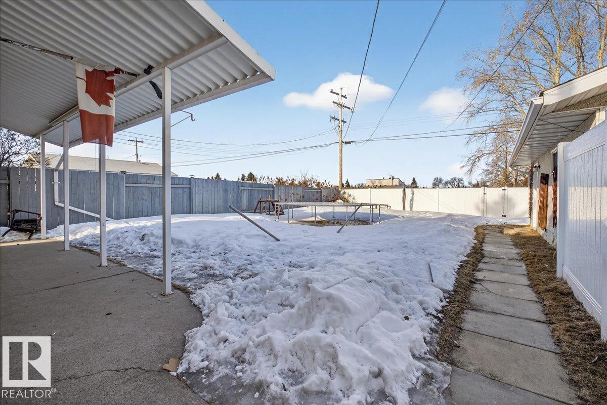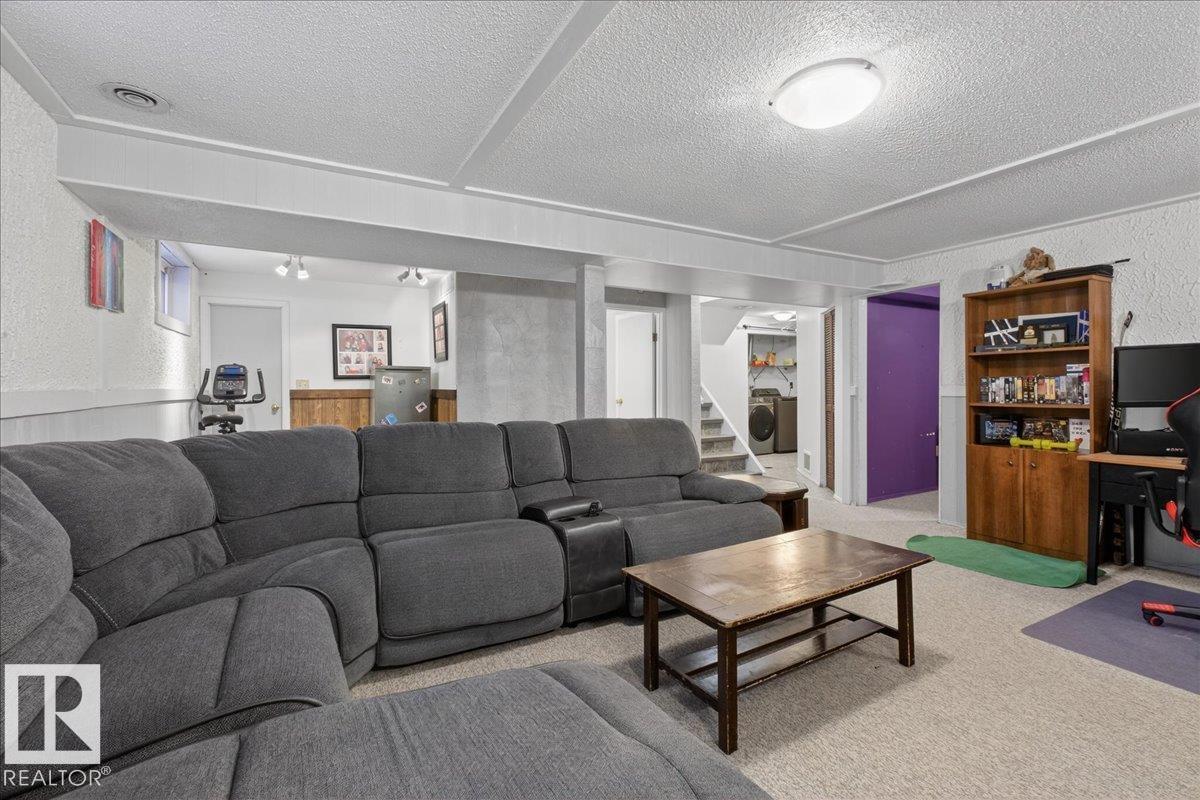 Move-in ready 5-bedroom bungalow in Gibbons, backing onto the green space of the Gibbons Museum grounds. Main floor features new flooring, trim, paint, quartz kitchen counters, and updated bathroom. Primary bedroom with 2-piece ensuite. Basement includes cozy electric fireplace, 3-piece bath, and versatile den for play, office, or storage. Outside, enjoy a mostly vinyl-fenced yard, oversized double garage, and covered back deck?perfect for relaxing while kids play. Walking distance to school, spray park, and Brumfit Park. A fantastic family home in a great location!